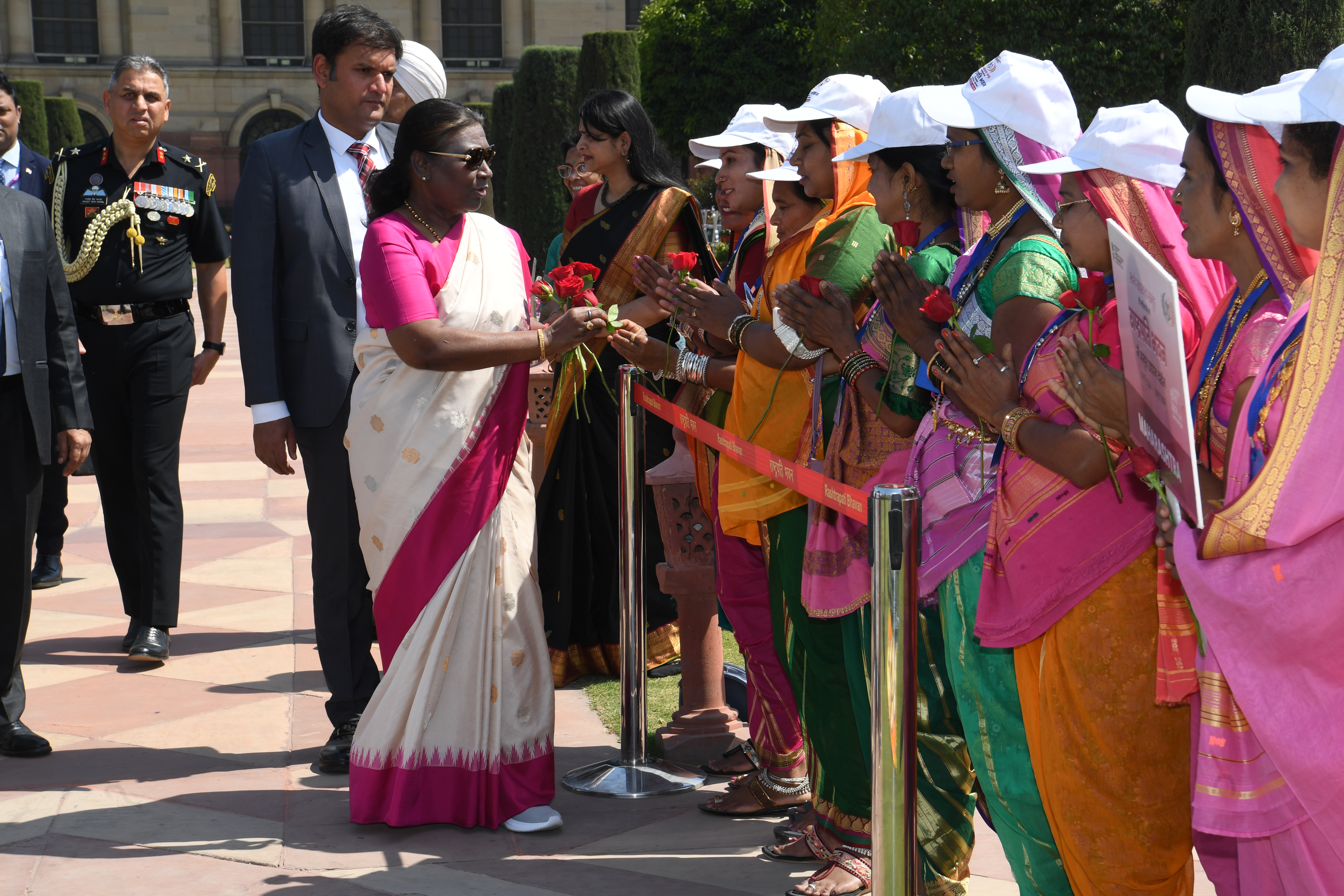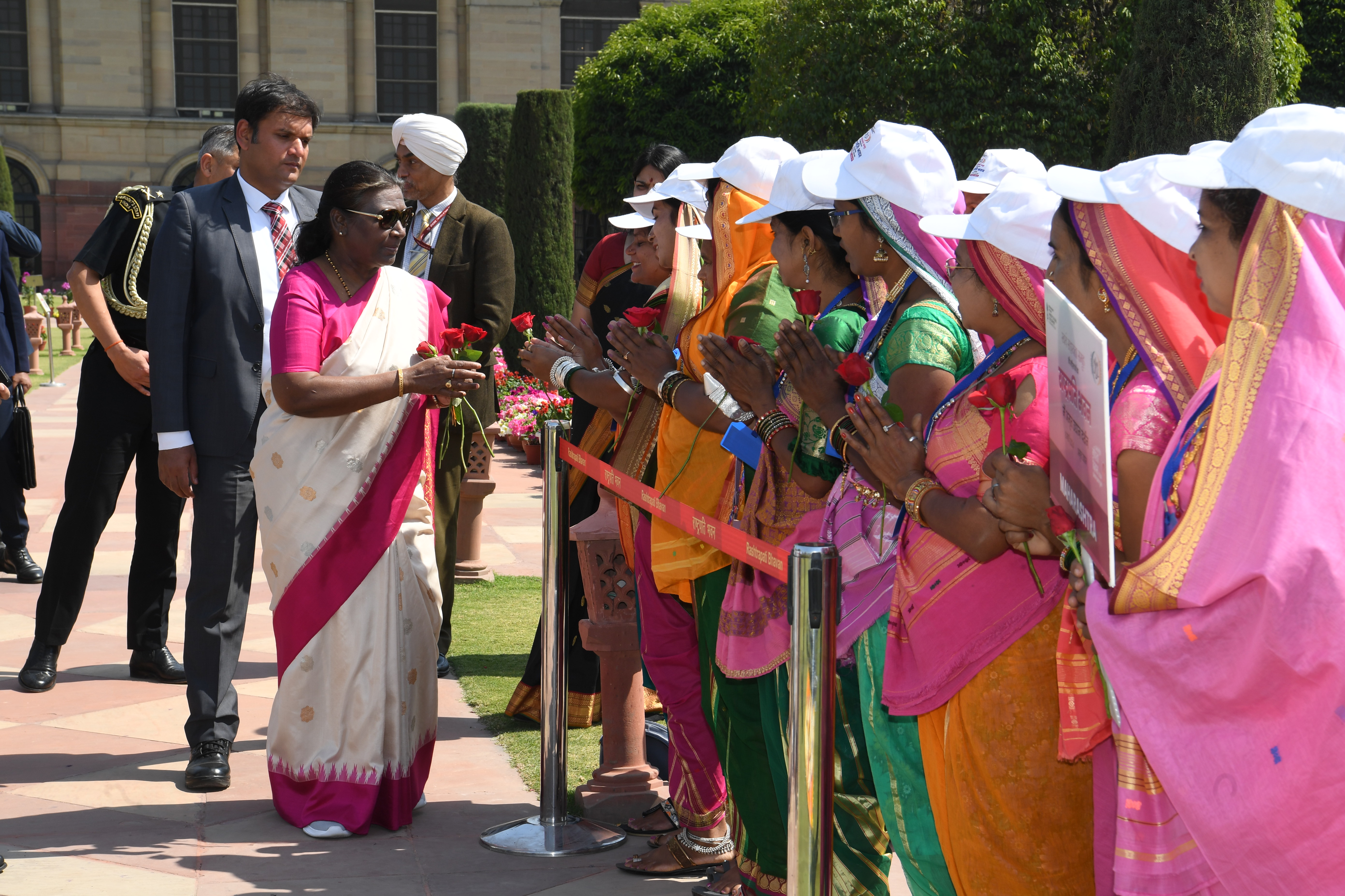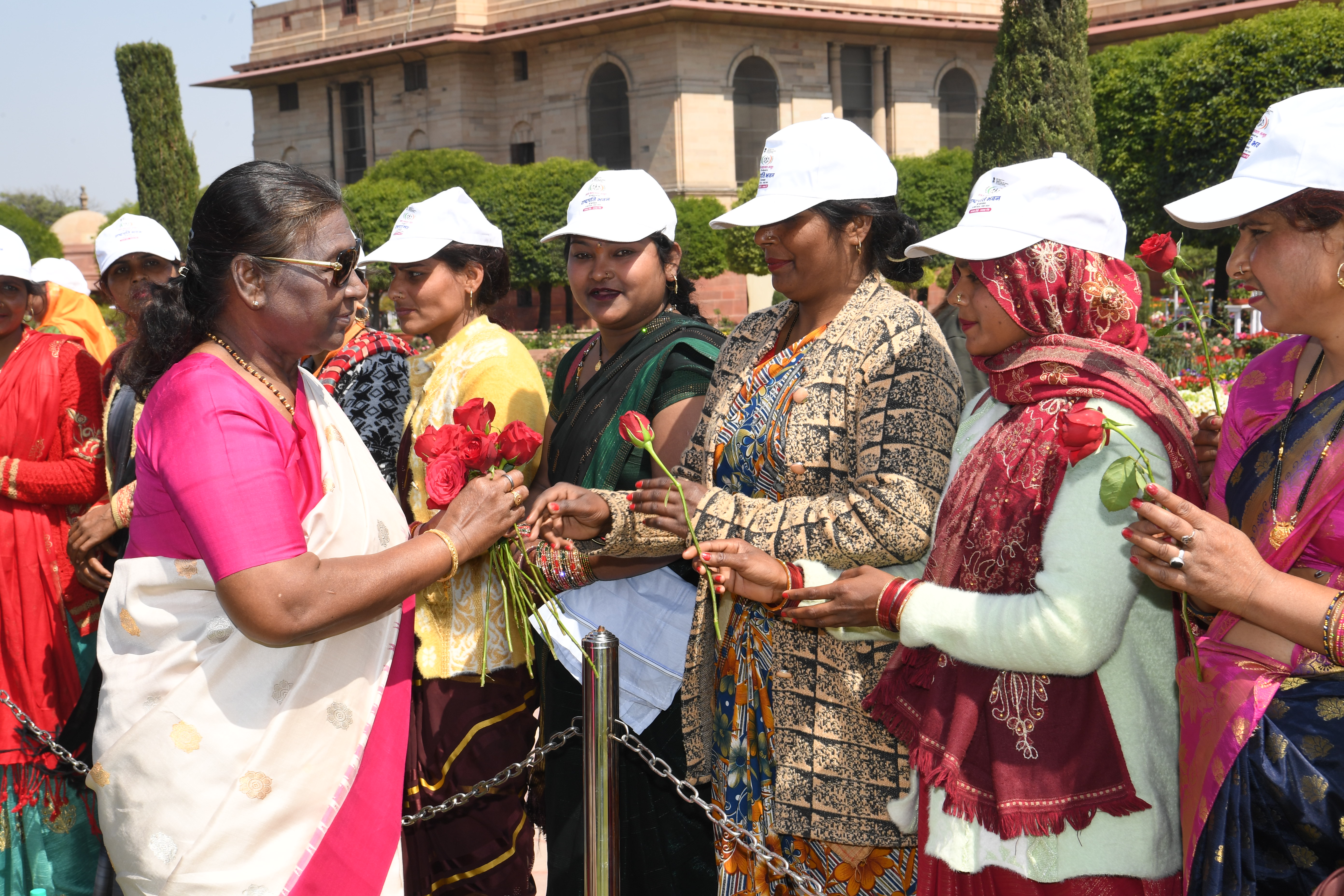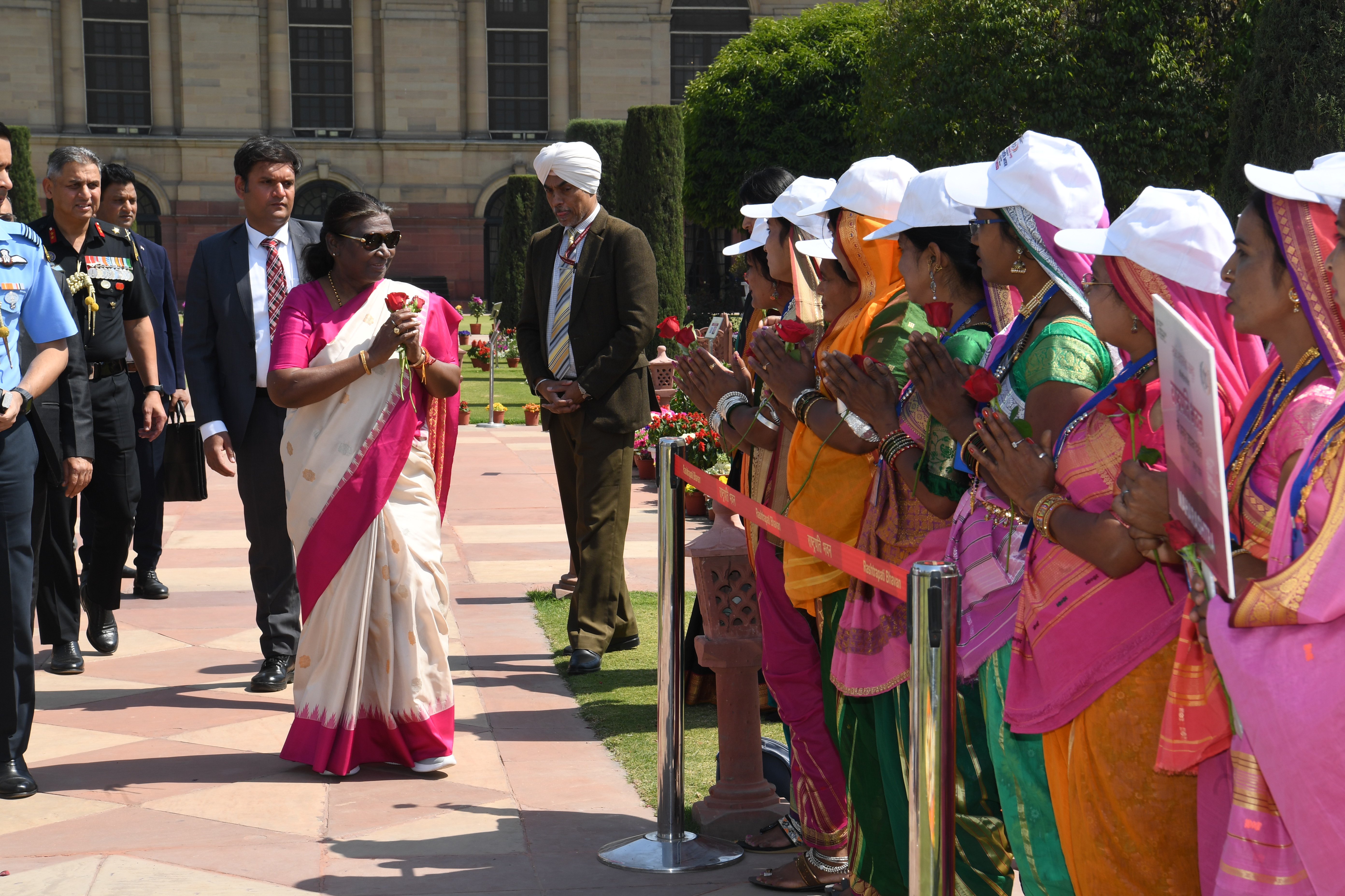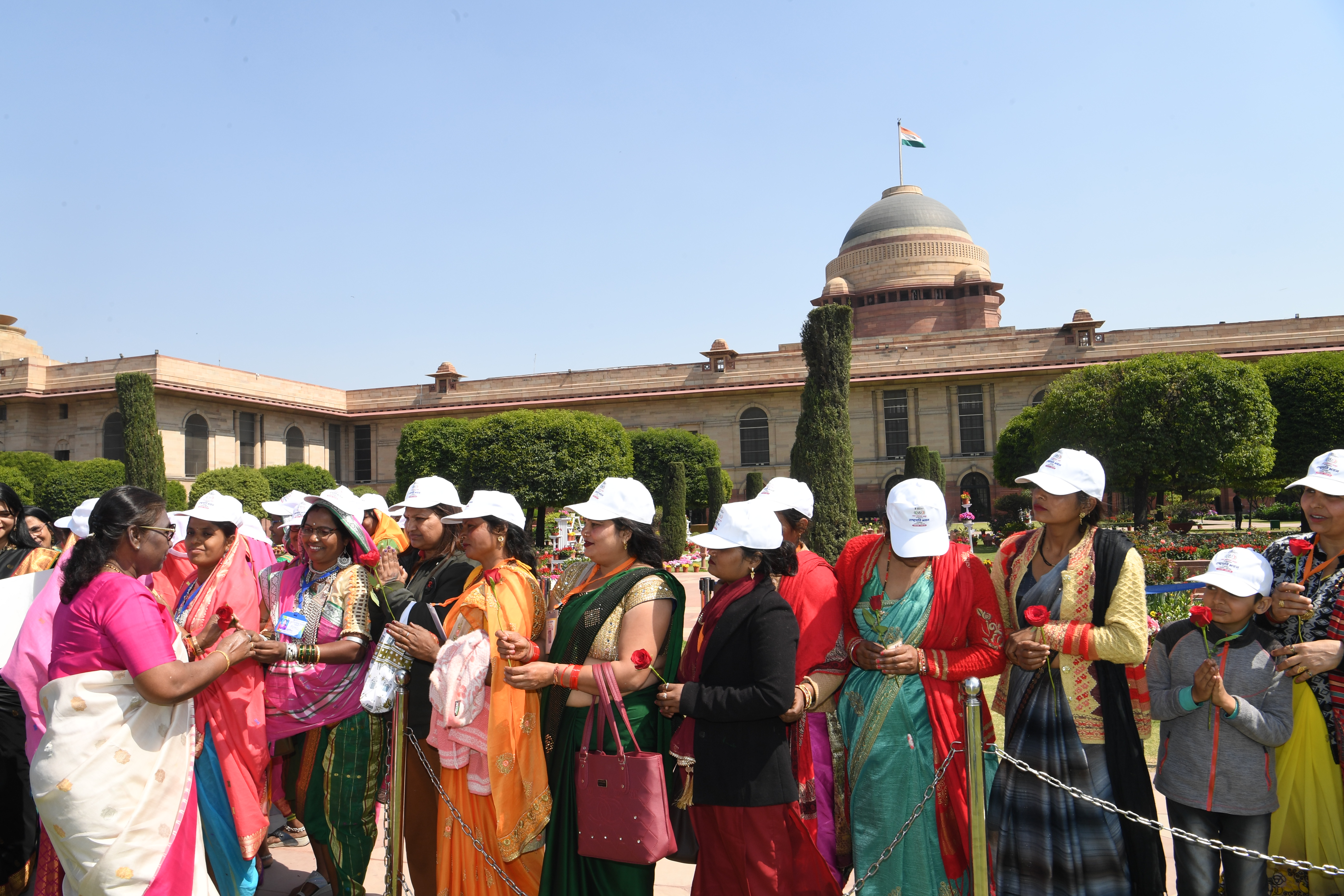 | Caption: | The President of India, Smt Droupadi Murmu met women visiting Amrit Udyan on the day reserved for the special category of Women Tribal Women SHGs-I 08-03-2024 |