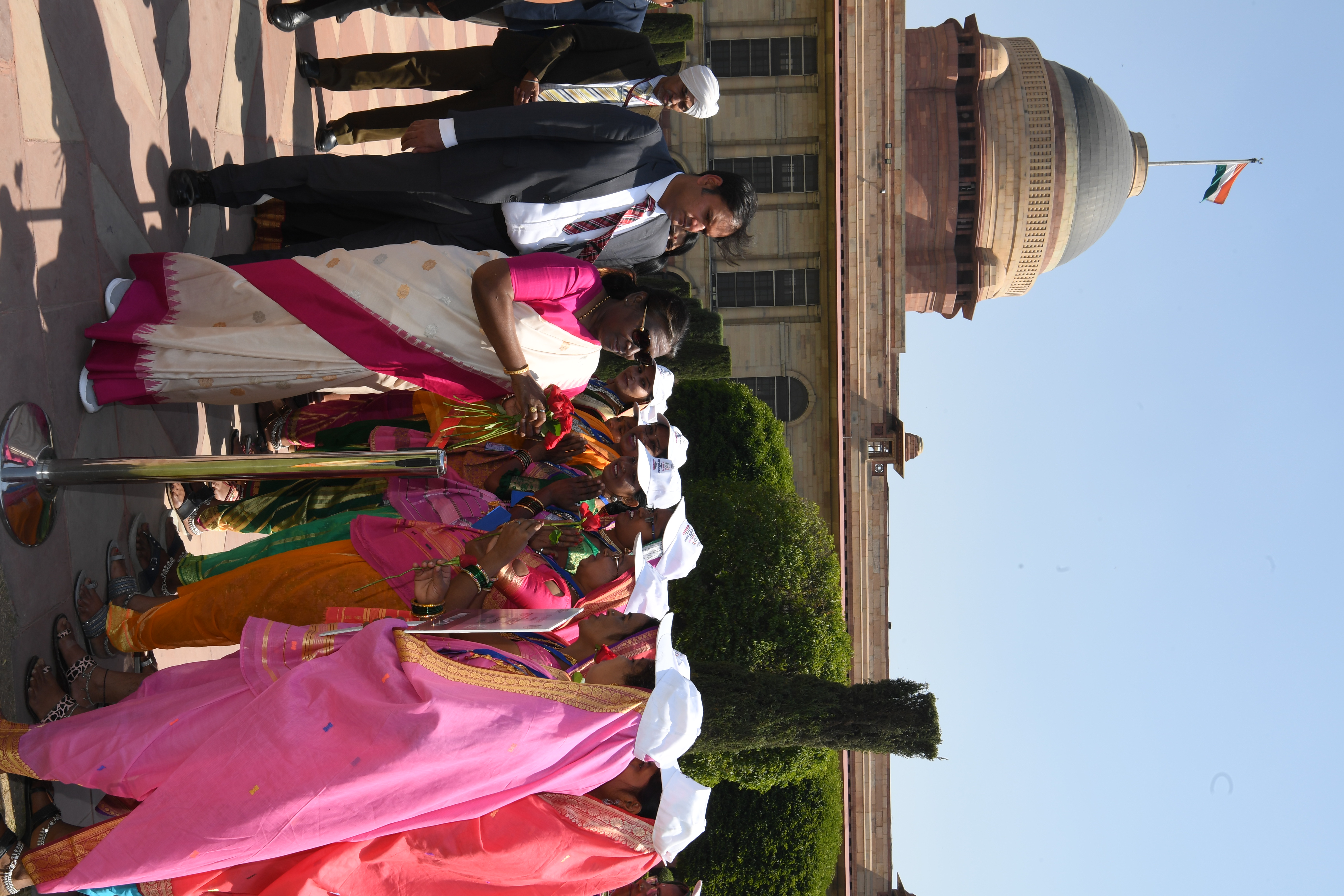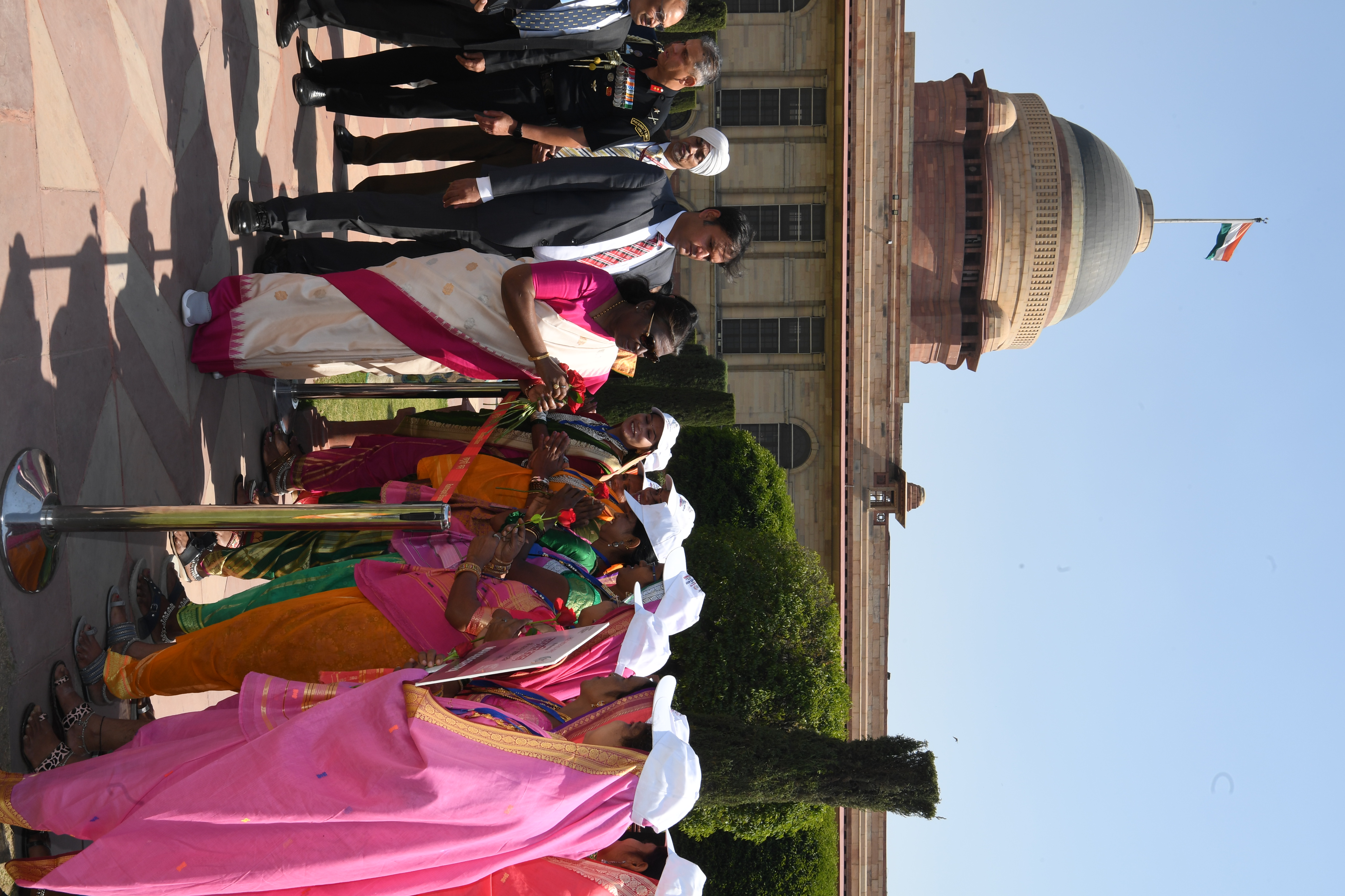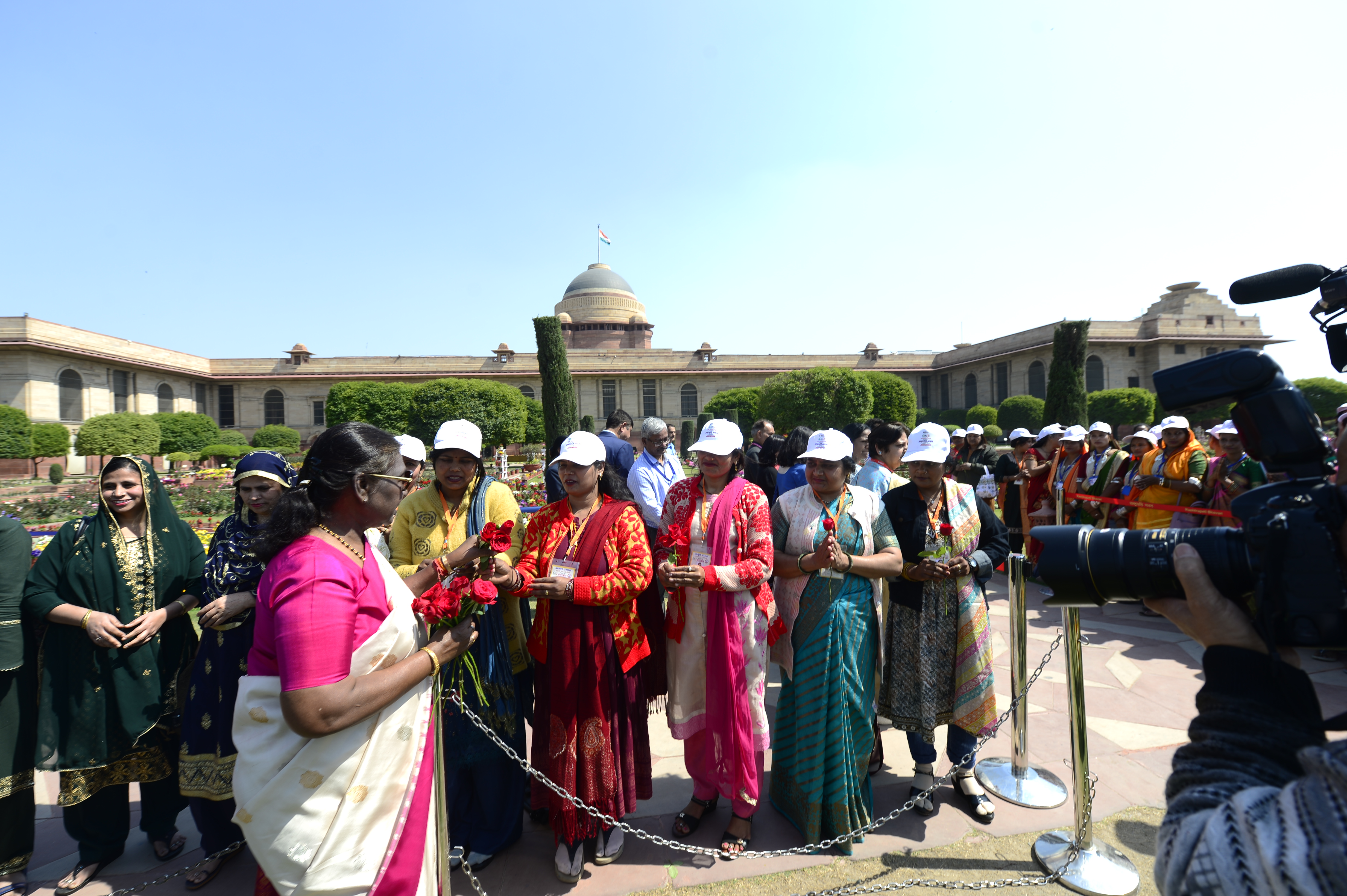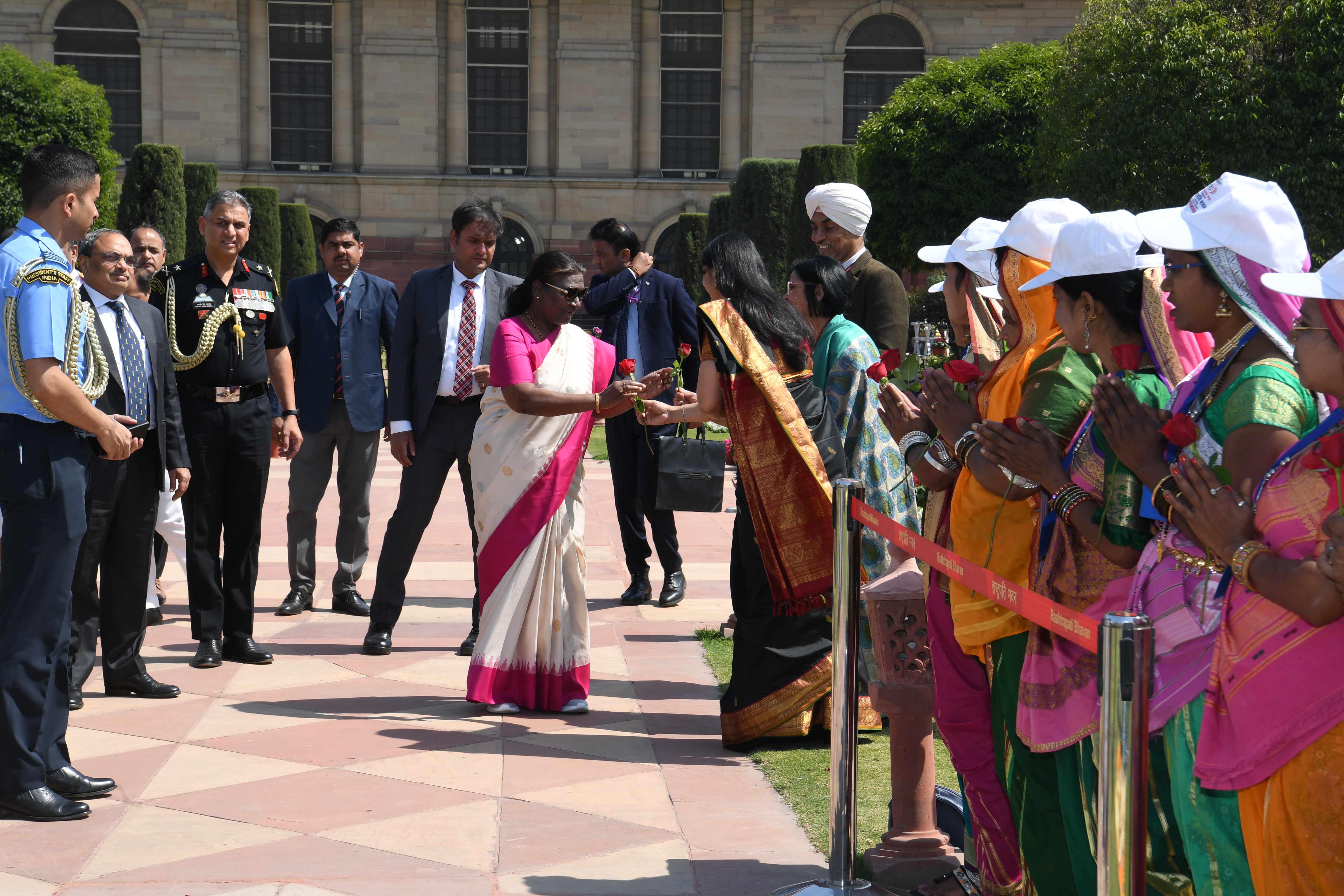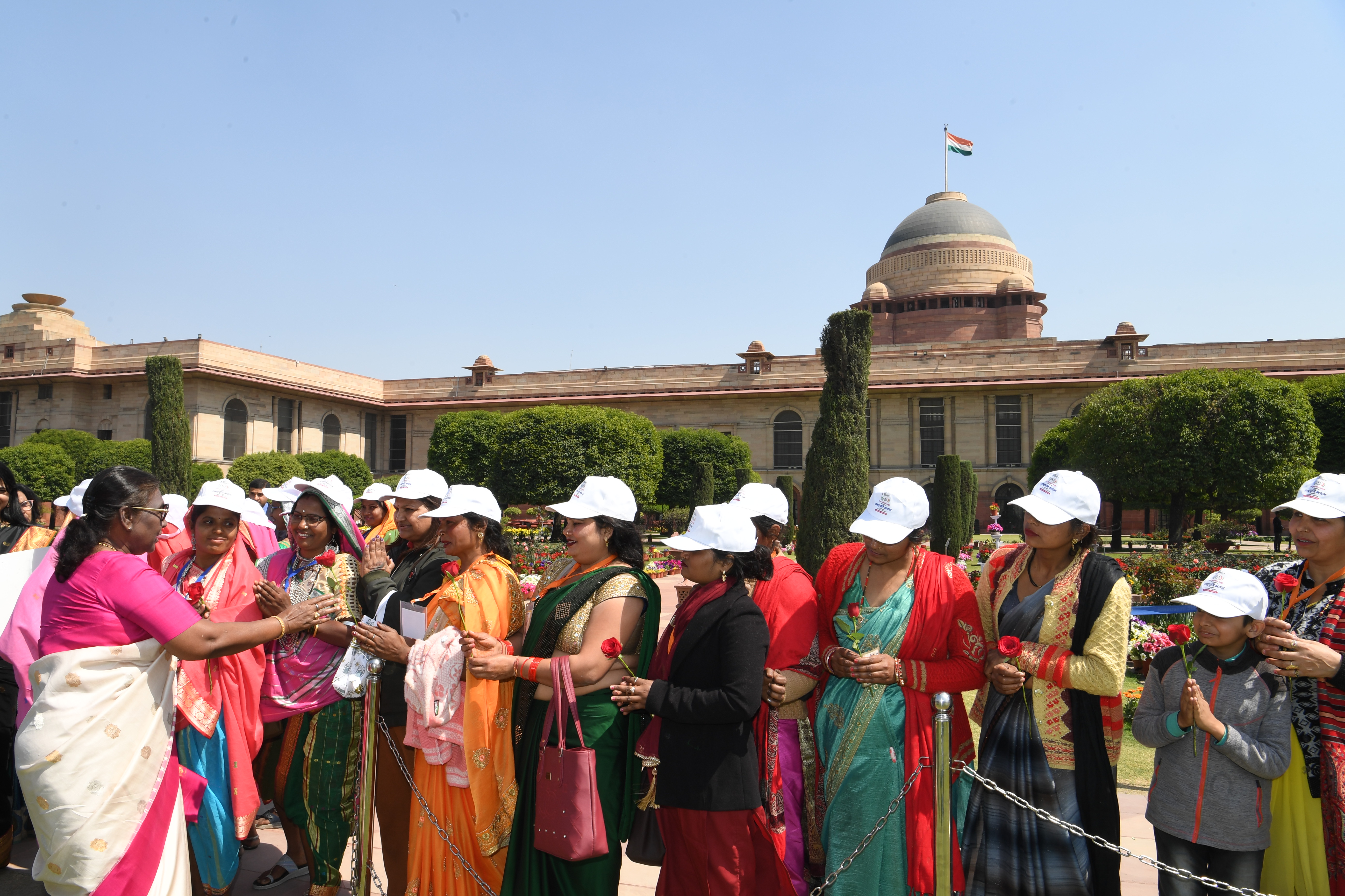 | Caption: | The President of India, Smt Droupadi Murmu met women visiting Amrit Udyan on the day reserved for the special category of Women Tribal Women SHGs-I 08-03-2024 |