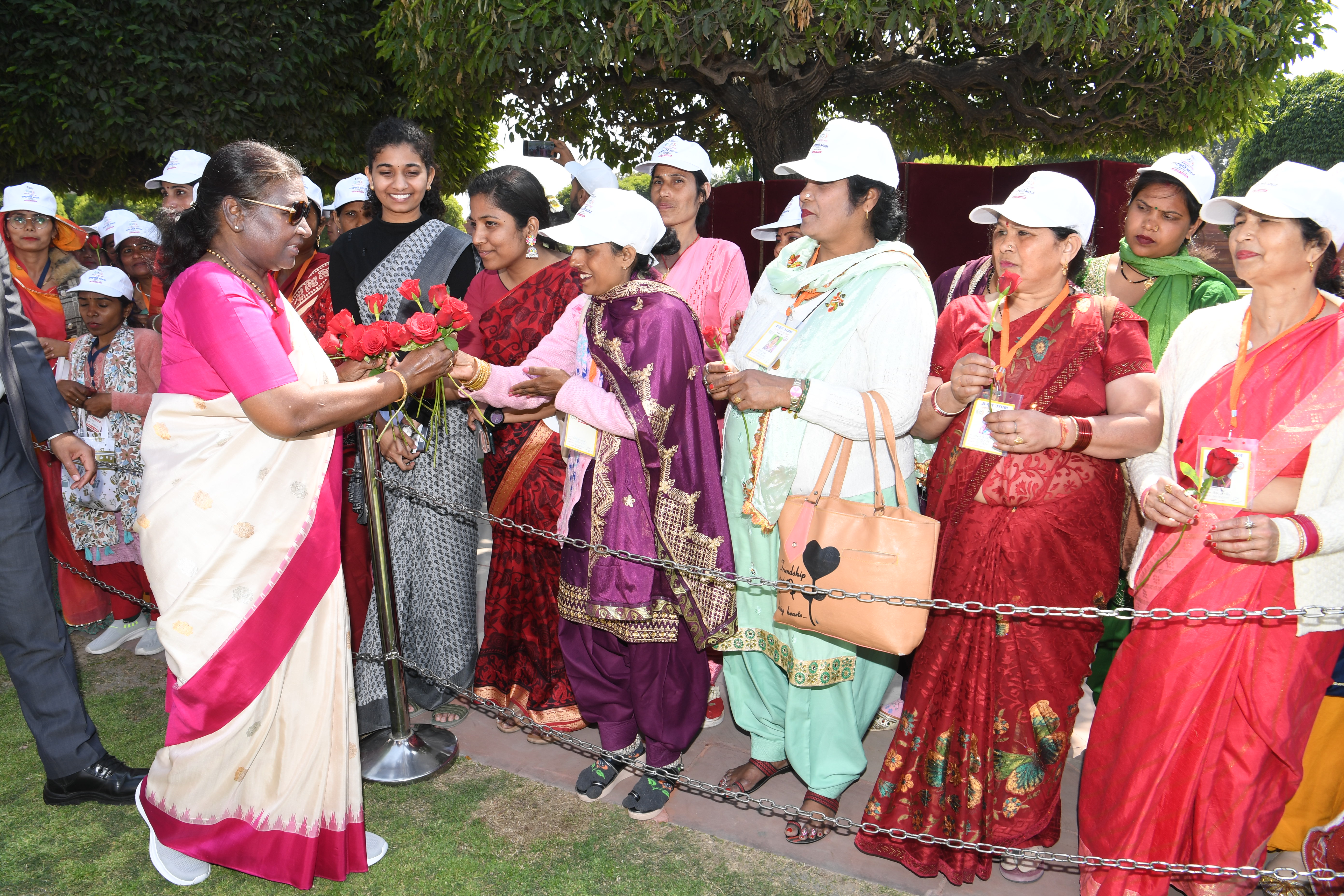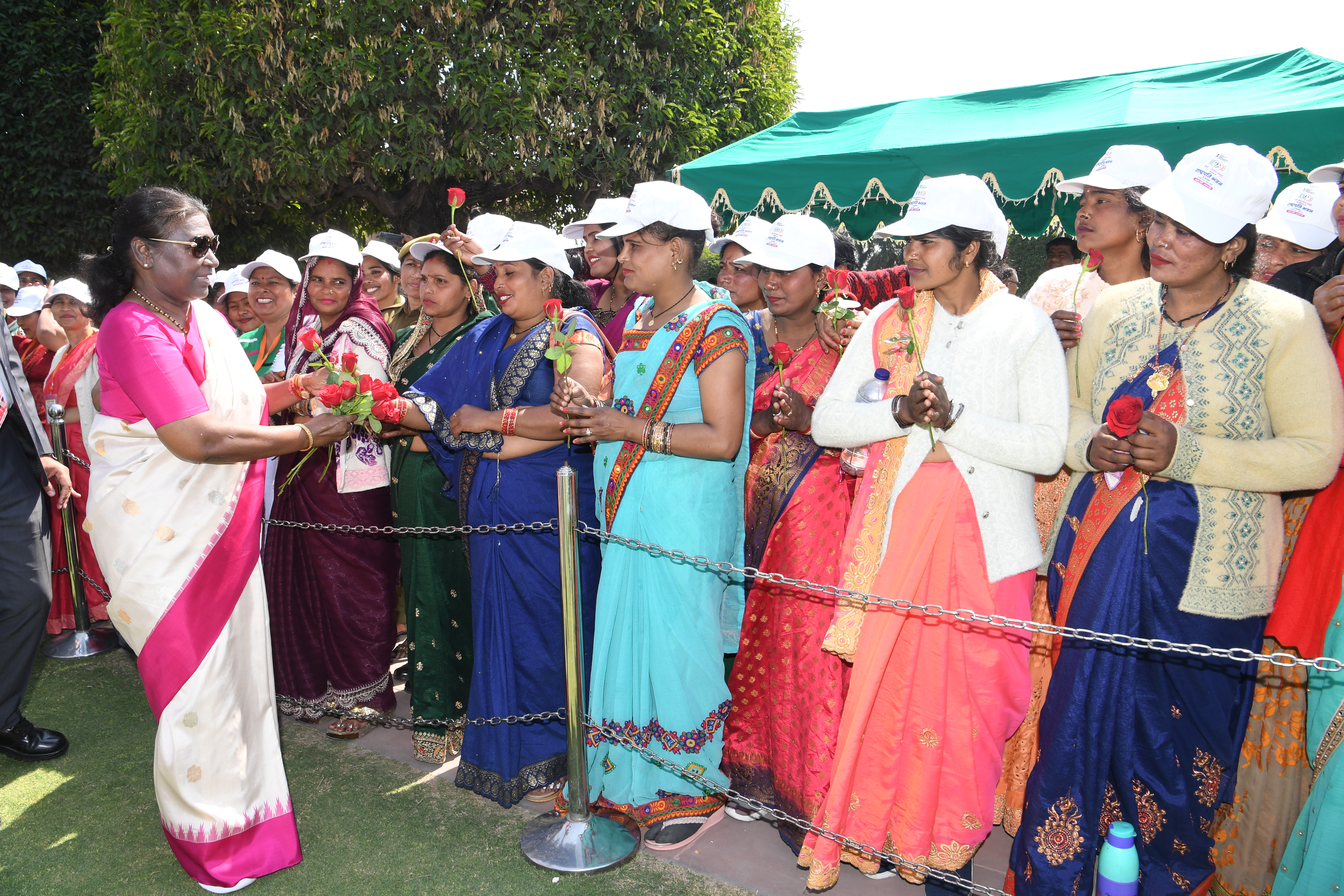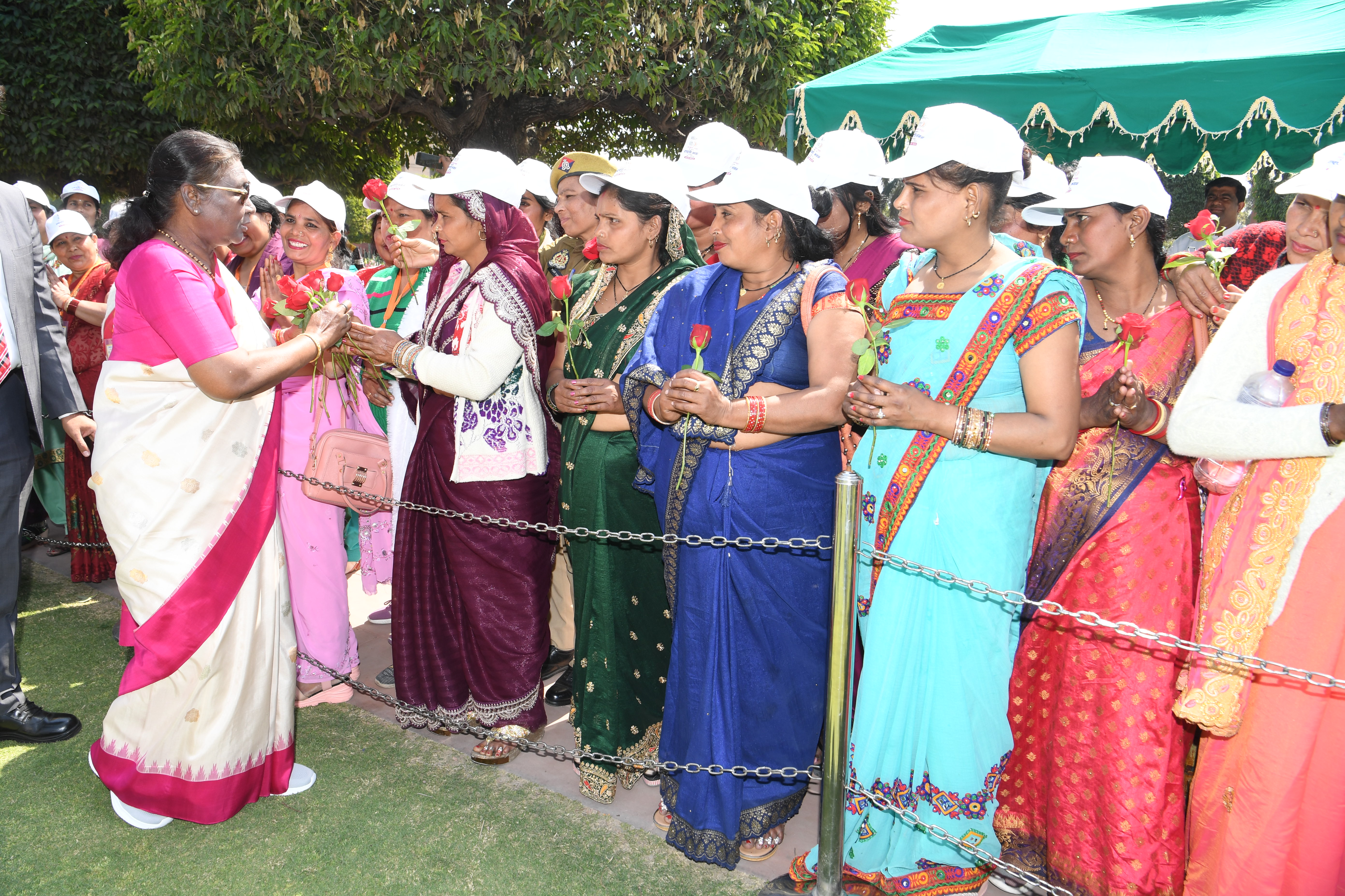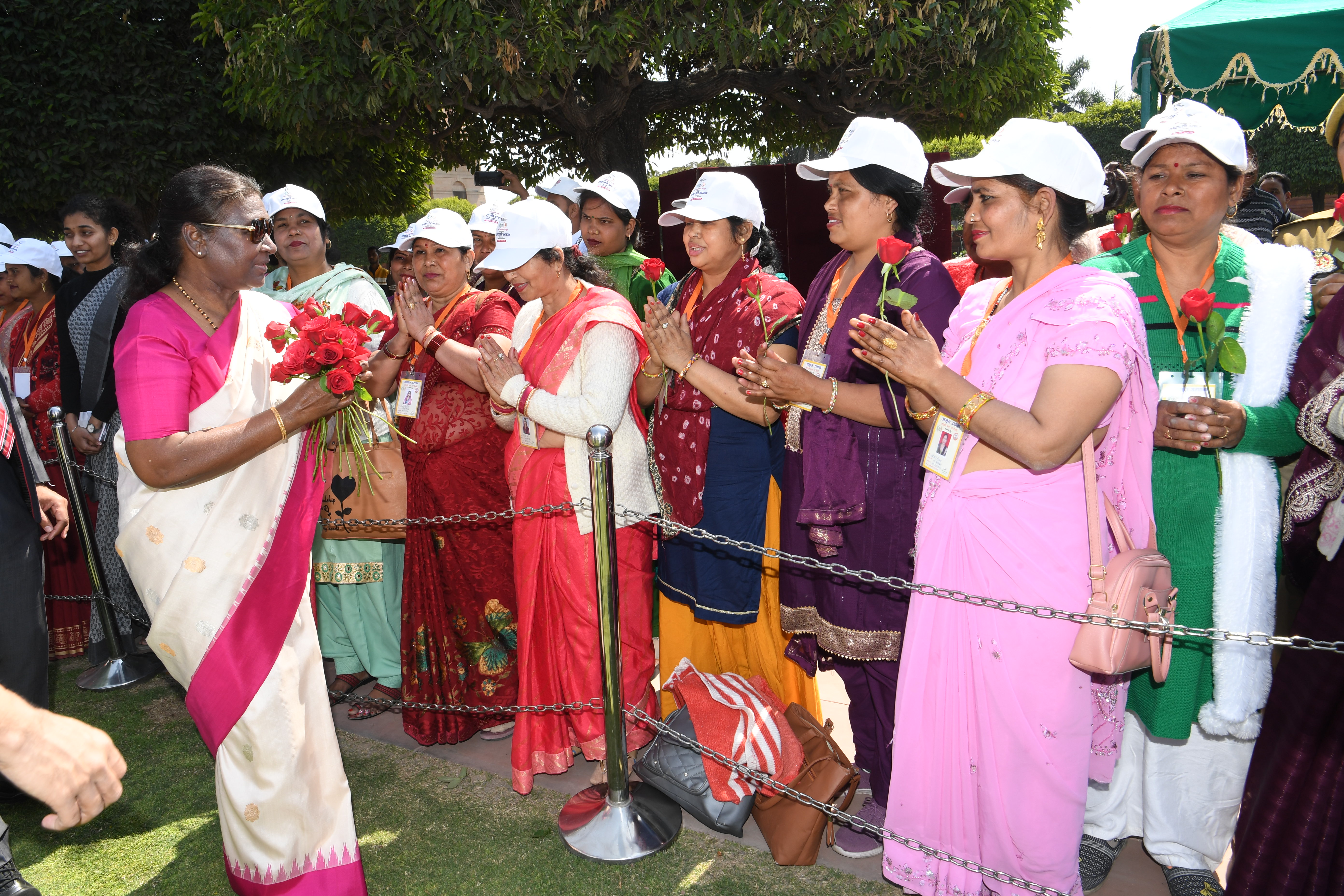 | Caption: | The President of India, Smt Droupadi Murmu met women visiting Amrit Udyan on the day reserved for the special category of Women Tribal Women SHGs-I 08-03-2024 |