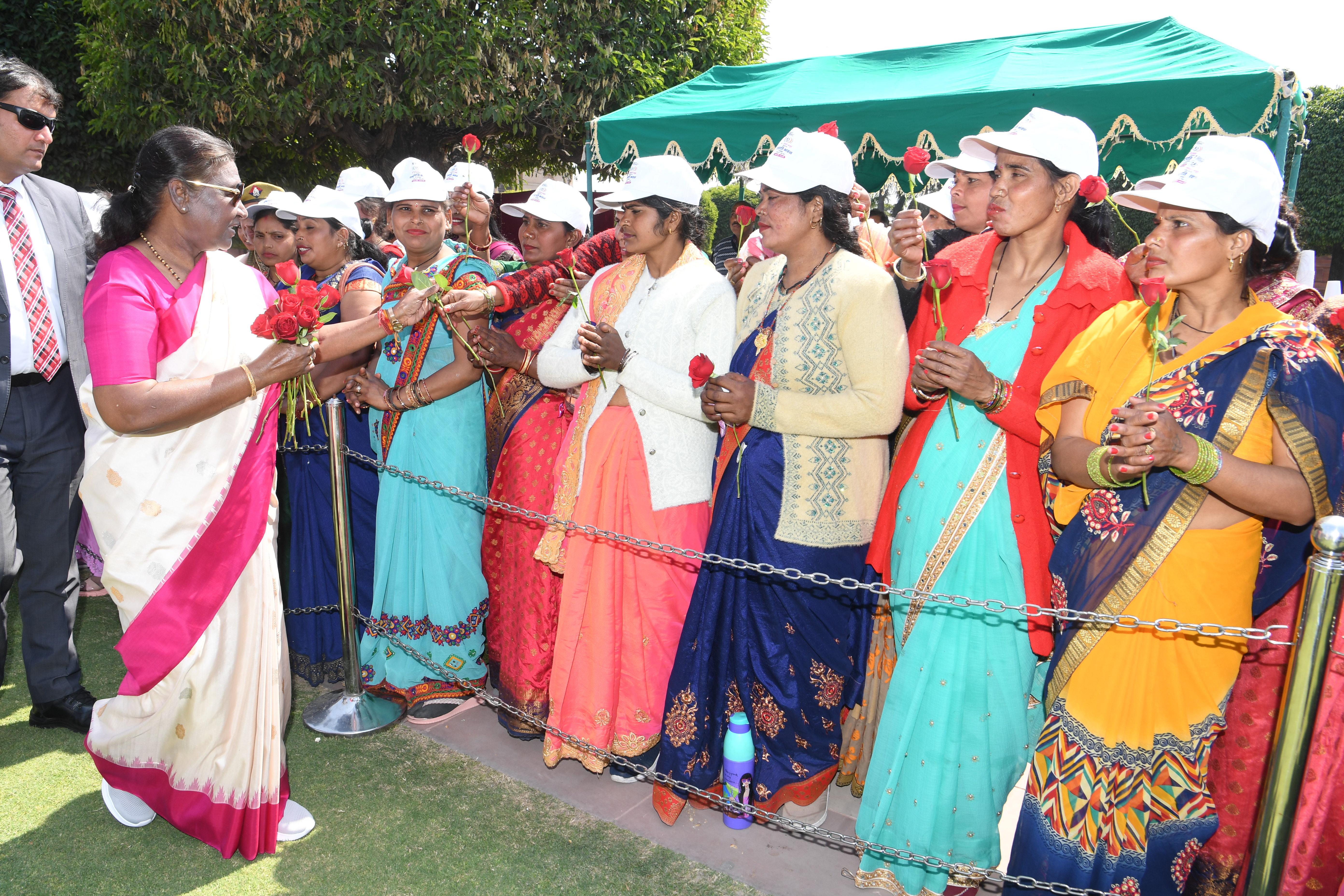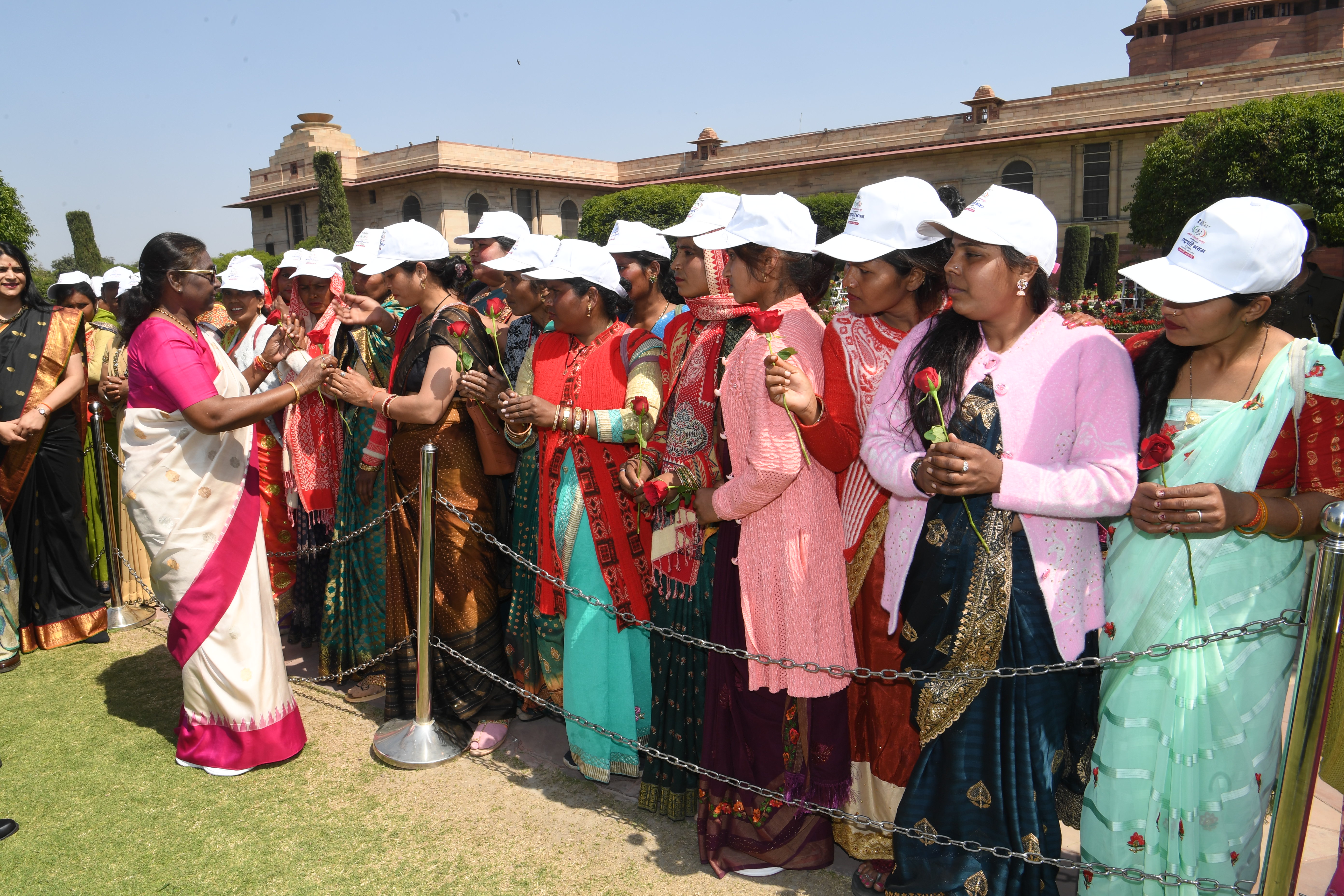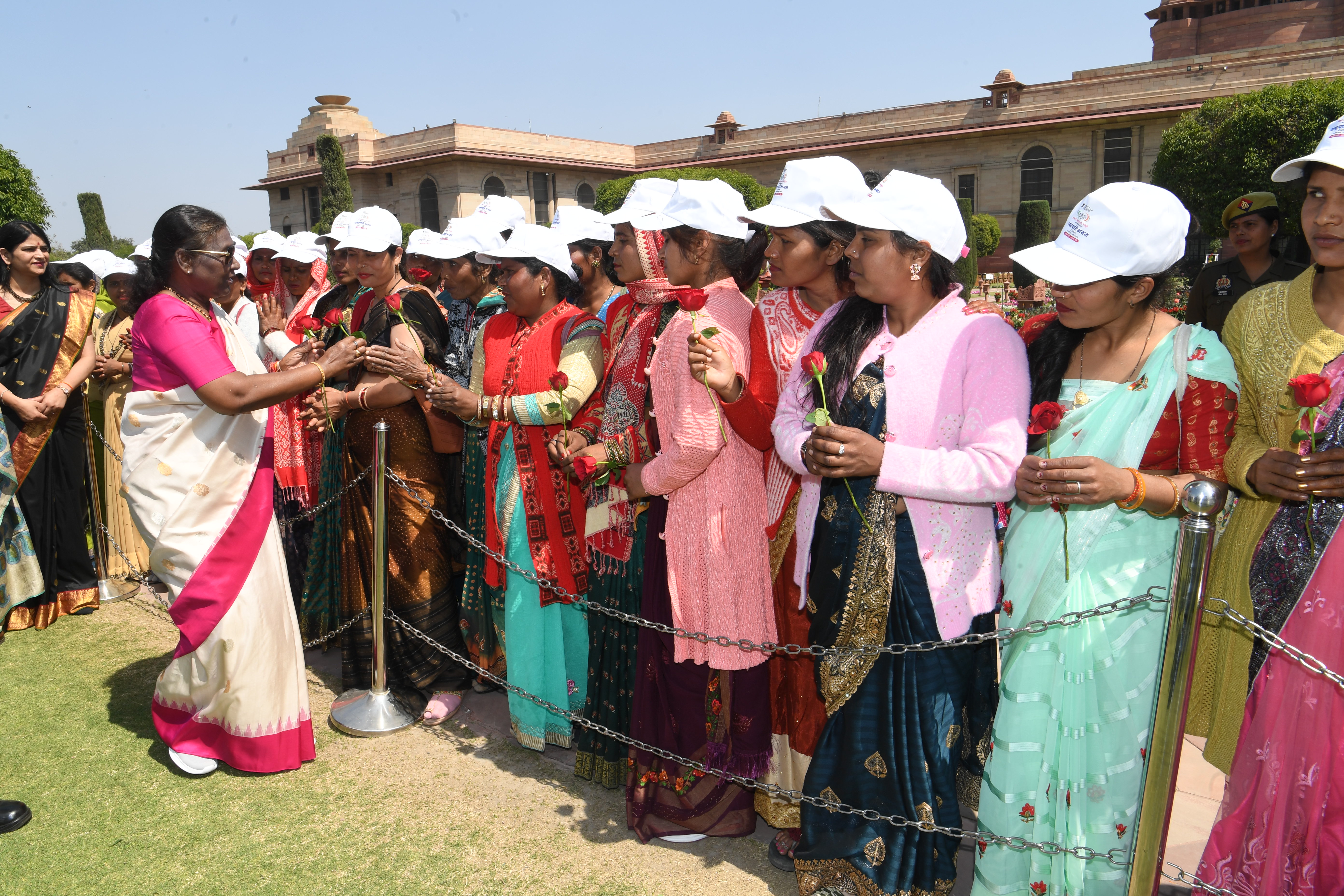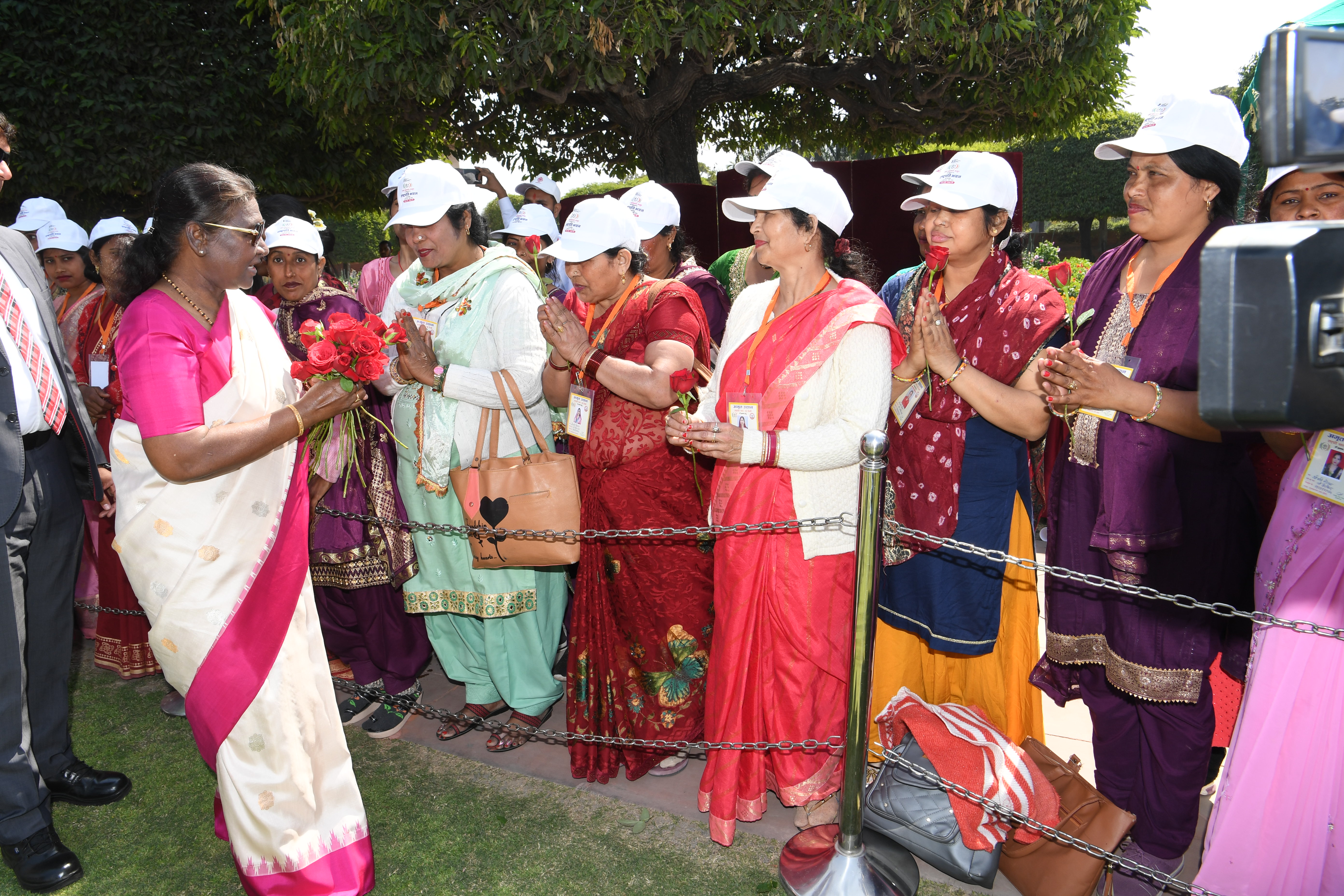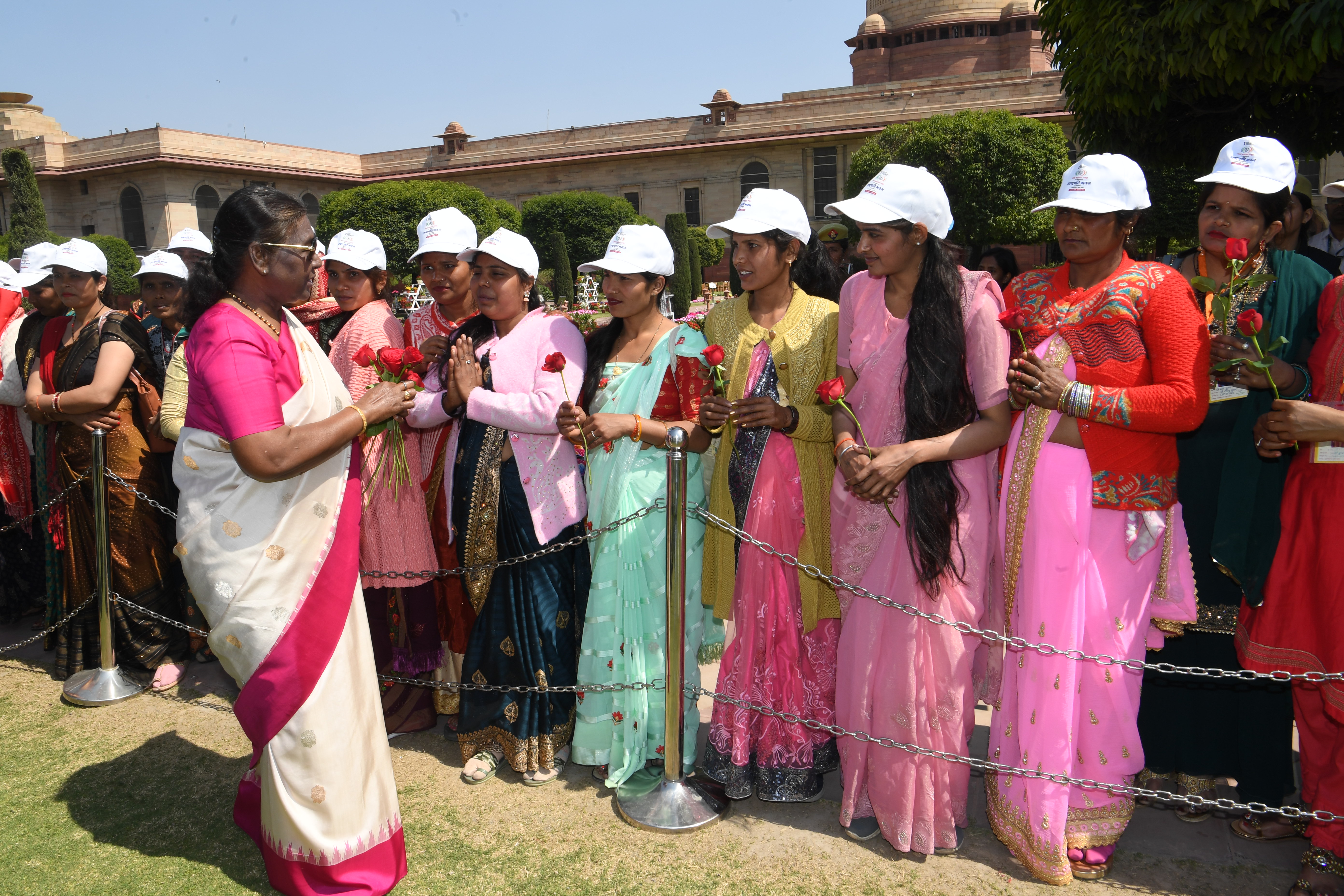 | Caption: | The President of India, Smt Droupadi Murmu met women visiting Amrit Udyan on the day reserved for the special category of Women Tribal Women SHGs-I 08-03-2024 |