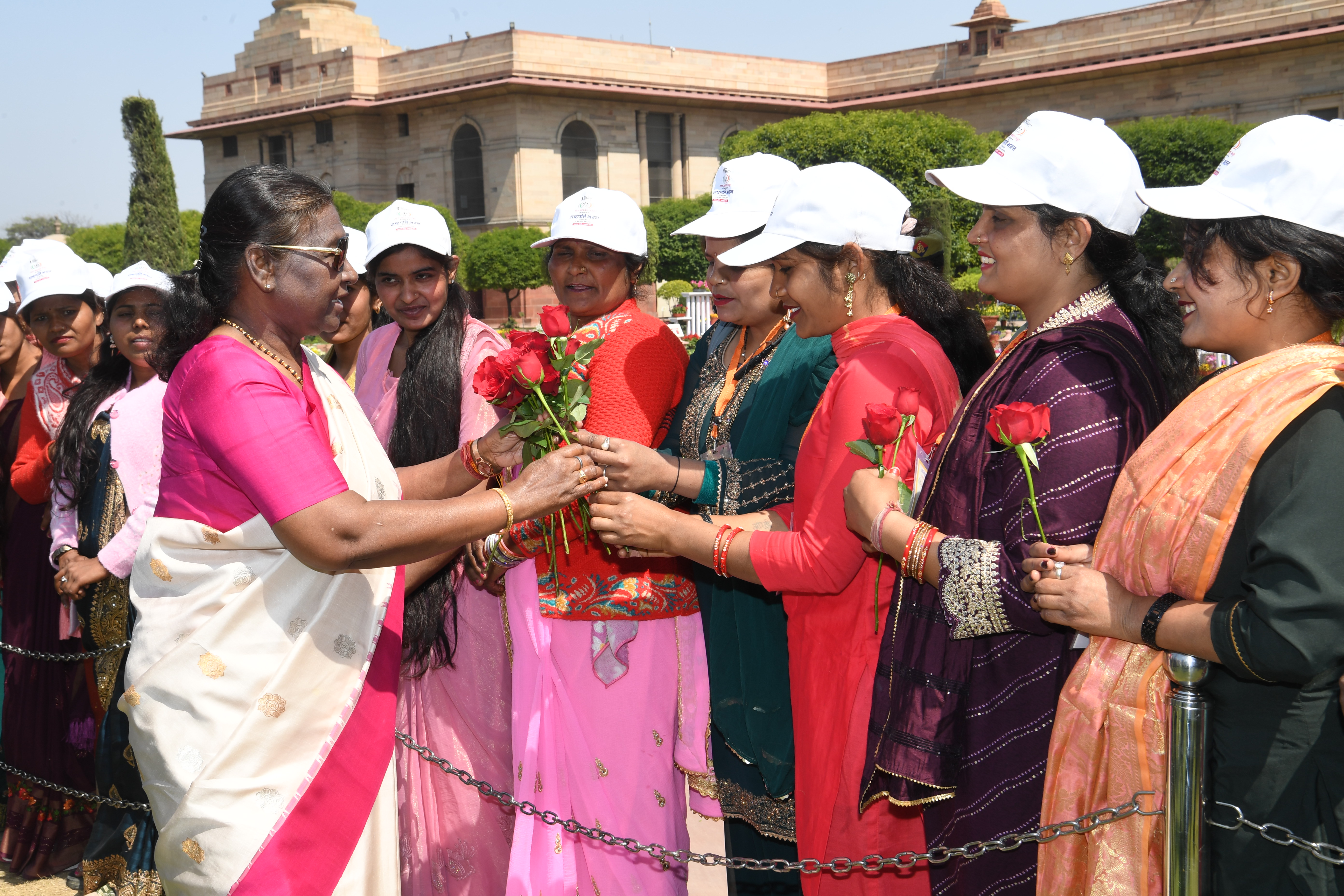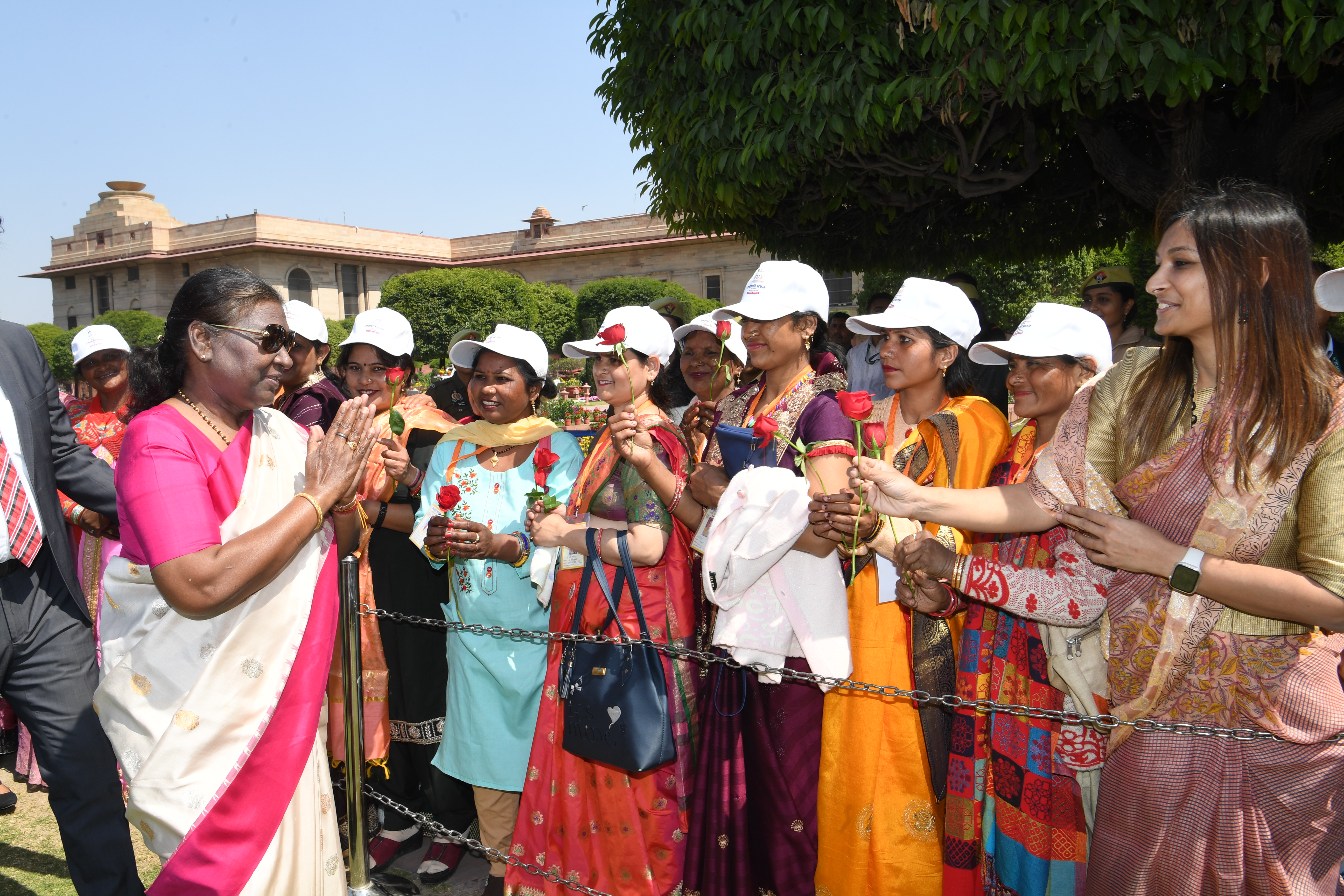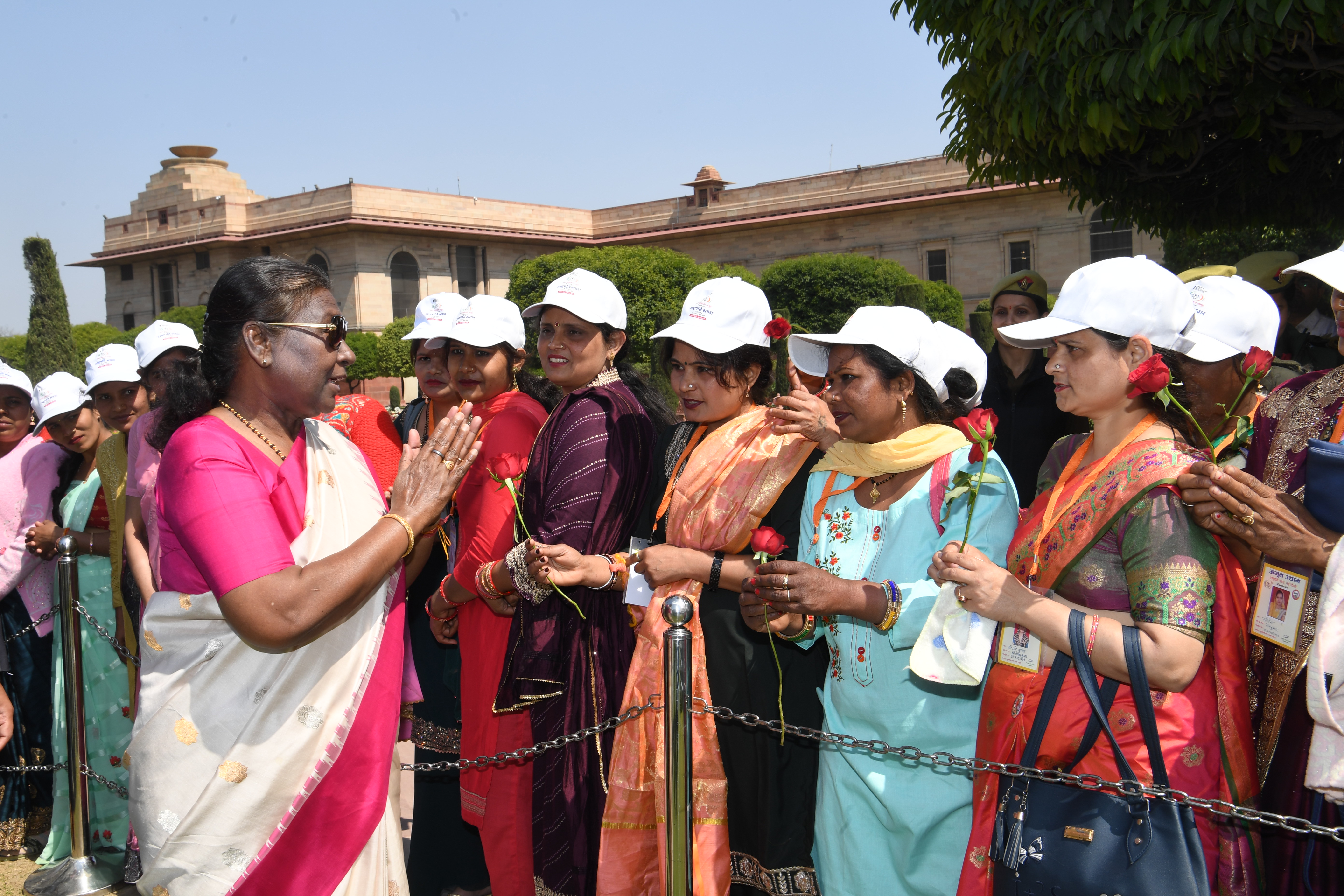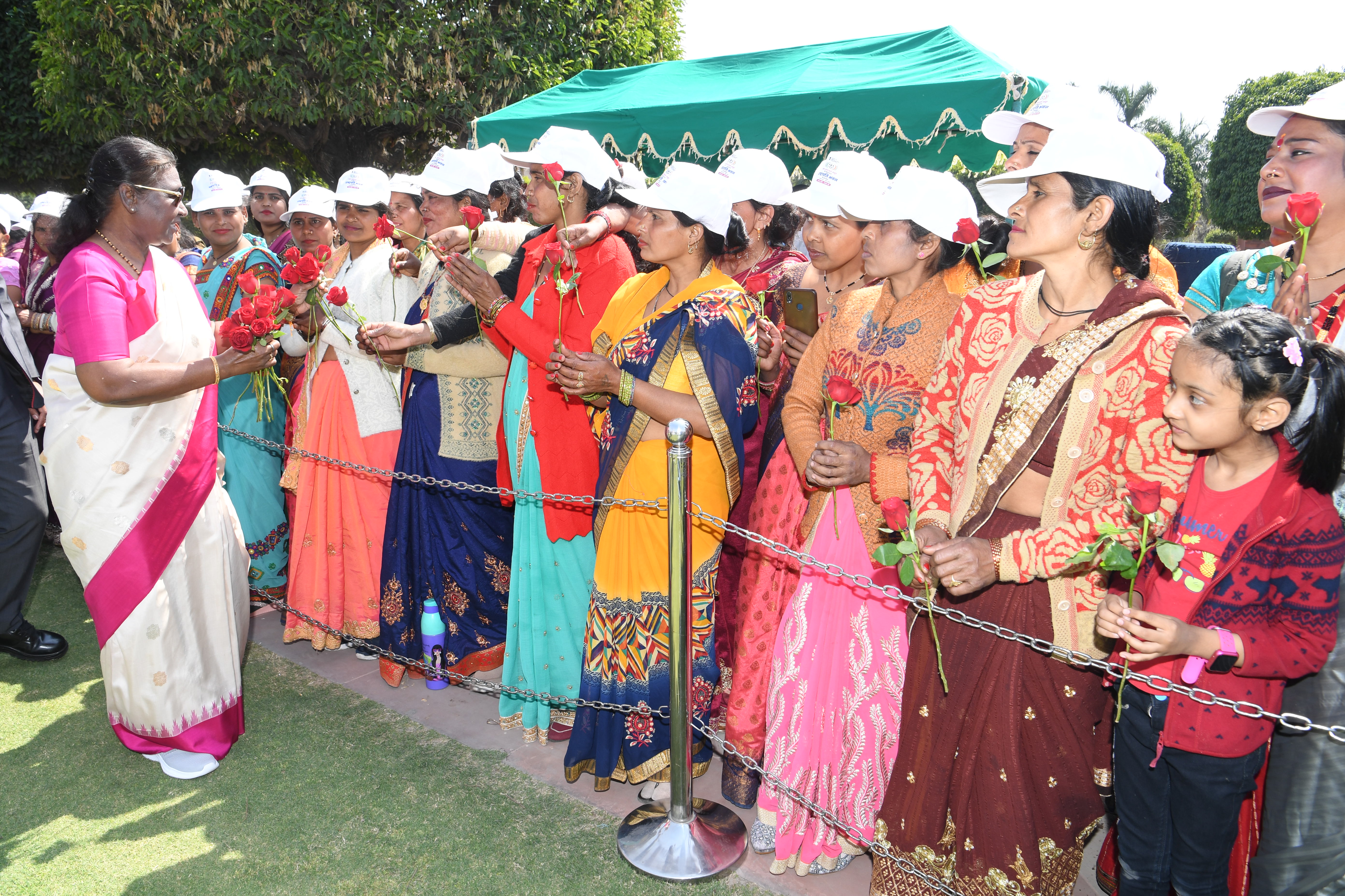 | Caption: | The President of India, Smt Droupadi Murmu met women visiting Amrit Udyan on the day reserved for the special category of Women Tribal Women SHGs-I 08-03-2024 |