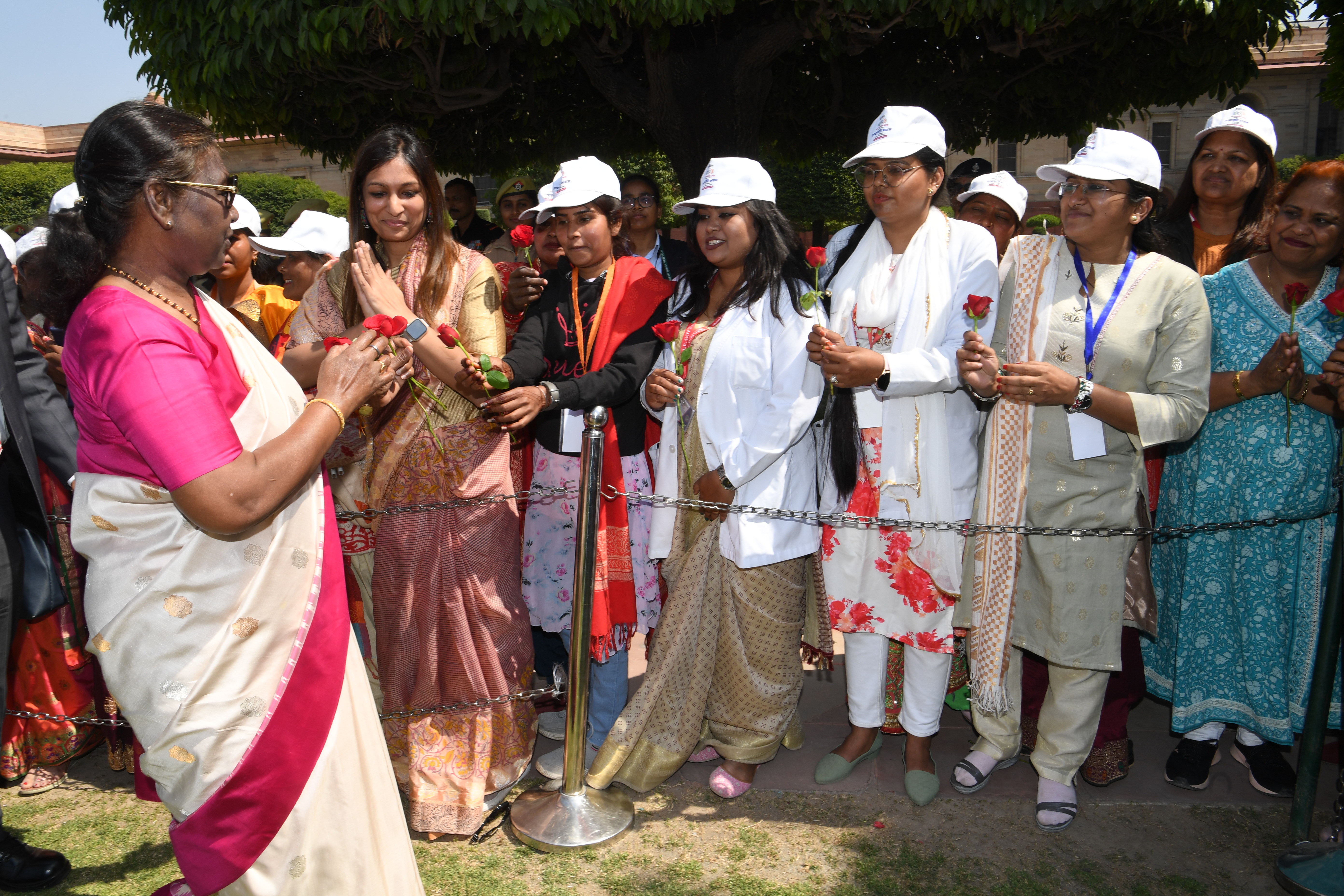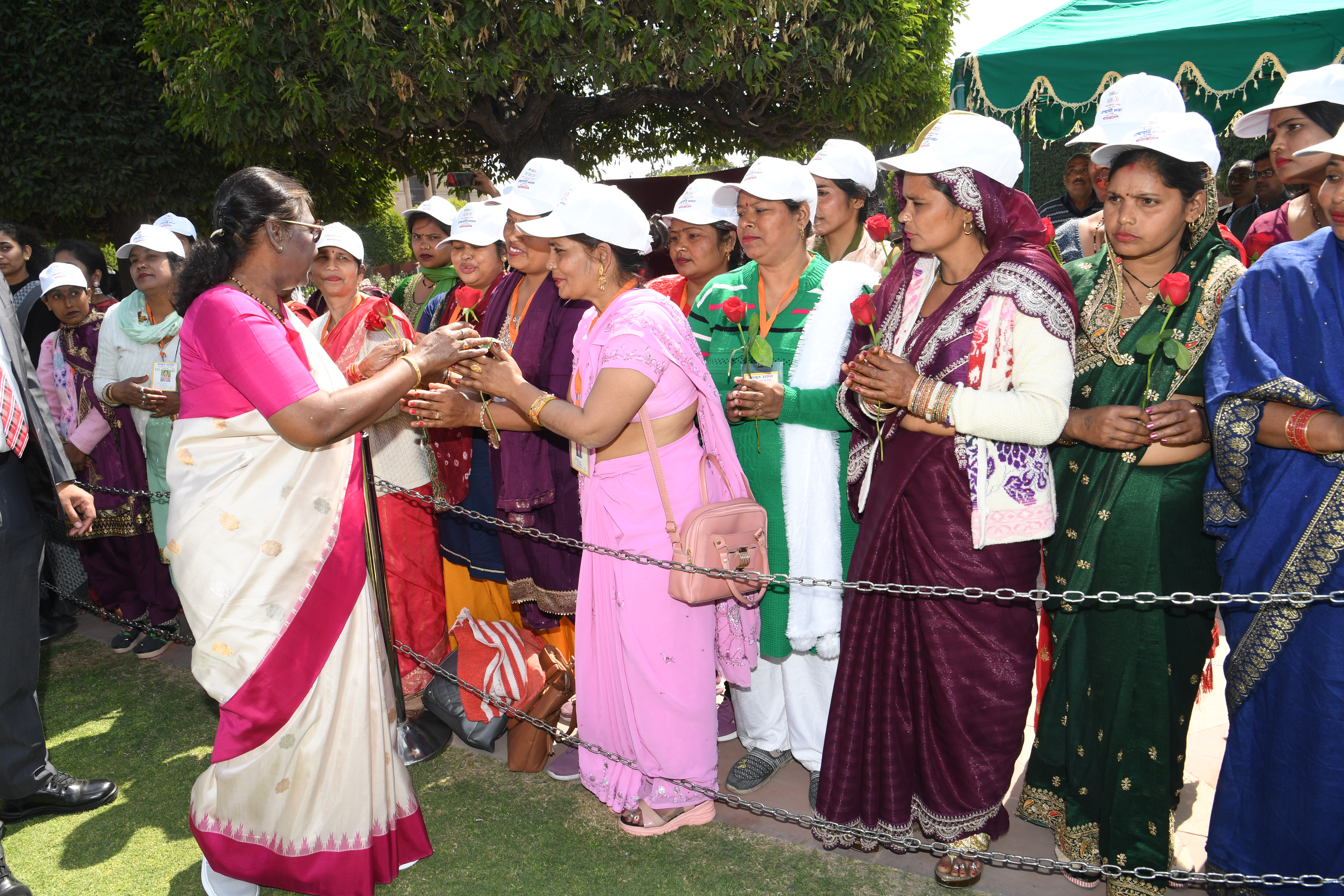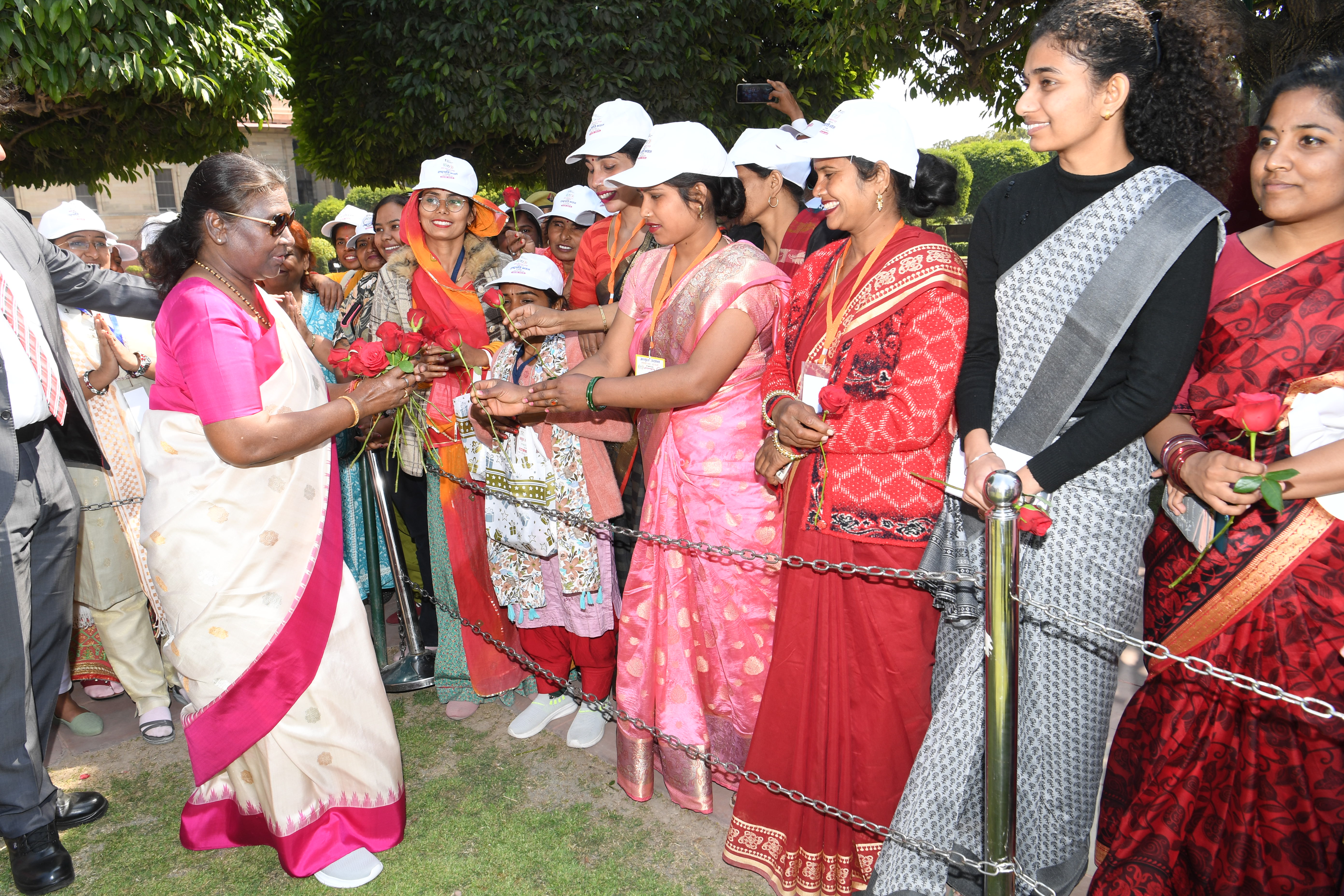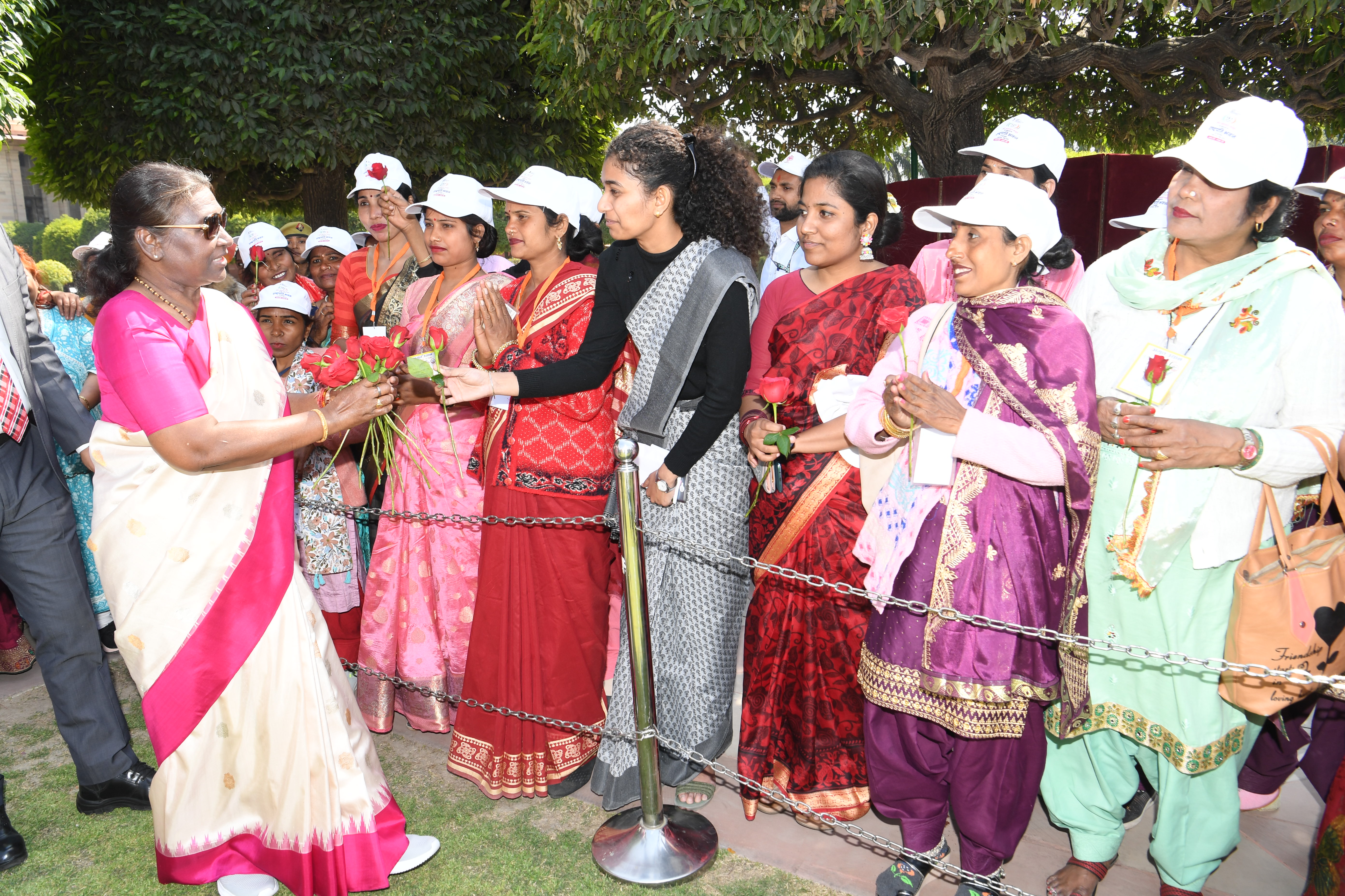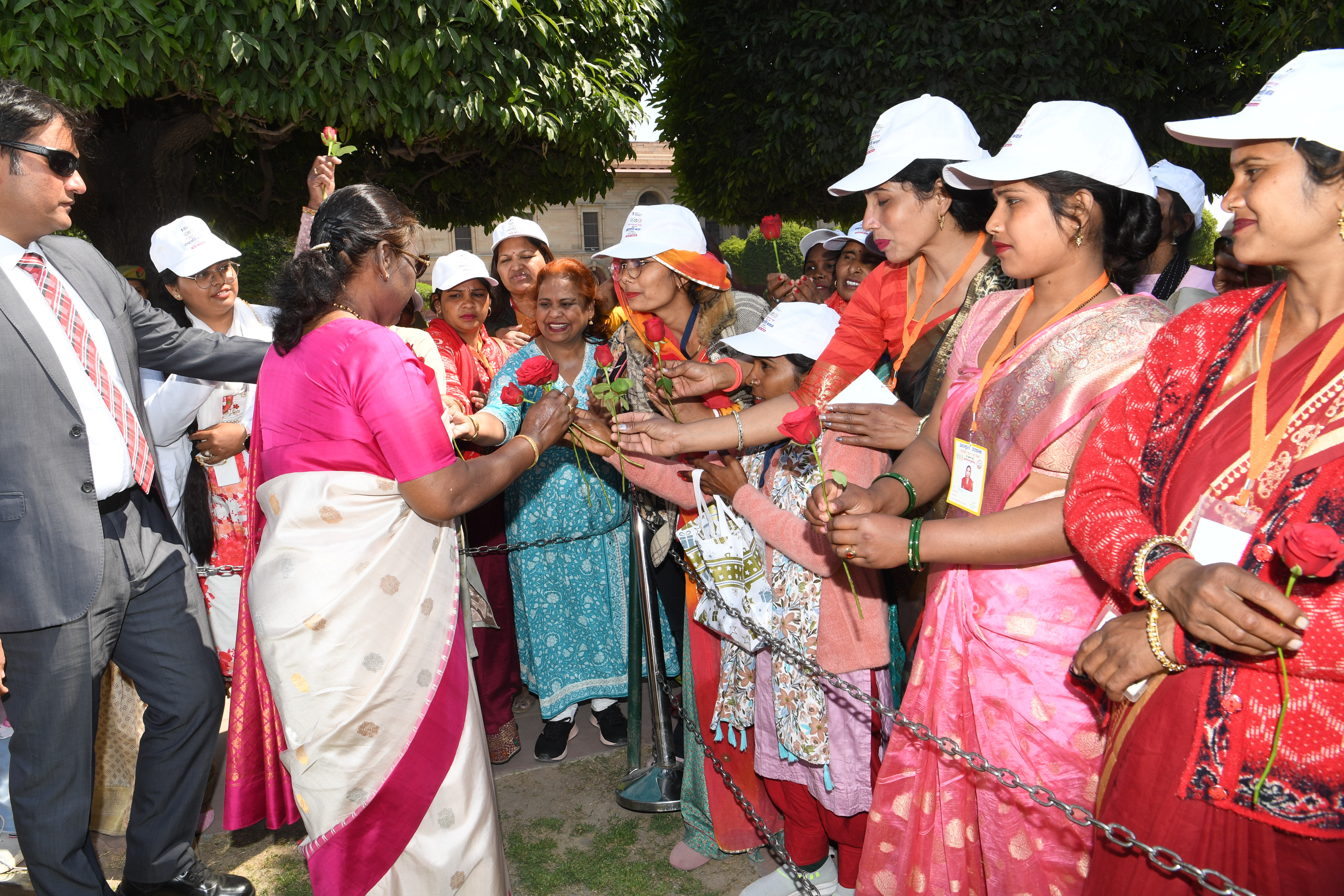 | Caption: | The President of India, Smt Droupadi Murmu met women visiting Amrit Udyan on the day reserved for the special category of Women Tribal Women SHGs-I 08-03-2024 |