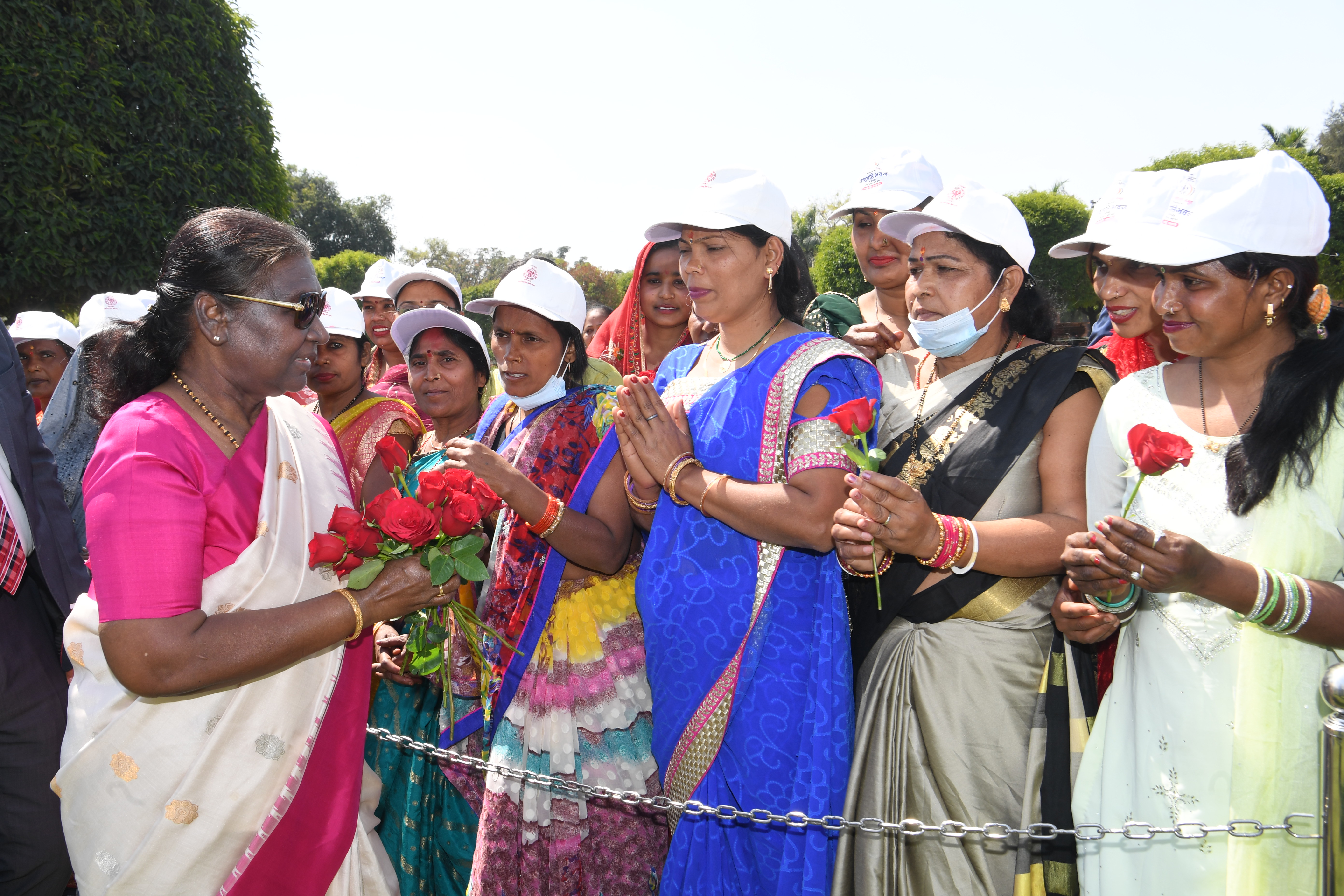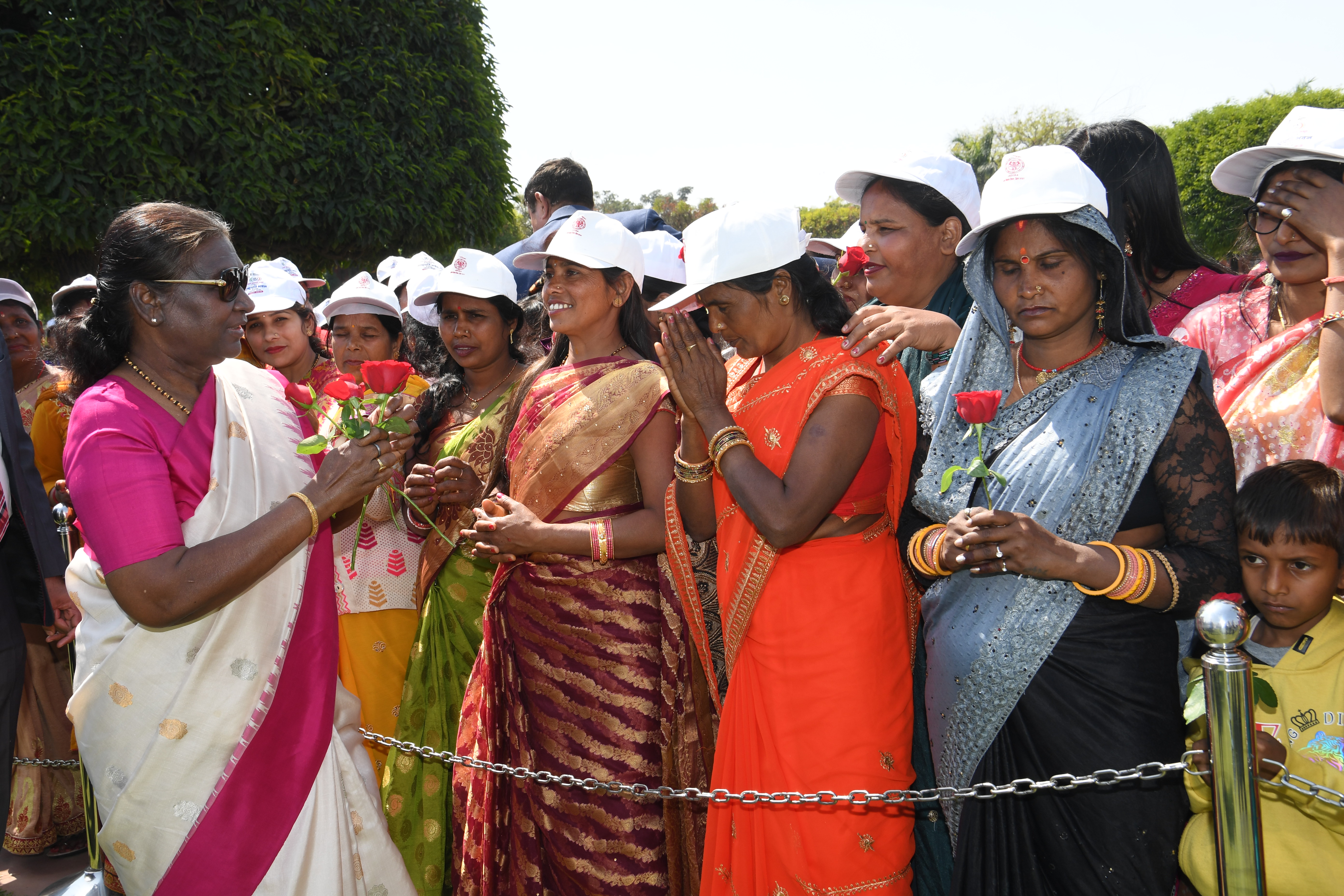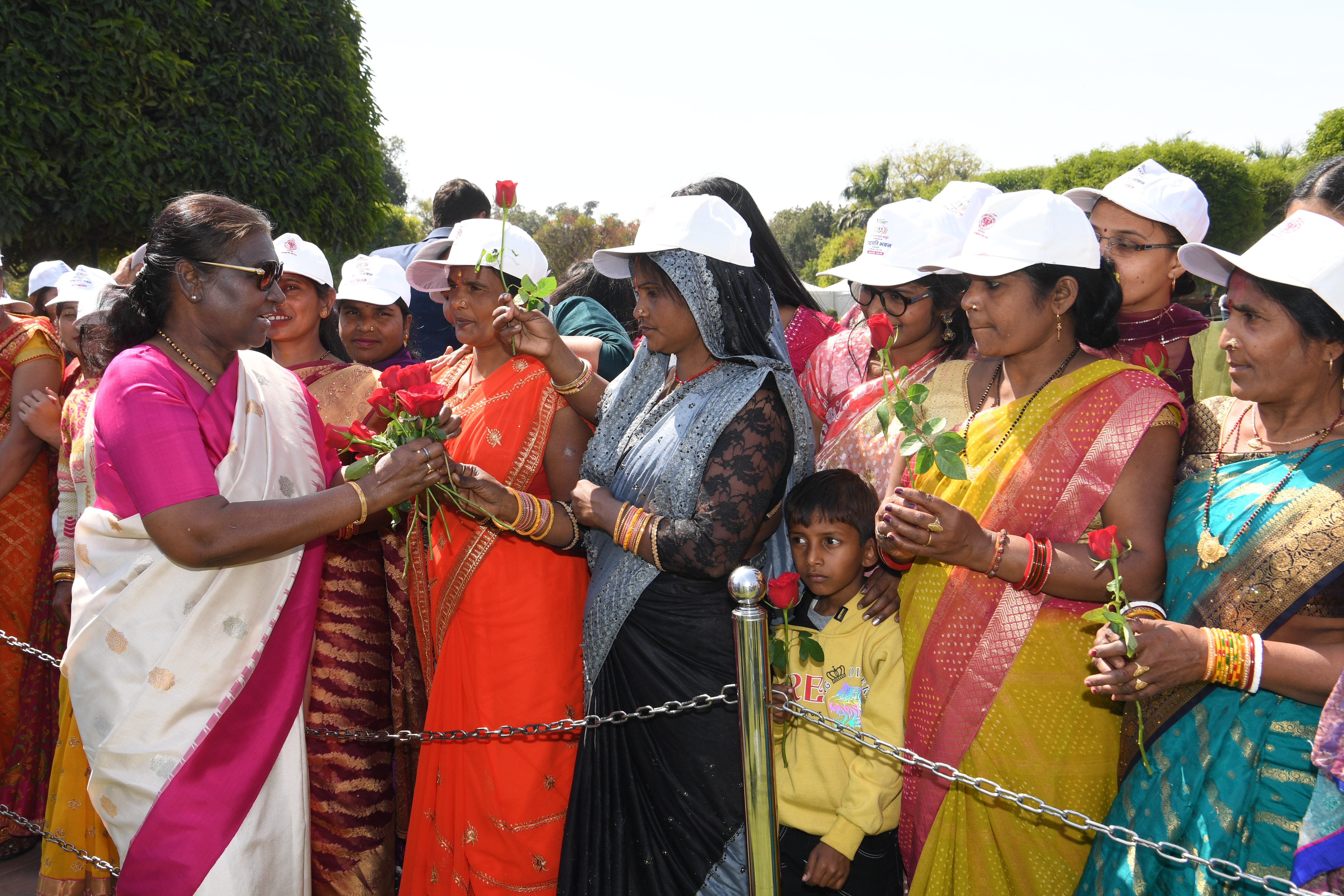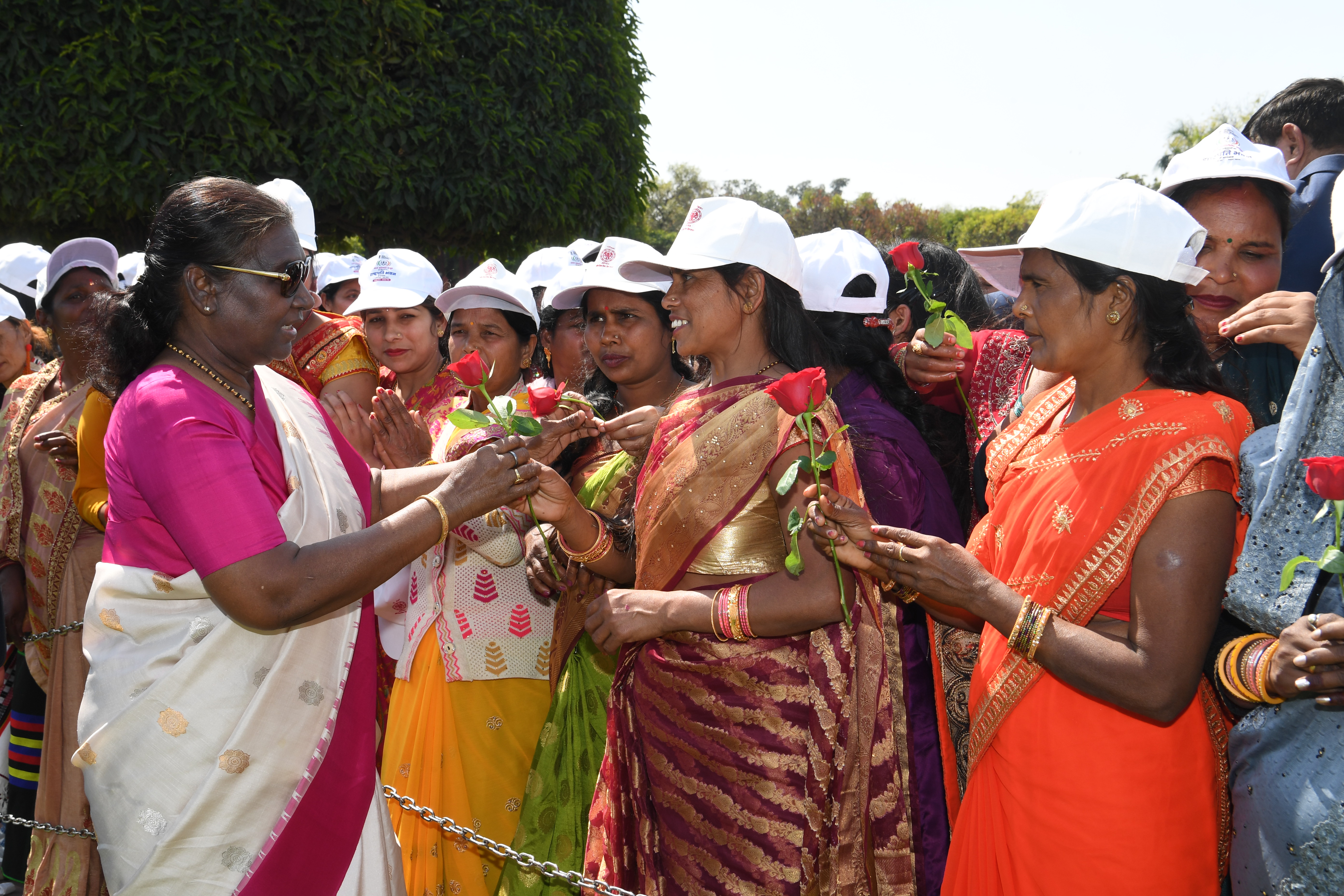 | Caption: | The President of India, Smt Droupadi Murmu met women visiting Amrit Udyan on the day reserved for the special category of Women Tribal Women SHGs-I 08-03-2024 |