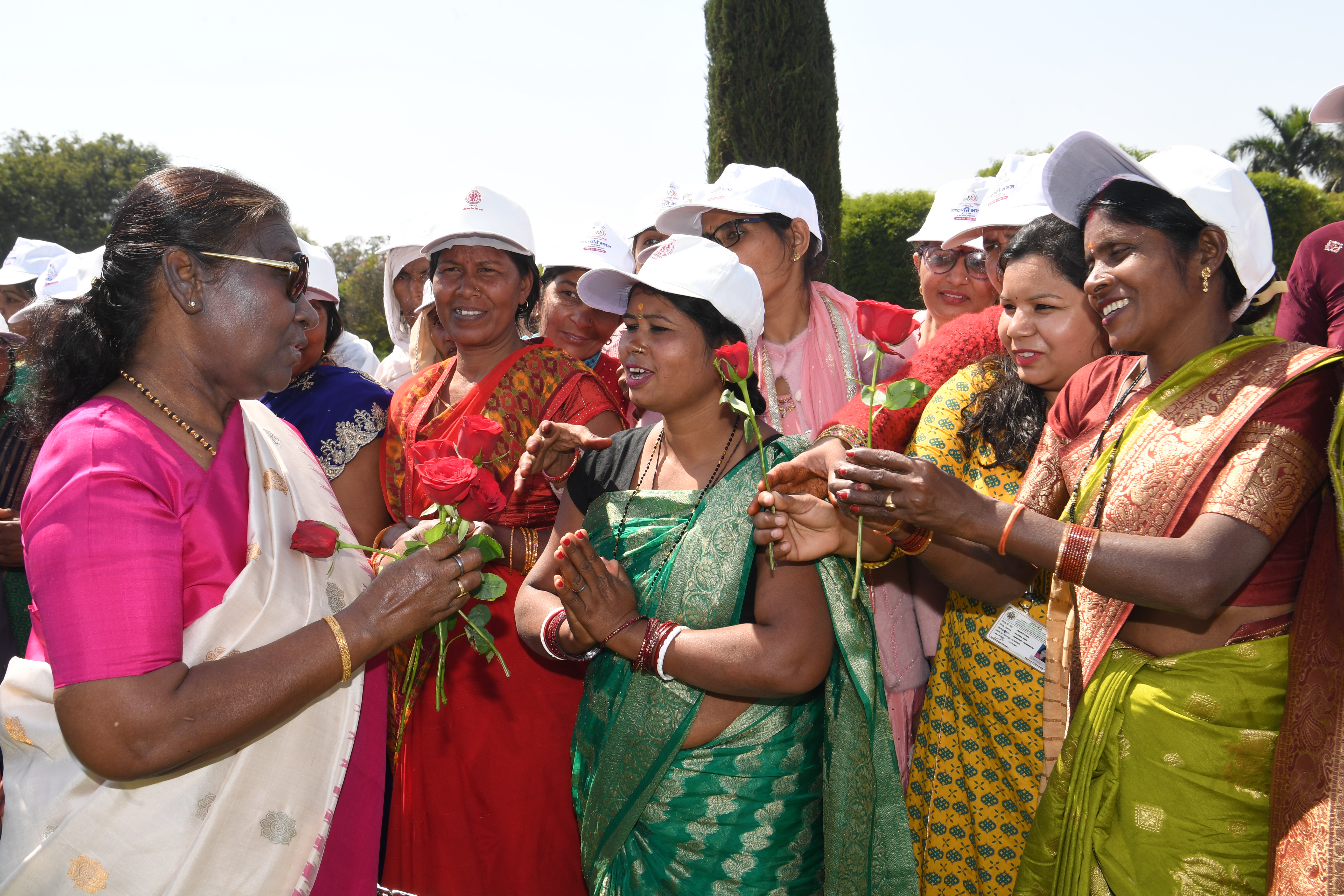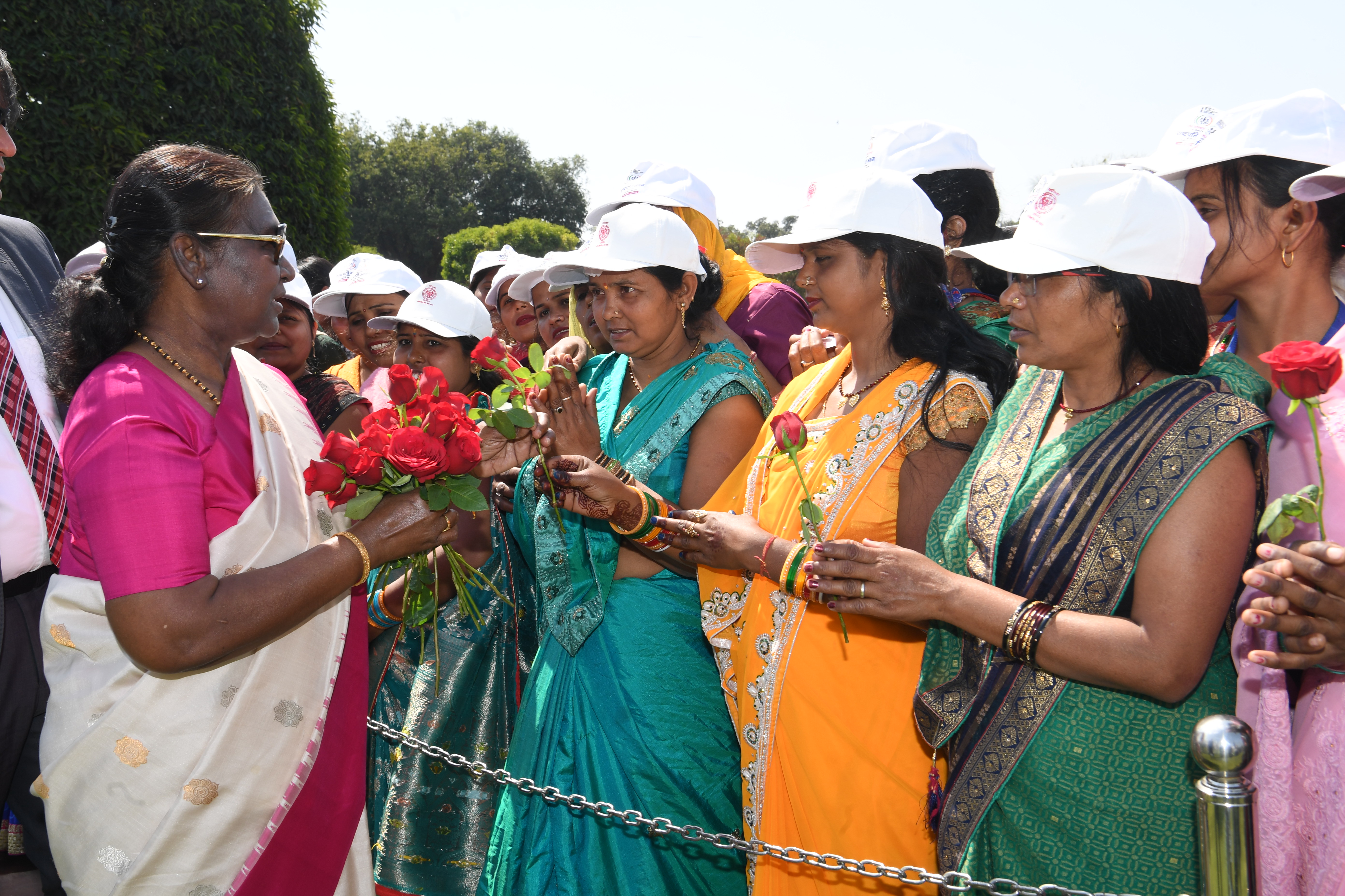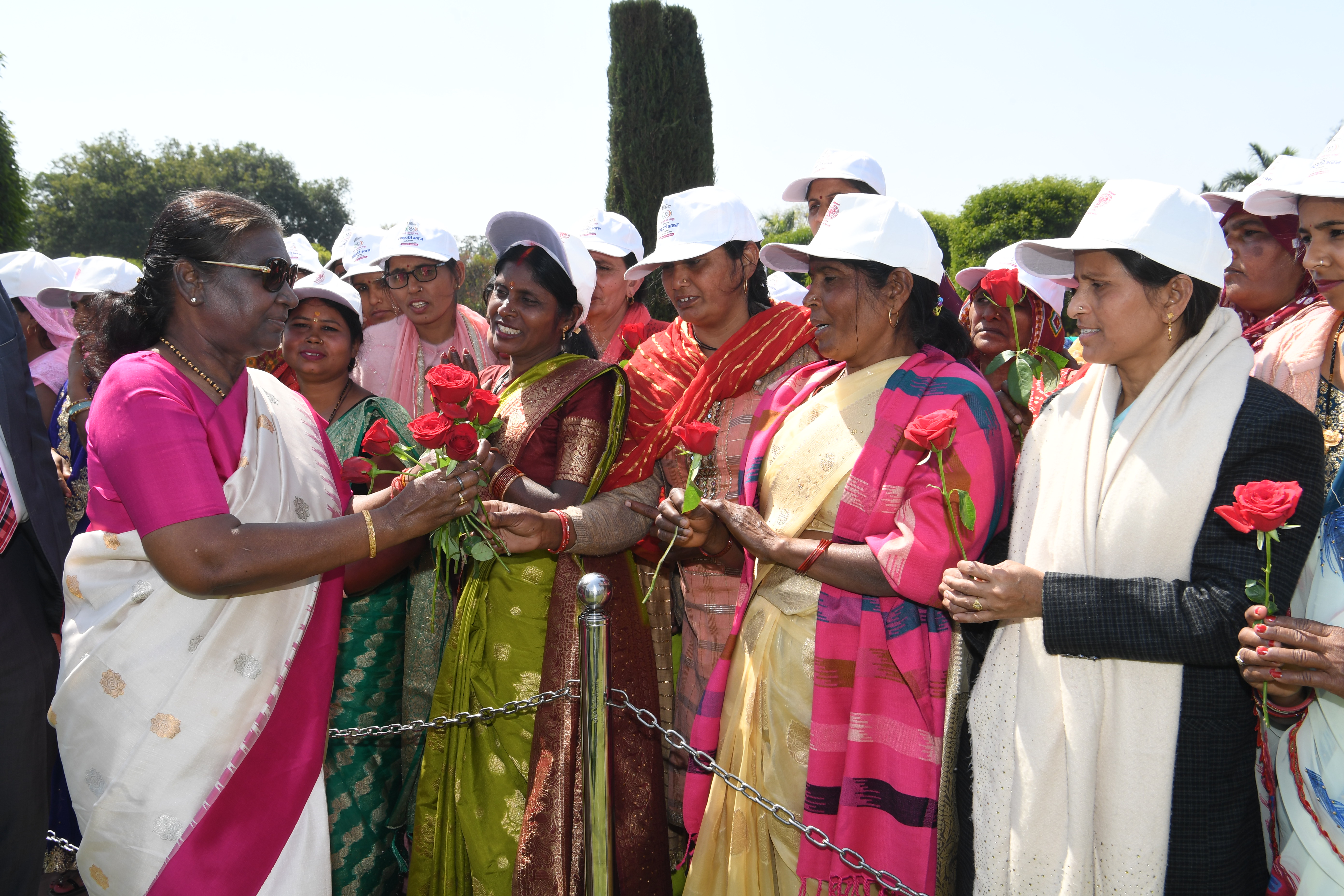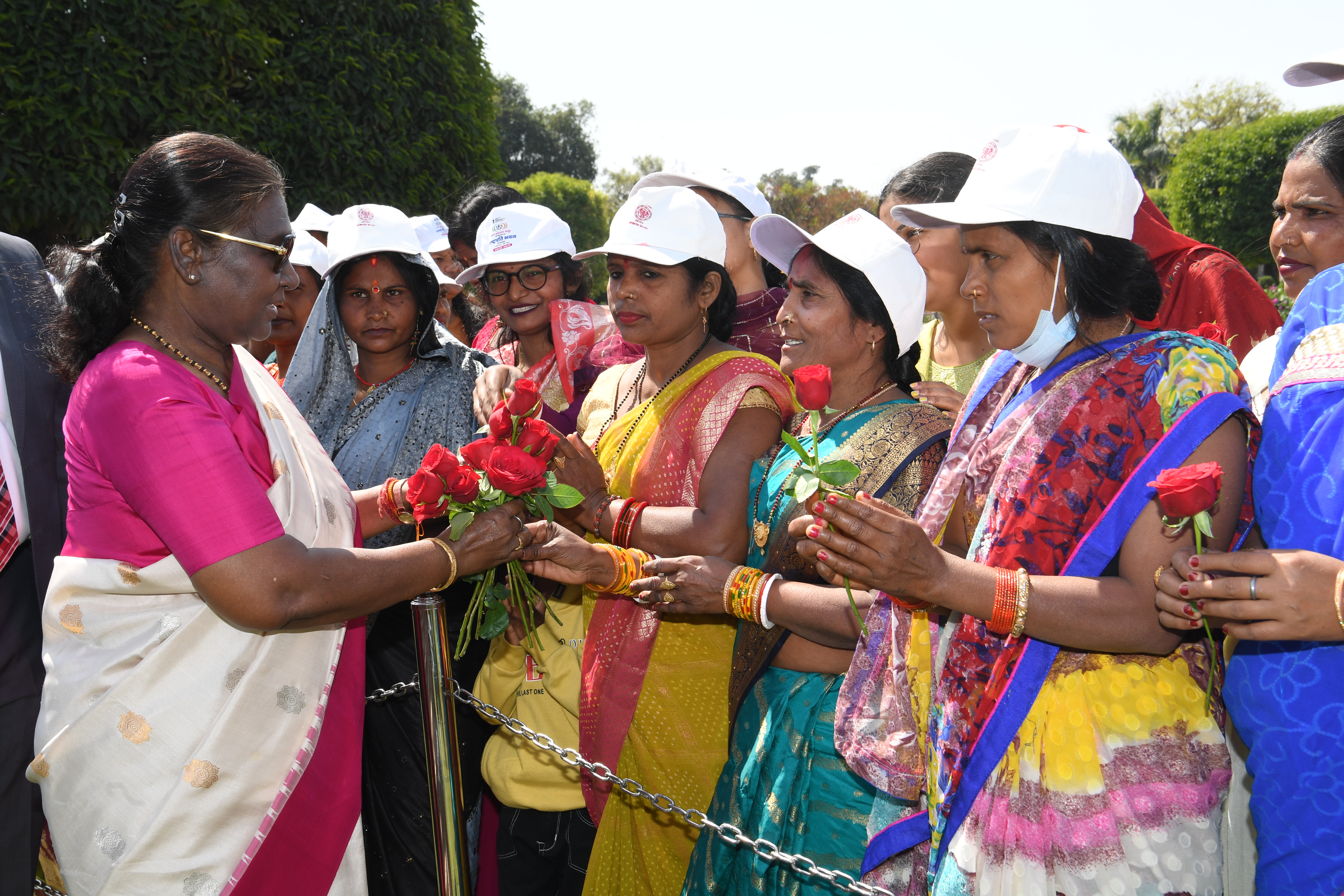 | Caption: | The President of India, Smt Droupadi Murmu met women visiting Amrit Udyan on the day reserved for the special category of Women Tribal Women SHGs-I 08-03-2024 |