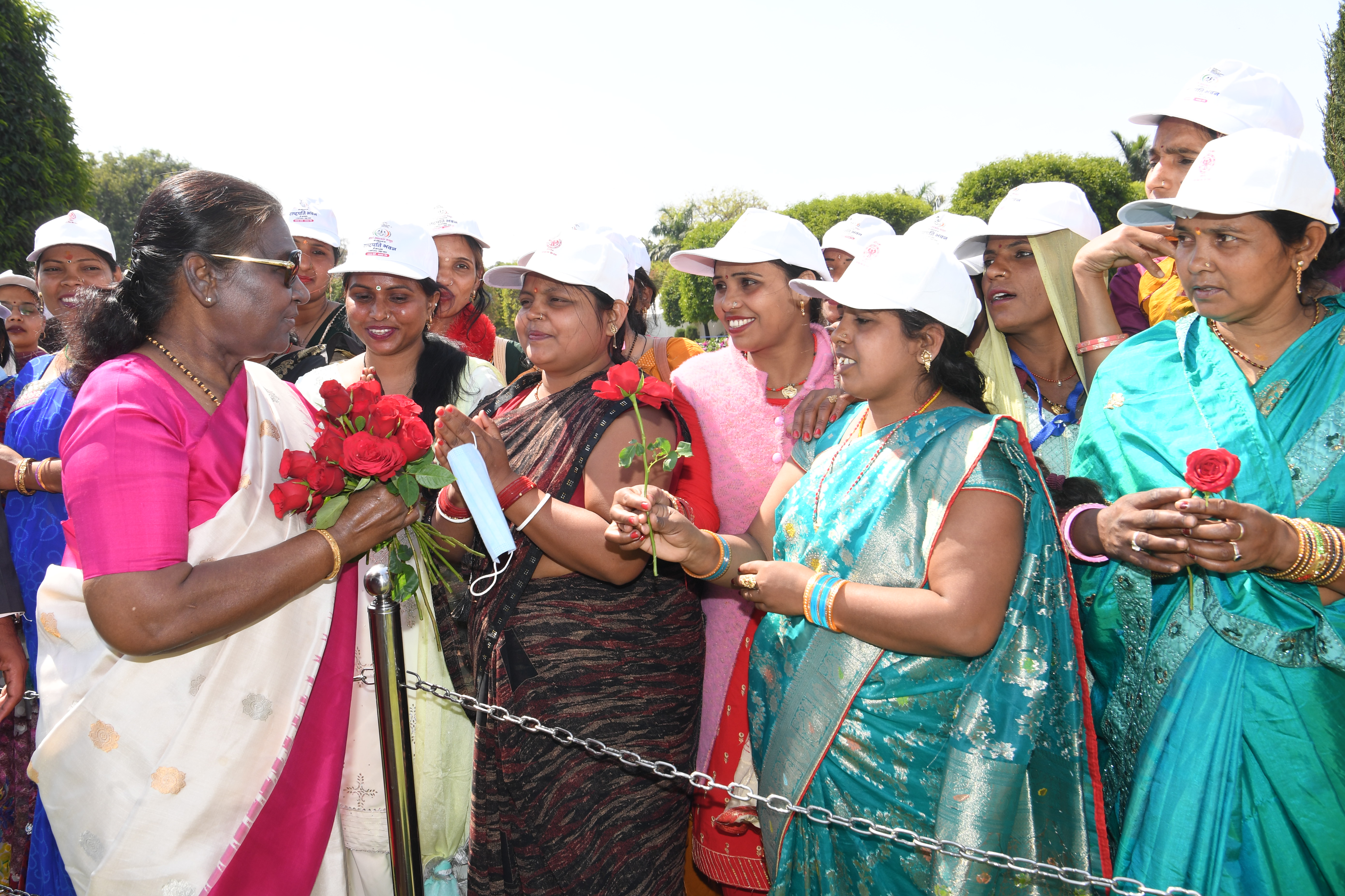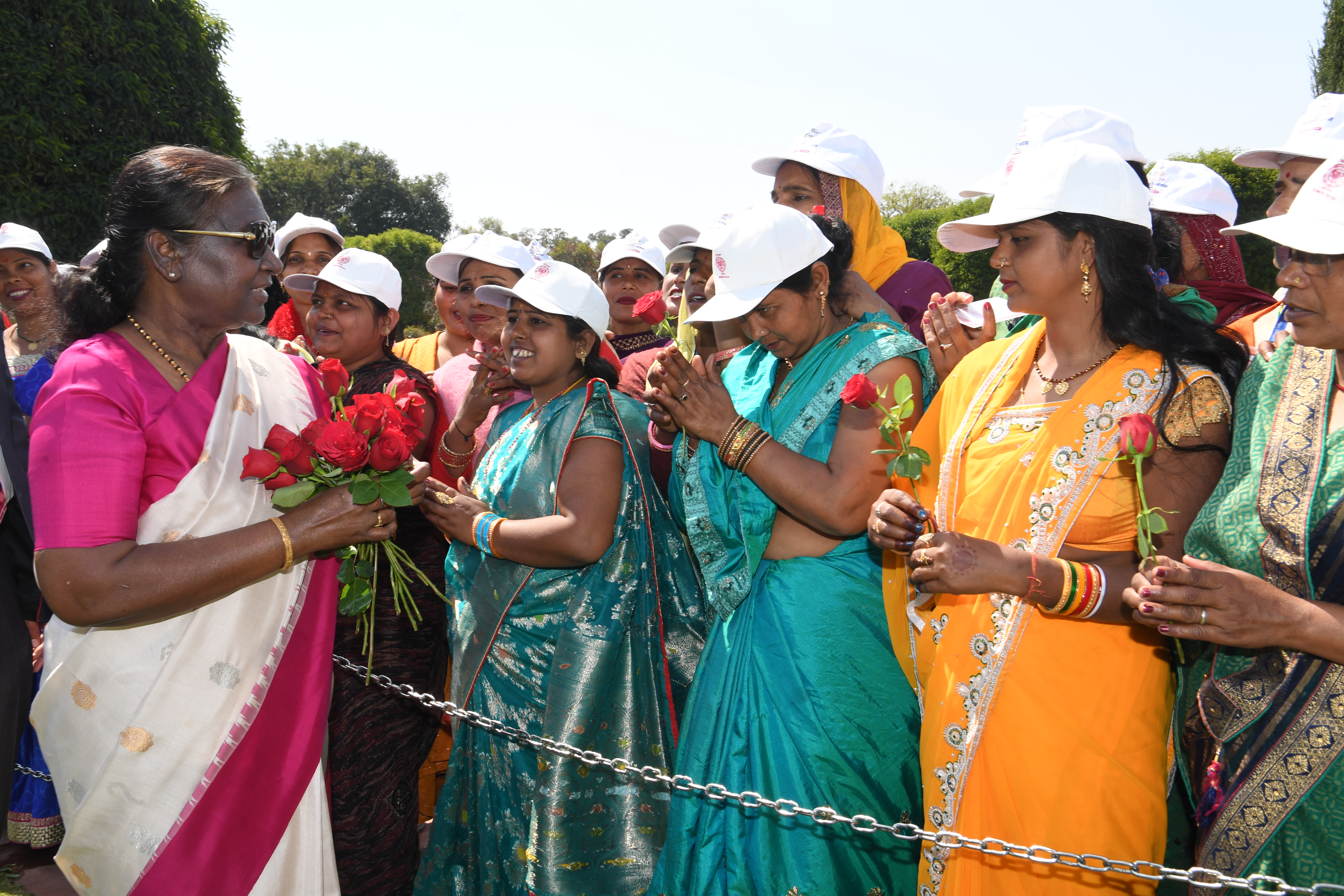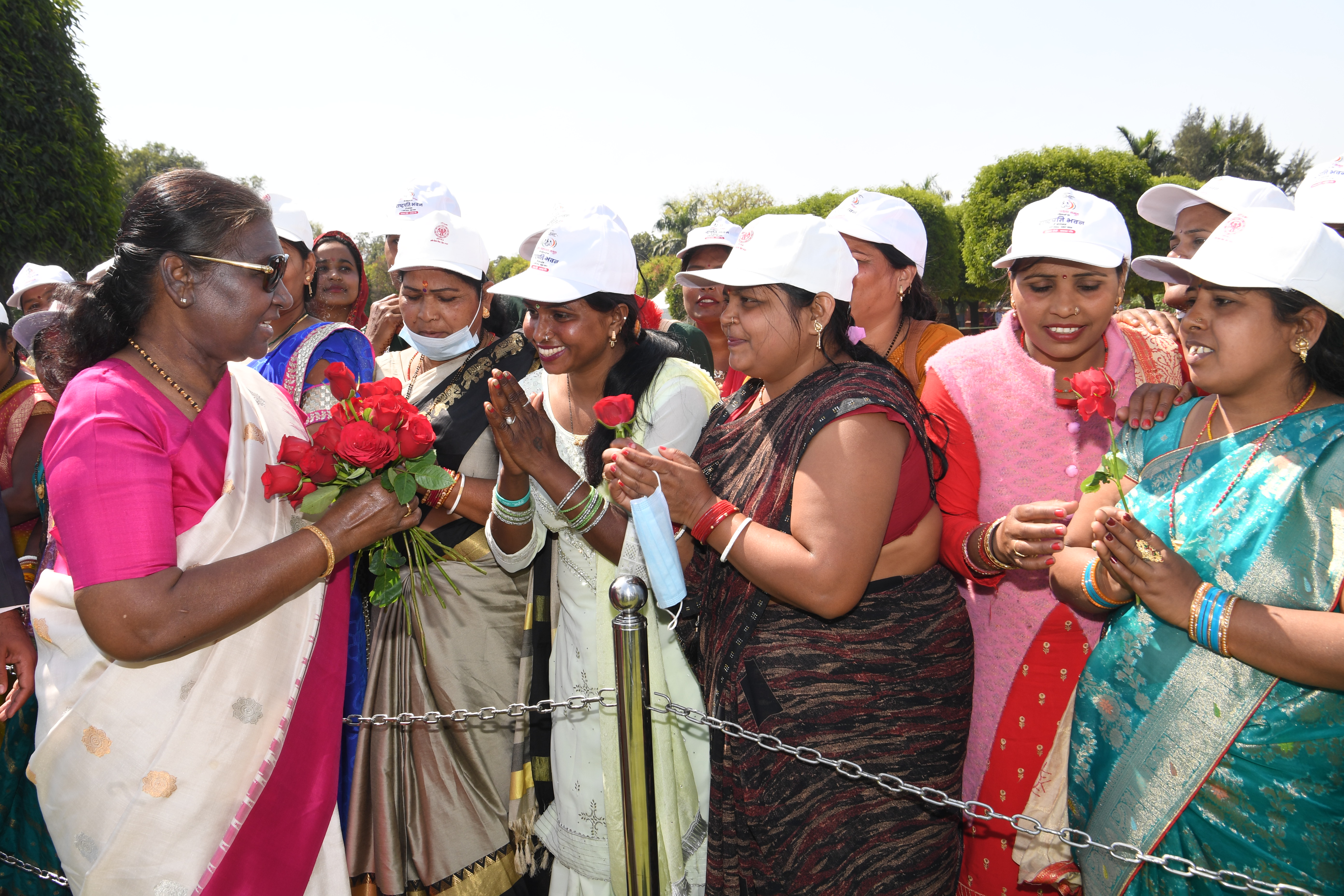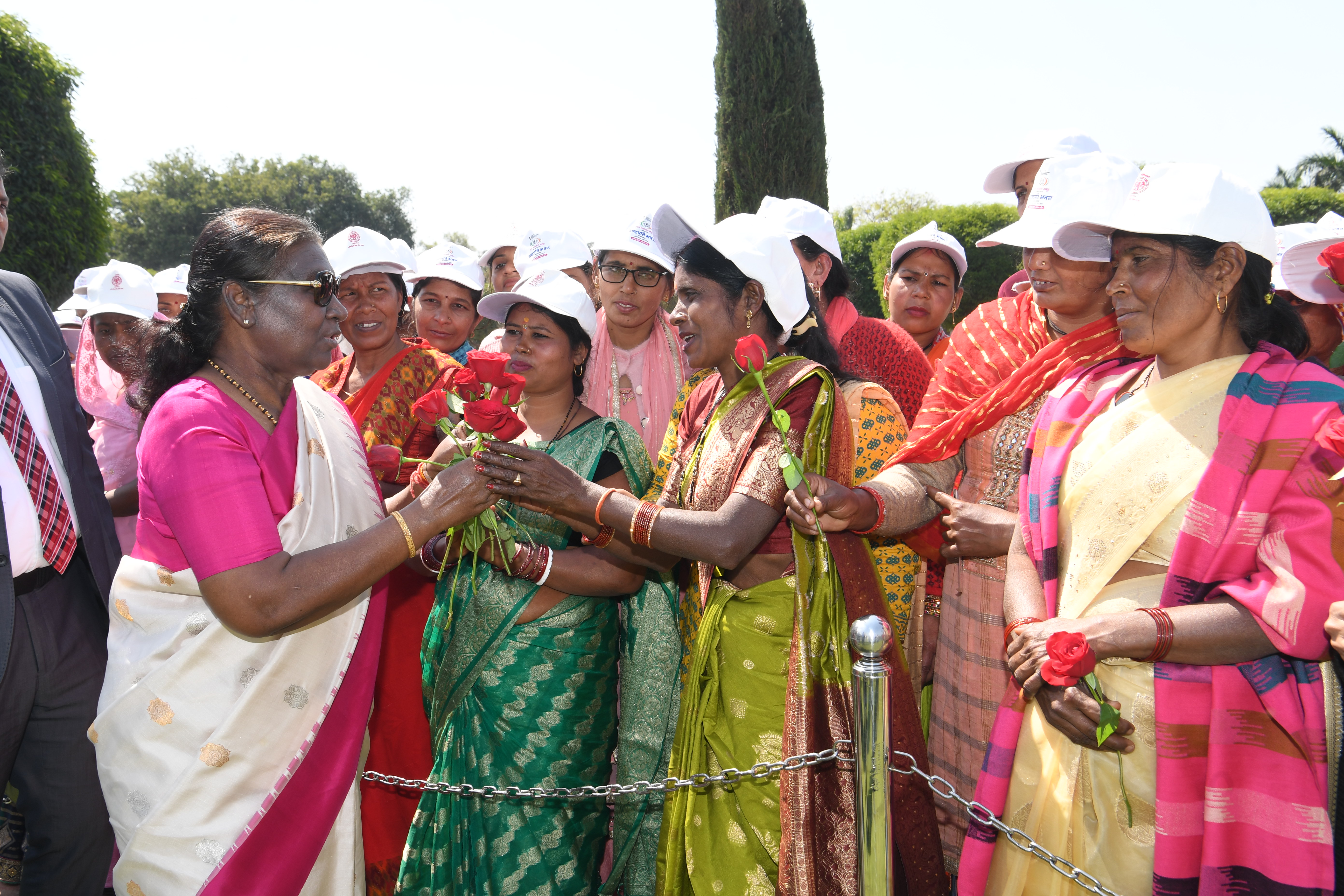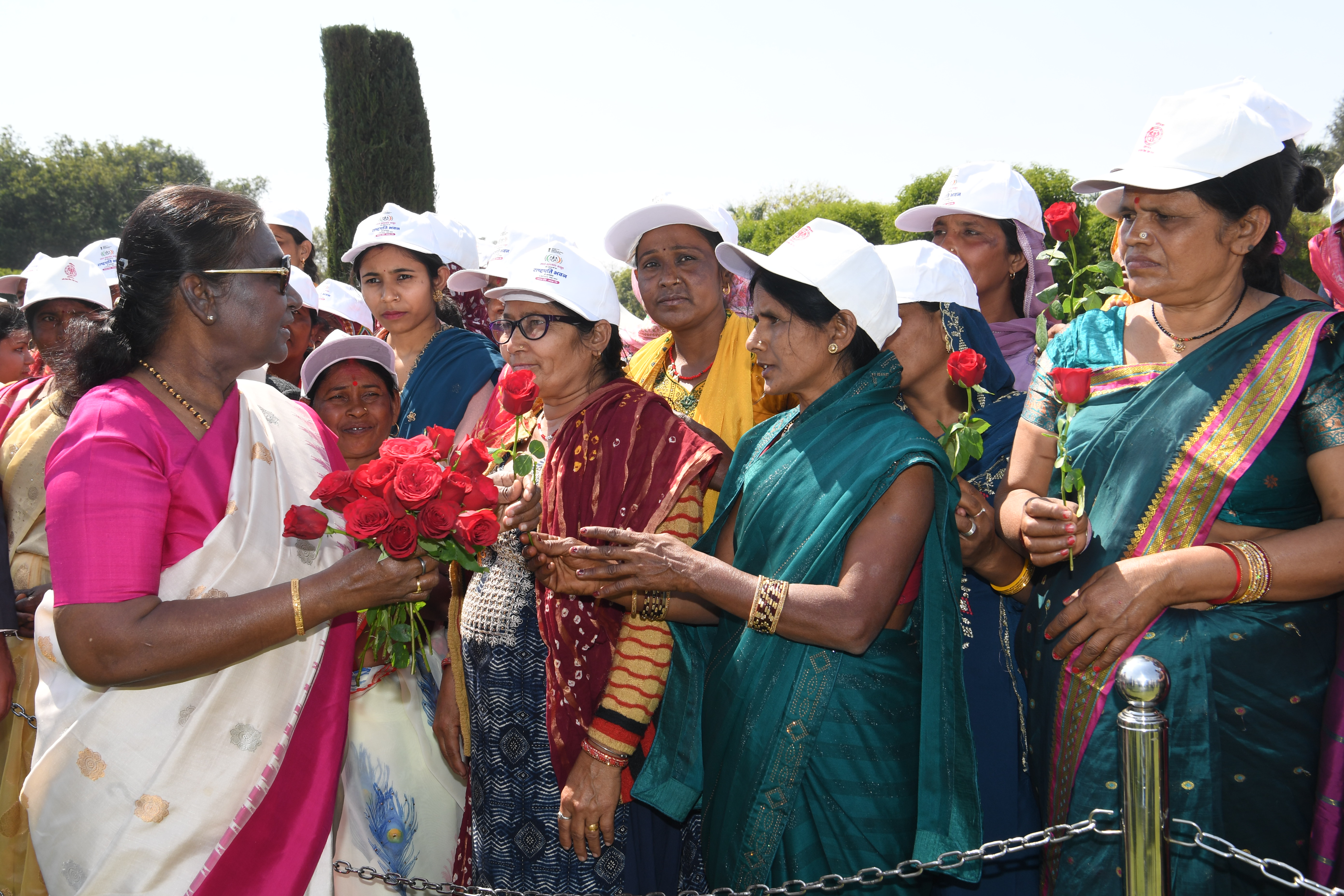 | Caption: | The President of India, Smt Droupadi Murmu met women visiting Amrit Udyan on the day reserved for the special category of Women Tribal Women SHGs-I 08-03-2024 |