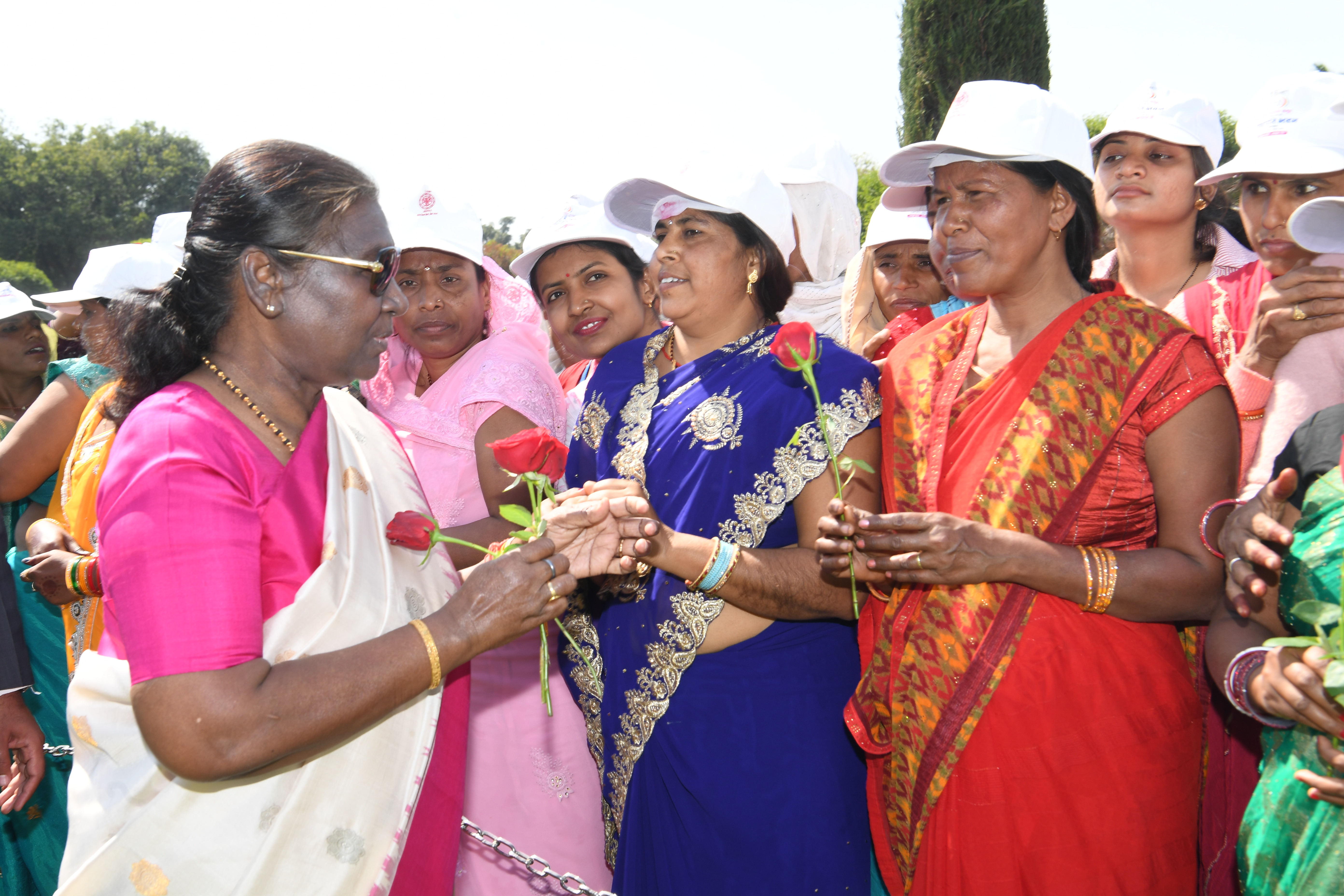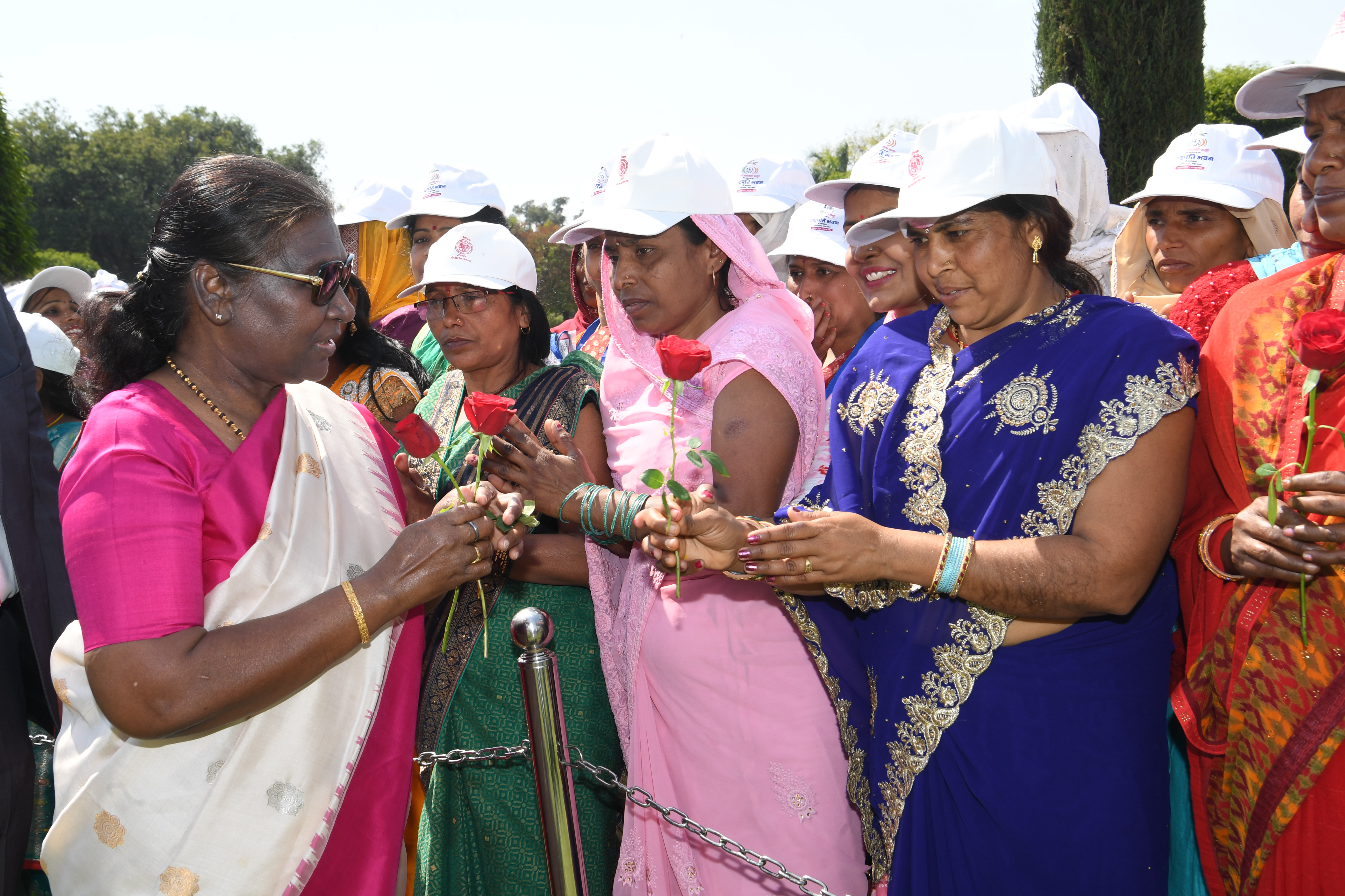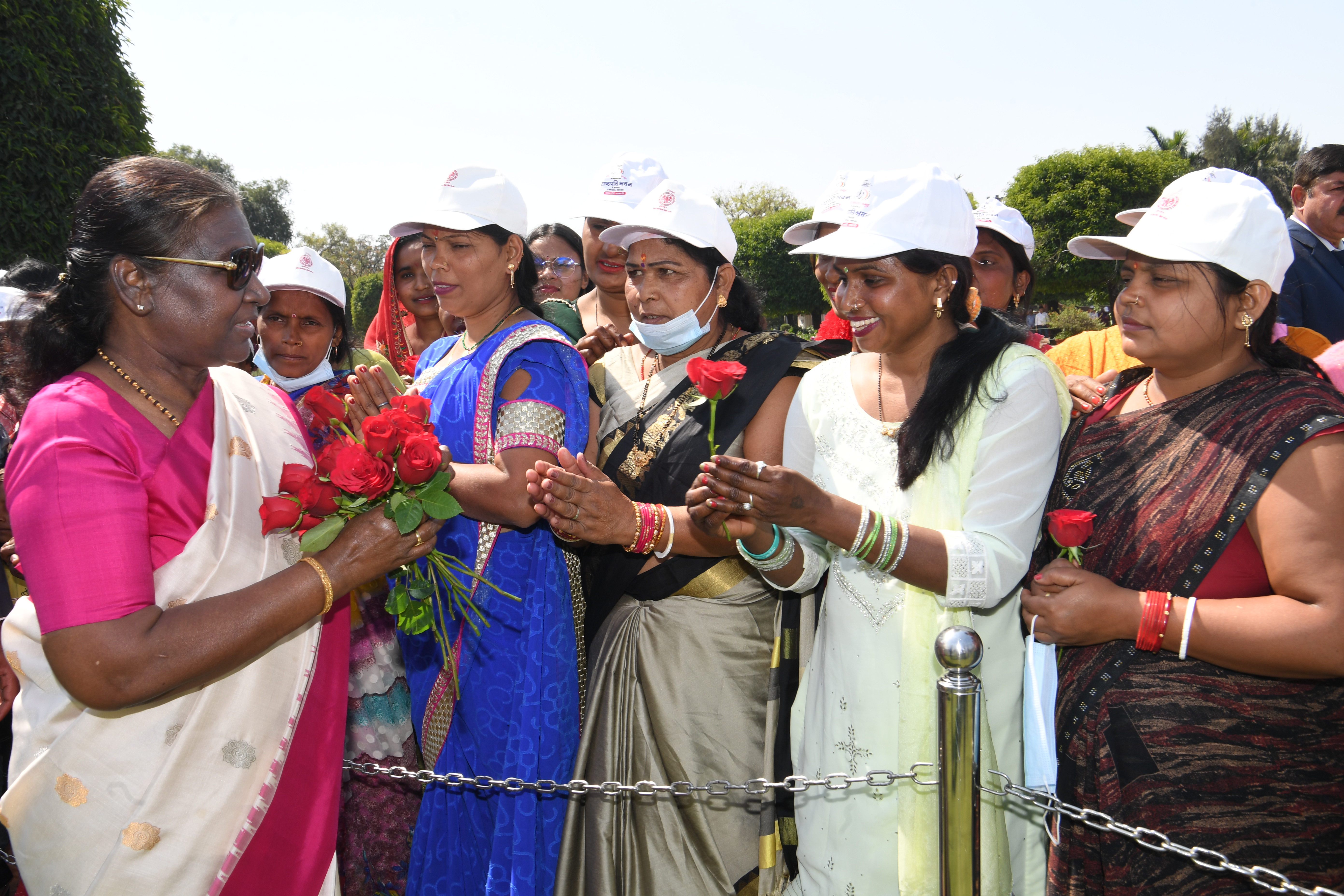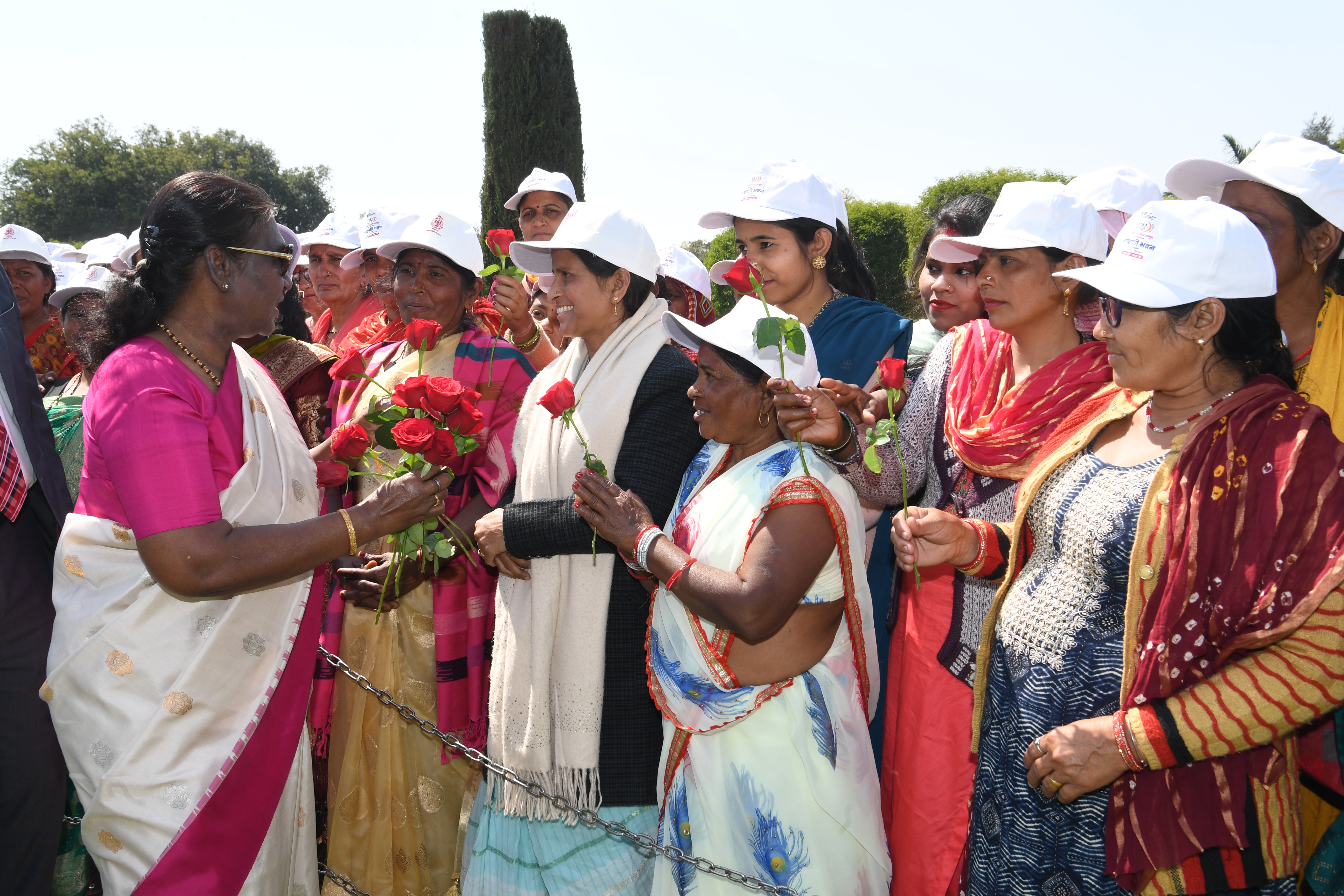 | Caption: | The President of India, Smt Droupadi Murmu met women visiting Amrit Udyan on the day reserved for the special category of Women Tribal Women SHGs-I 08-03-2024 |