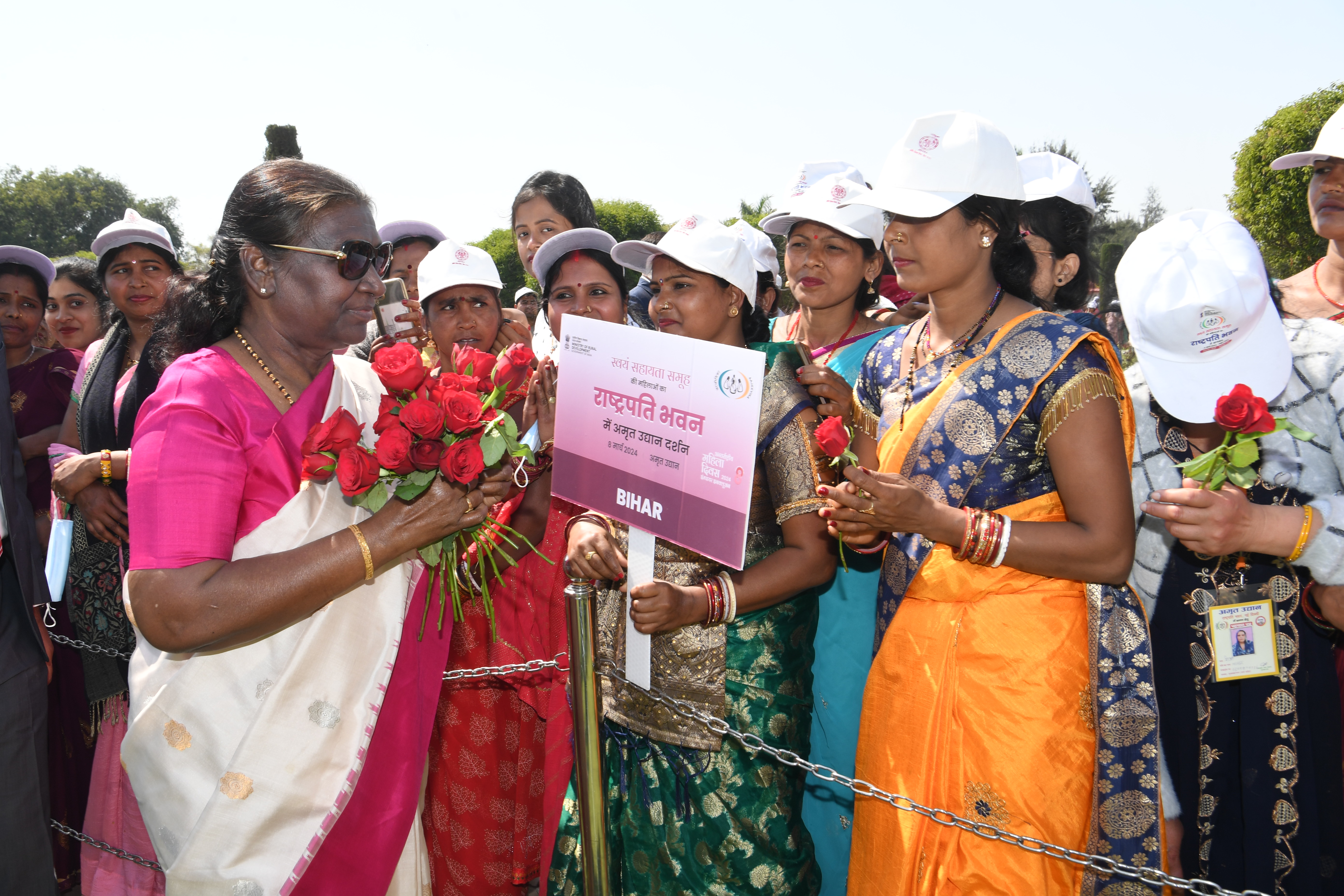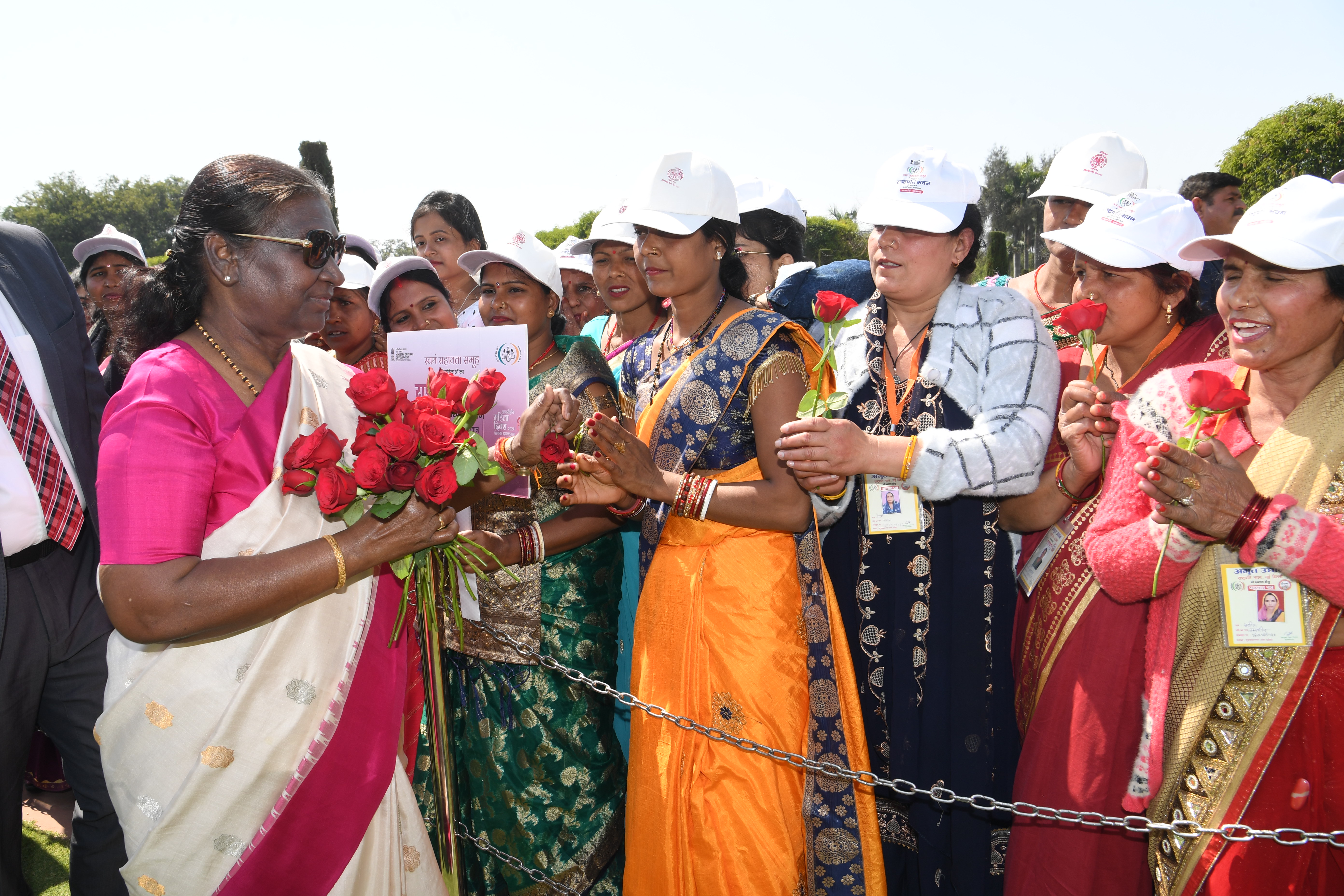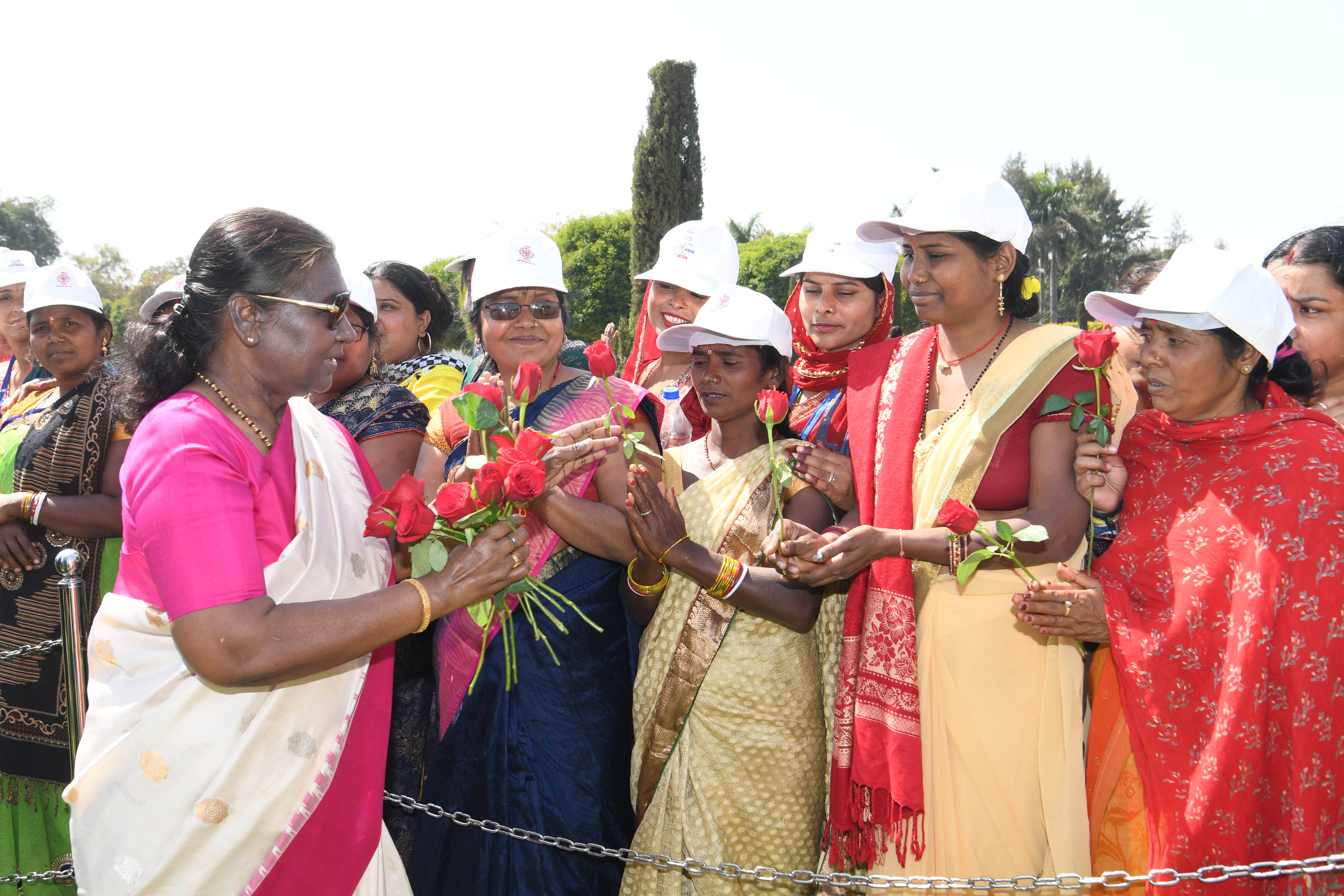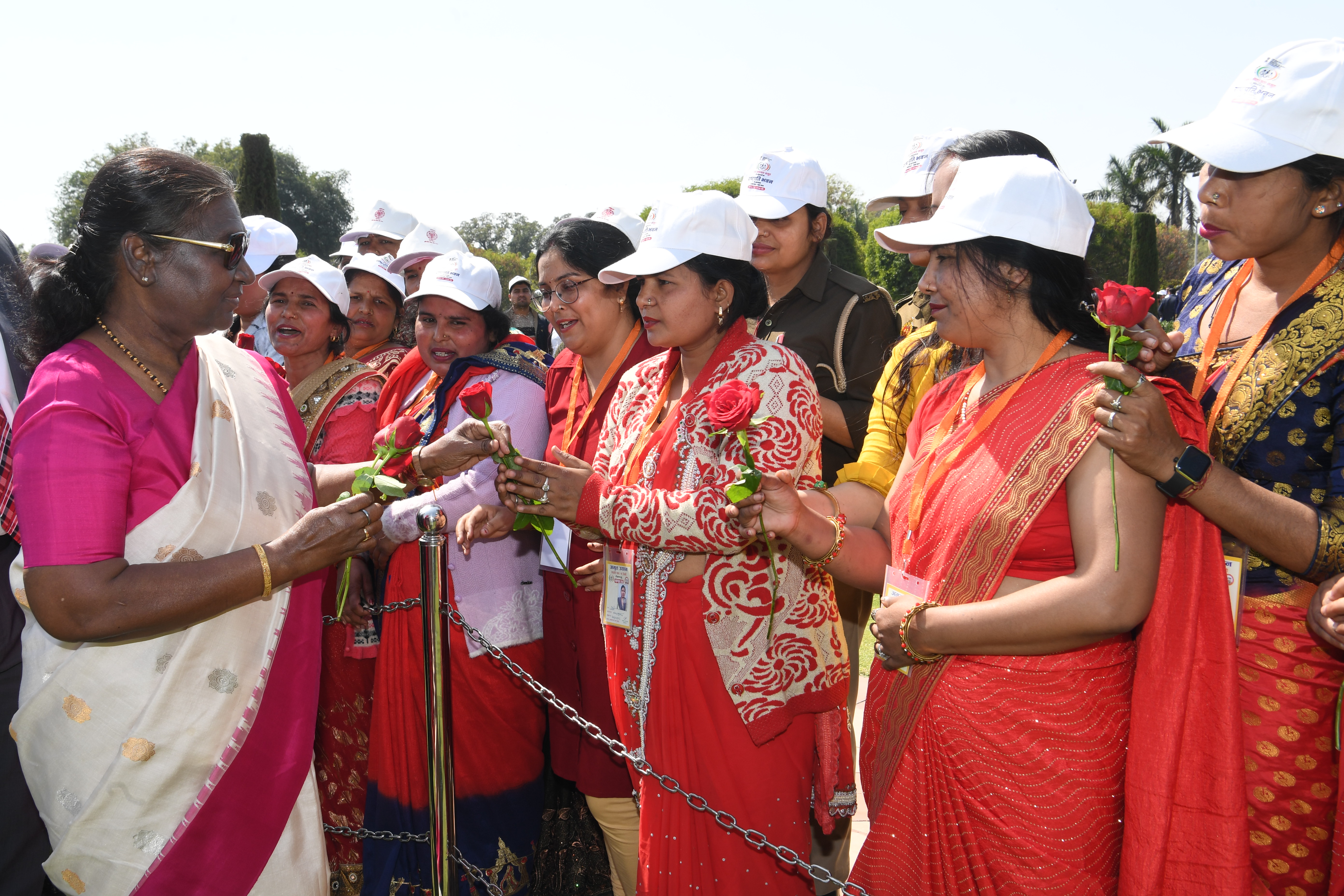 | Caption: | The President of India, Smt Droupadi Murmu met women visiting Amrit Udyan on the day reserved for the special category of Women Tribal Women SHGs-I 08-03-2024 |
