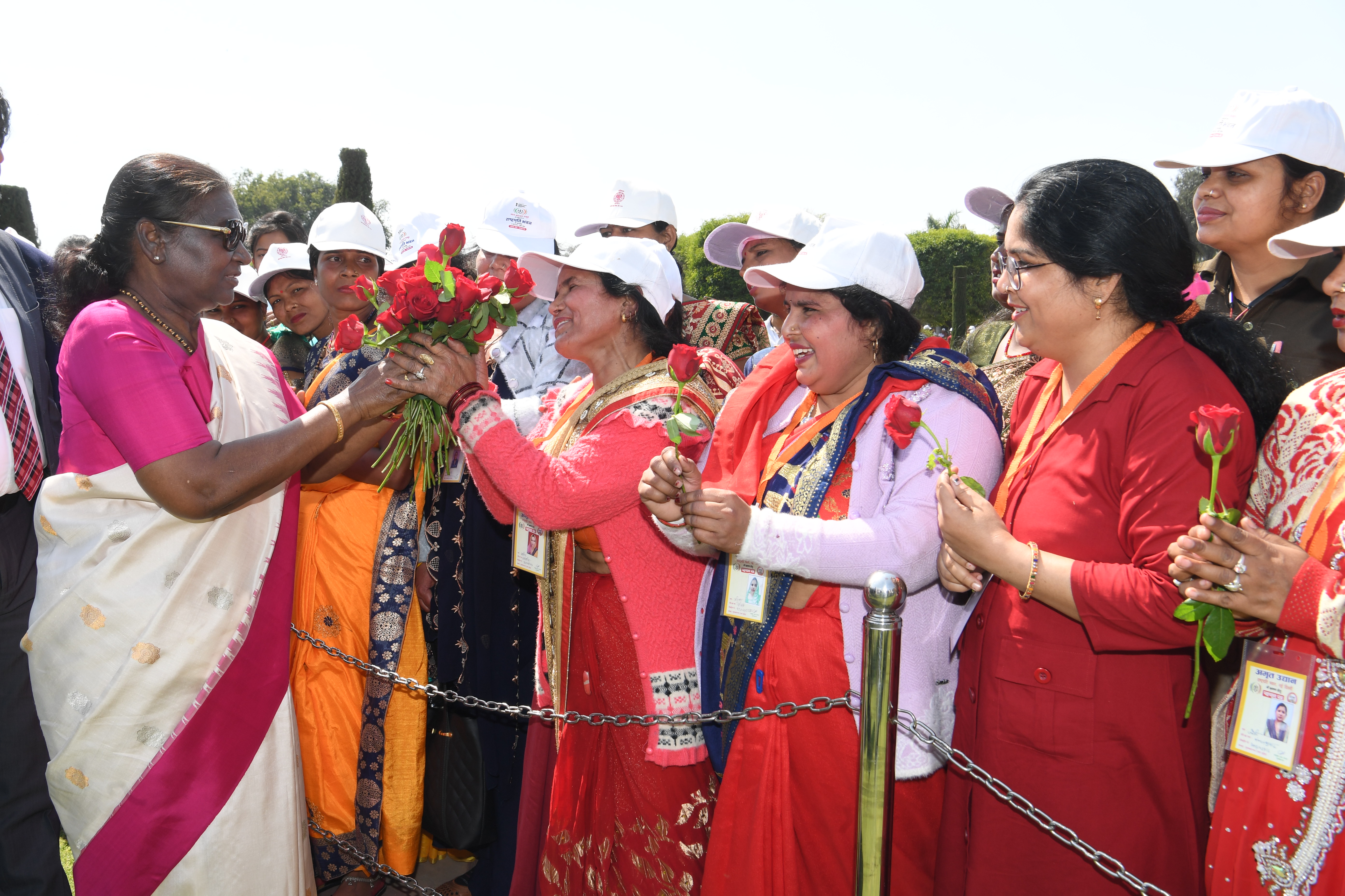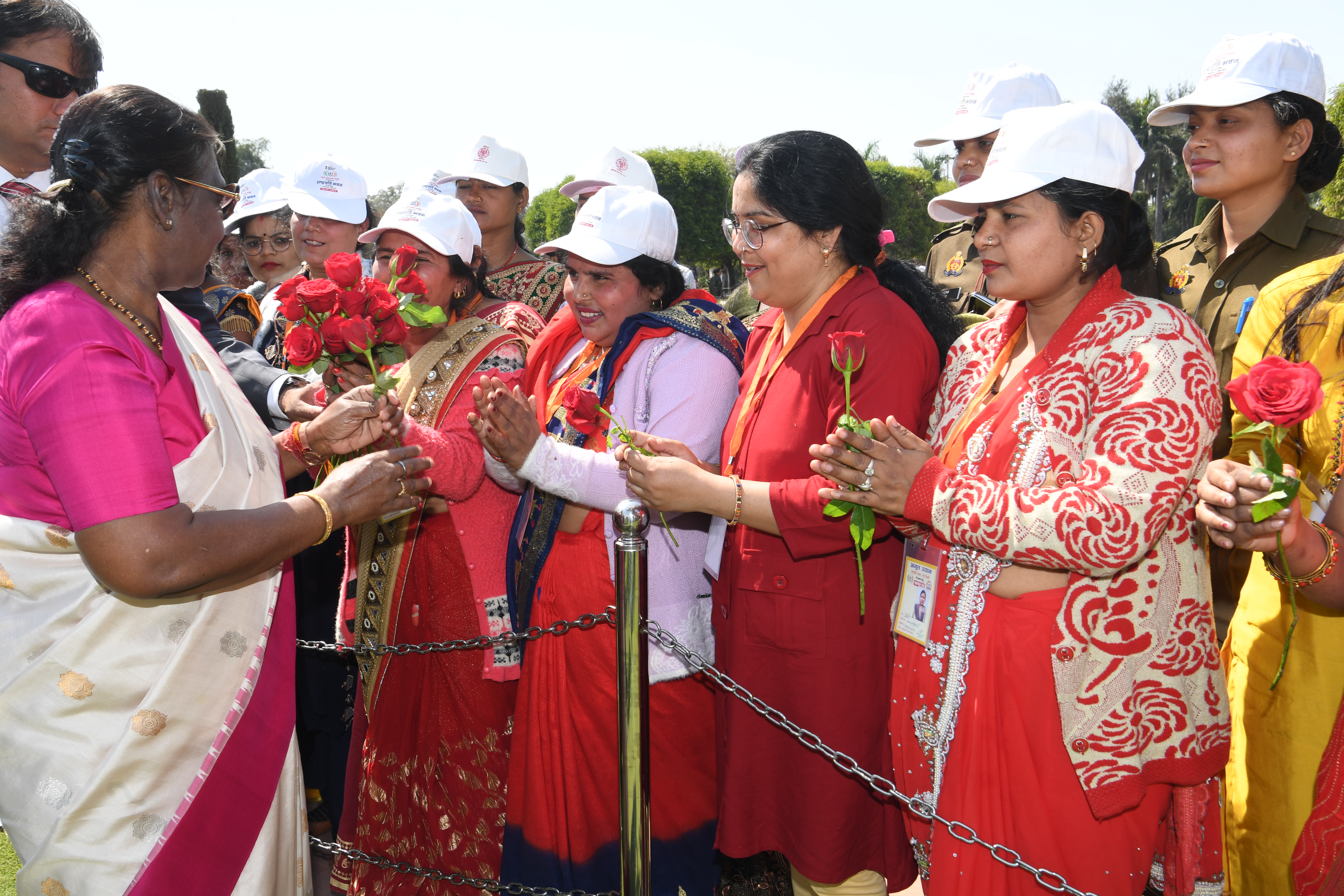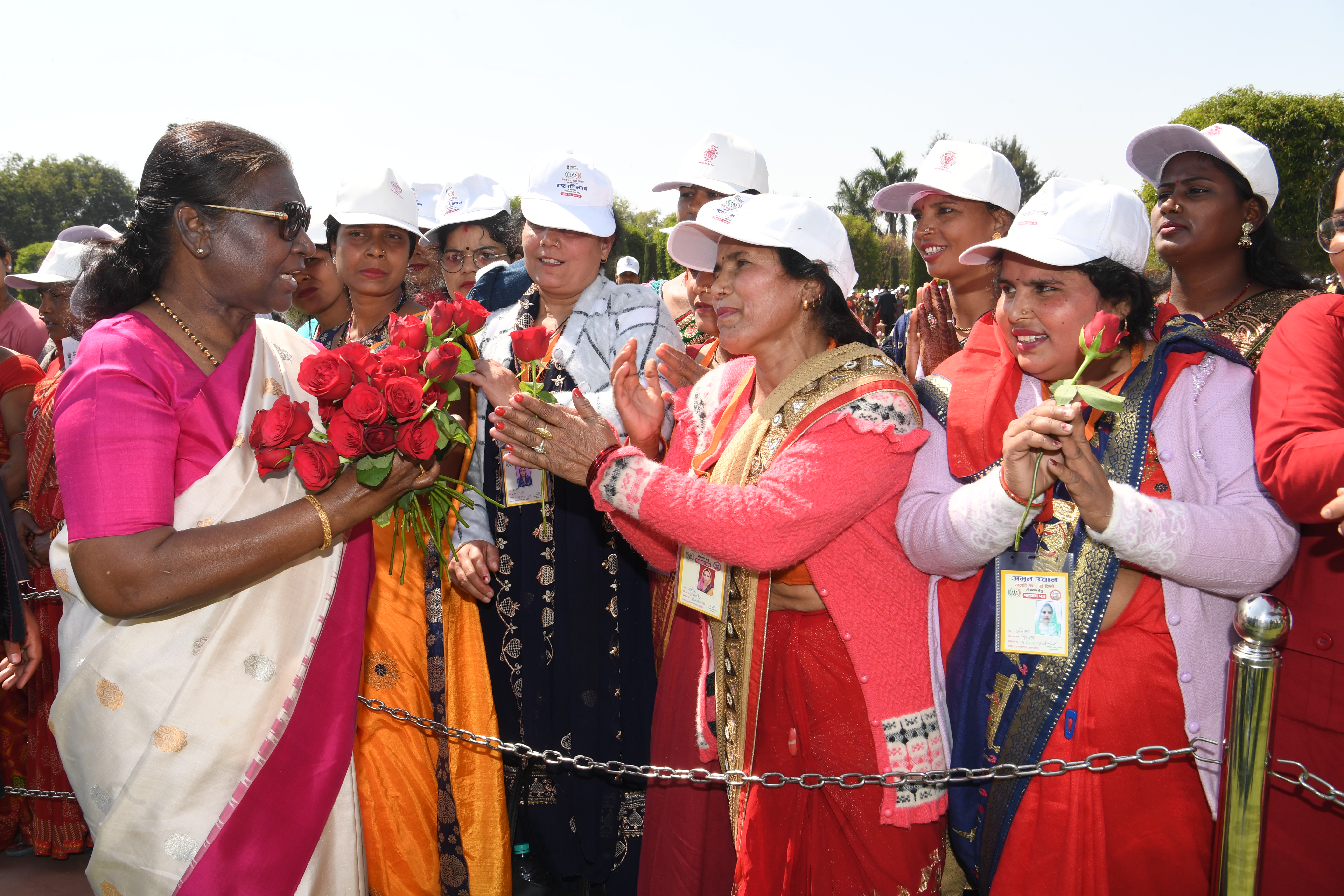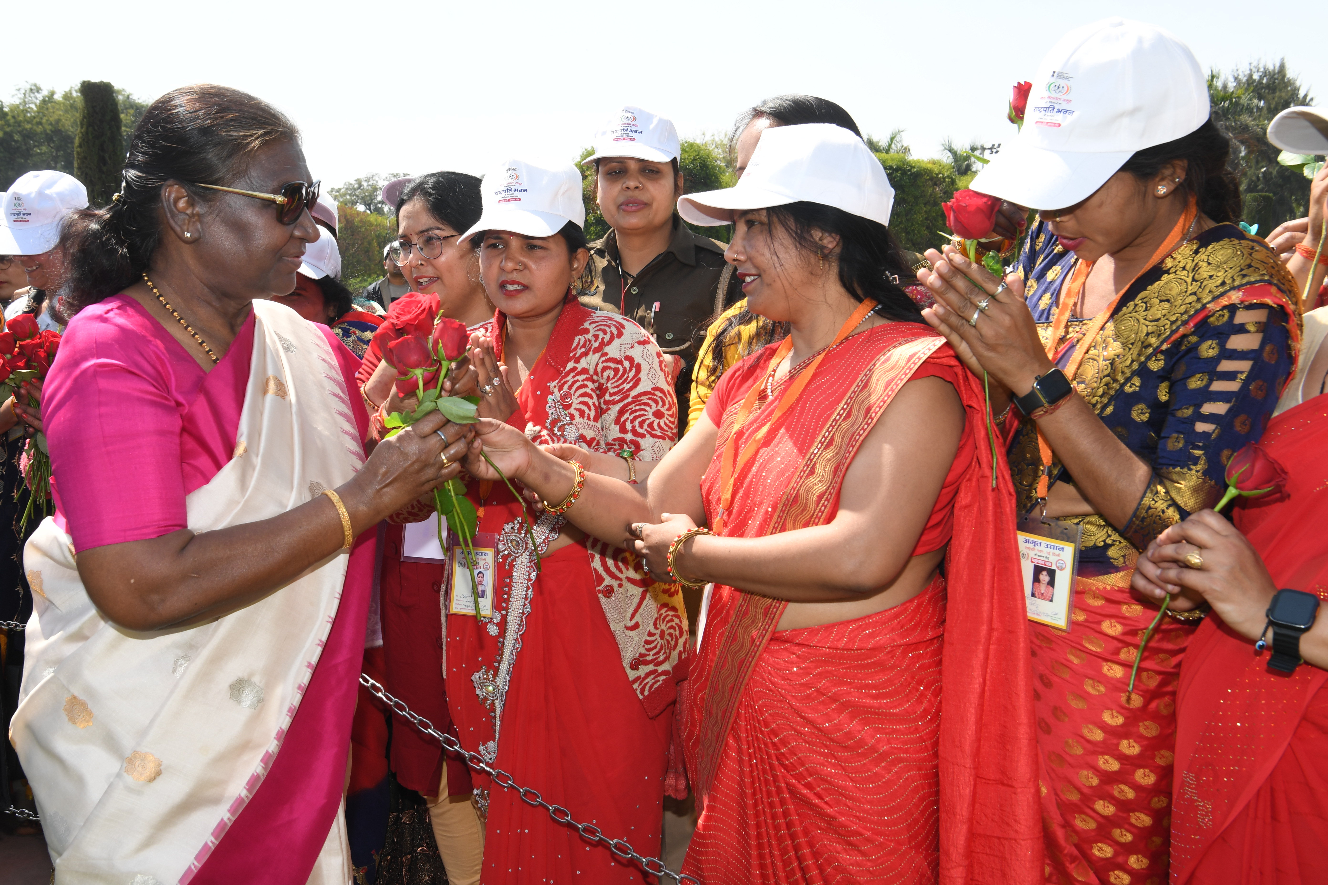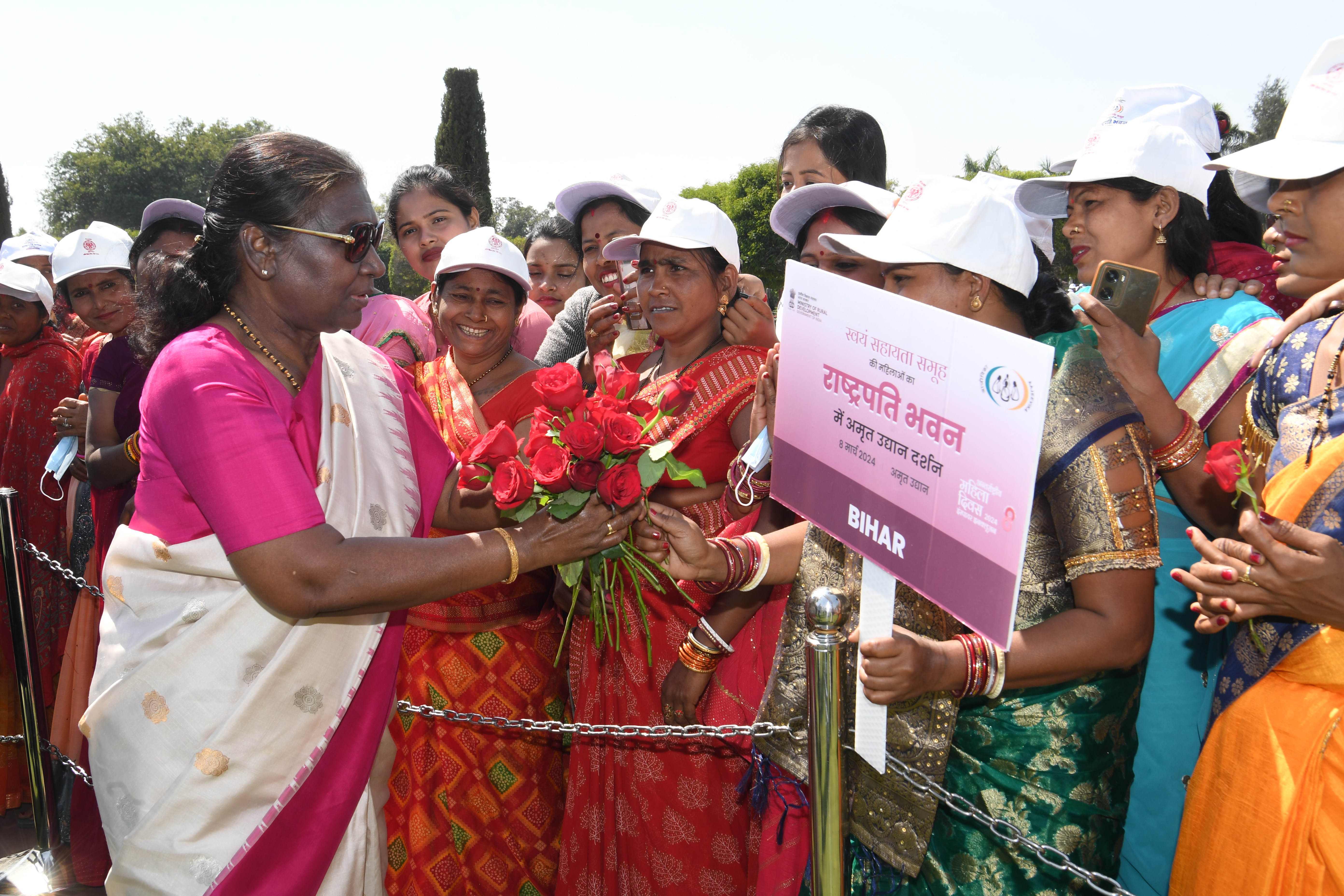 | Caption: | The President of India, Smt Droupadi Murmu met women visiting Amrit Udyan on the day reserved for the special category of Women Tribal Women SHGs-I 08-03-2024 |