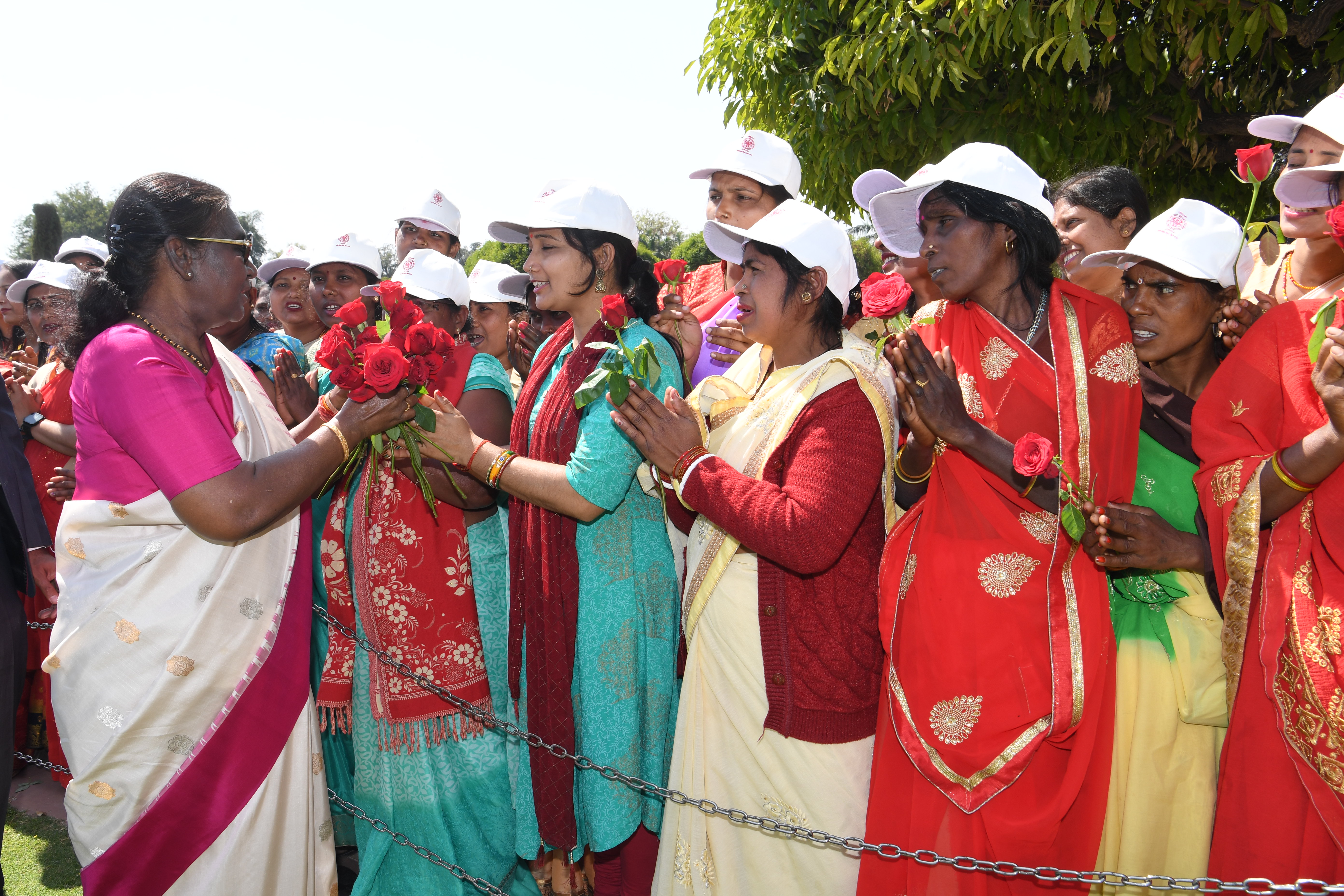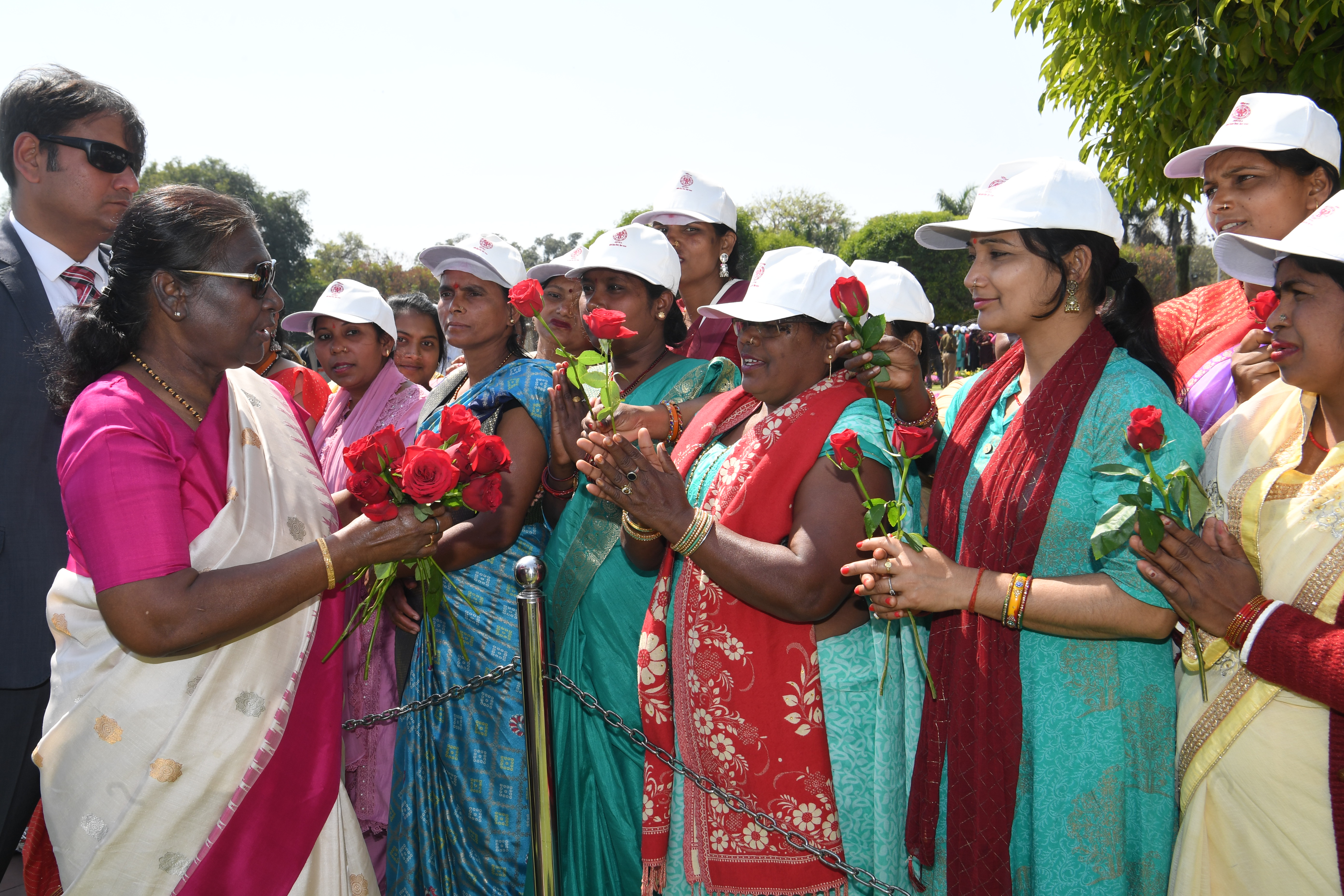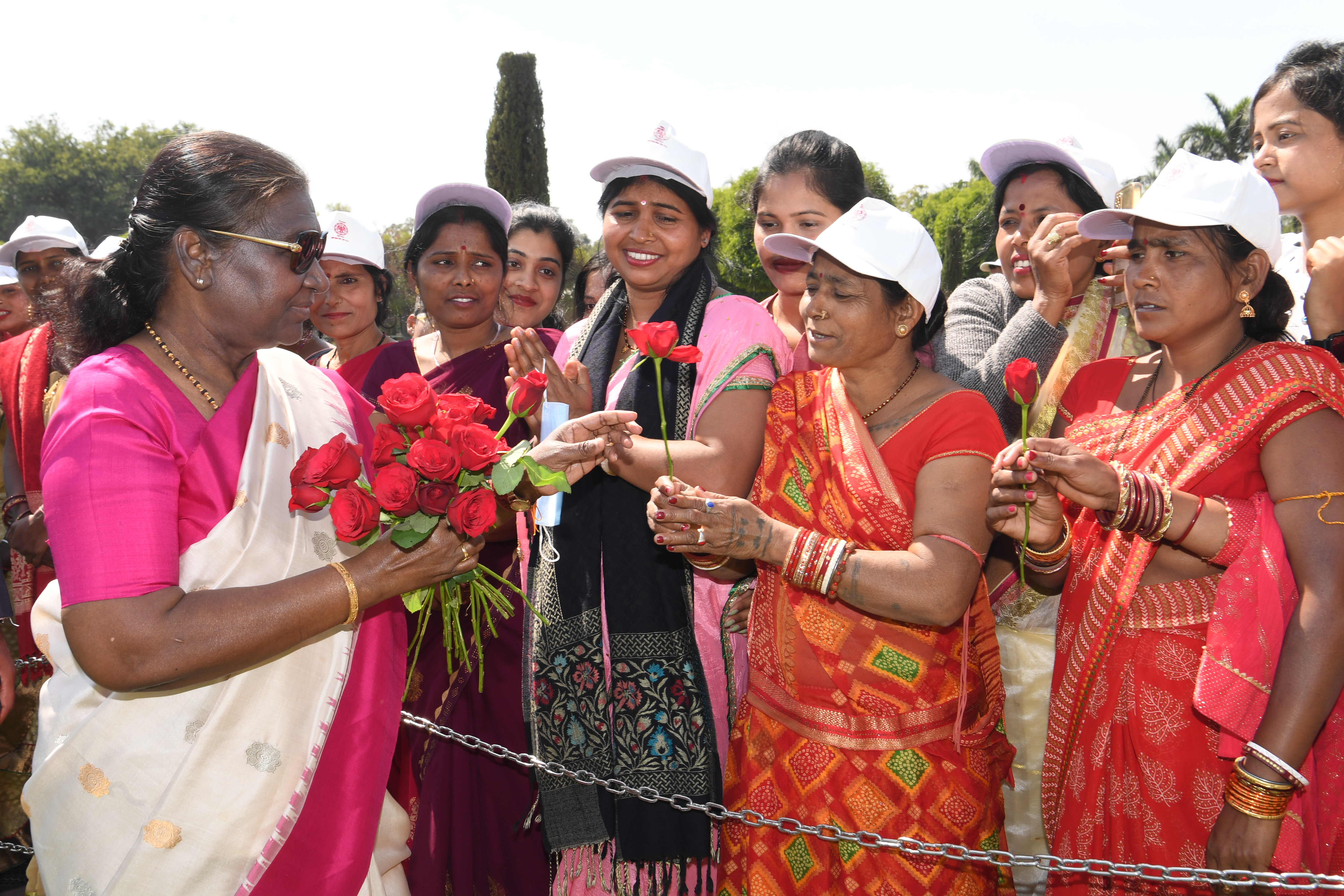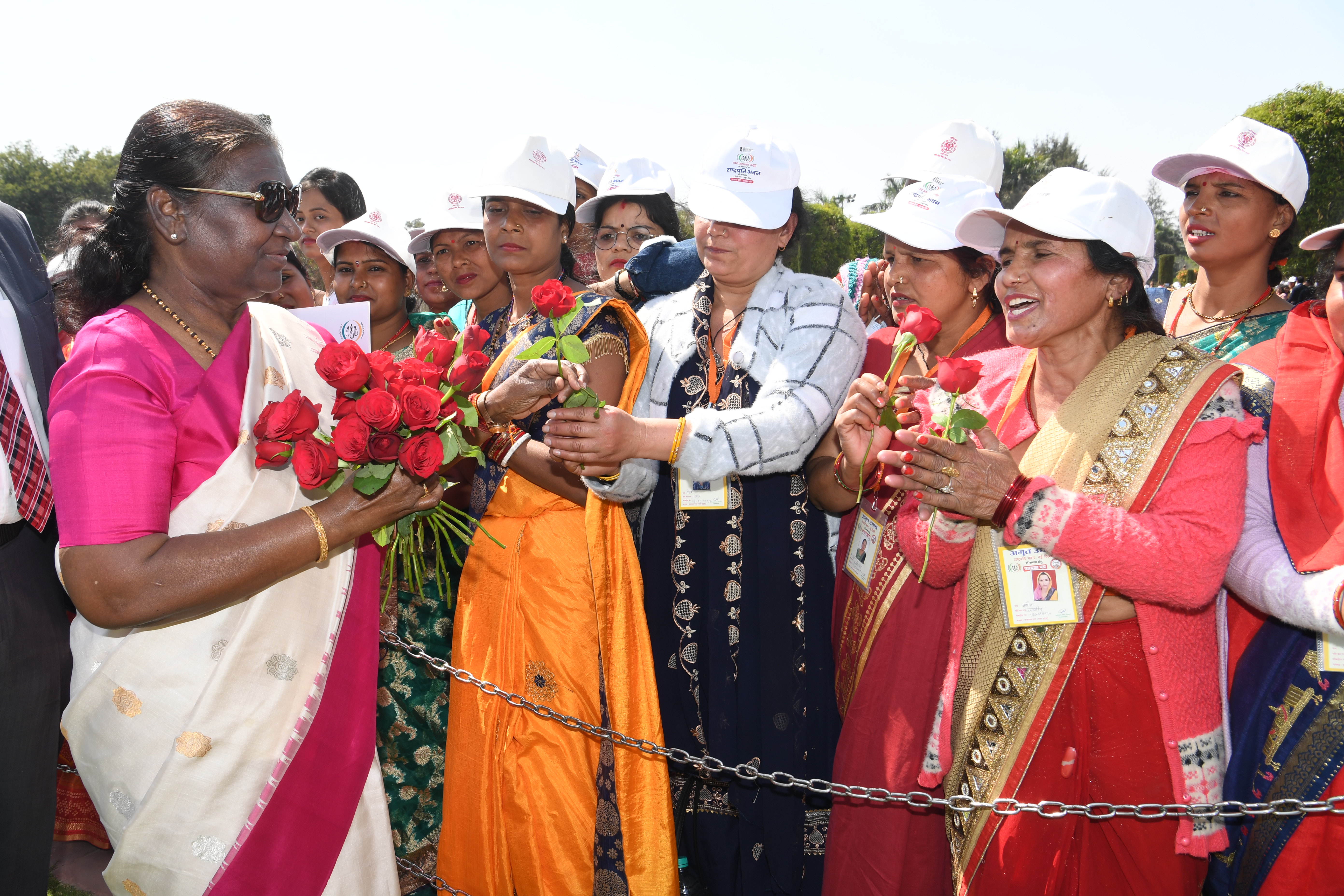 | Caption: | The President of India, Smt Droupadi Murmu met women visiting Amrit Udyan on the day reserved for the special category of Women Tribal Women SHGs-I 08-03-2024 |