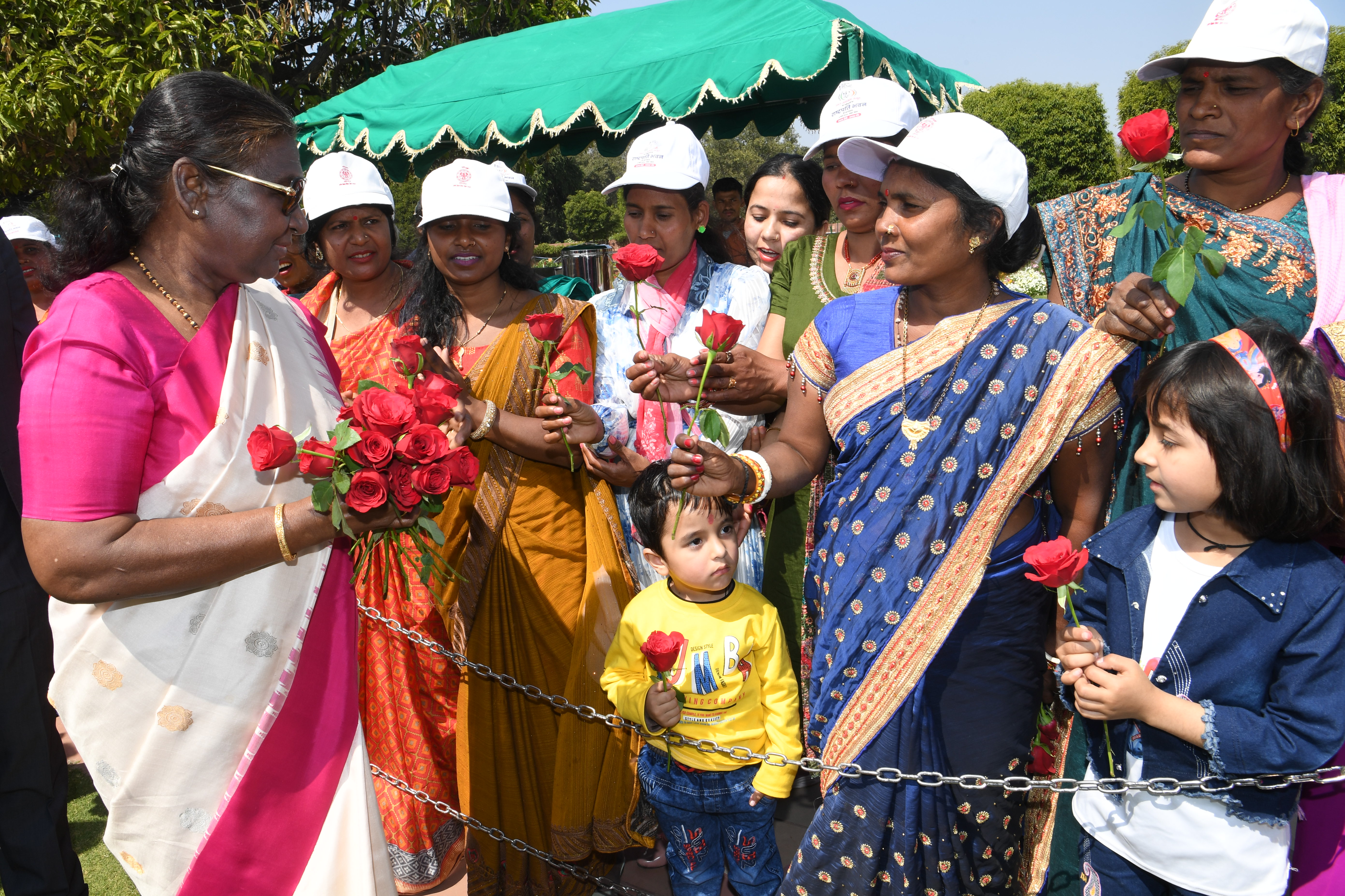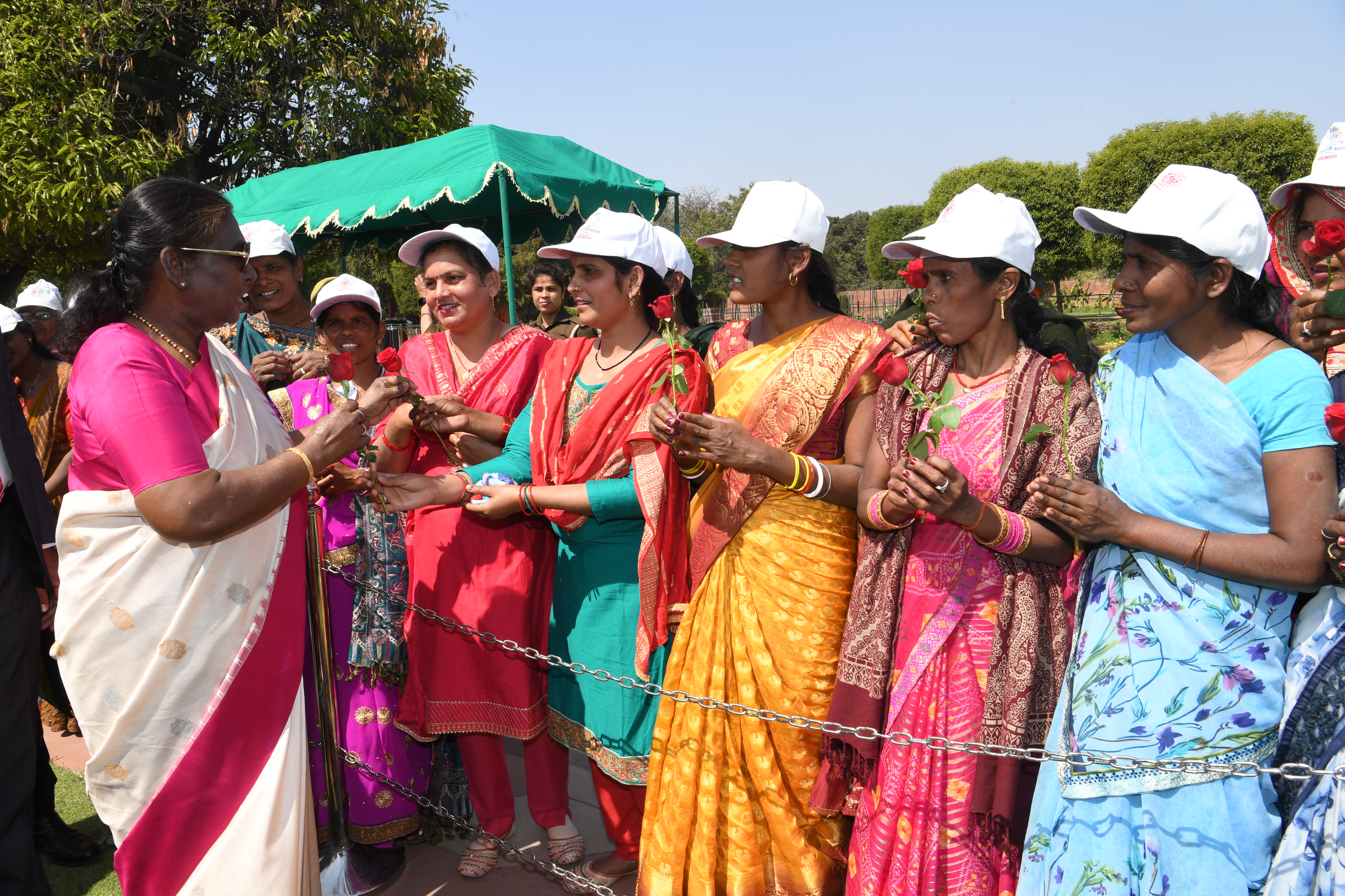 | Caption: | The President of India, Smt Droupadi Murmu met women visiting Amrit Udyan on the day reserved for the special category of Women Tribal Women SHGs-I 08-03-2024 |