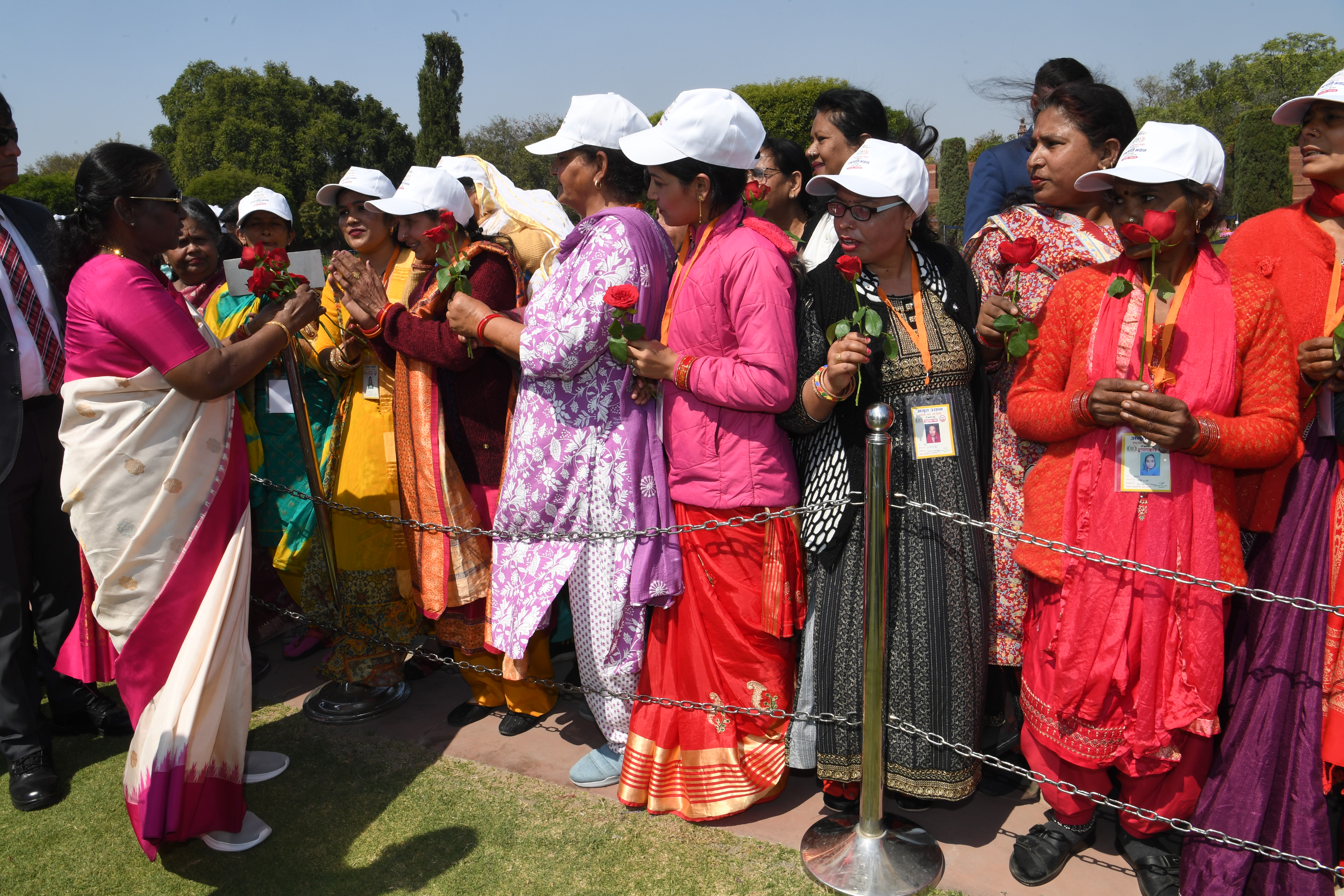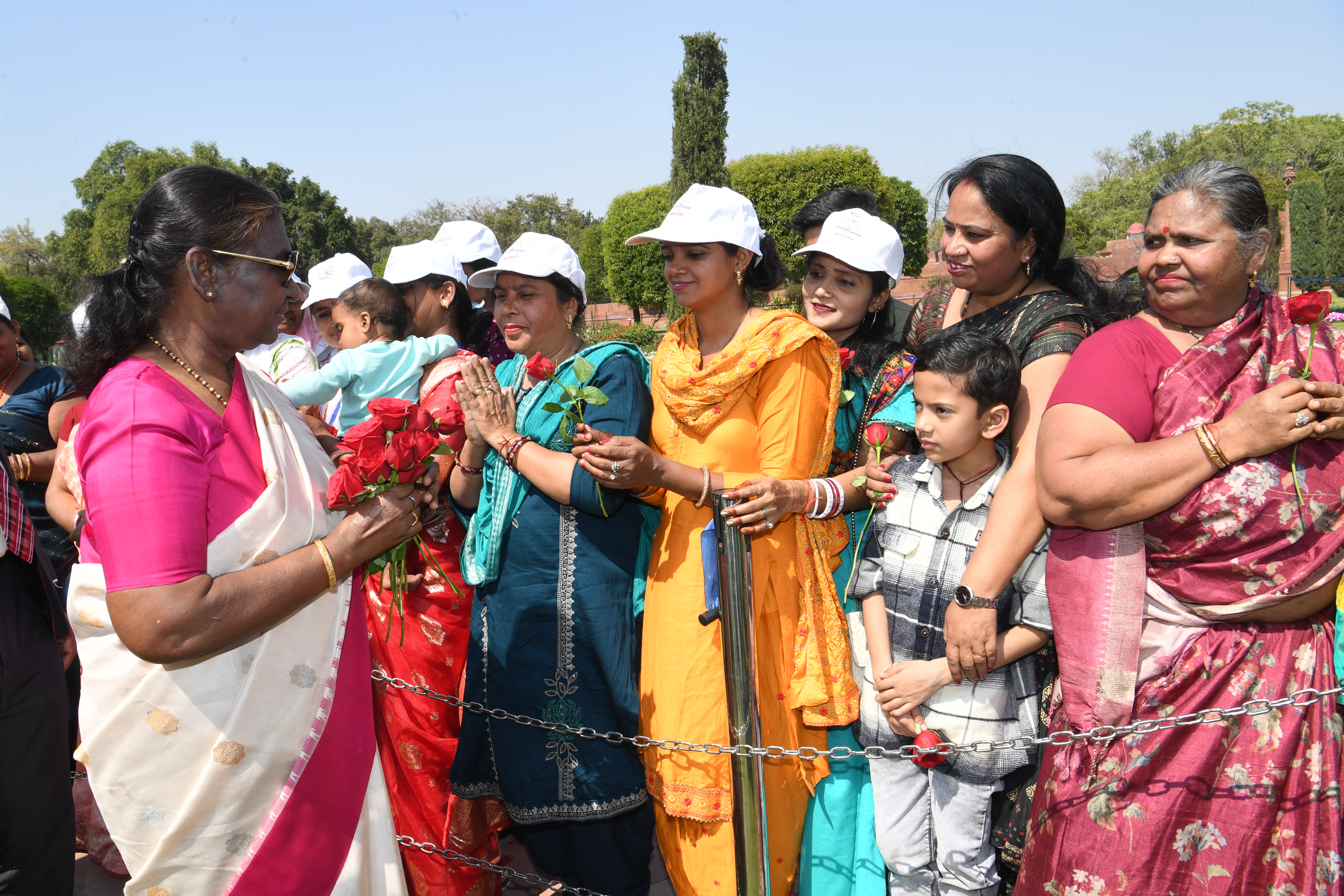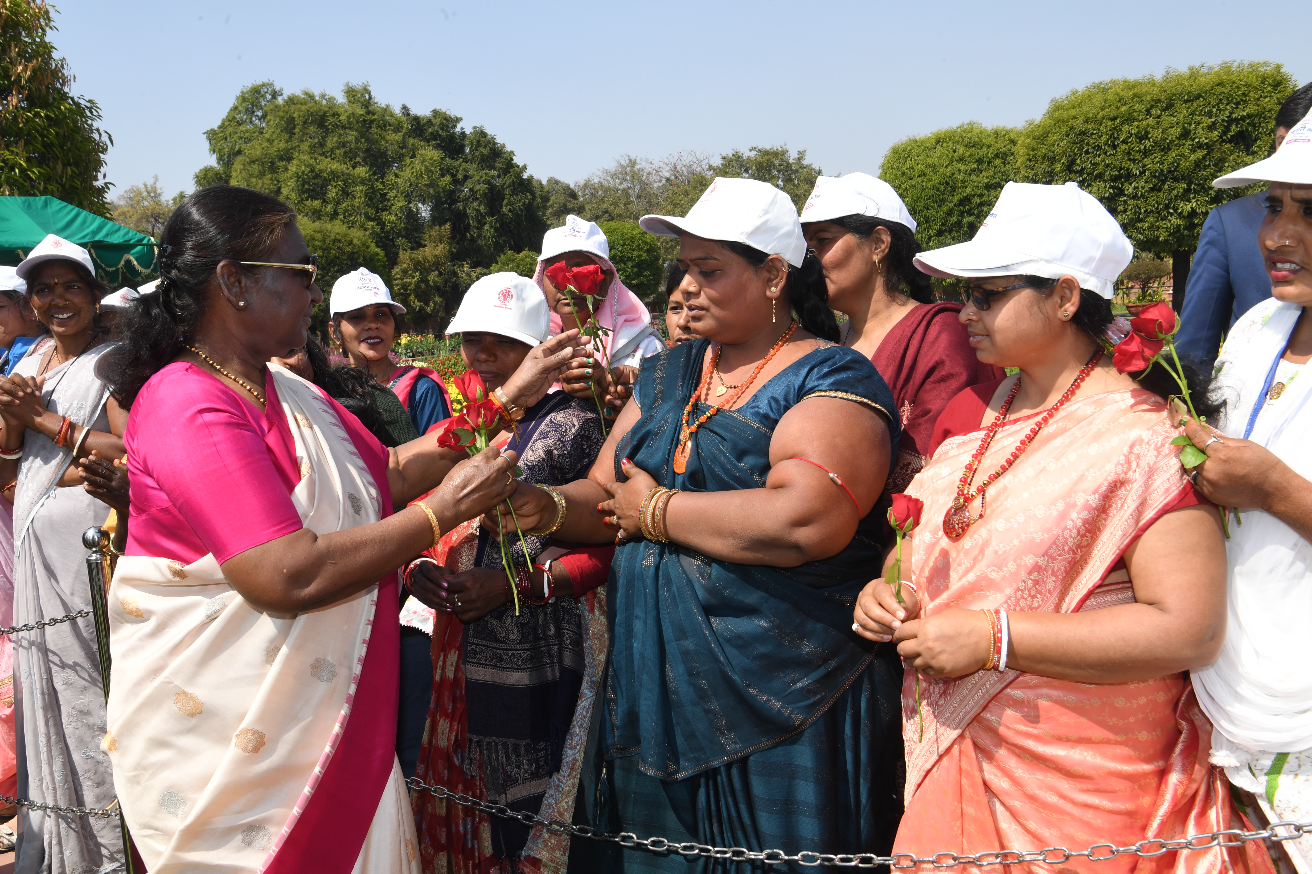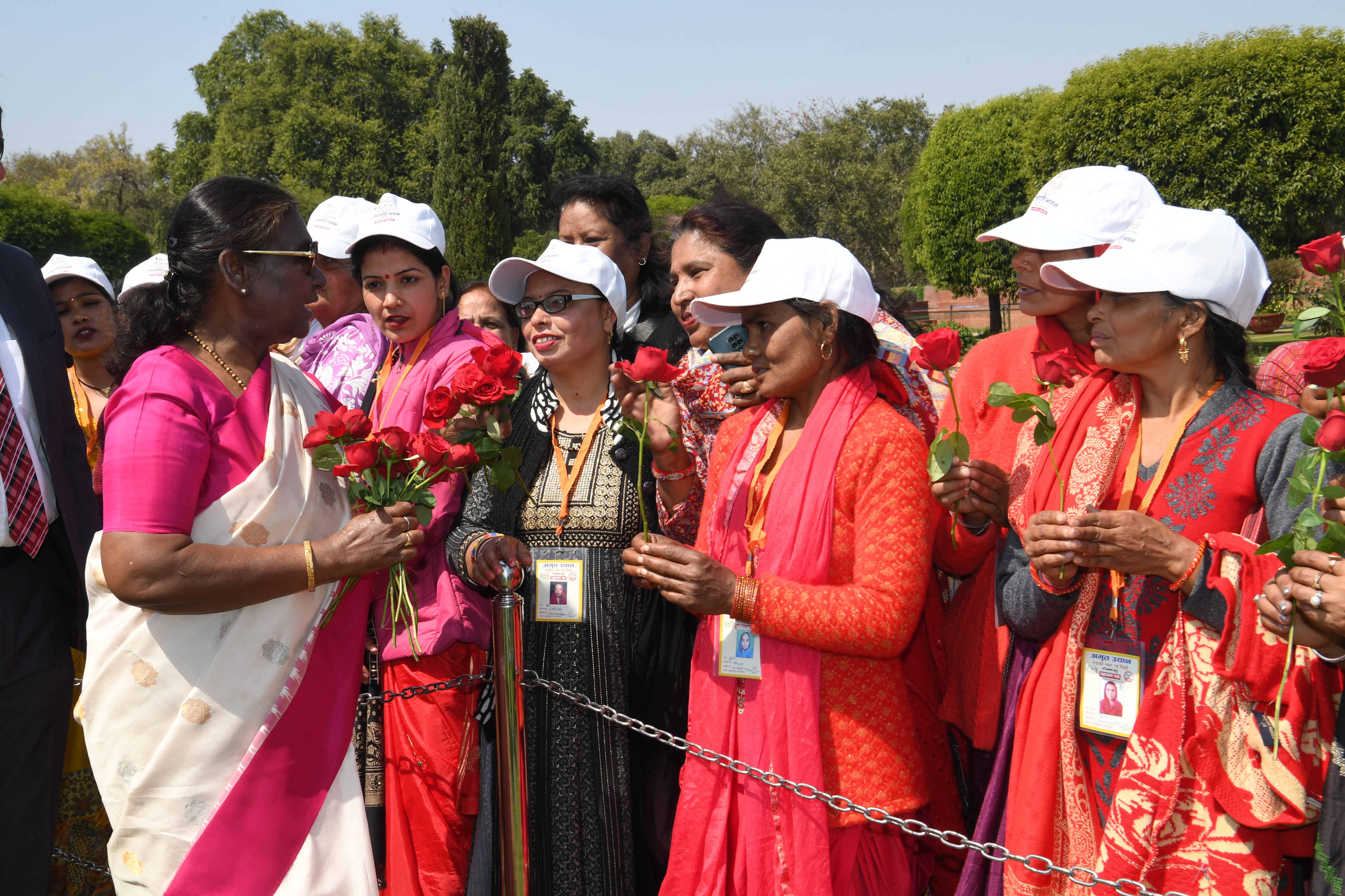 | Caption: | The President of India, Smt Droupadi Murmu met women visiting Amrit Udyan on the day reserved for the special category of Women Tribal Women SHGs-I 08-03-2024 |