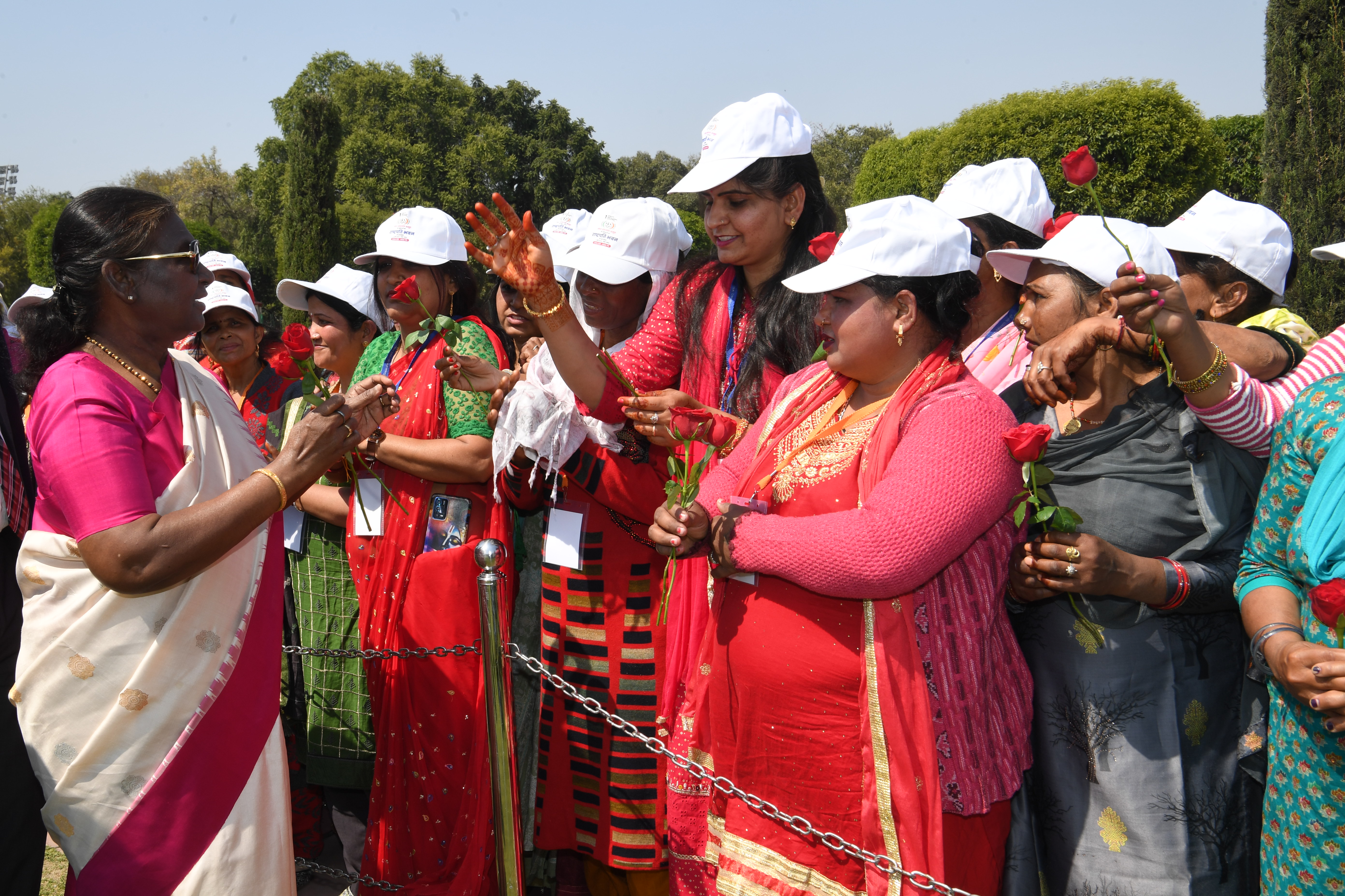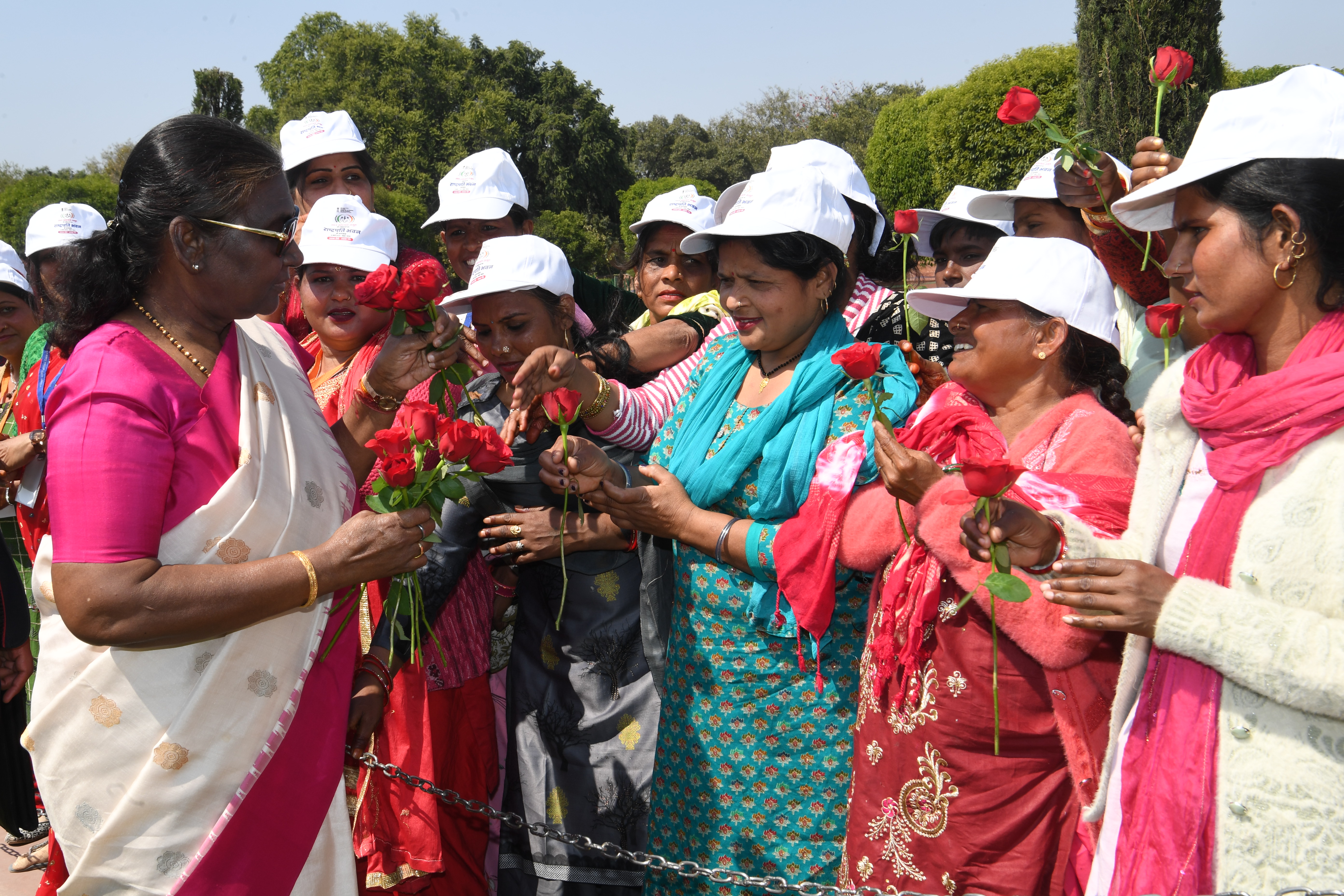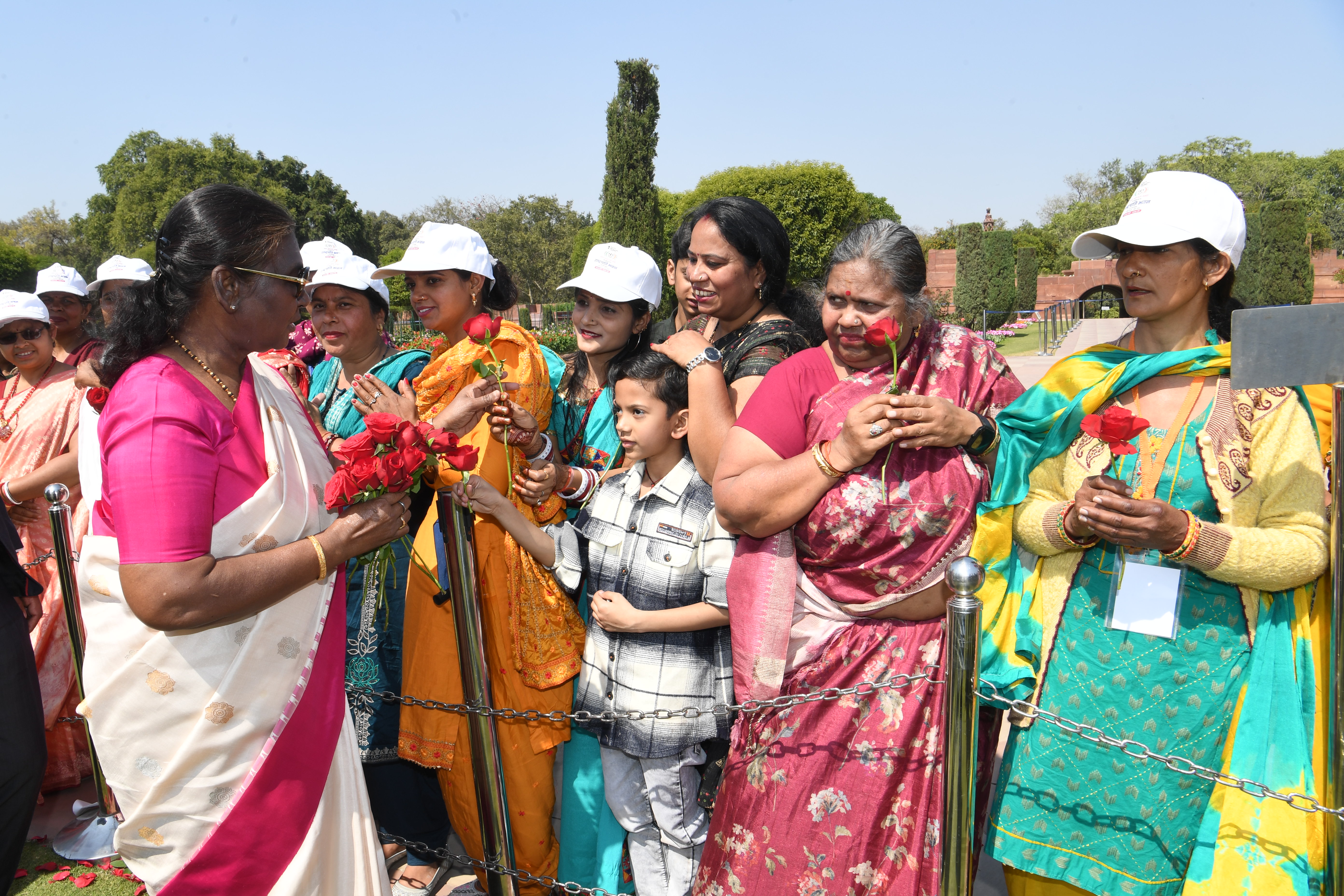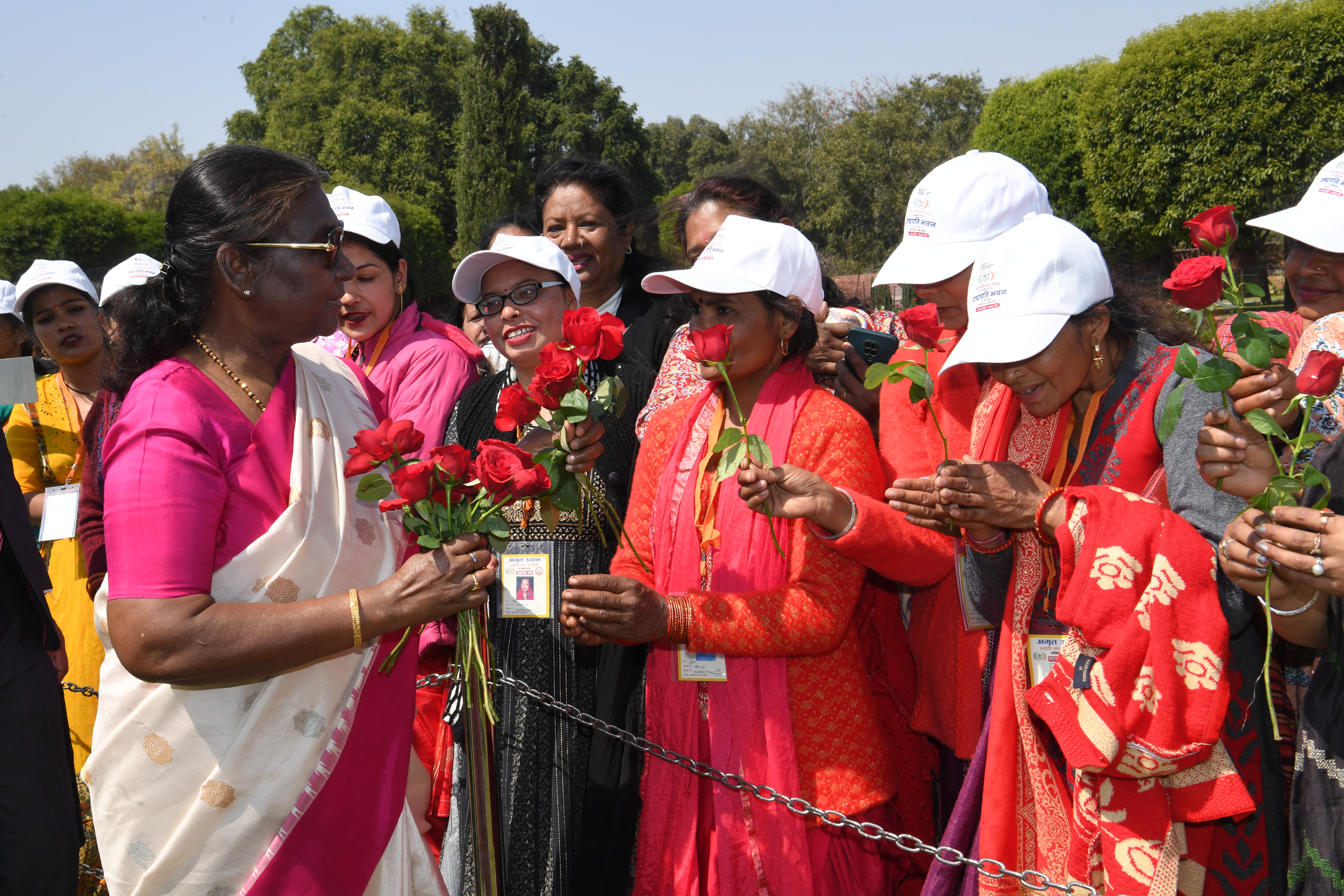 | Caption: | The President of India, Smt Droupadi Murmu met women visiting Amrit Udyan on the day reserved for the special category of Women Tribal Women SHGs-I 08-03-2024 |