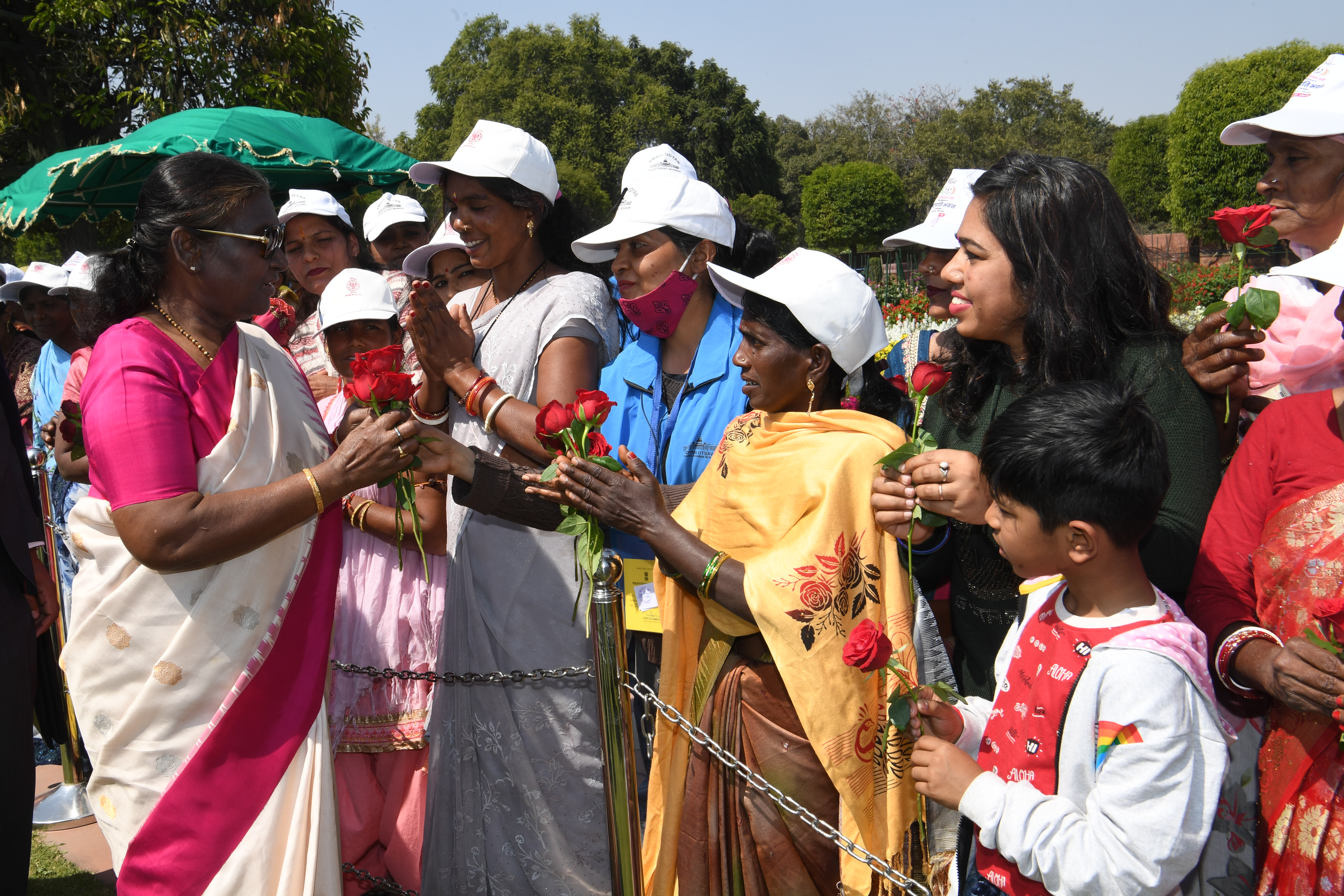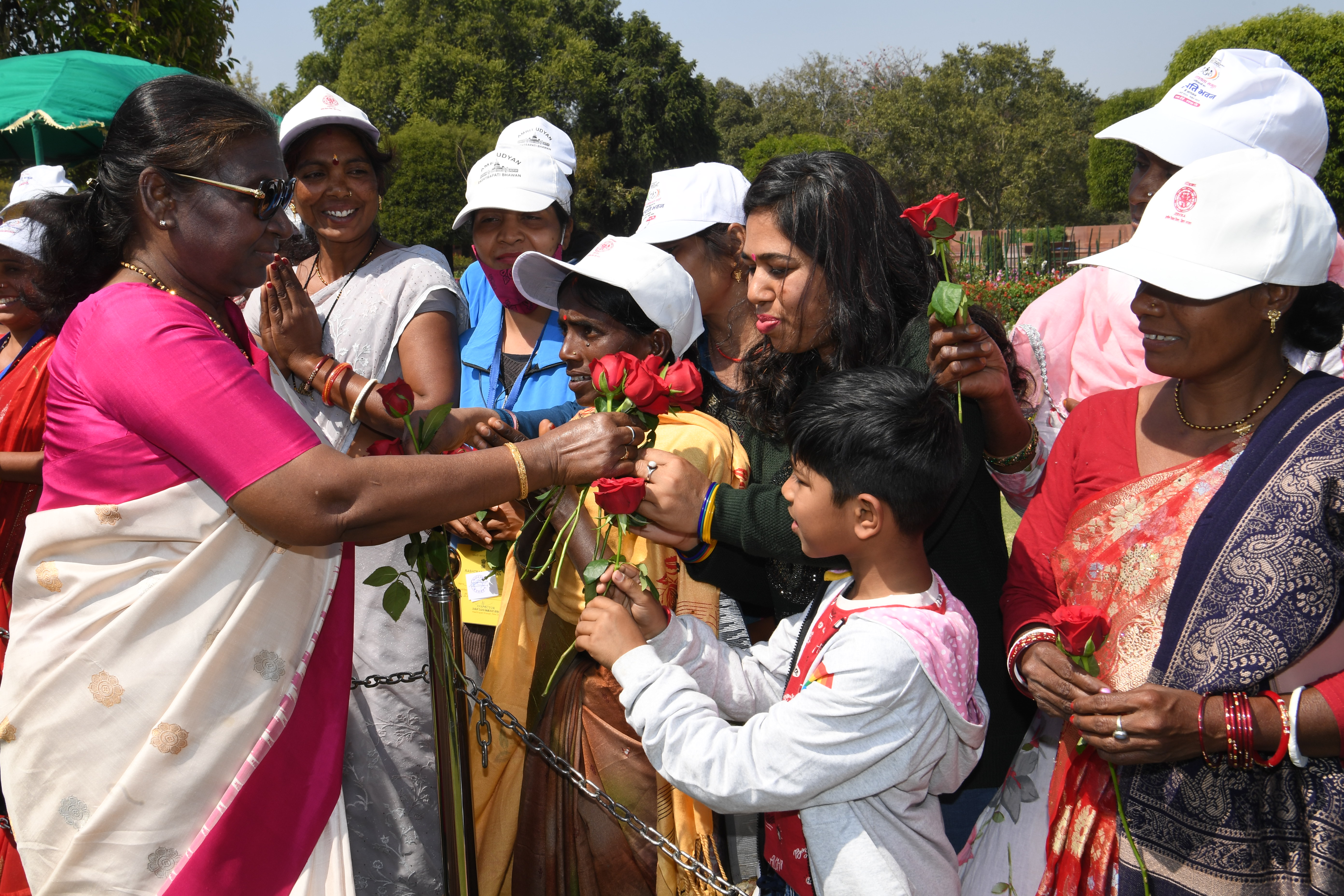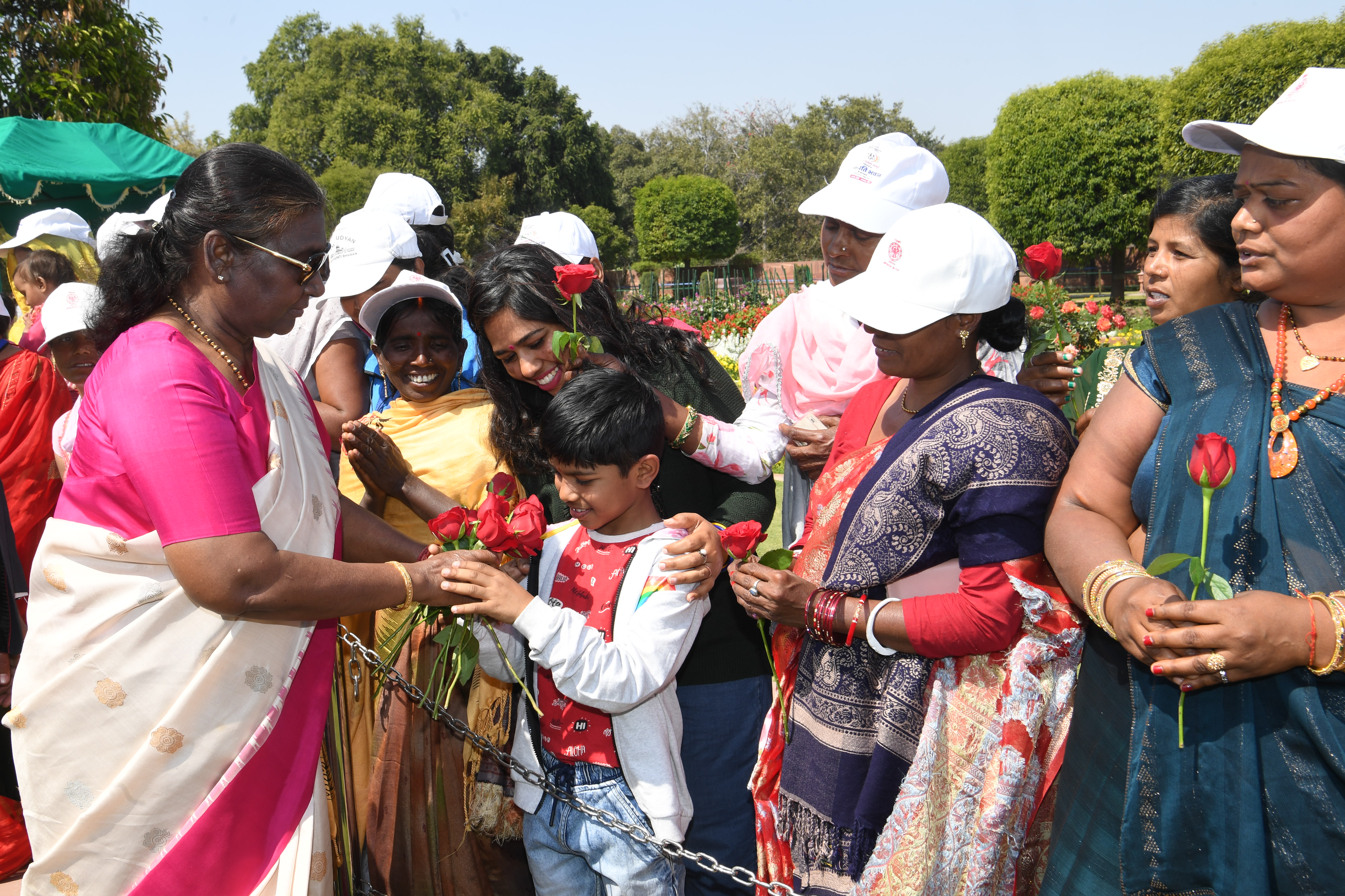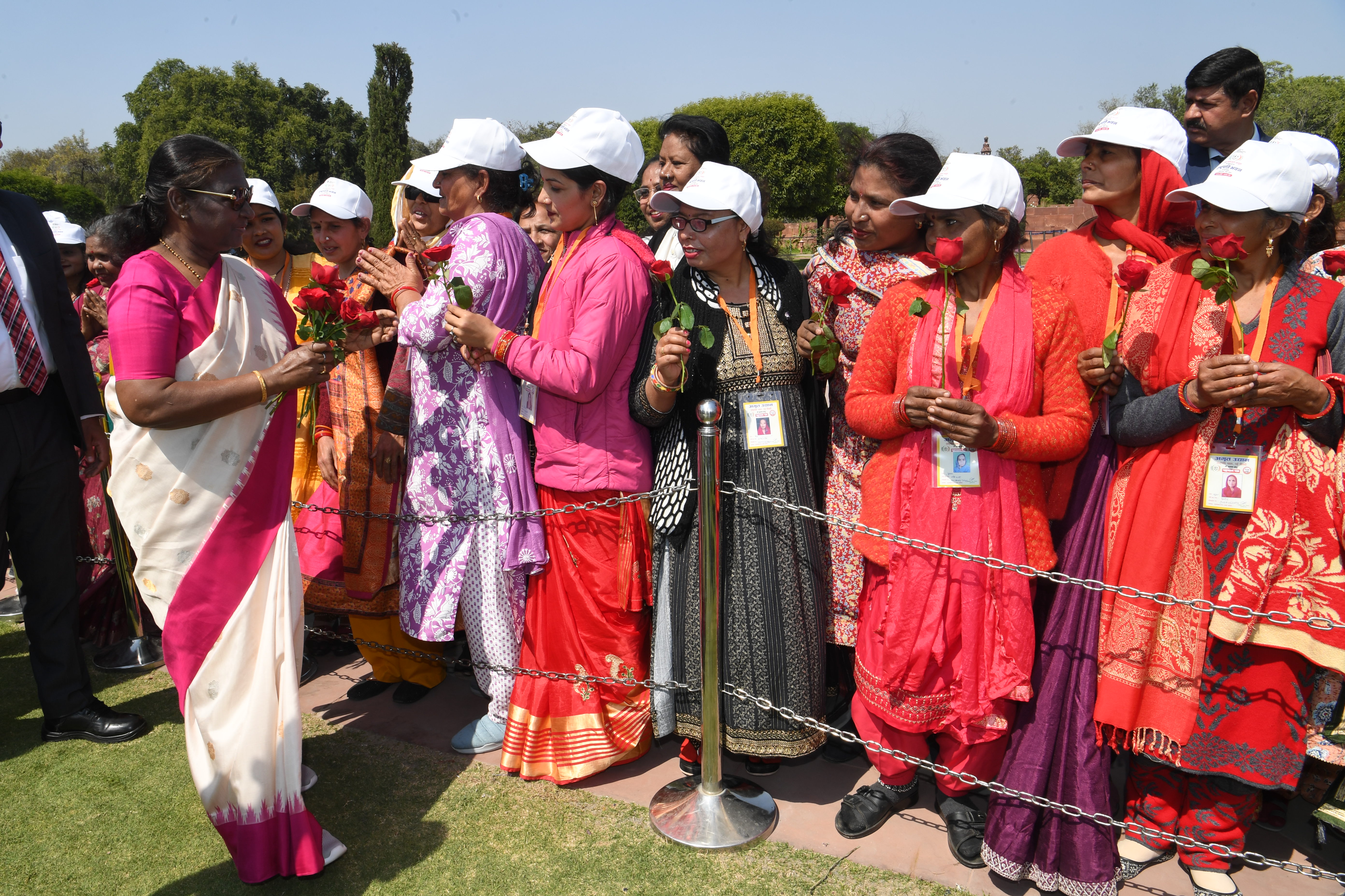 | Caption: | The President of India, Smt Droupadi Murmu met women visiting Amrit Udyan on the day reserved for the special category of Women Tribal Women SHGs-I 08-03-2024 |