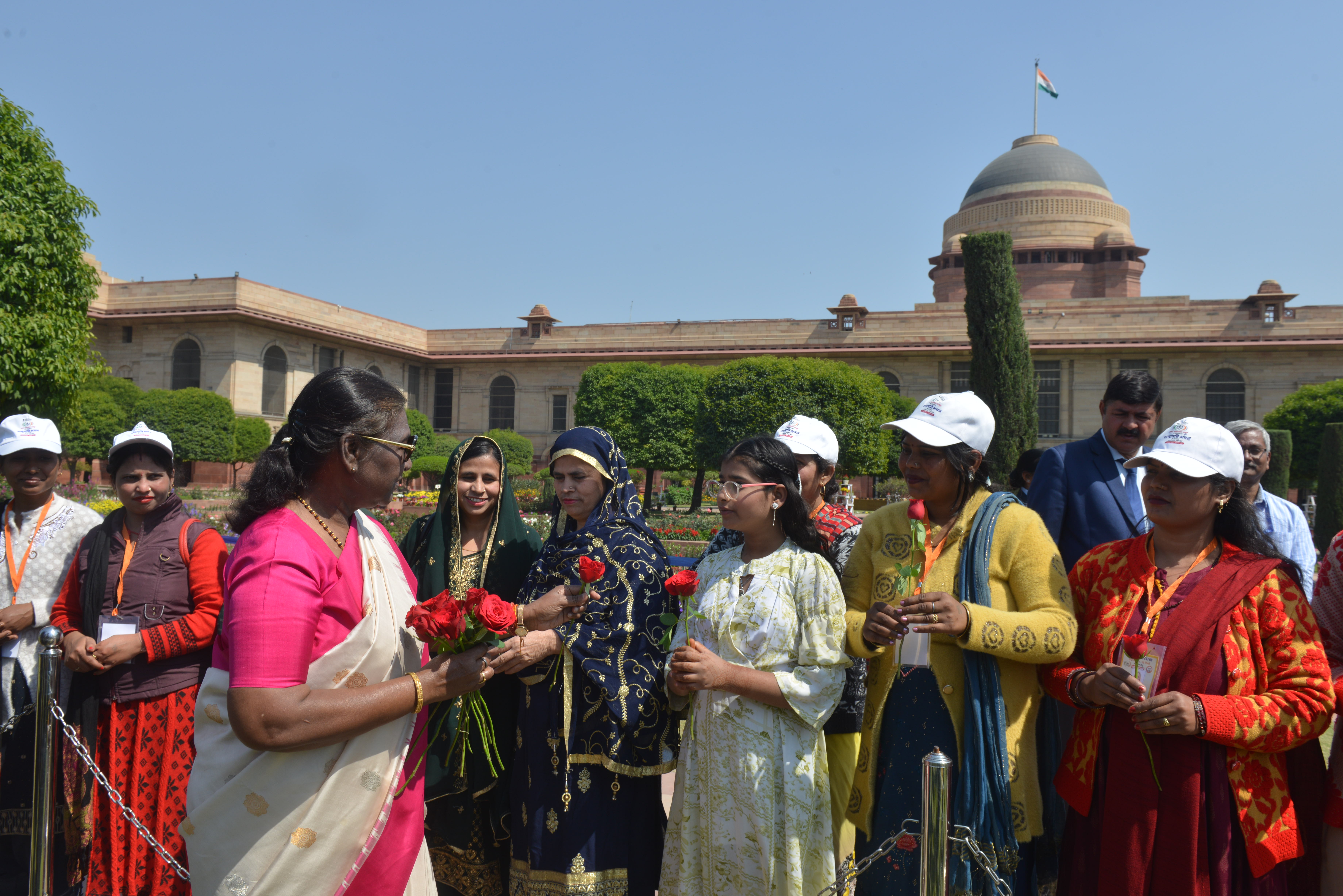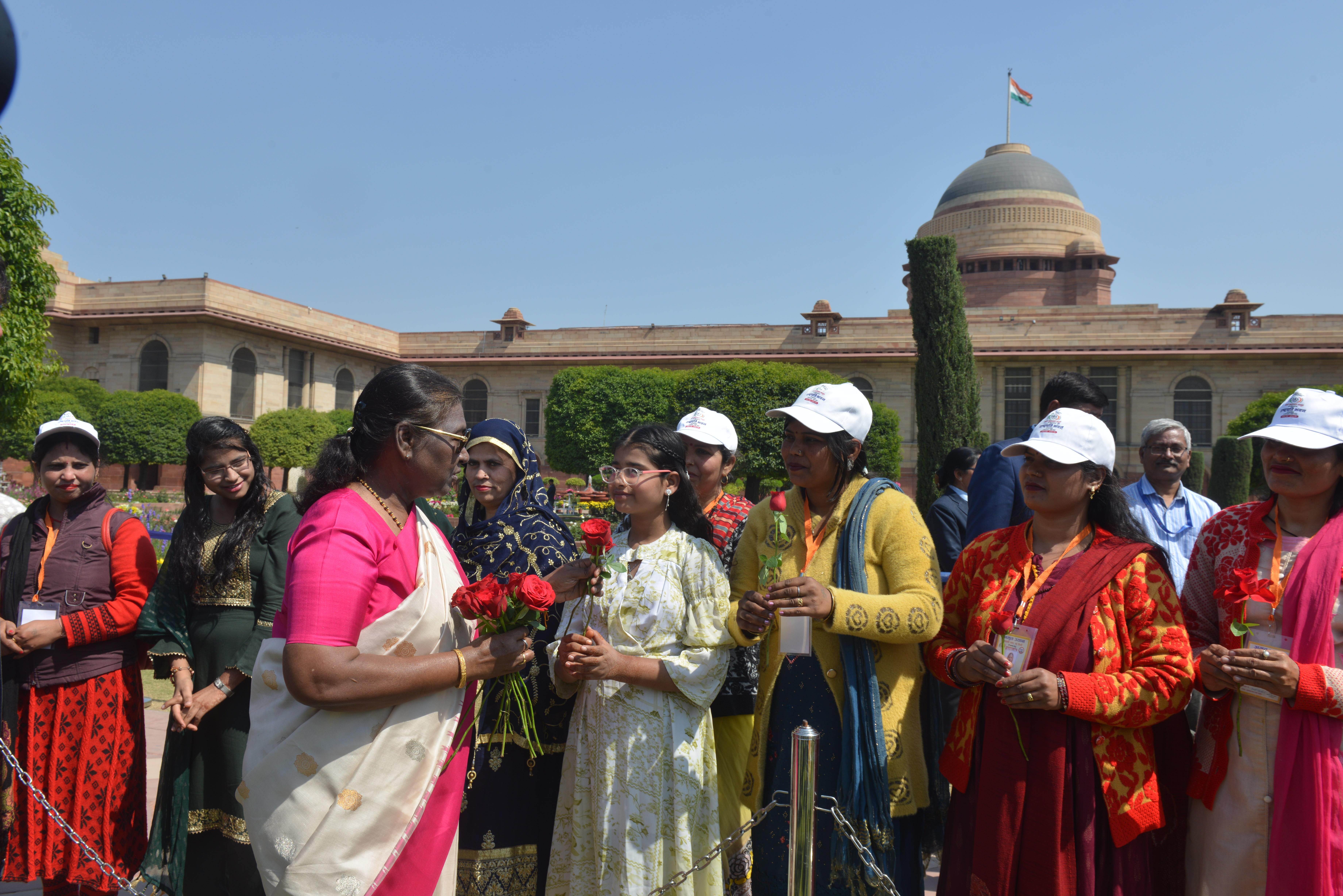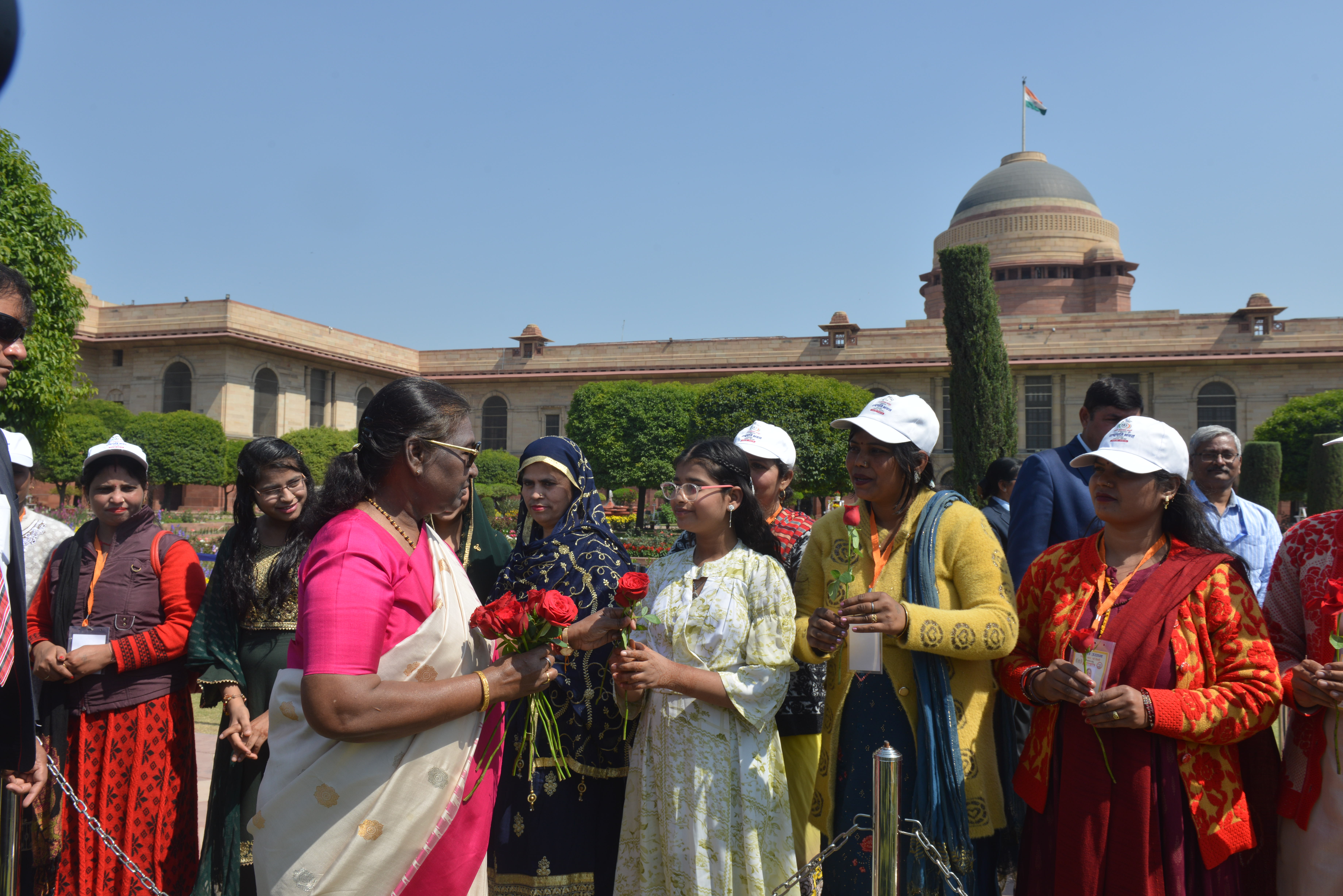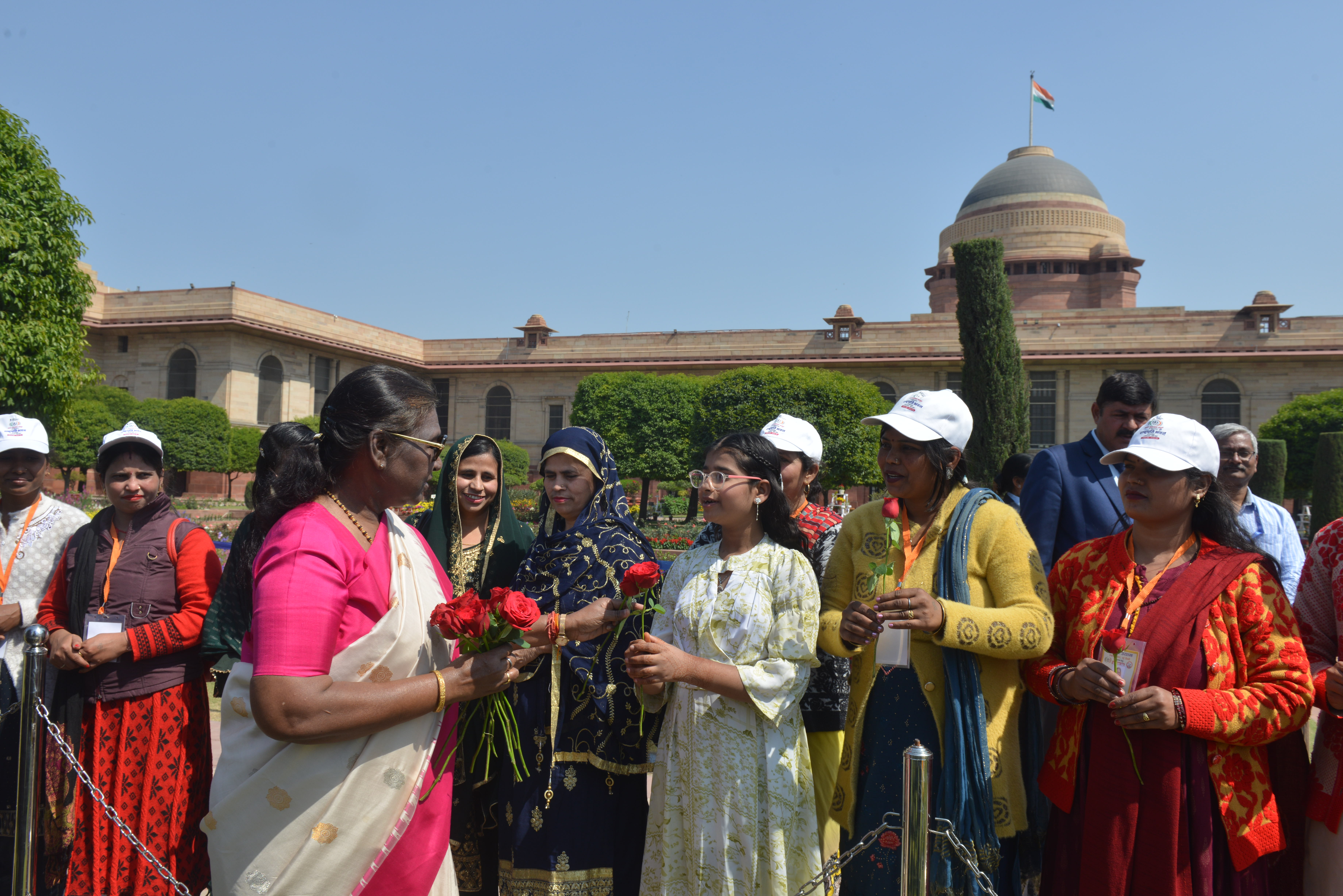 | Caption: | The President of India, Smt Droupadi Murmu met women visiting Amrit Udyan on the day reserved for the special category of Women Tribal Women SHGs-I 08-03-2024 |