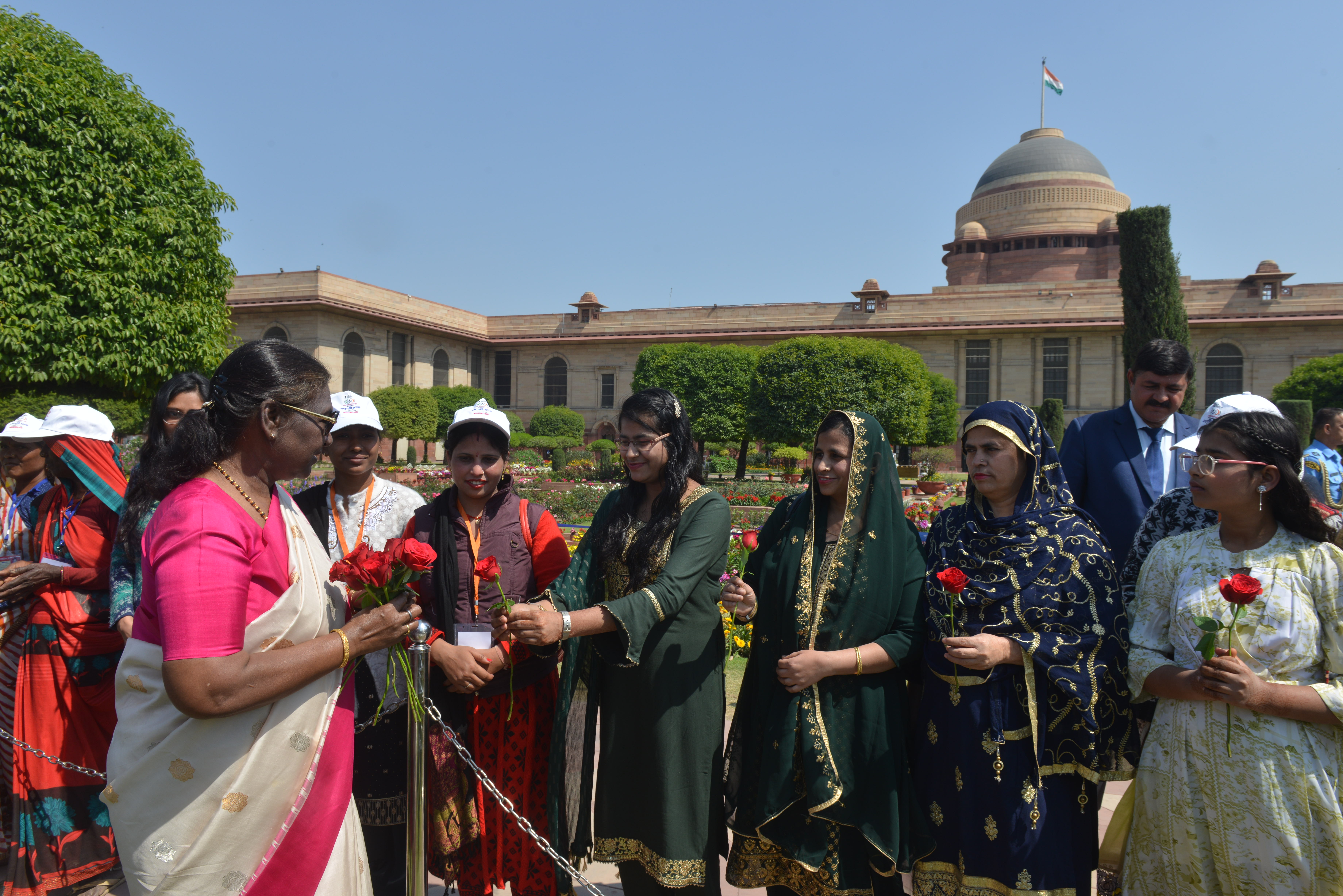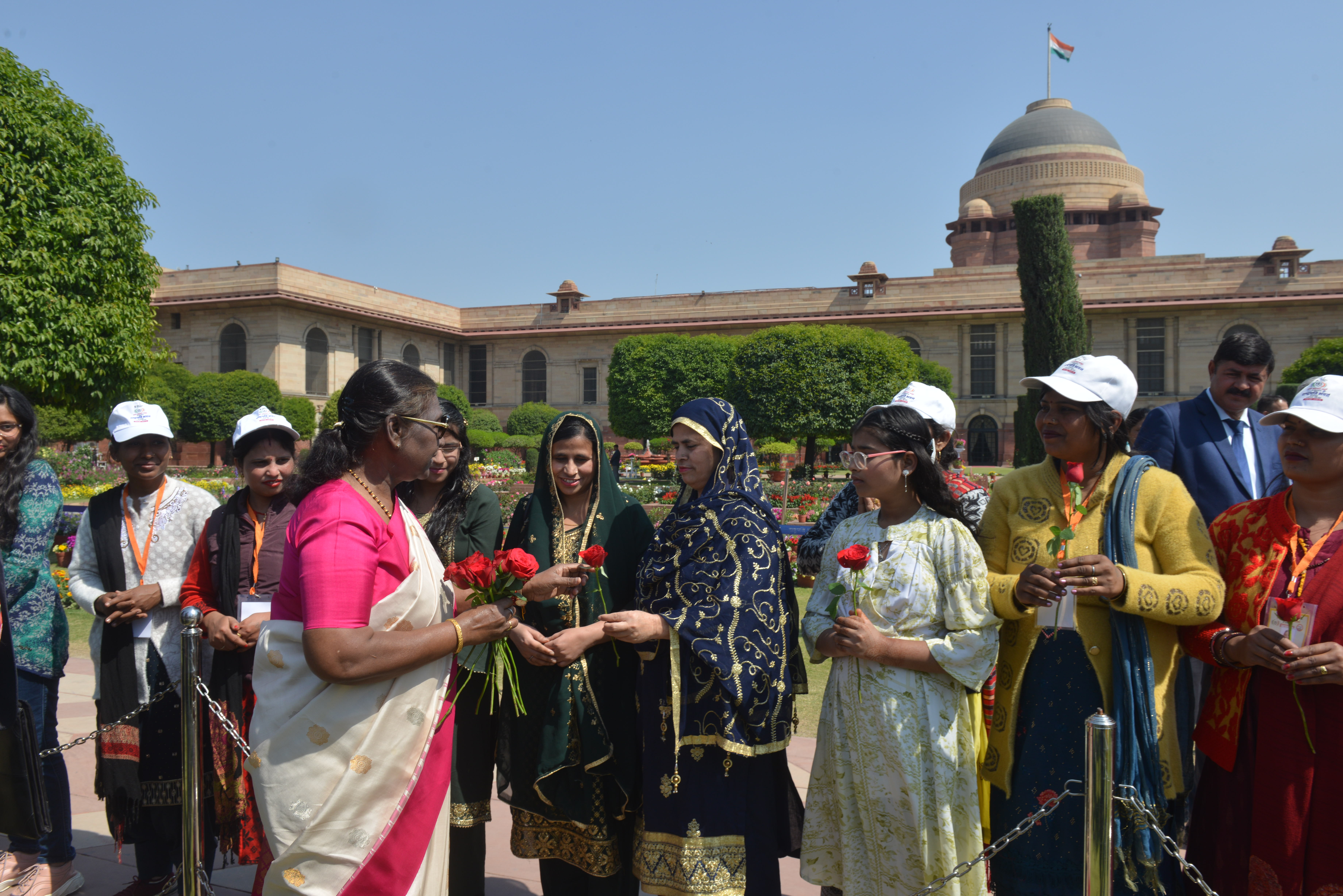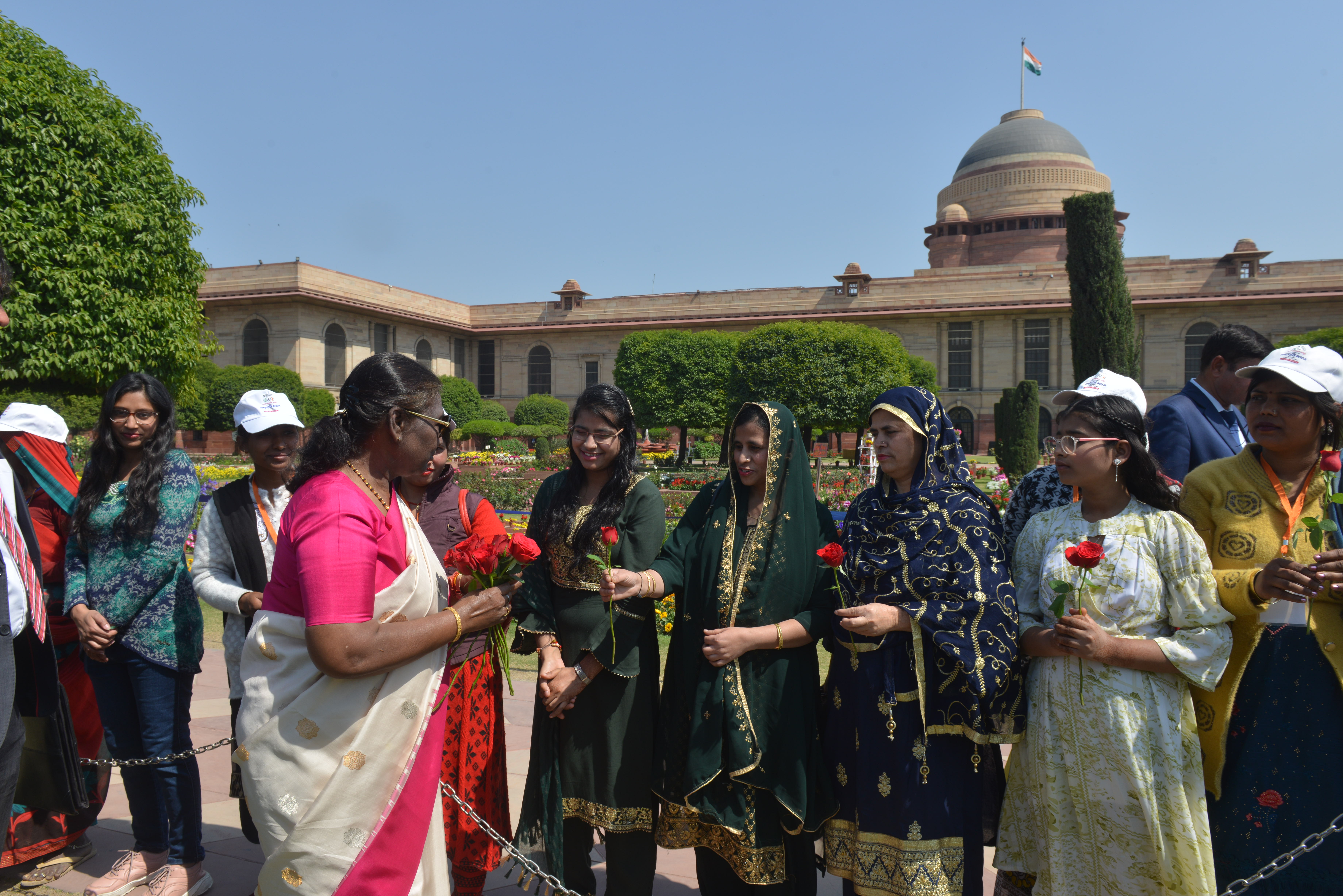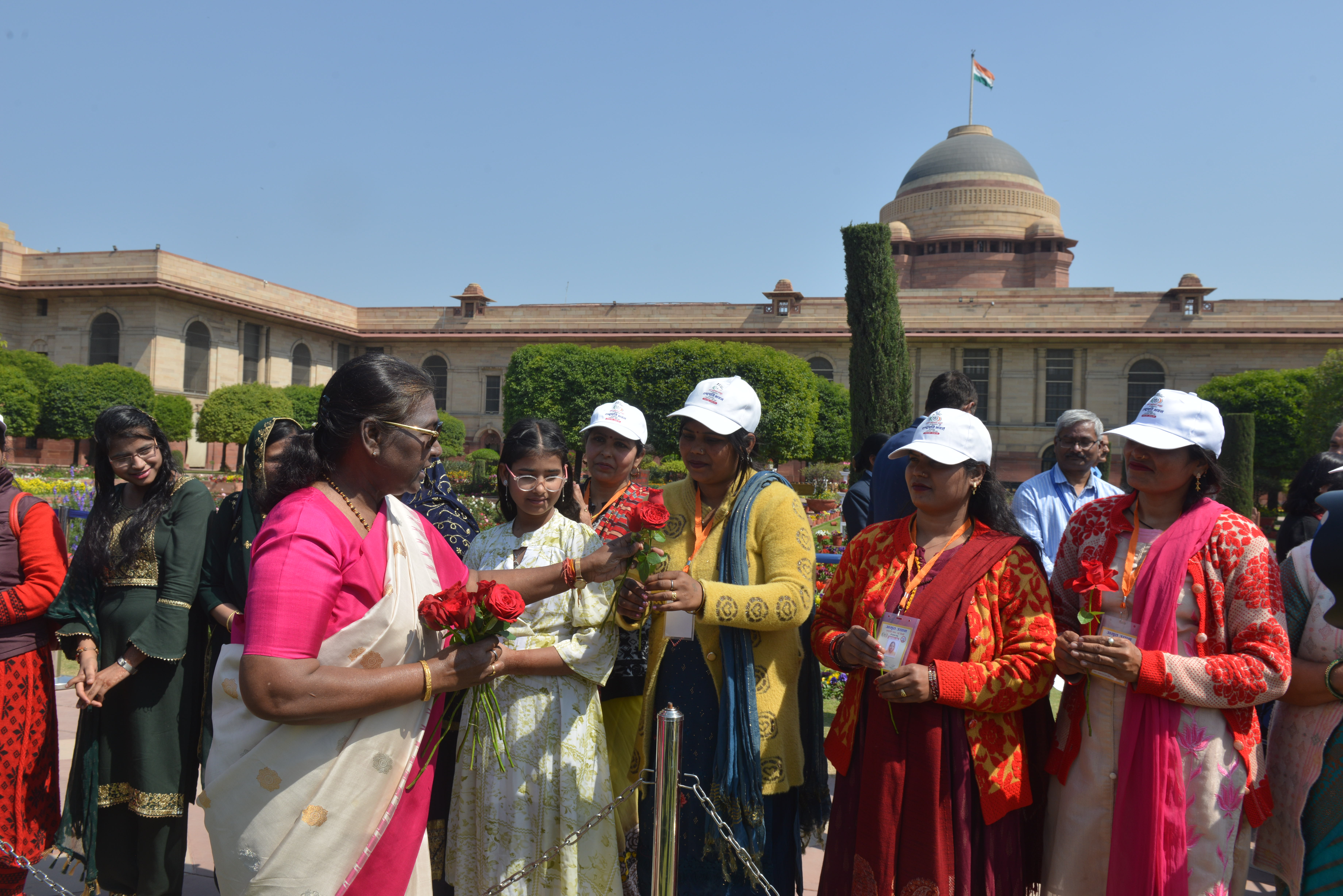 | Caption: | The President of India, Smt Droupadi Murmu met women visiting Amrit Udyan on the day reserved for the special category of Women Tribal Women SHGs-I 08-03-2024 |