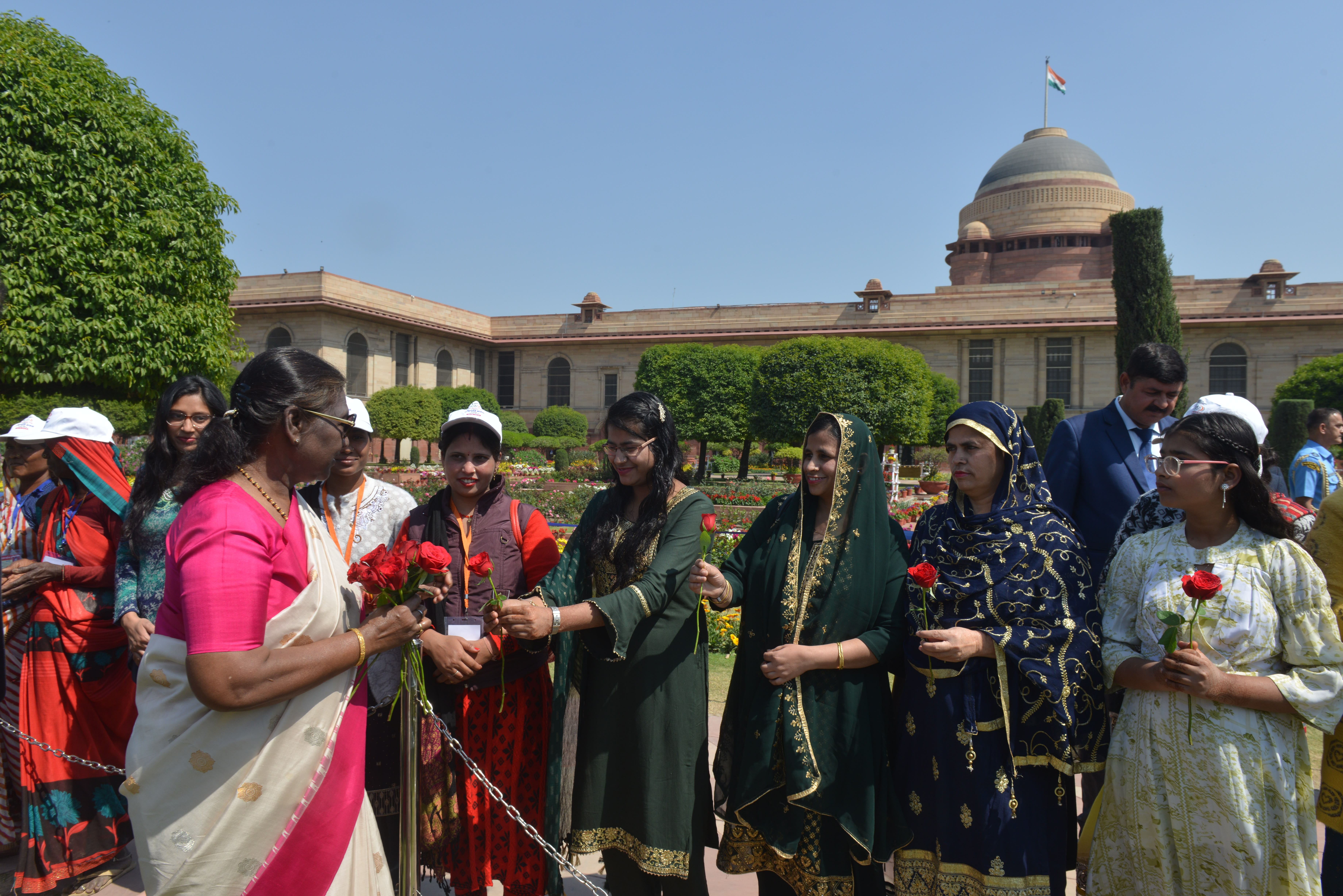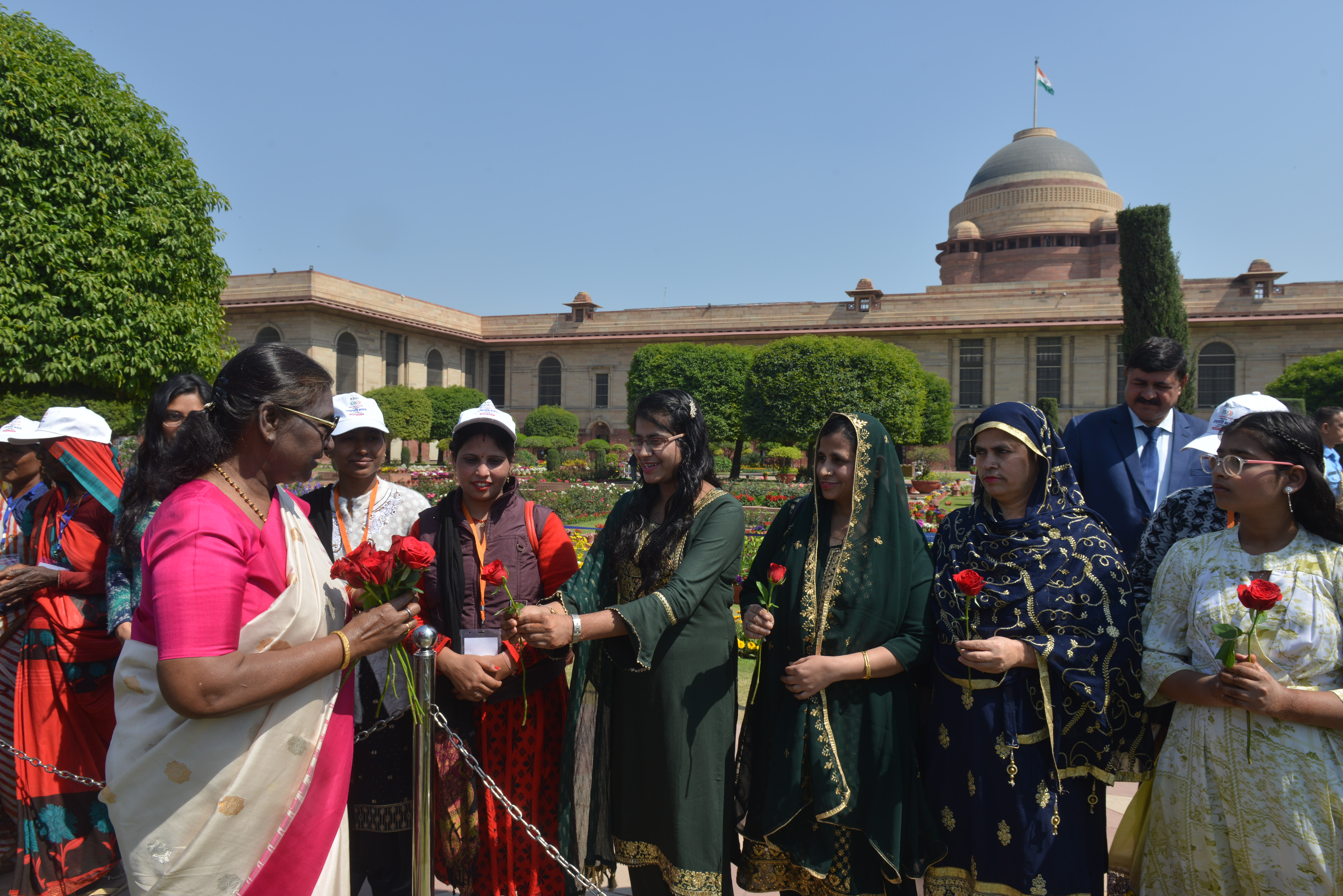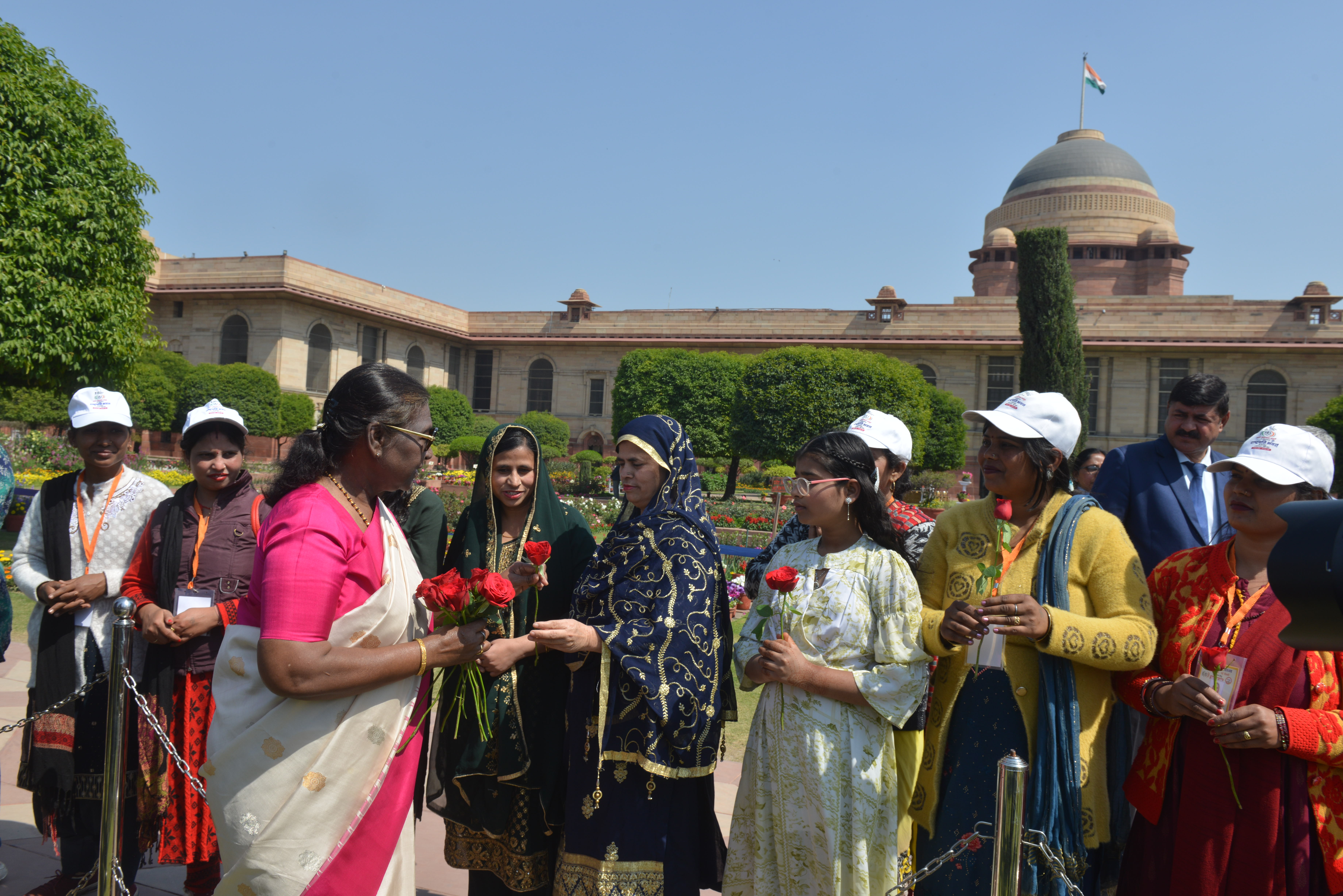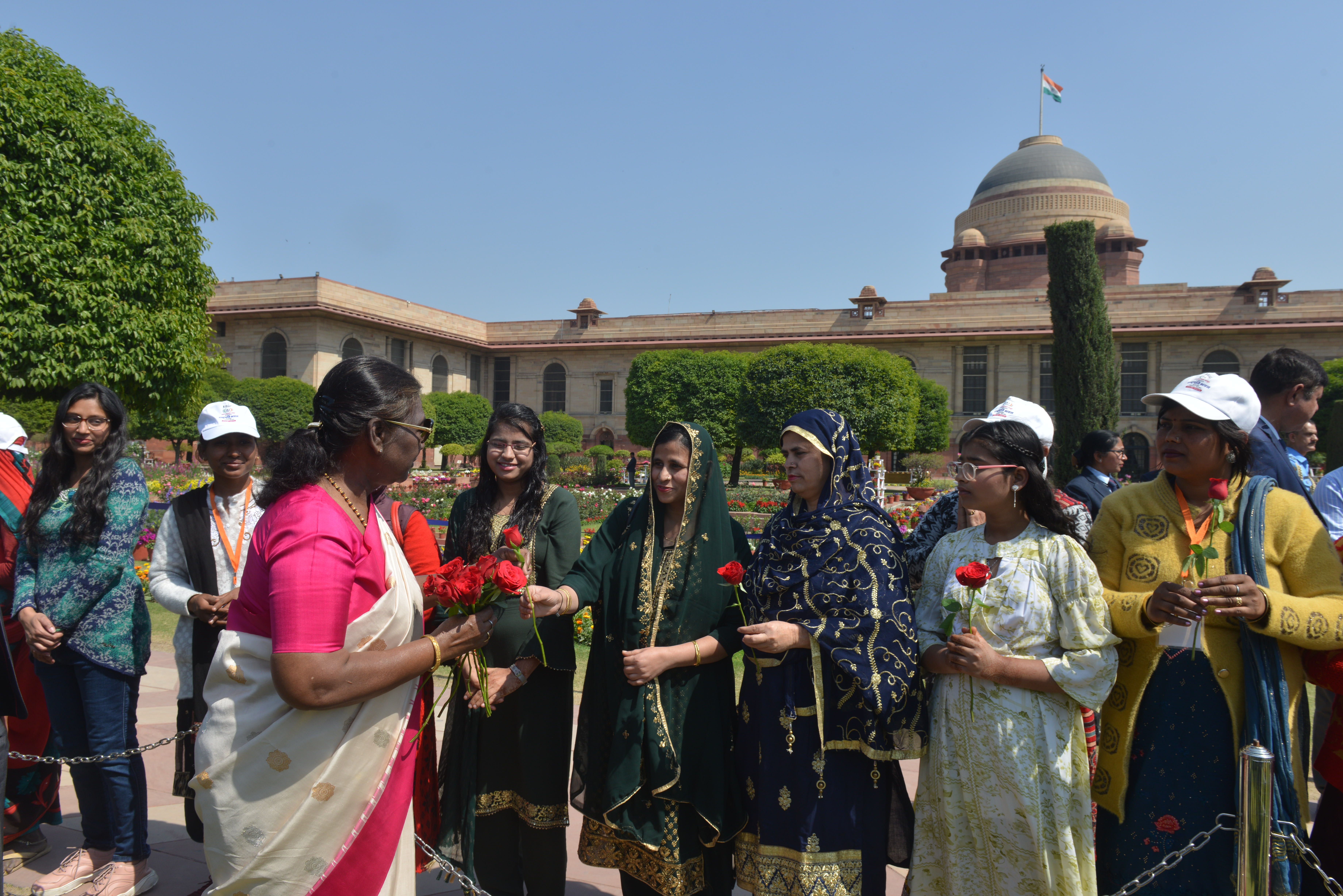 | Caption: | The President of India, Smt Droupadi Murmu met women visiting Amrit Udyan on the day reserved for the special category of Women Tribal Women SHGs-I 08-03-2024 |