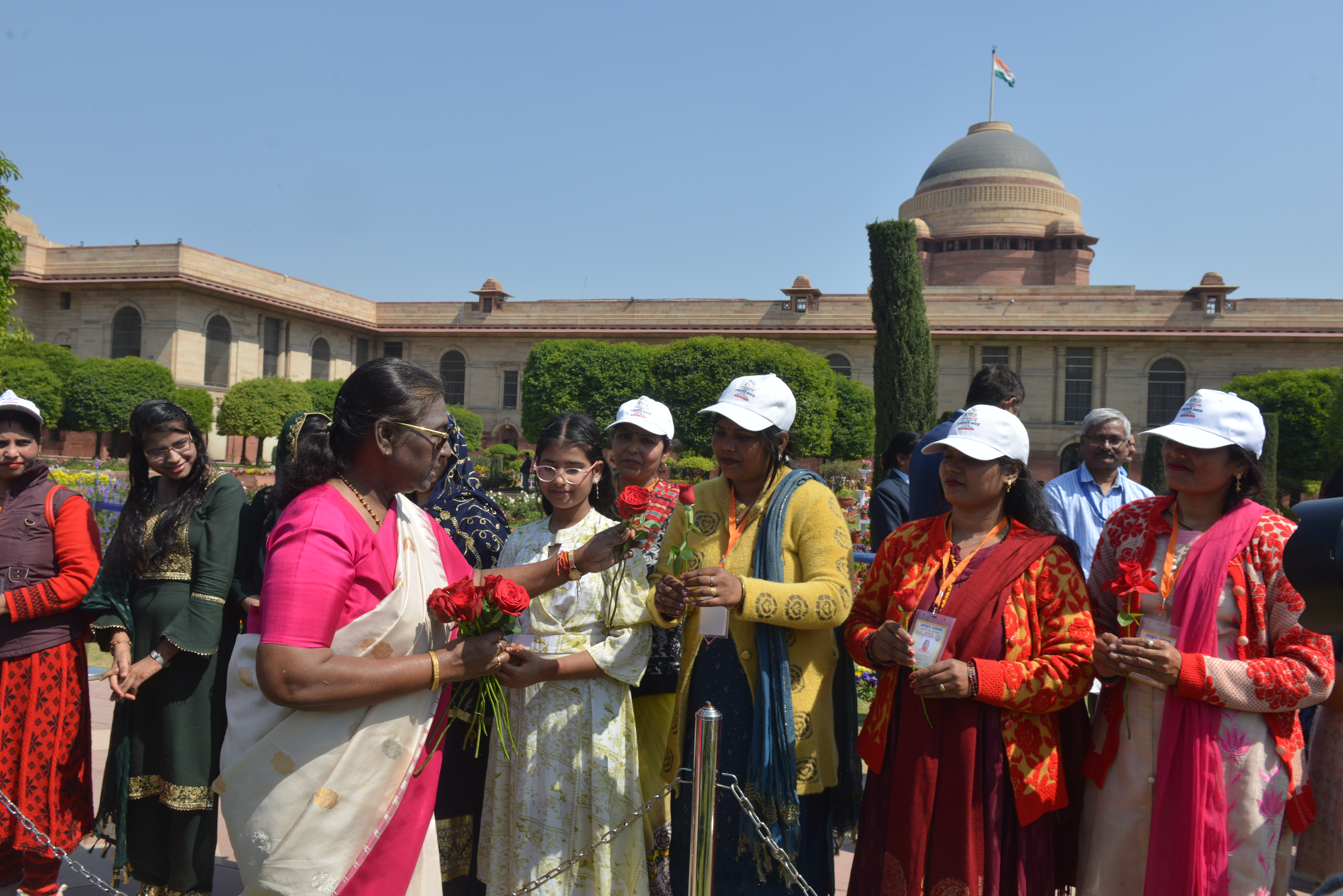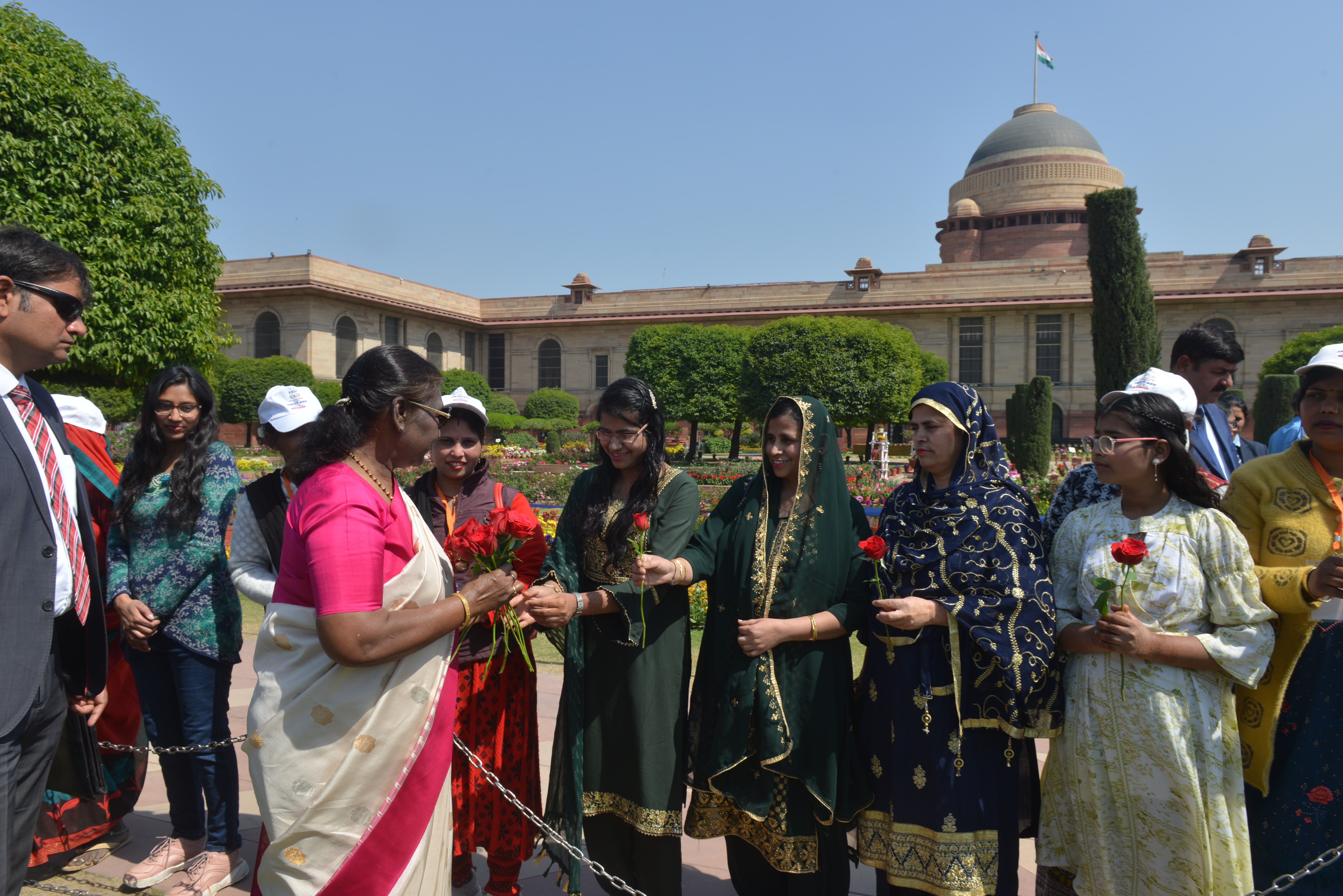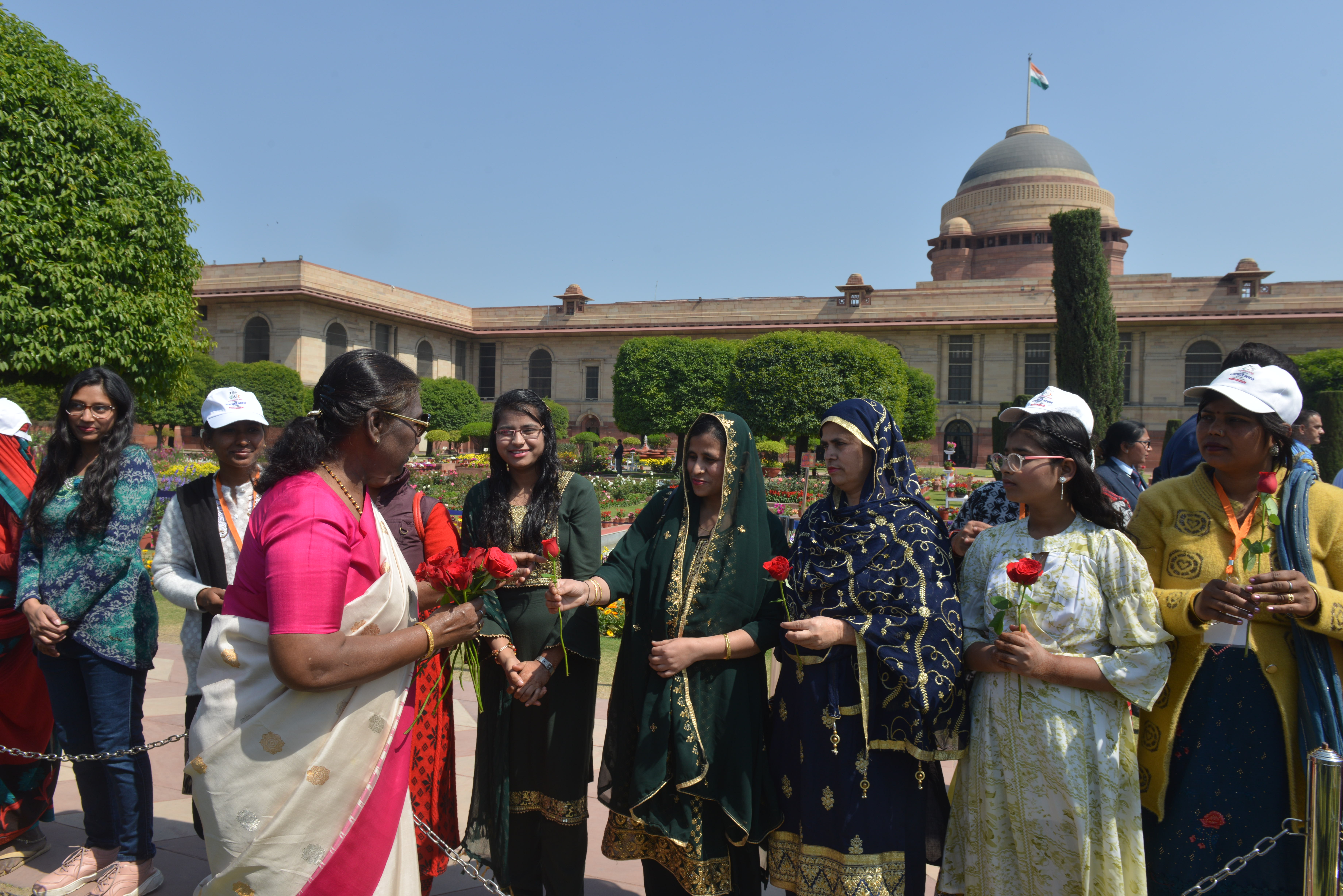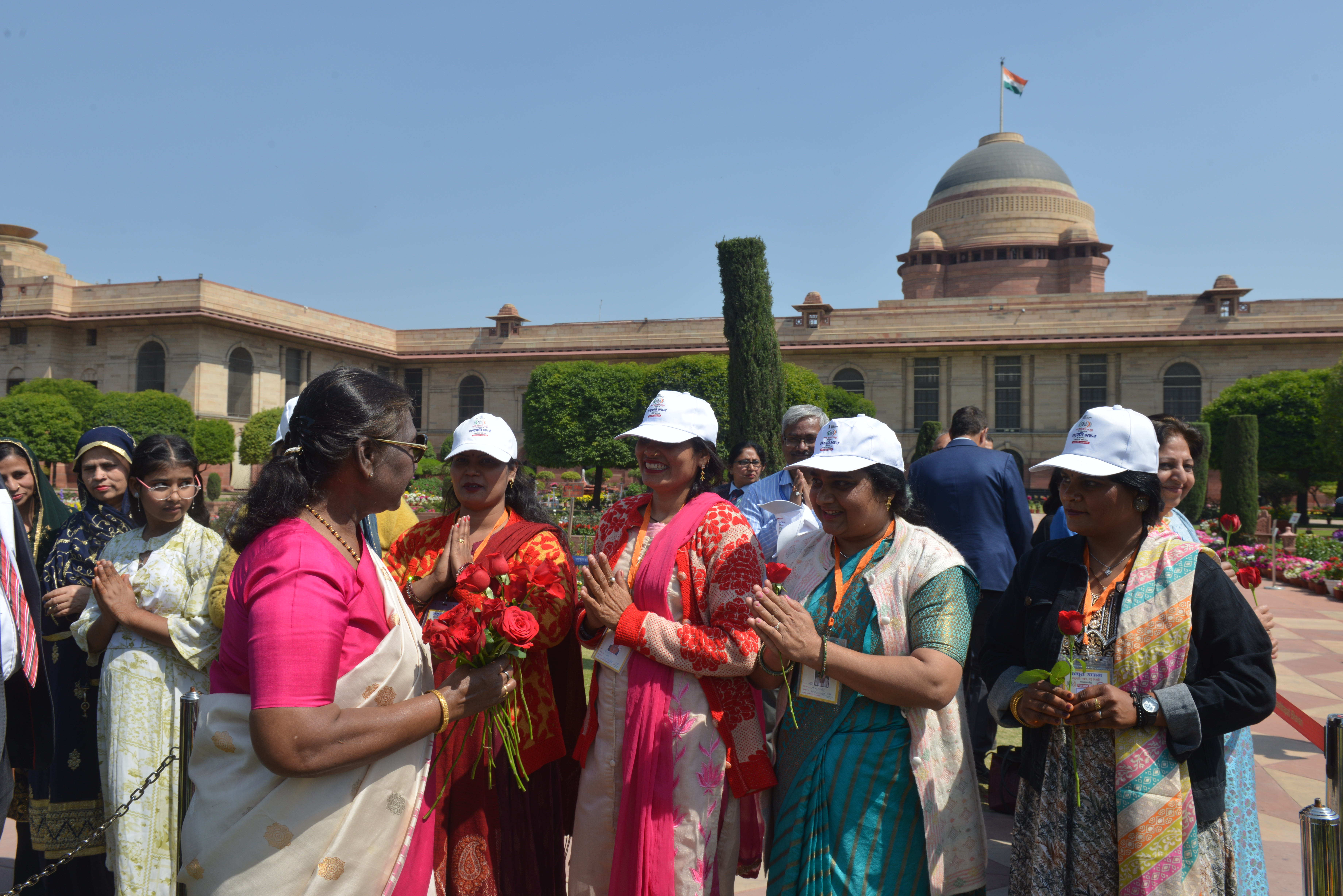 | Caption: | The President of India, Smt Droupadi Murmu met women visiting Amrit Udyan on the day reserved for the special category of Women Tribal Women SHGs-I 08-03-2024 |
