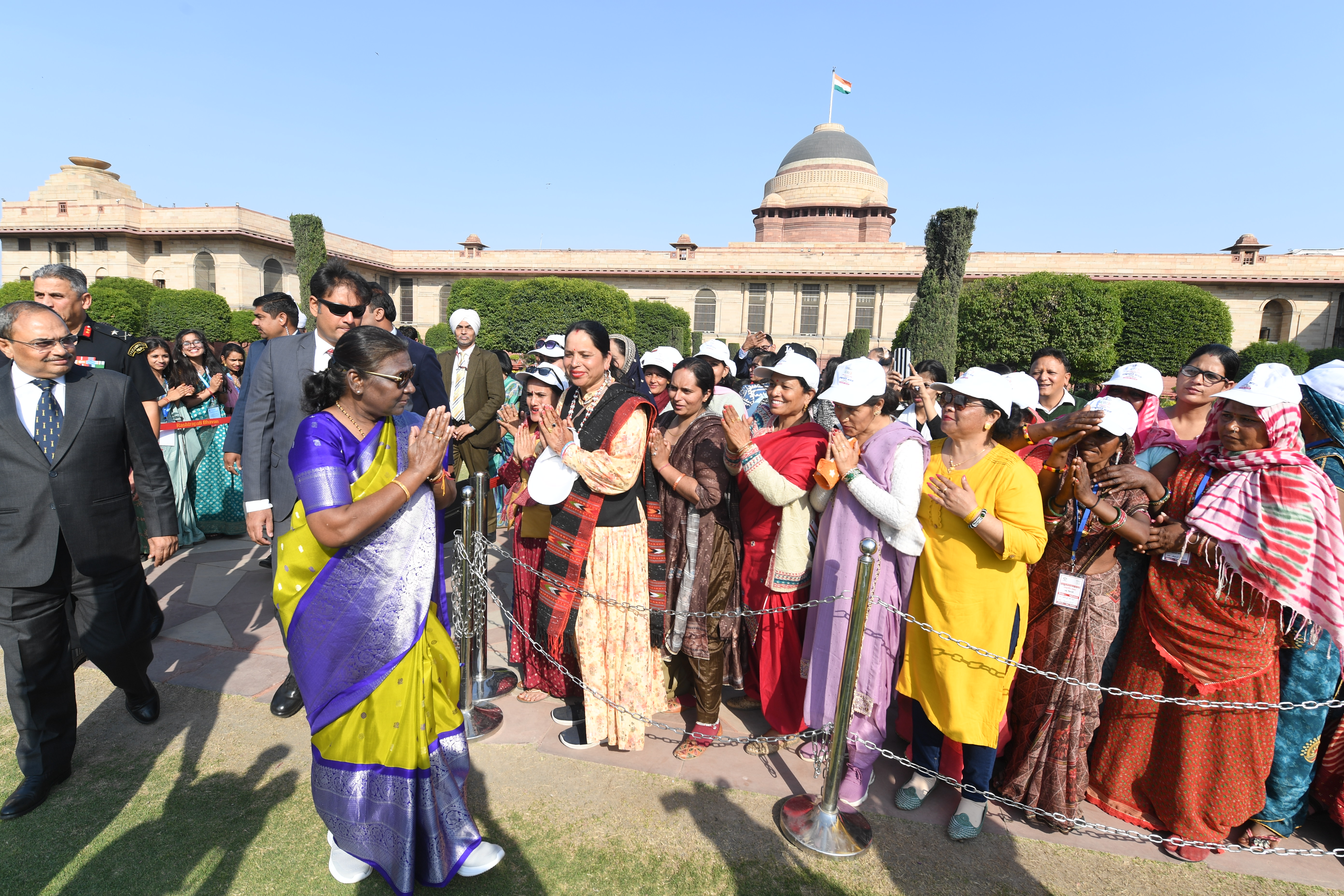 | Caption: | The President of India, Smt Droupadi Murmu met women visiting Amrit Udyan on the day reserved for the special category of Women Tribal Women SHGs-II 08-03-2024 |
