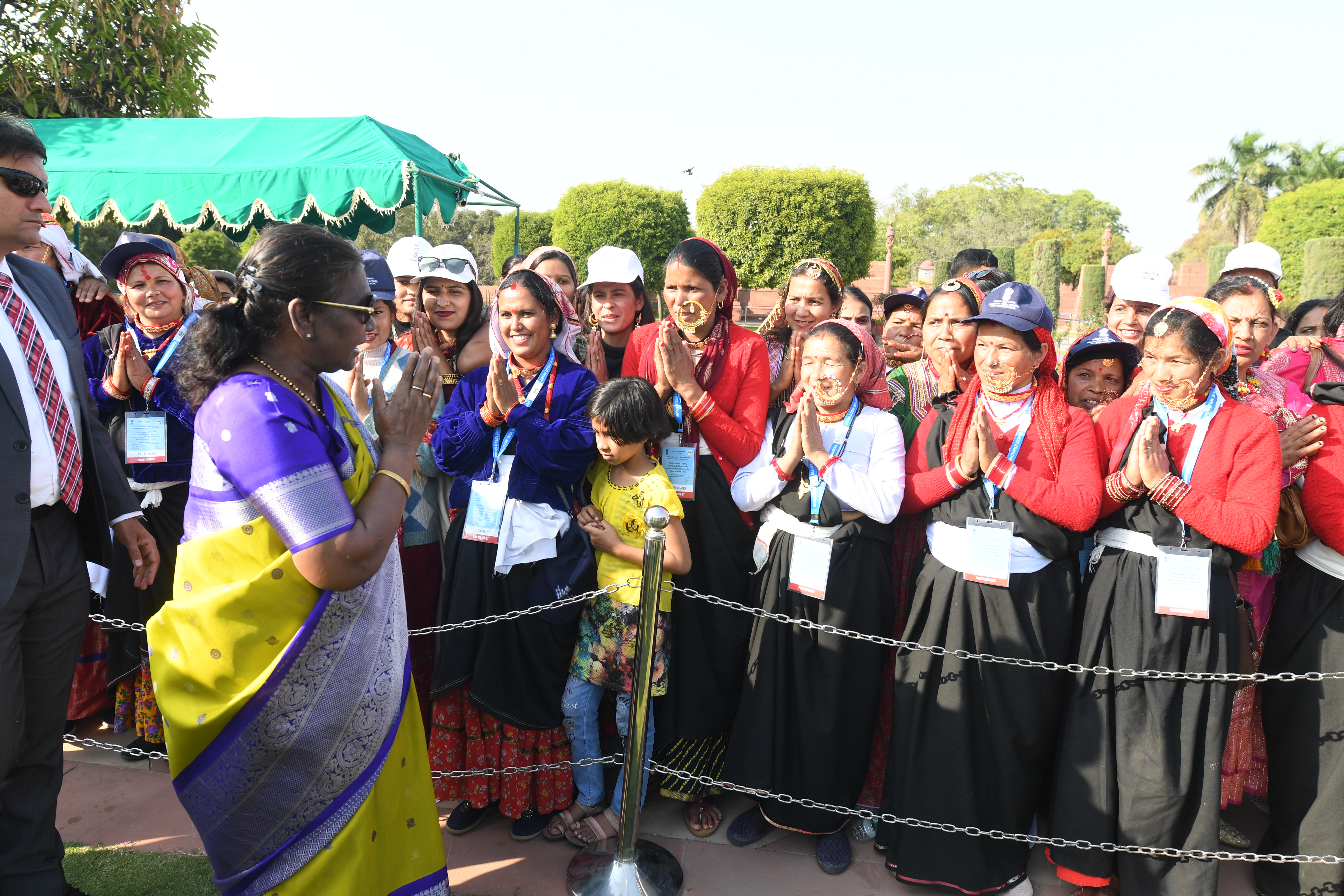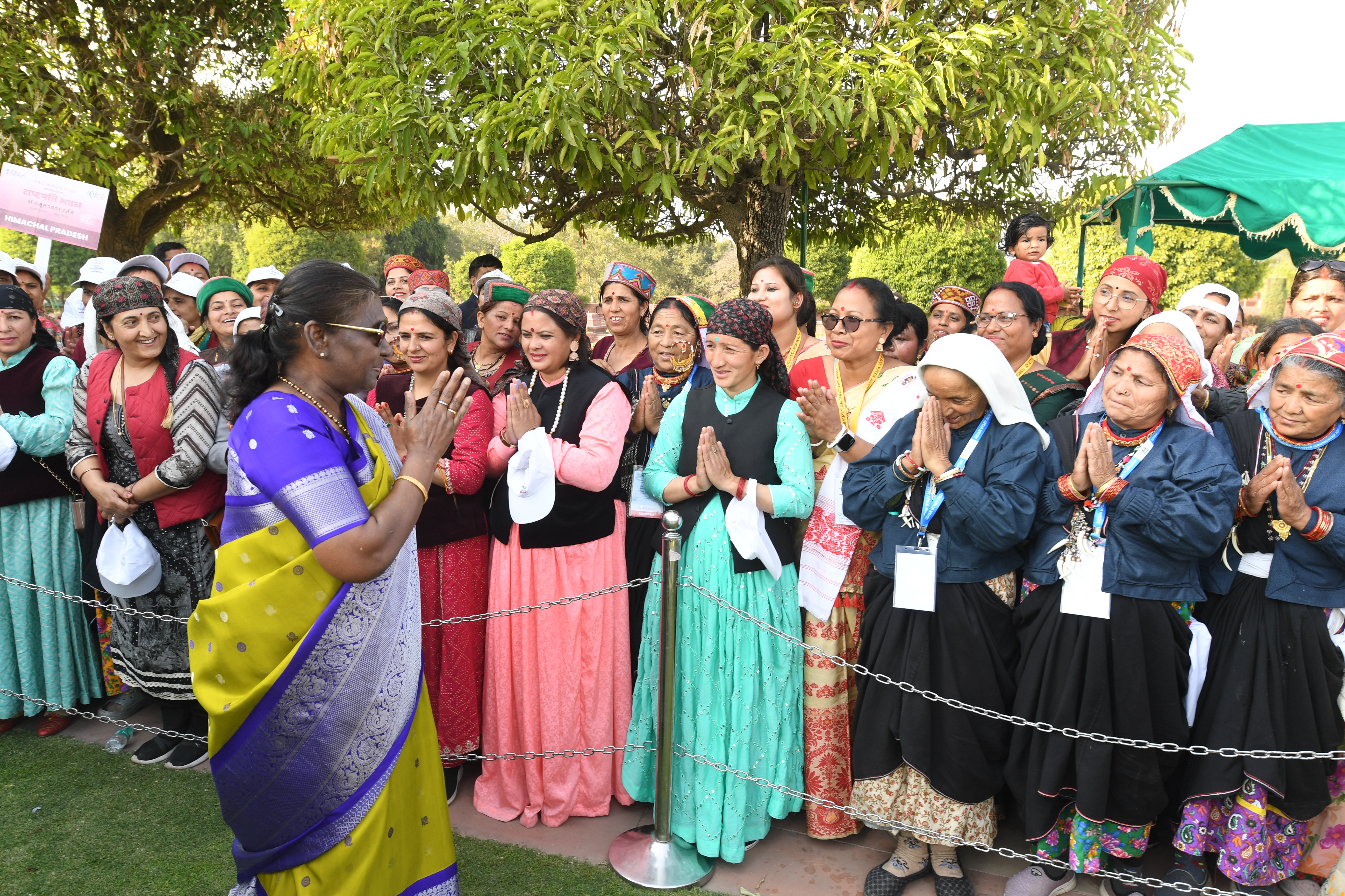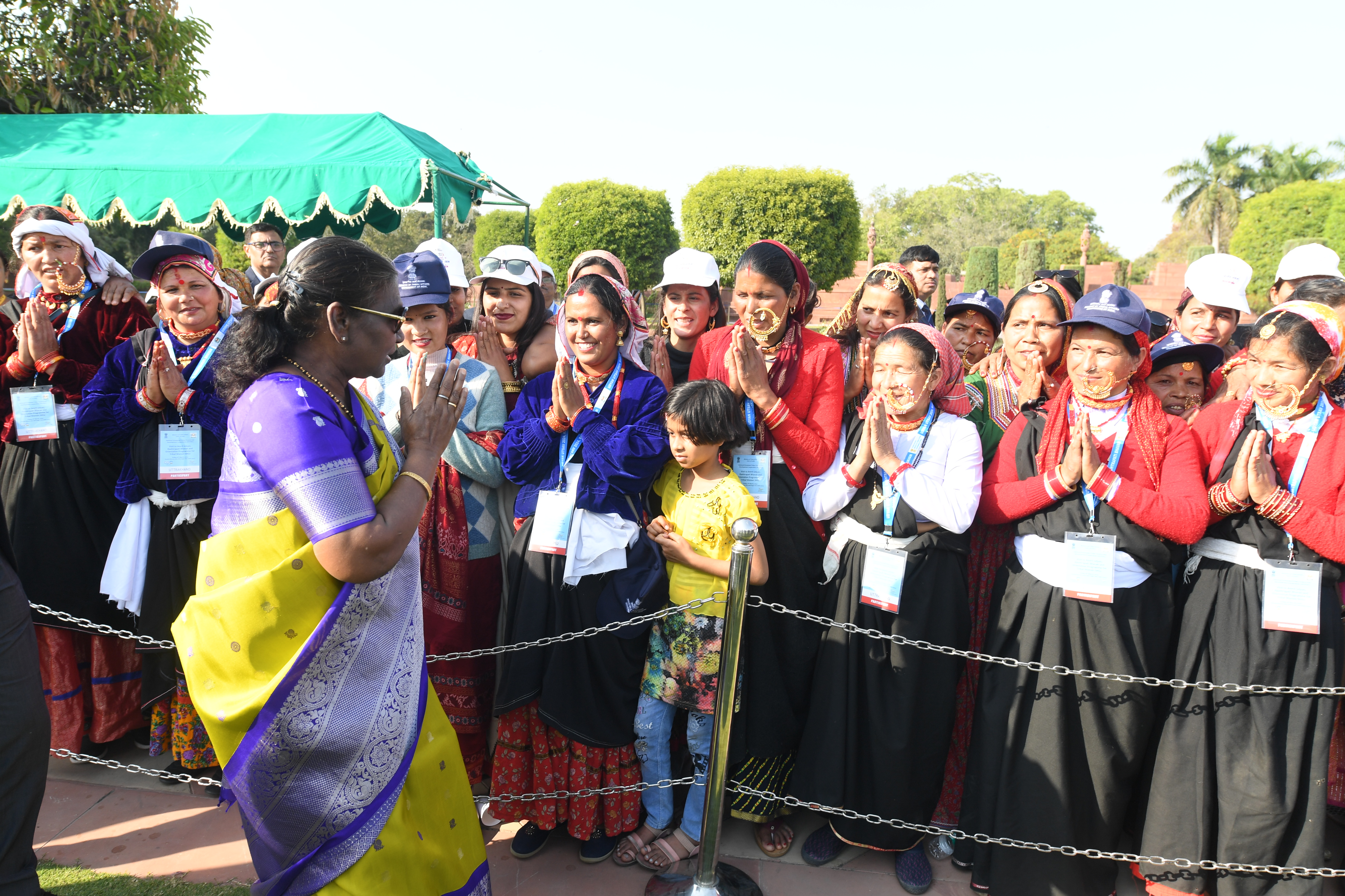 | Caption: | The President of India, Smt Droupadi Murmu met women visiting Amrit Udyan on the day reserved for the special category of Women Tribal Women SHGs-II 08-03-2024 |