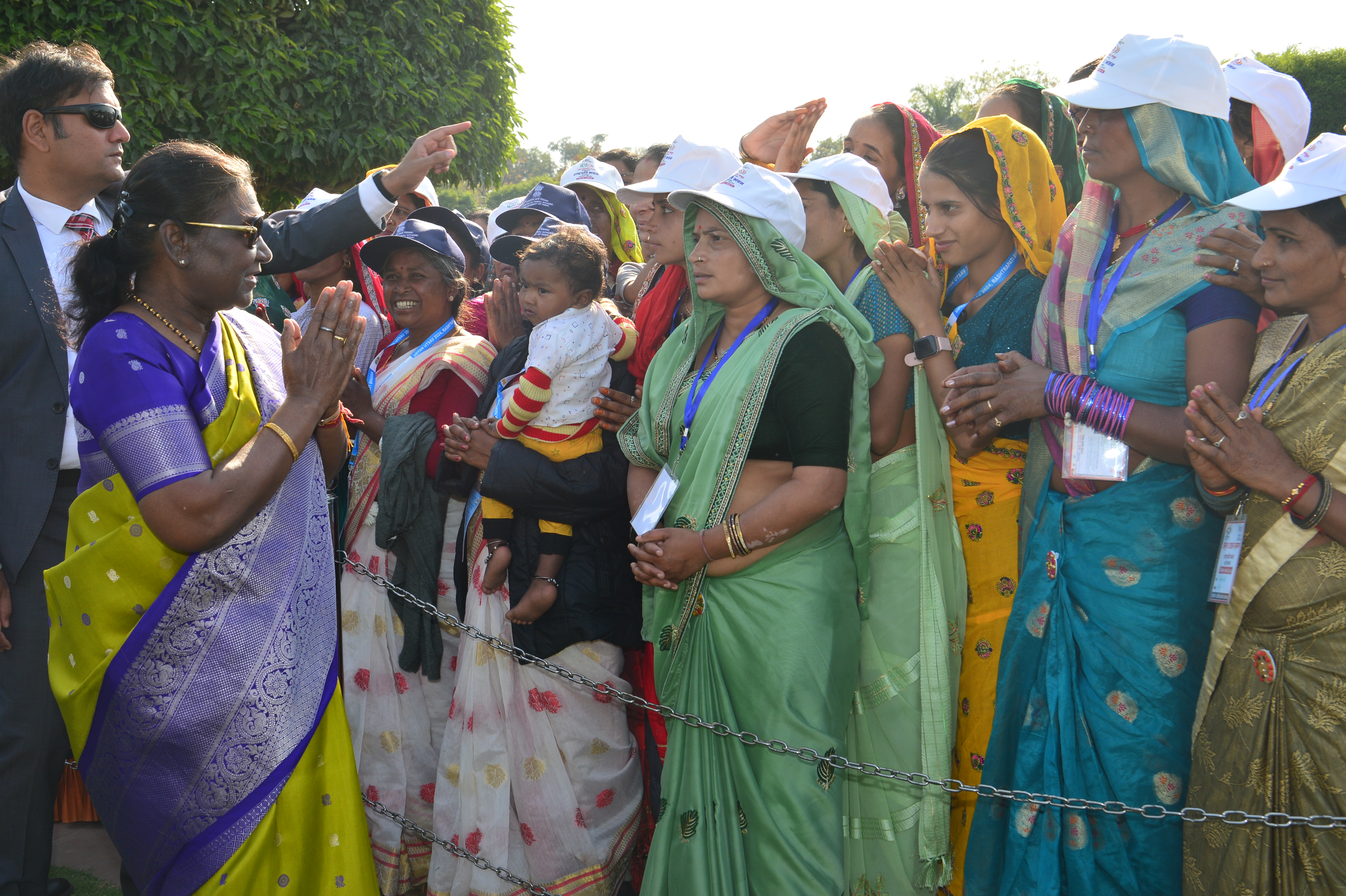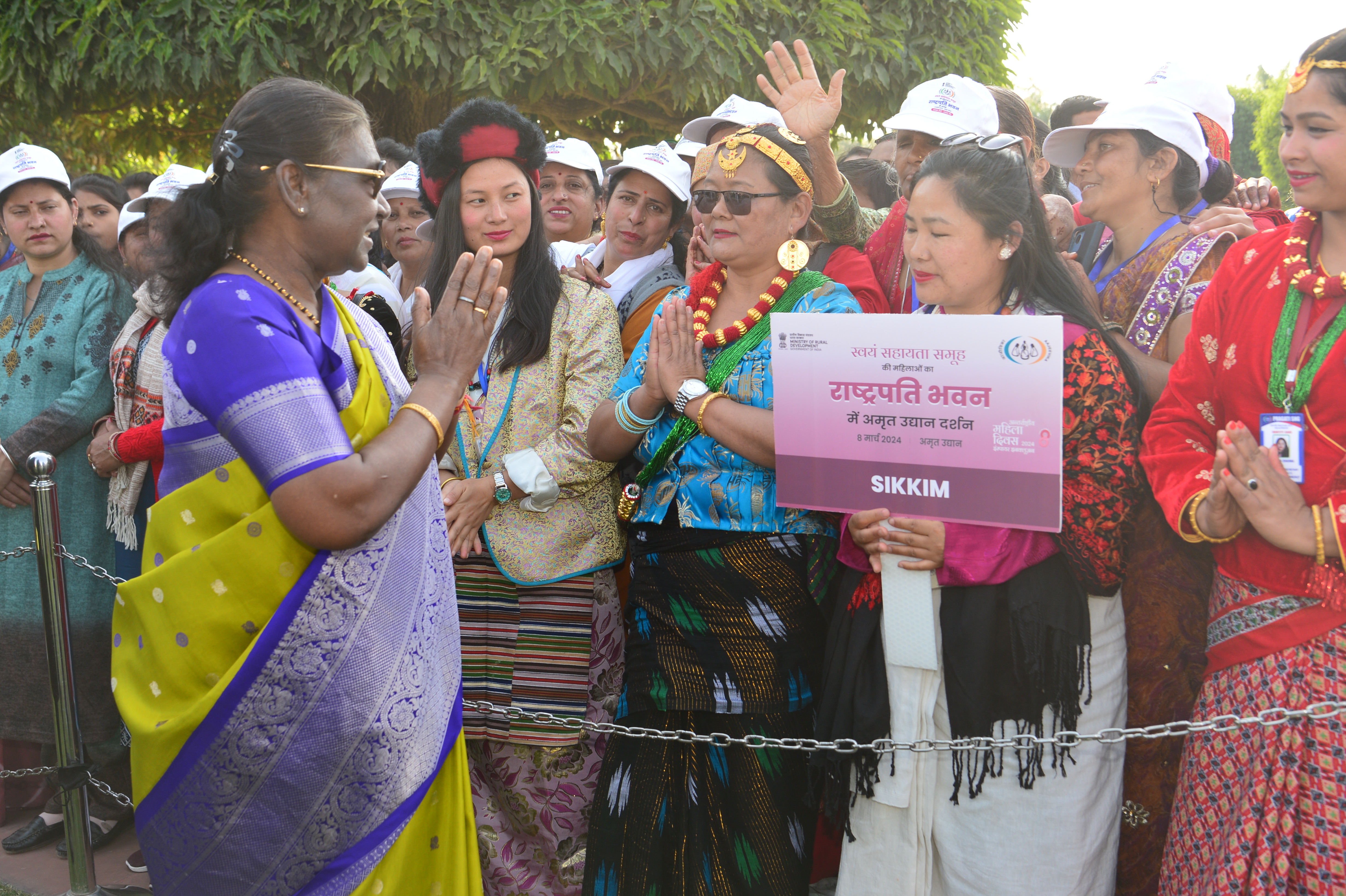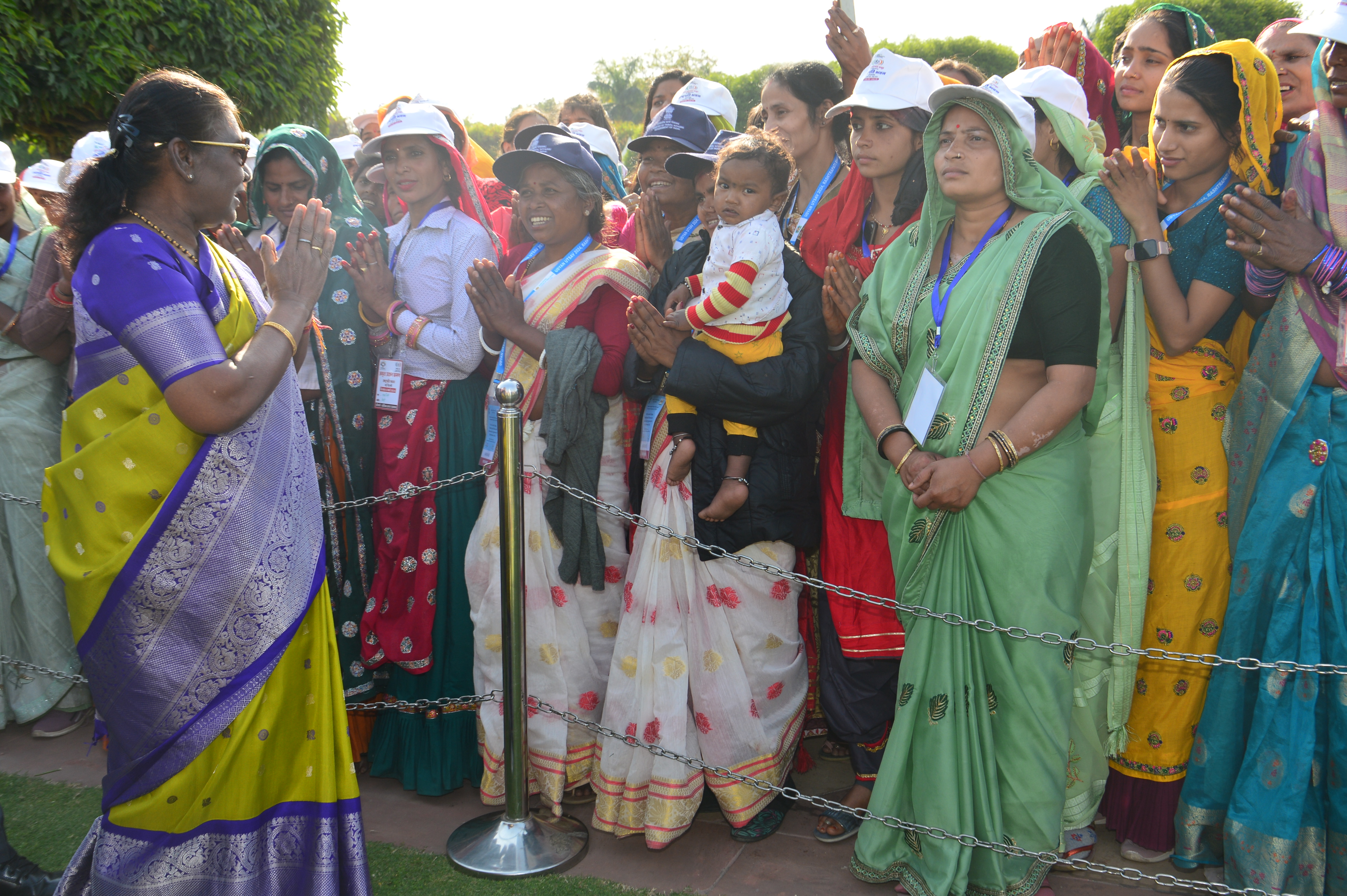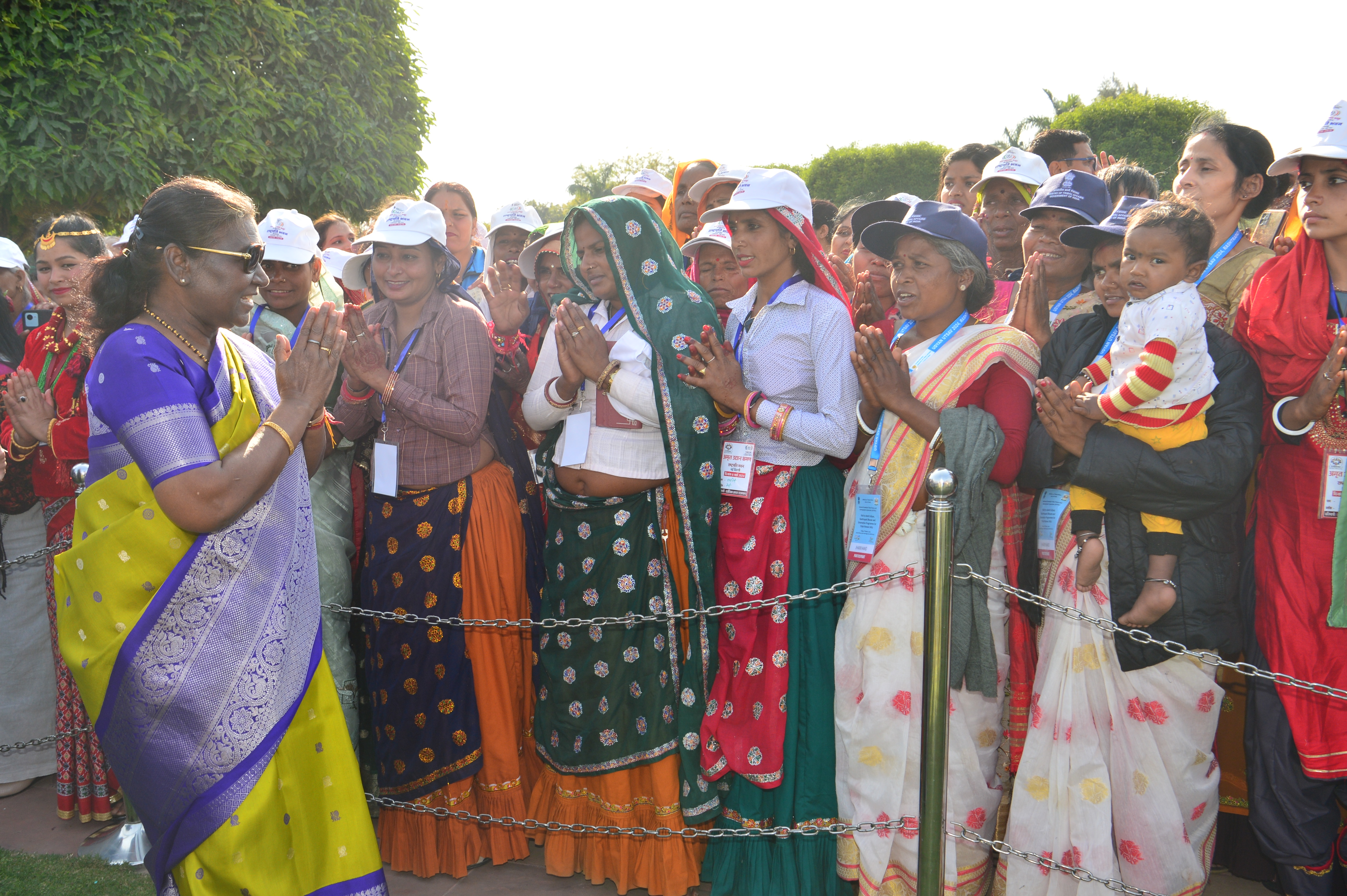 | Caption: | The President of India, Smt Droupadi Murmu met women visiting Amrit Udyan on the day reserved for the special category of Women Tribal Women SHGs-II 08-03-2024 |