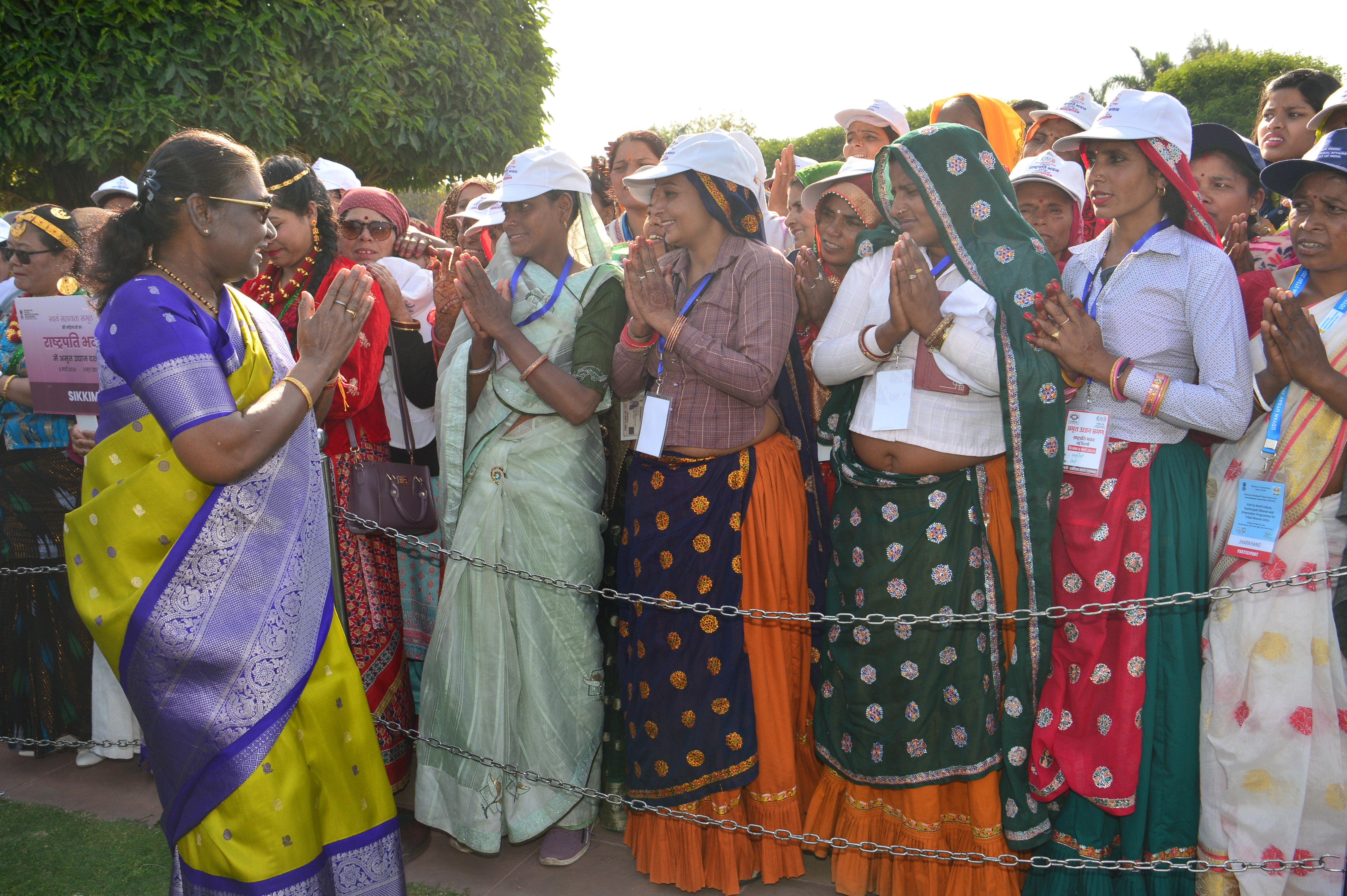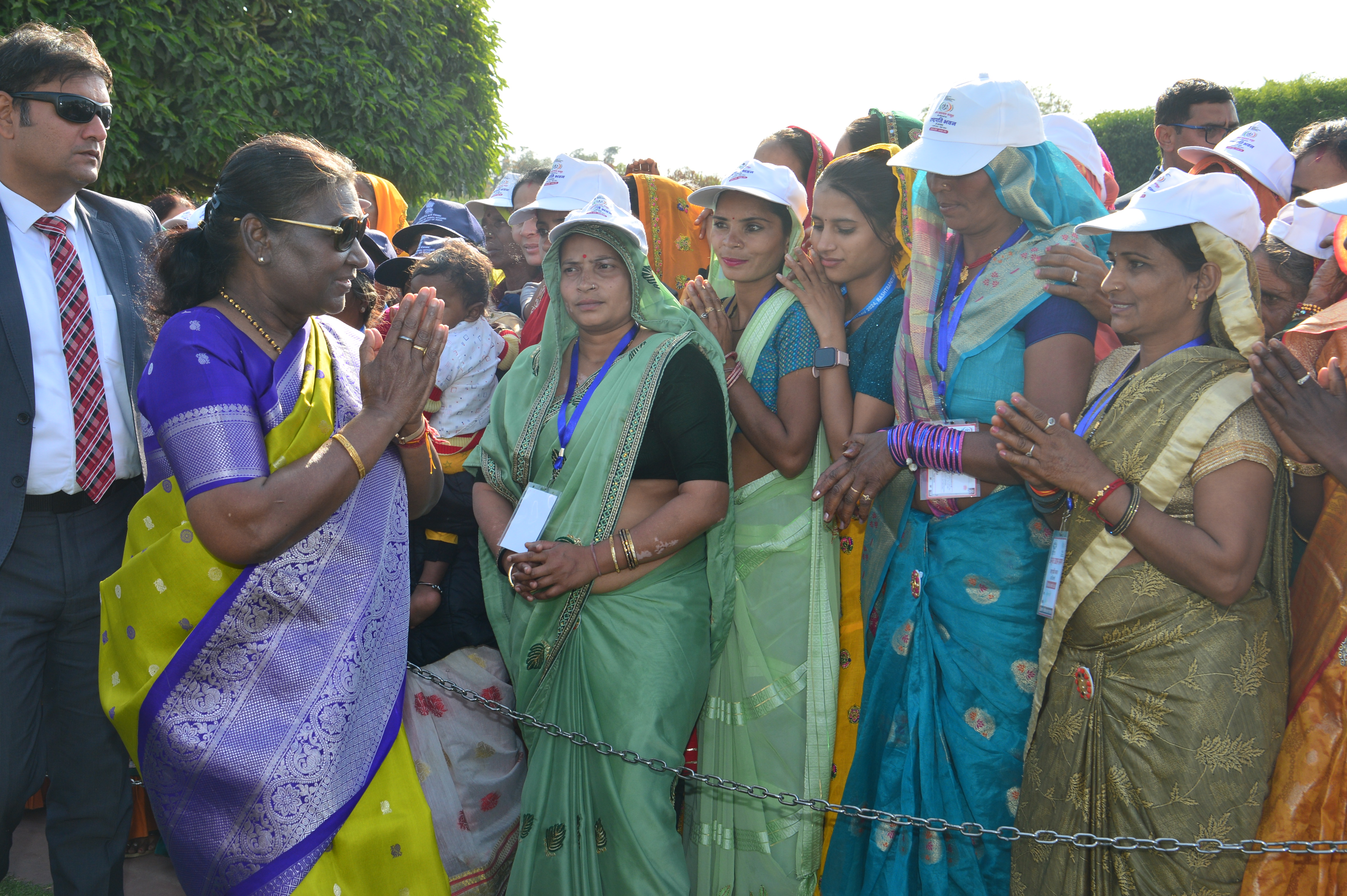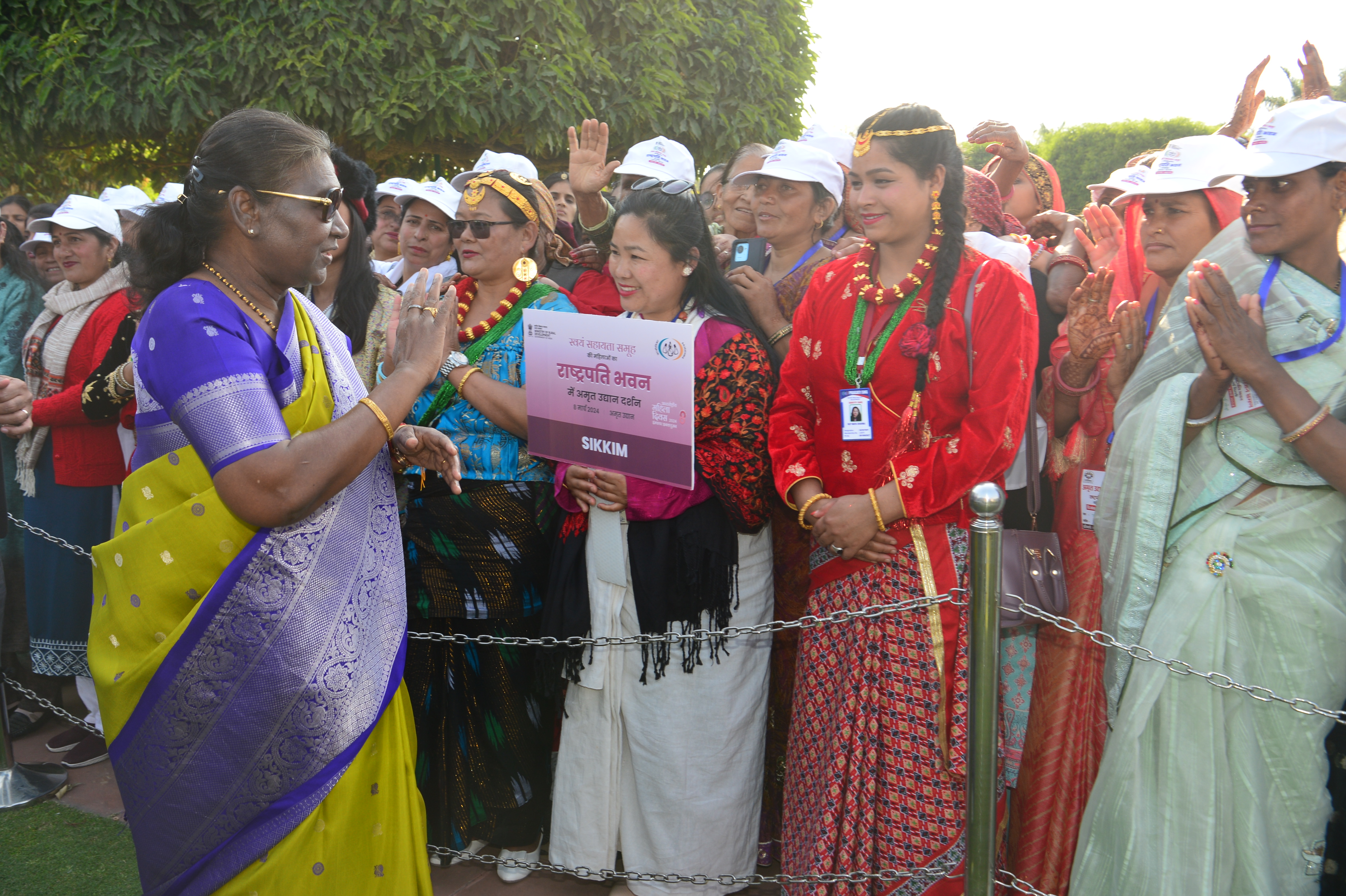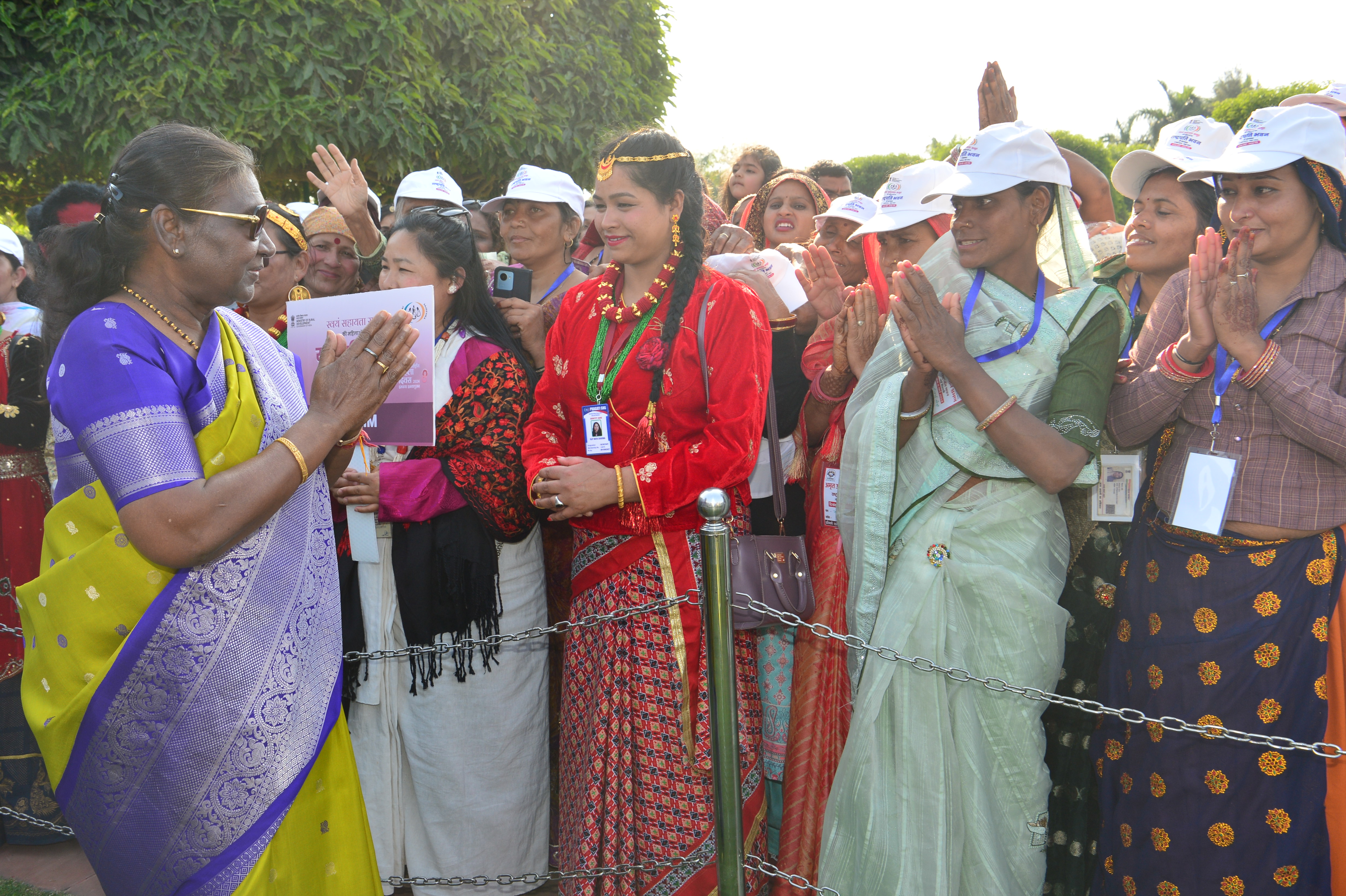 | Caption: | The President of India, Smt Droupadi Murmu met women visiting Amrit Udyan on the day reserved for the special category of Women Tribal Women SHGs-II 08-03-2024 |