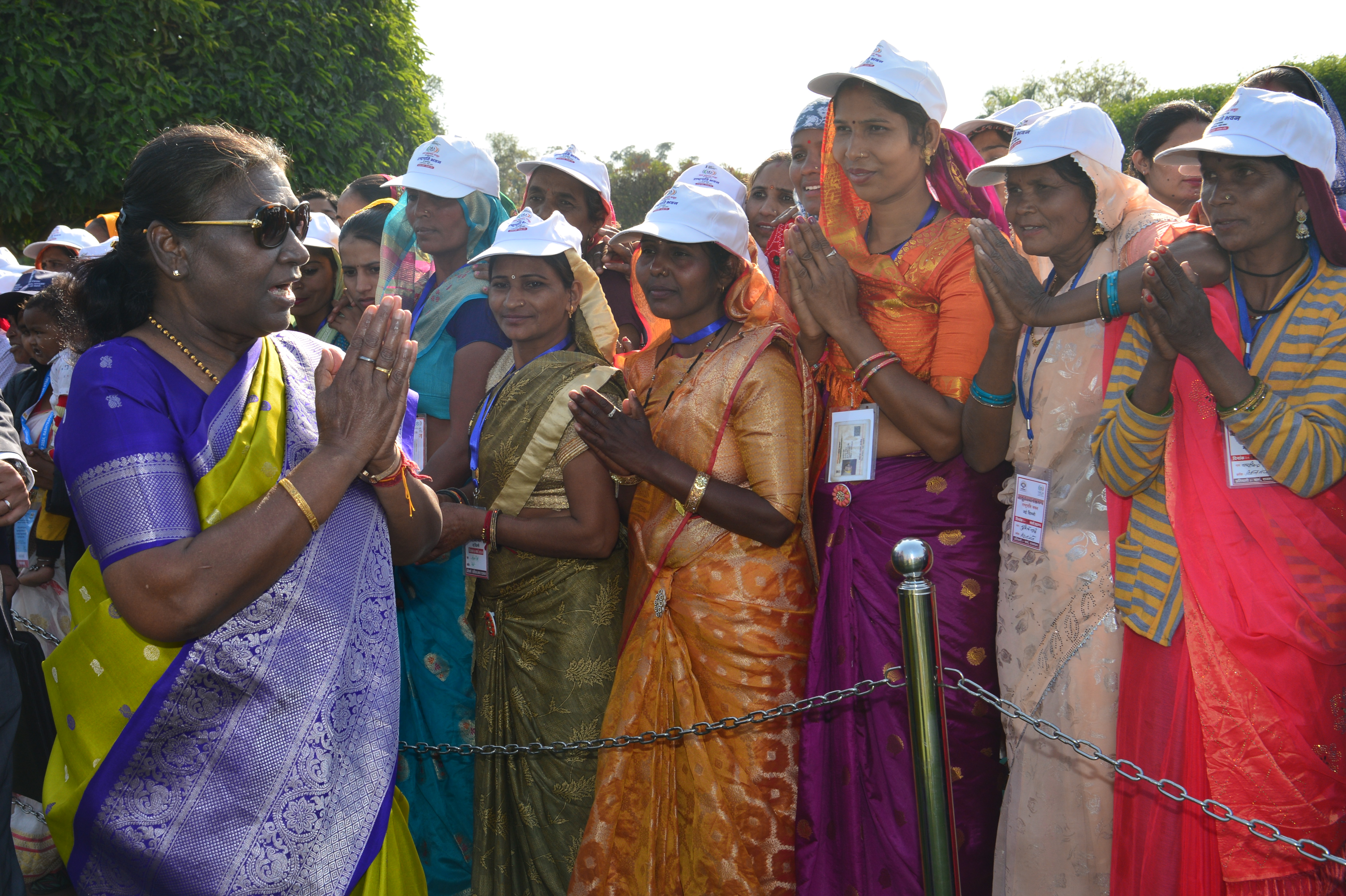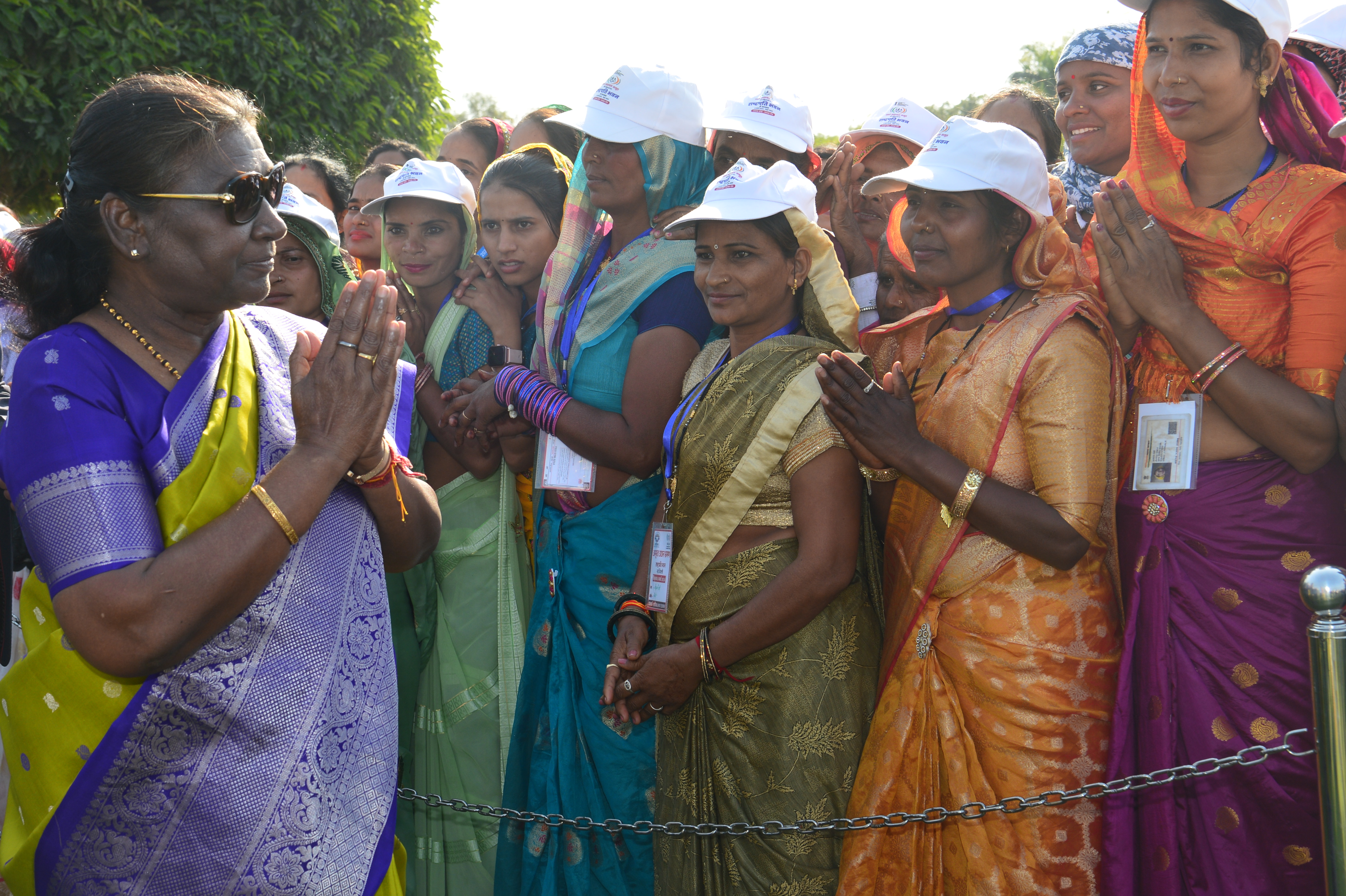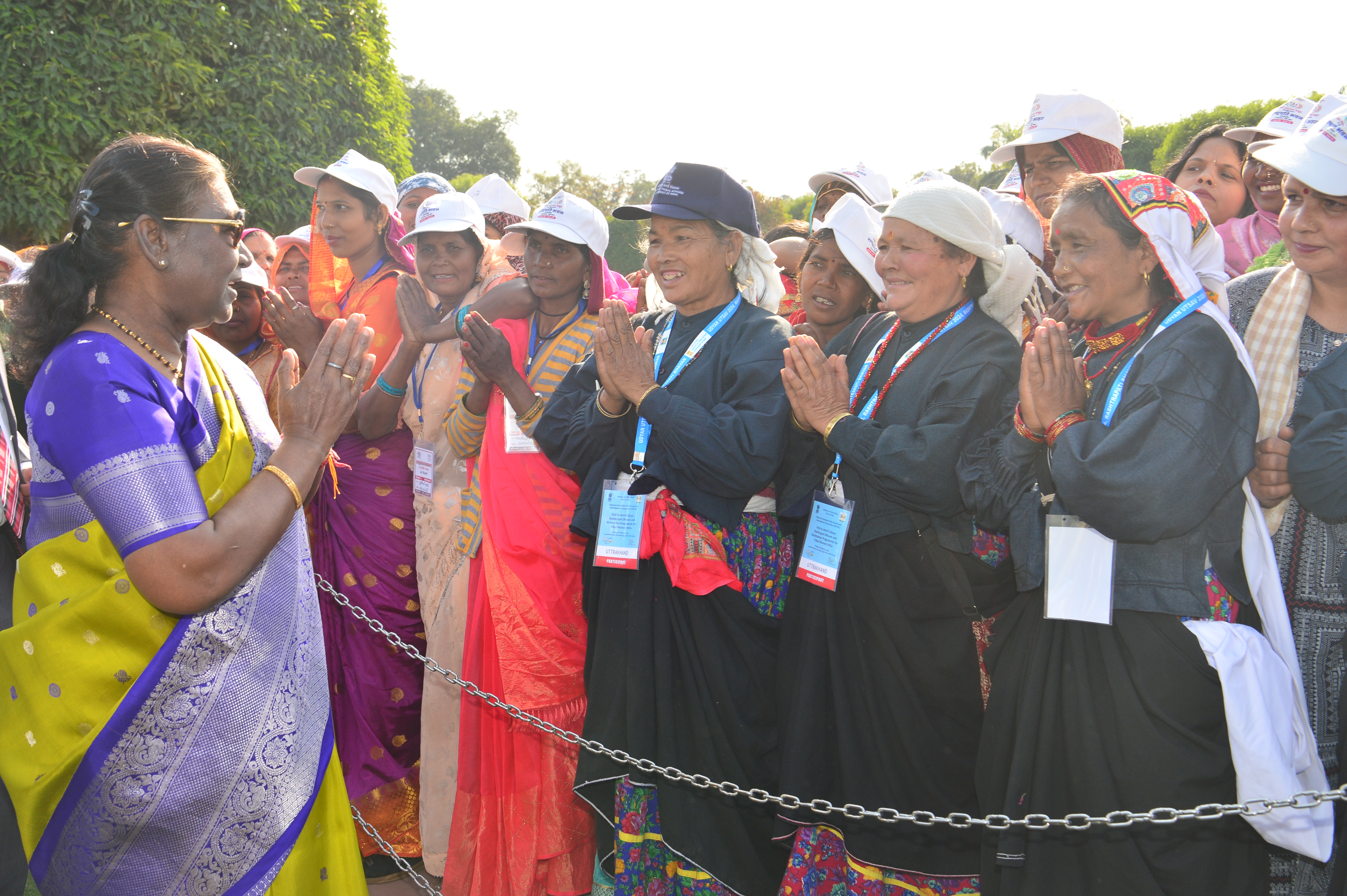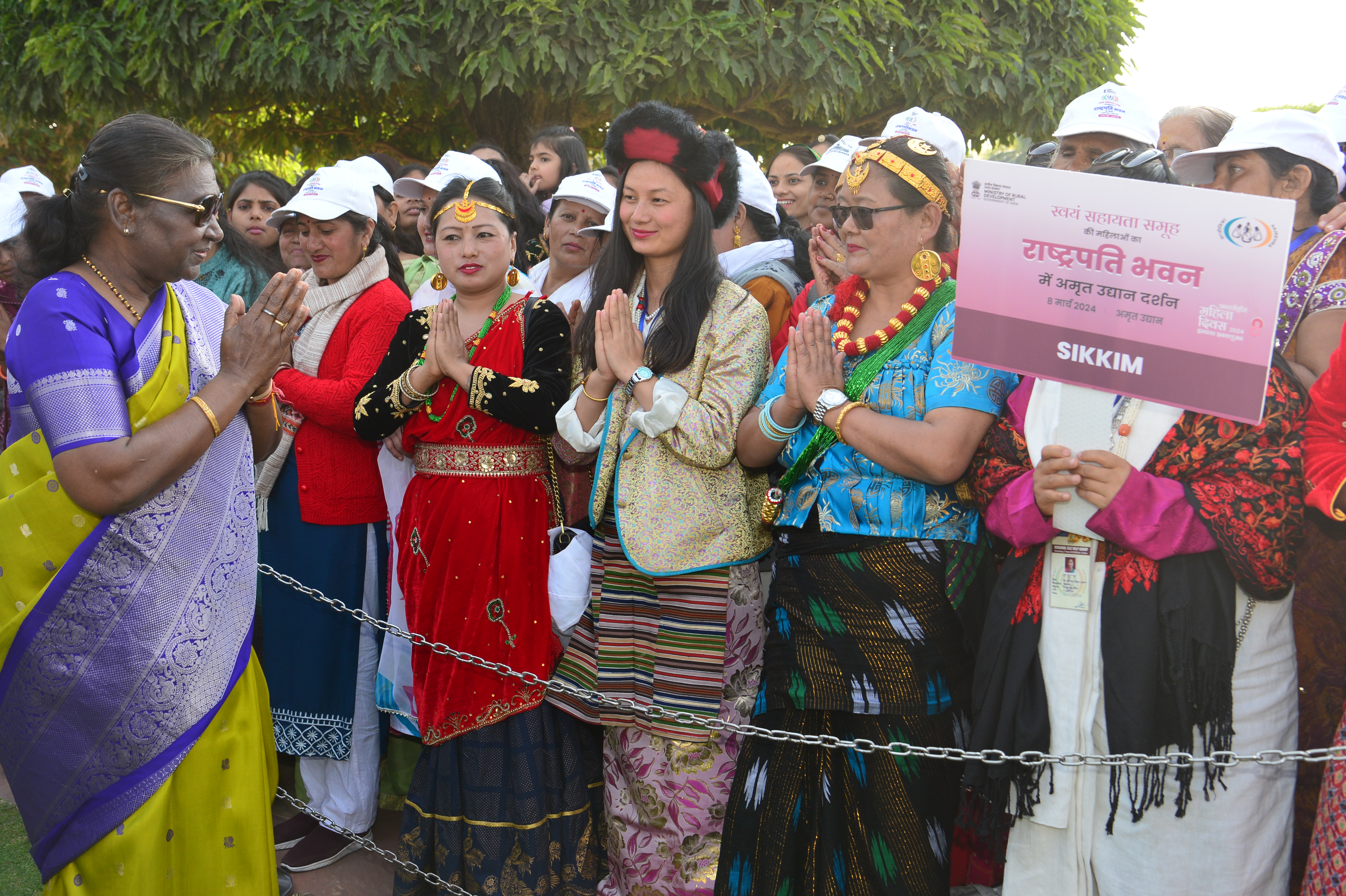 | Caption: | The President of India, Smt Droupadi Murmu met women visiting Amrit Udyan on the day reserved for the special category of Women Tribal Women SHGs-II 08-03-2024 |