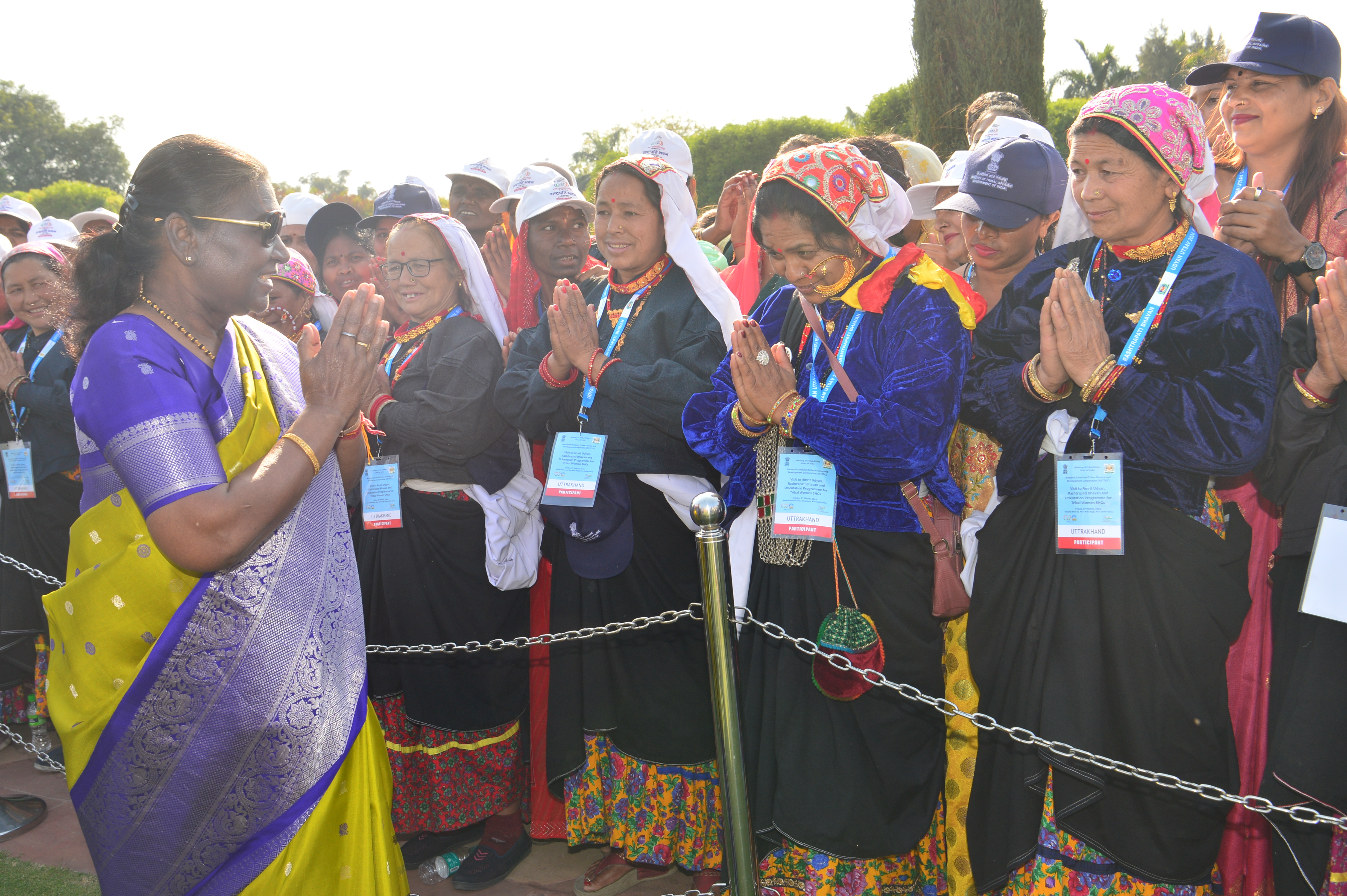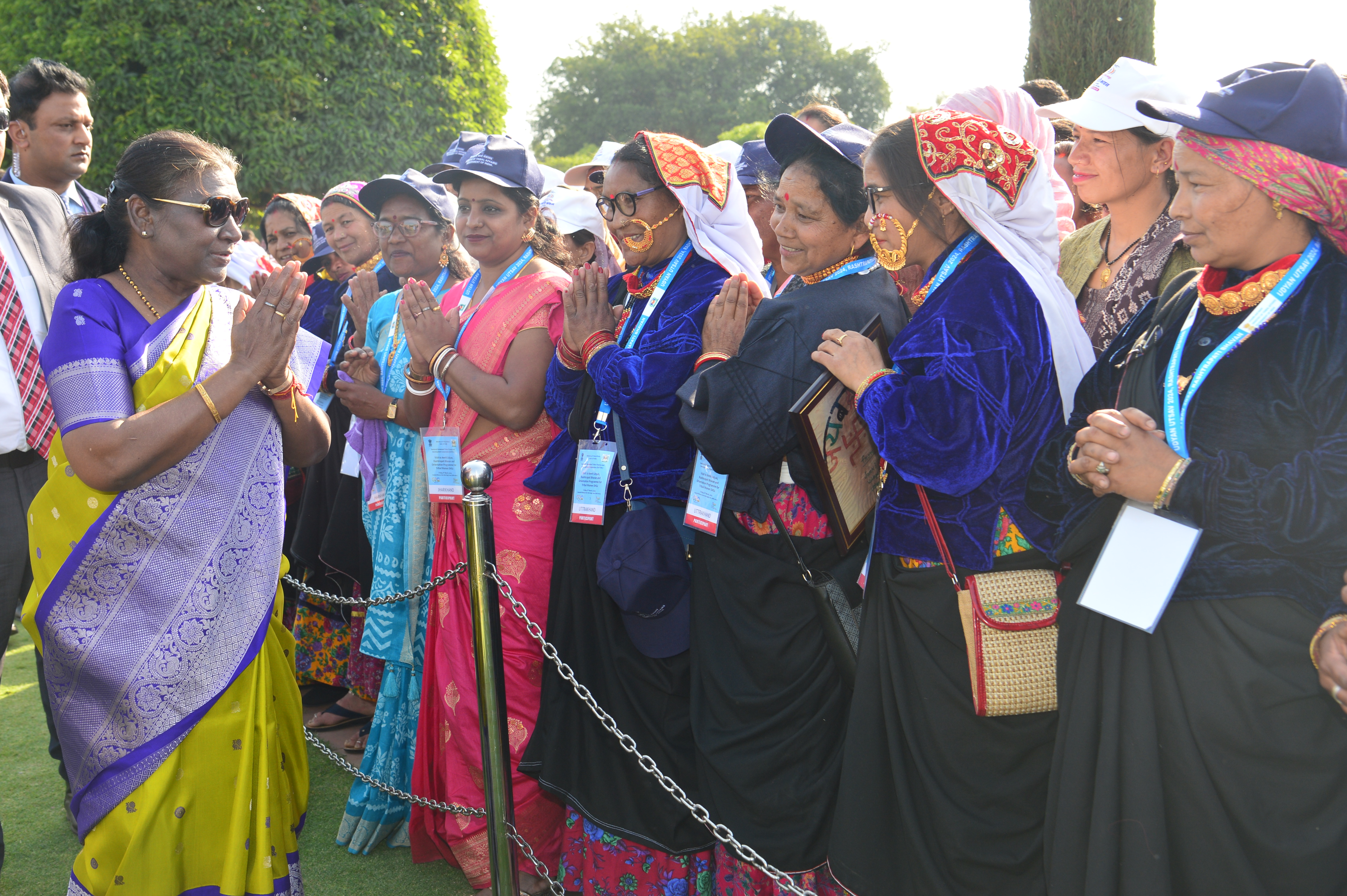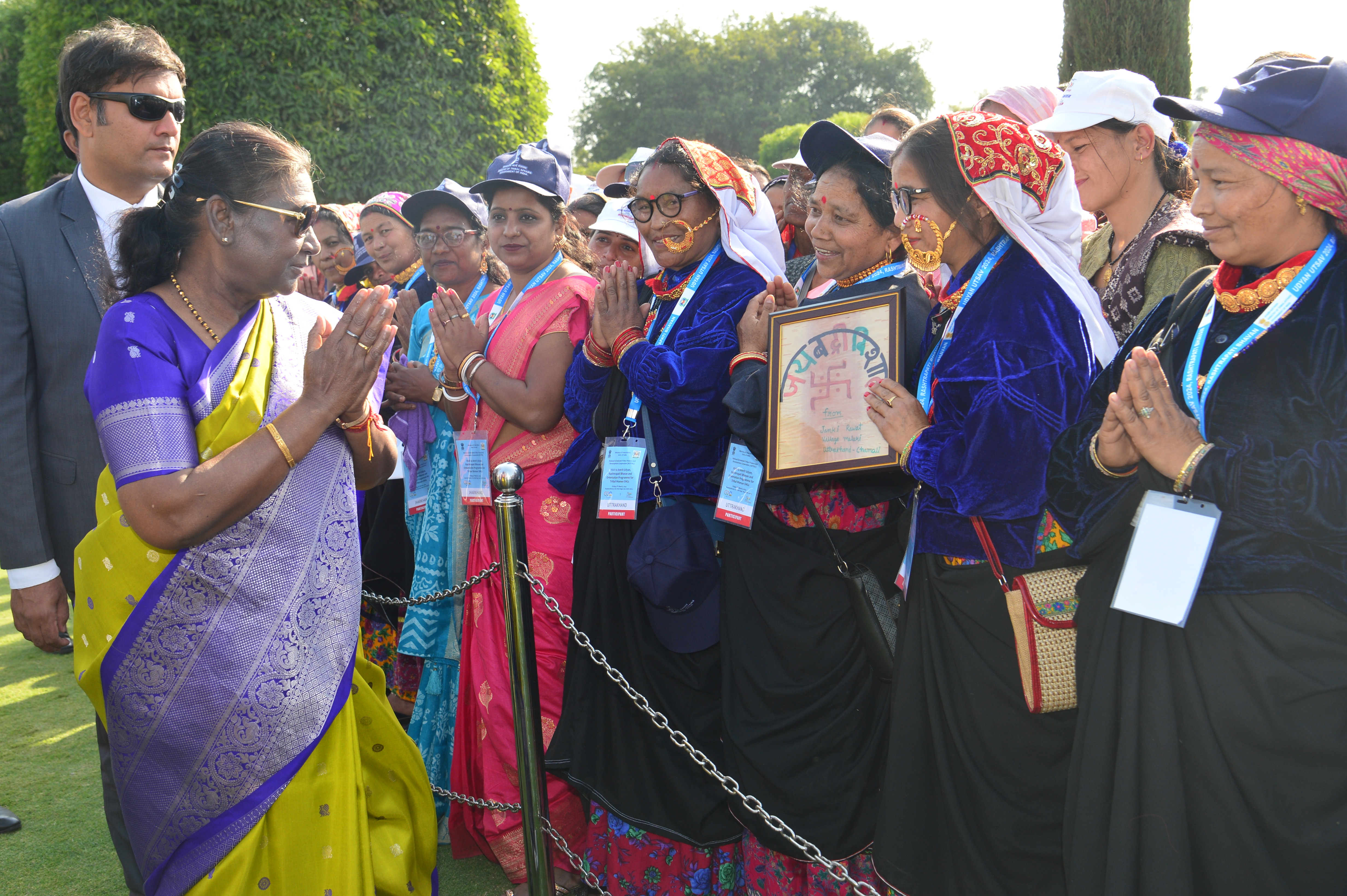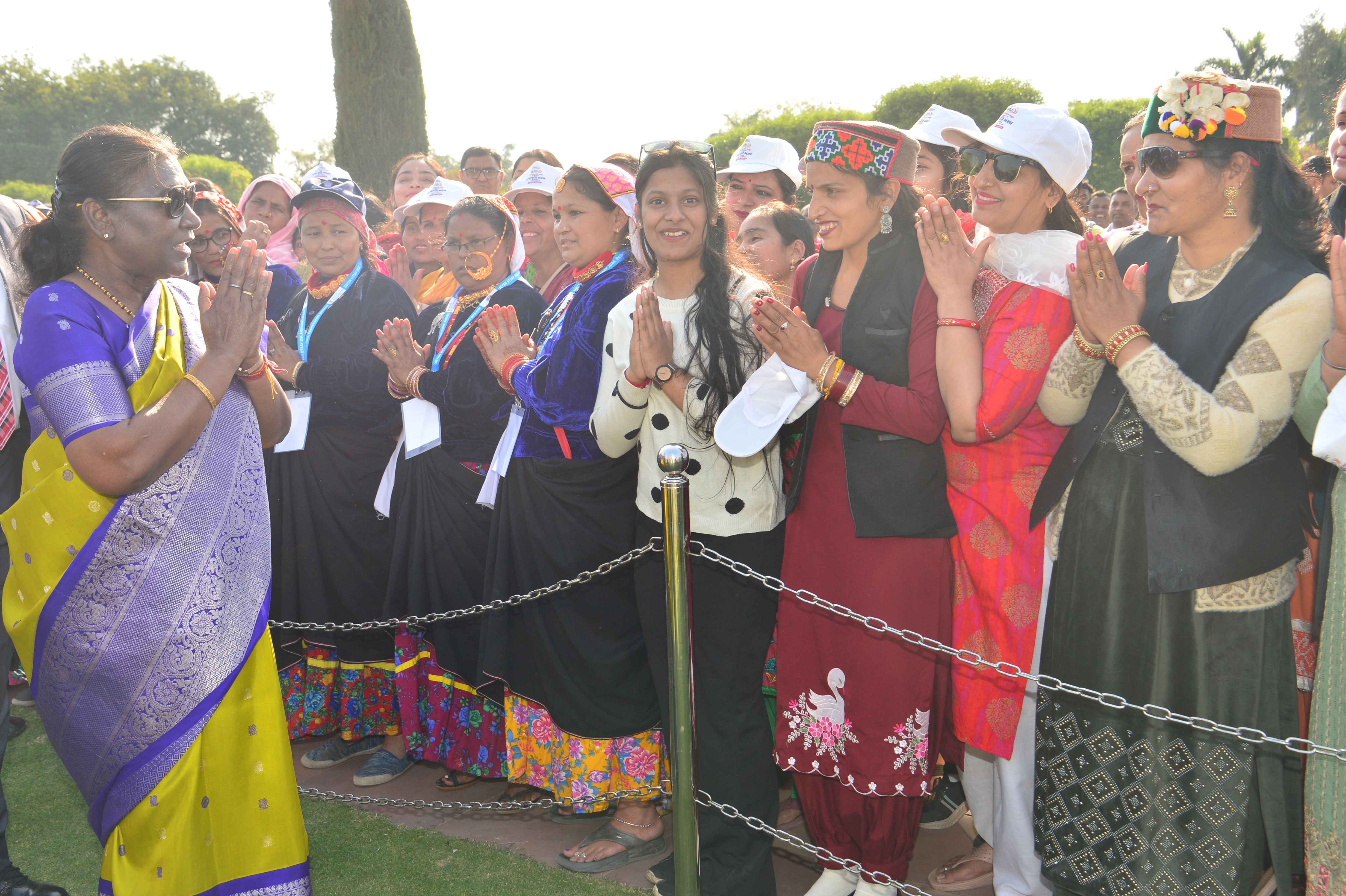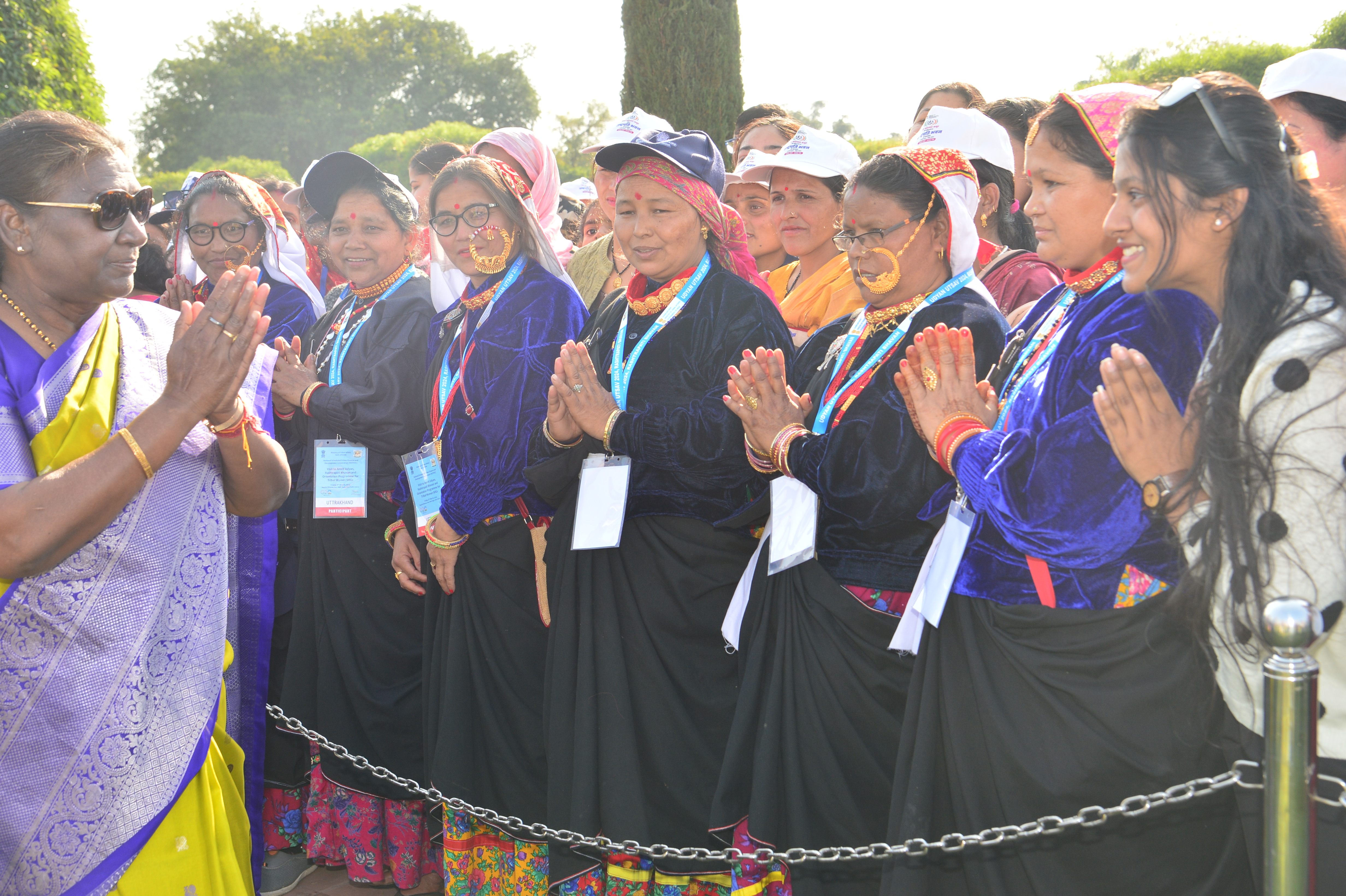 | Caption: | The President of India, Smt Droupadi Murmu met women visiting Amrit Udyan on the day reserved for the special category of Women Tribal Women SHGs-II 08-03-2024 |