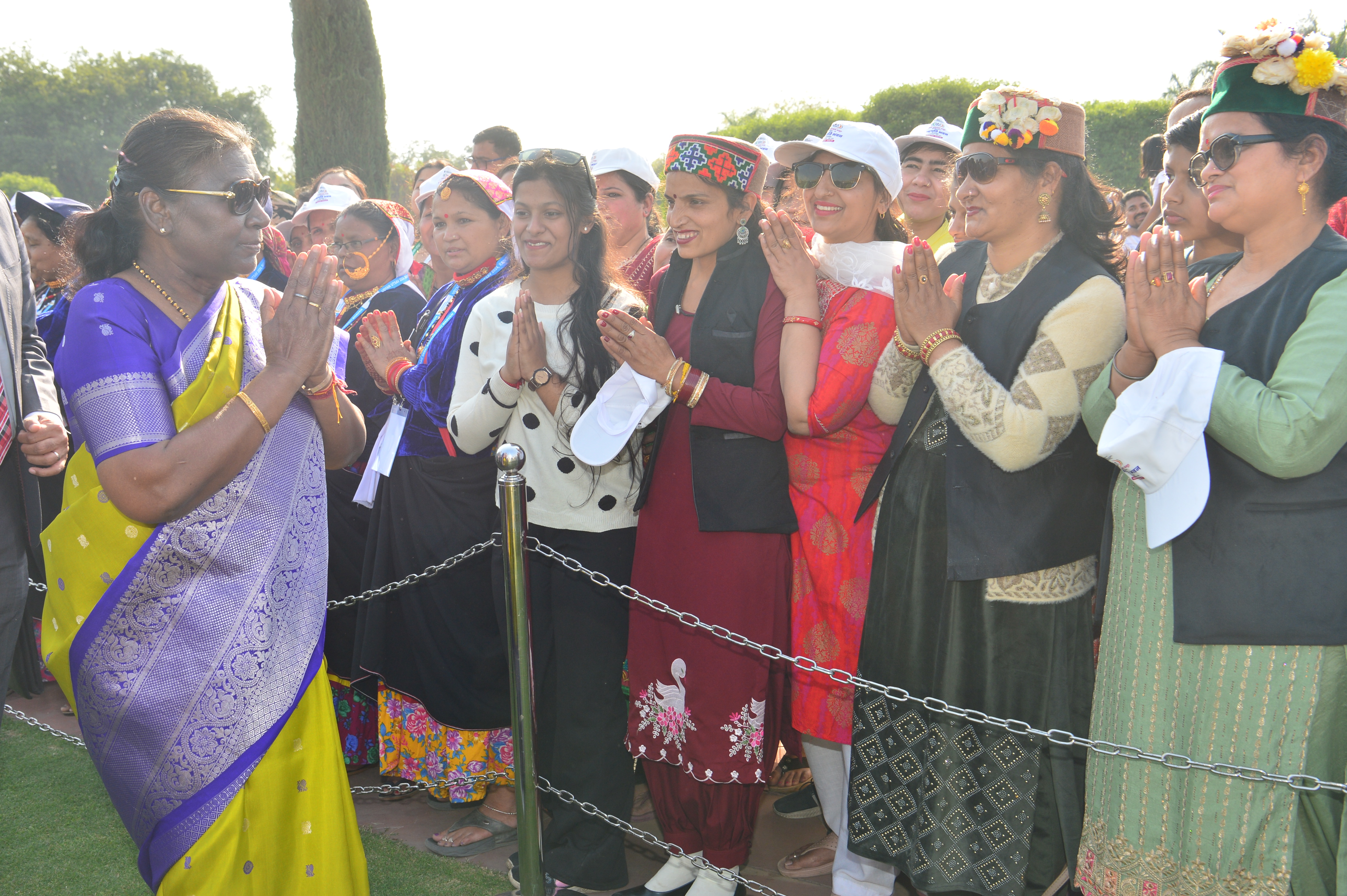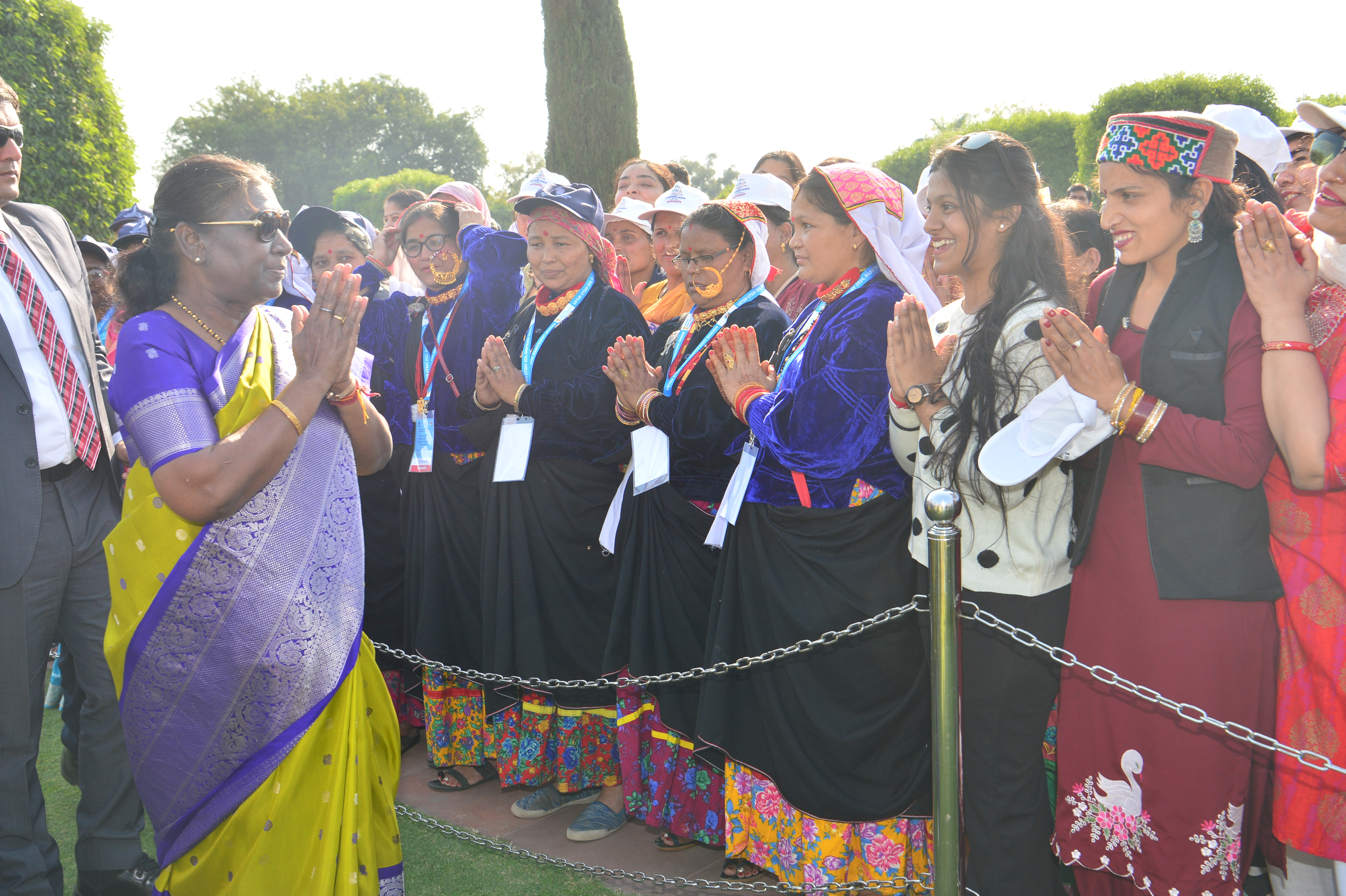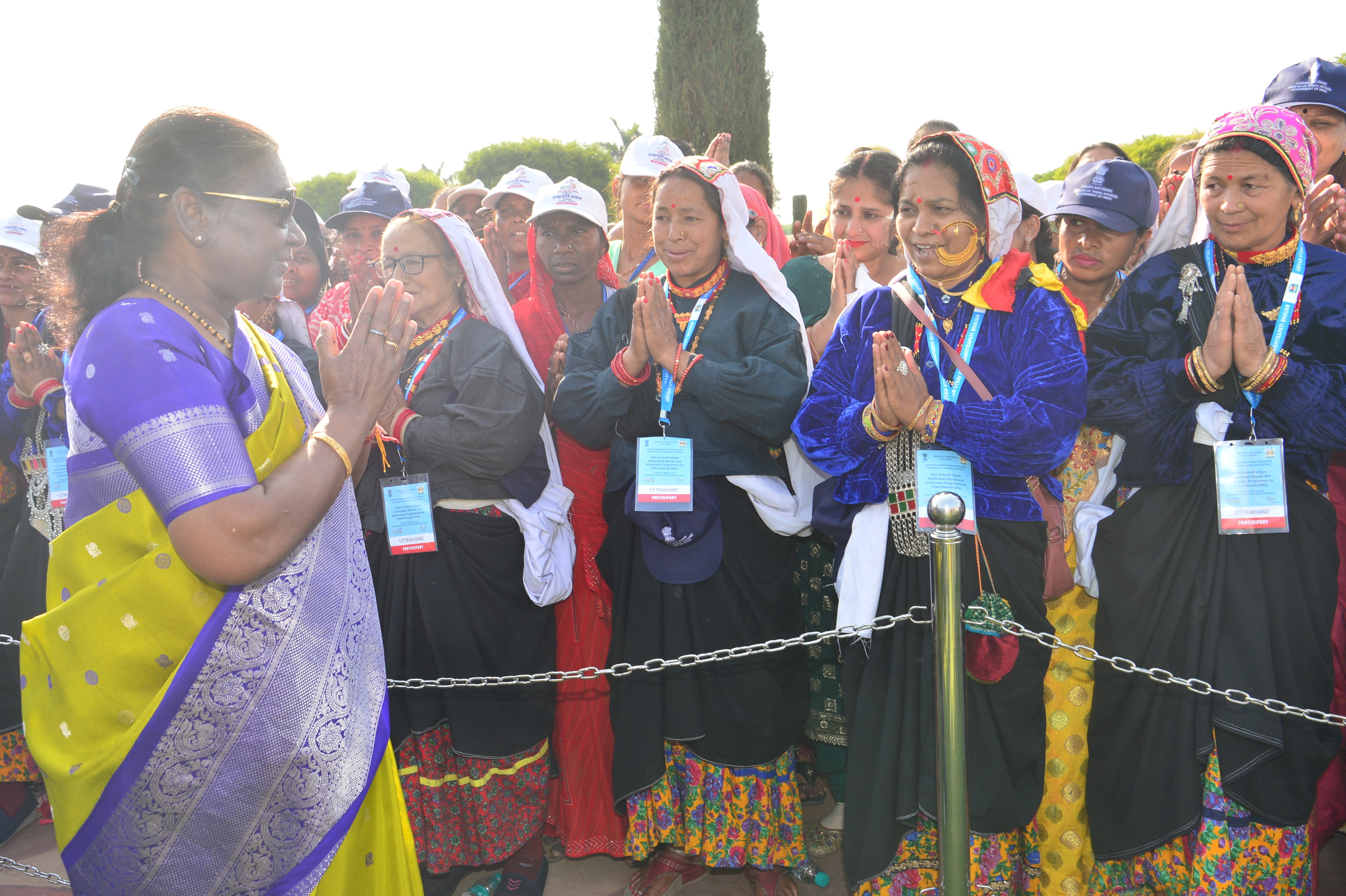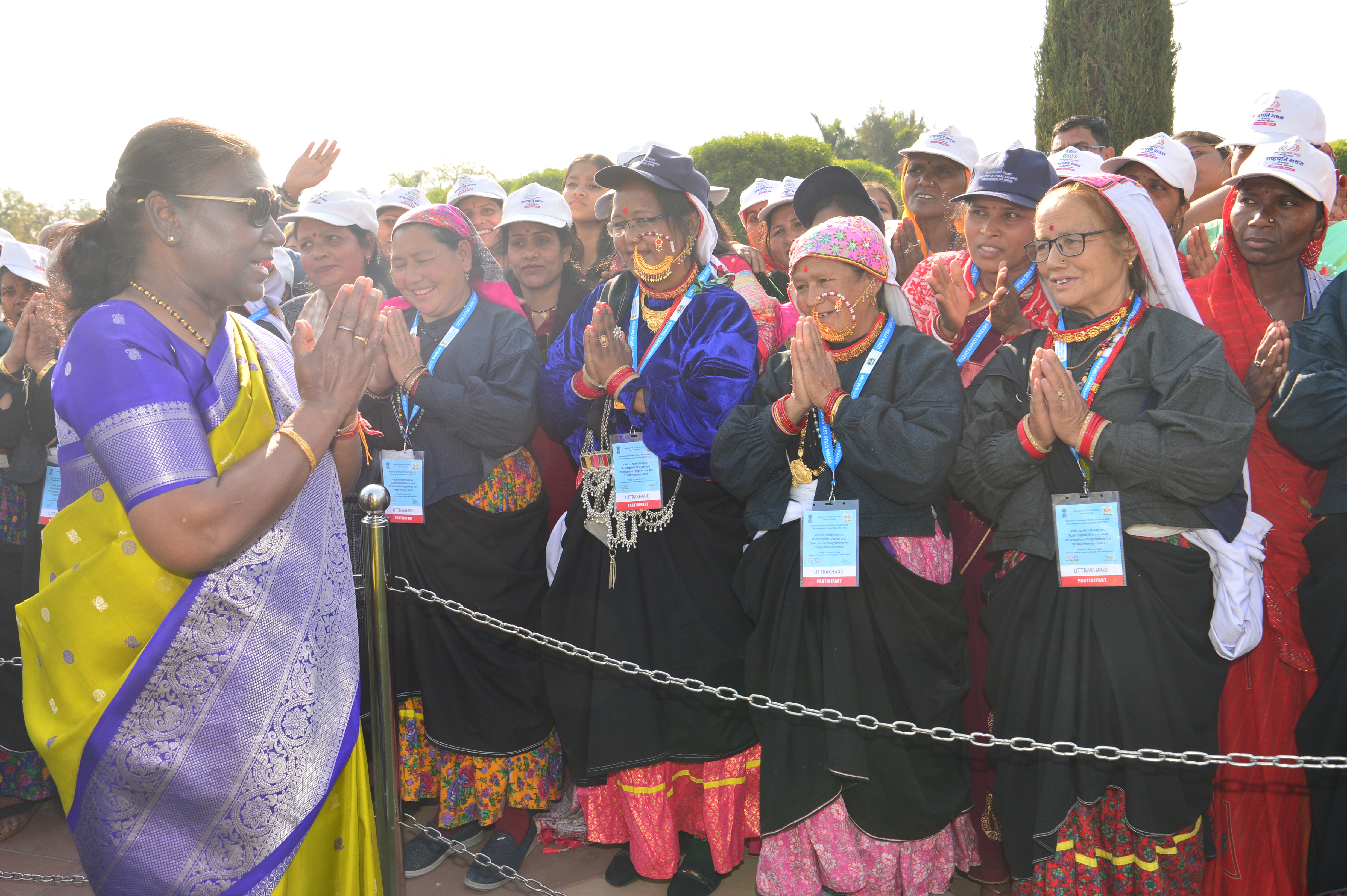 | Caption: | The President of India, Smt Droupadi Murmu met women visiting Amrit Udyan on the day reserved for the special category of Women Tribal Women SHGs-II 08-03-2024 |