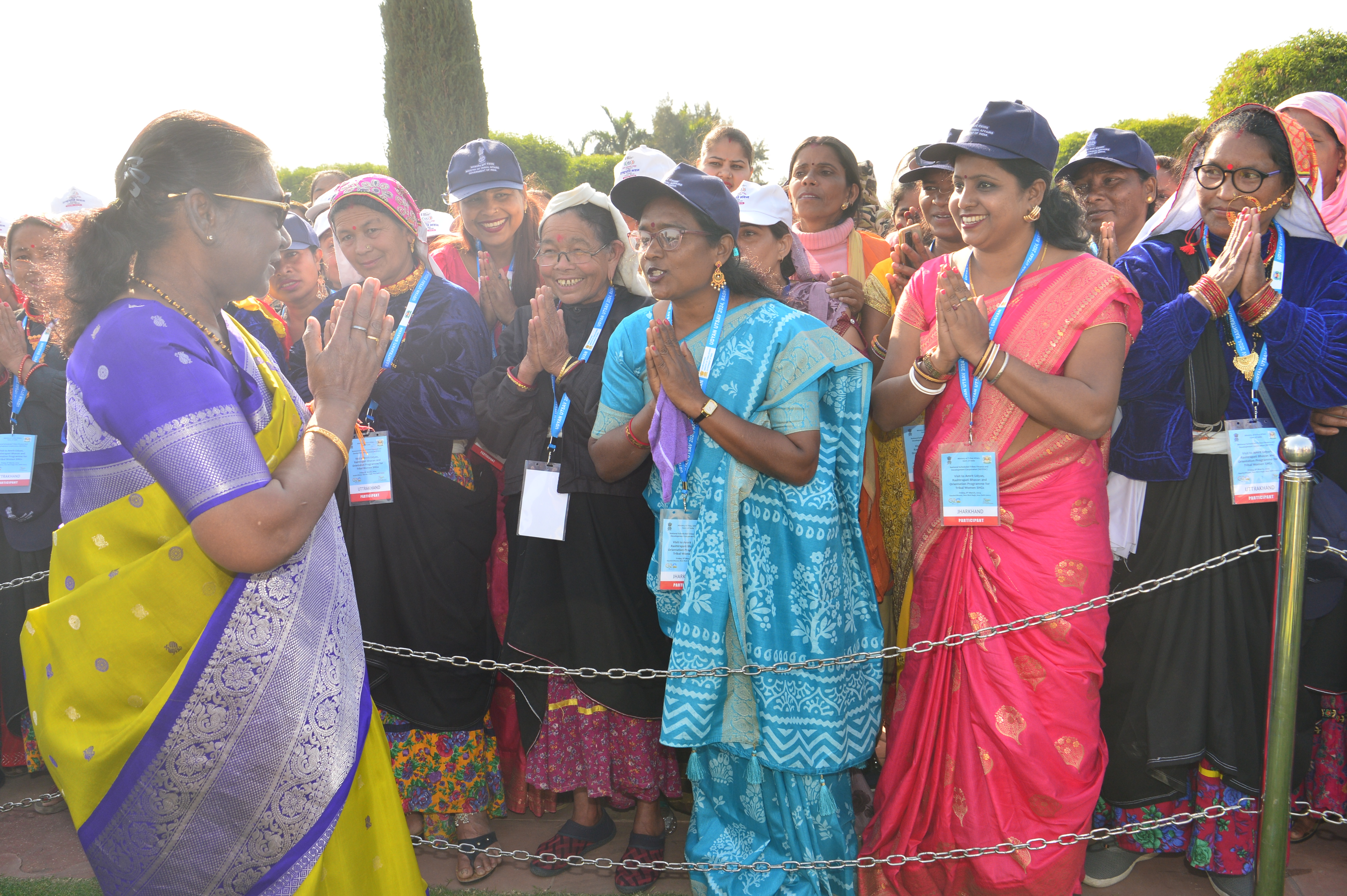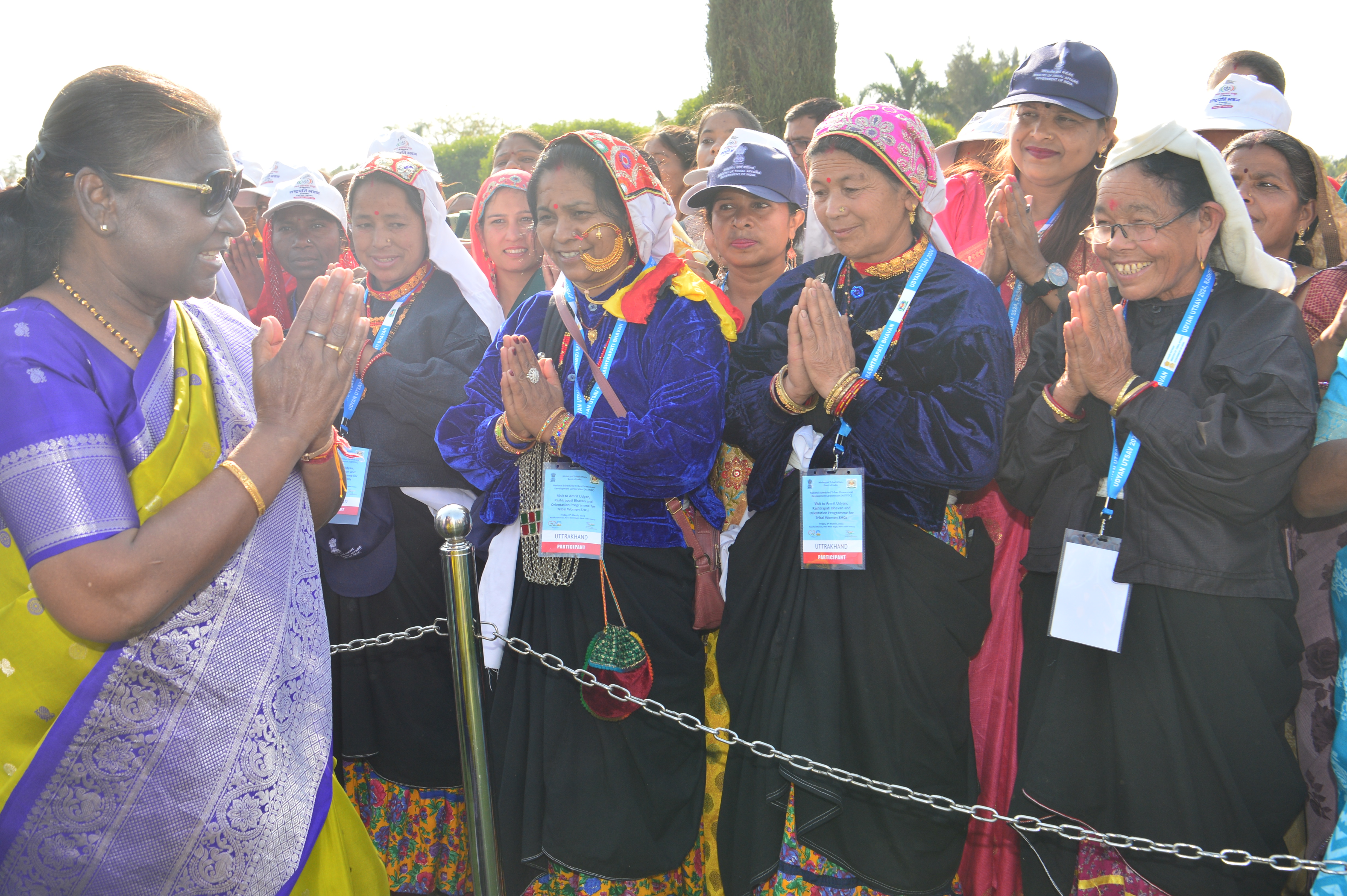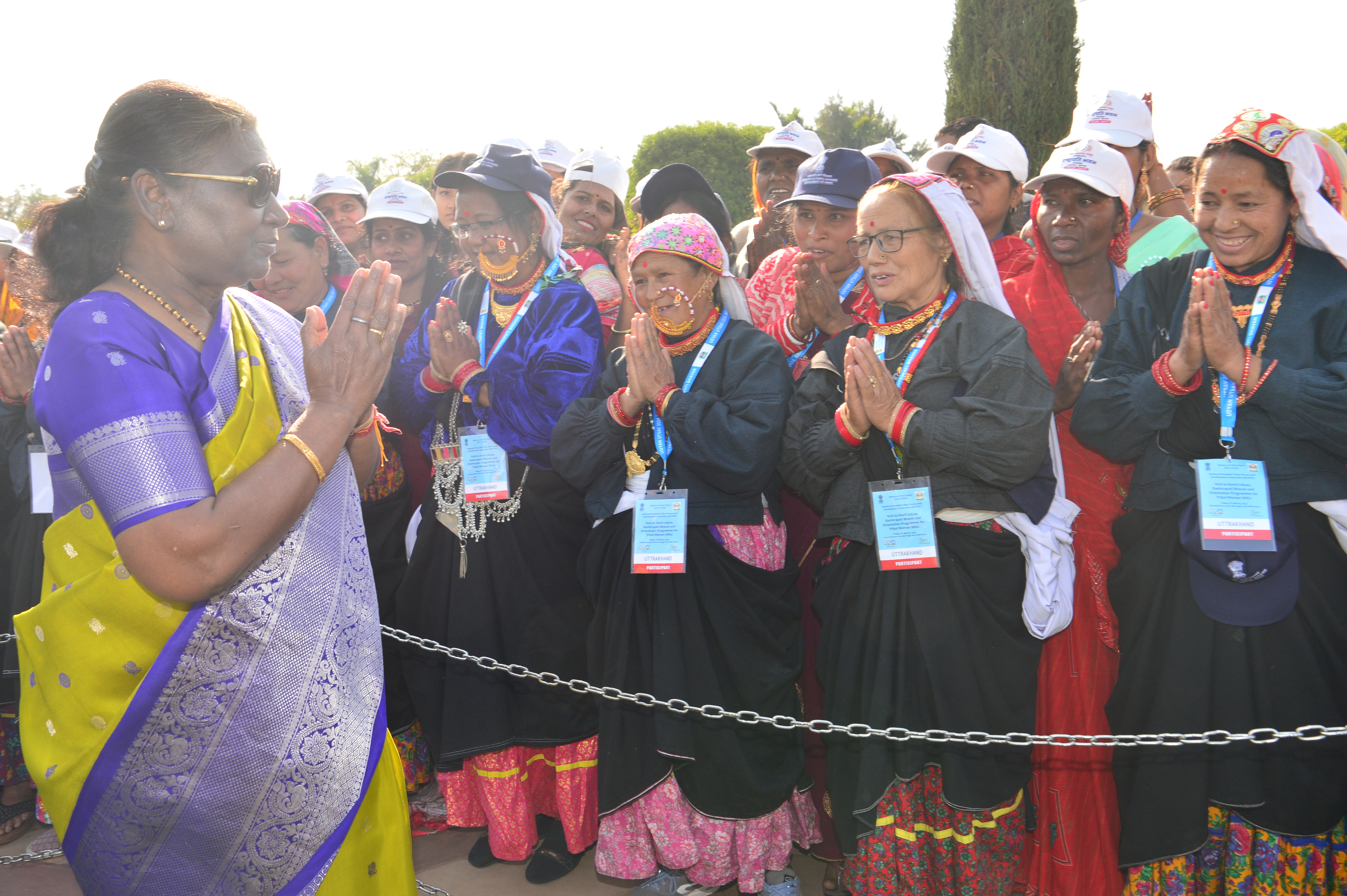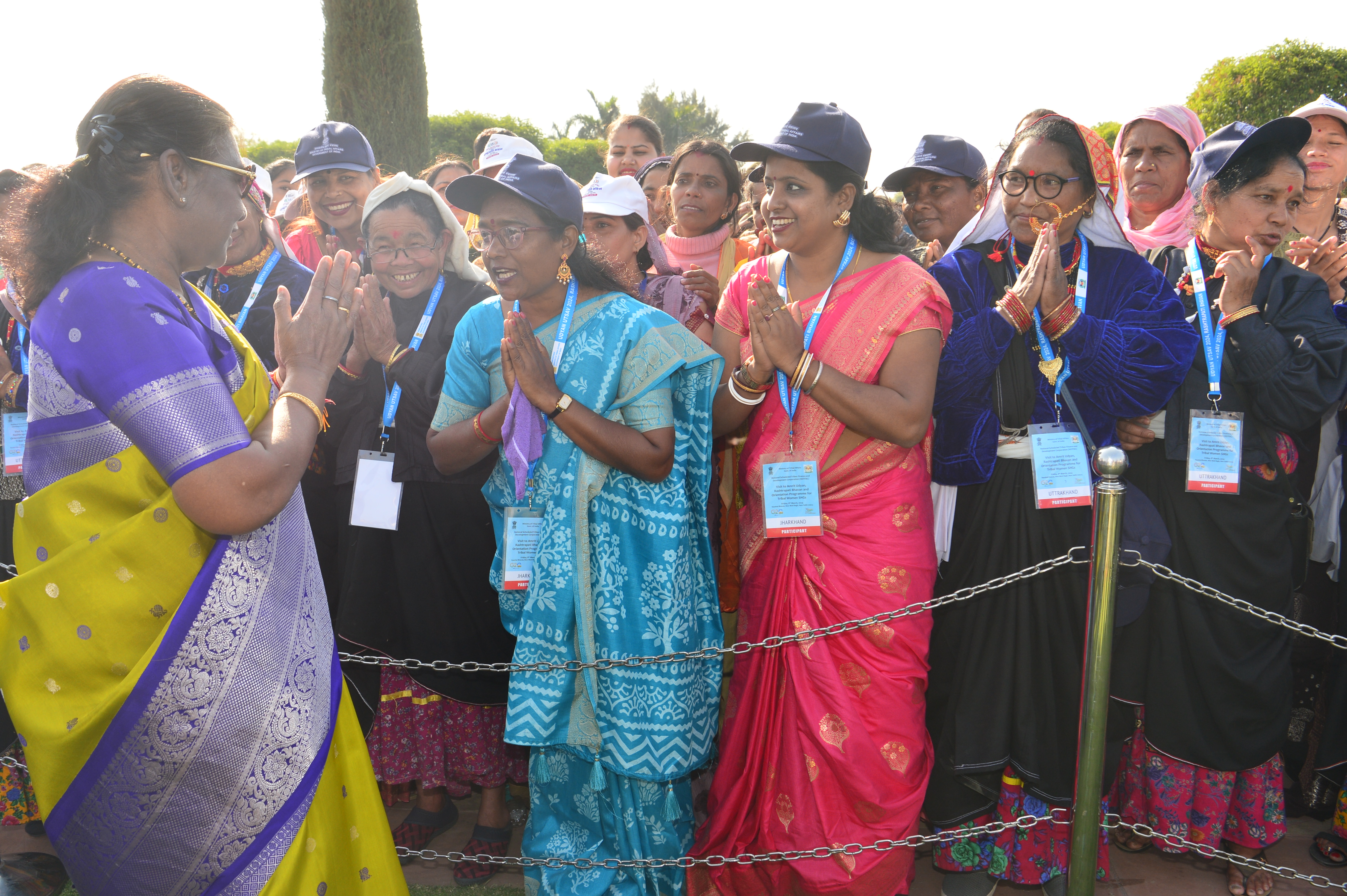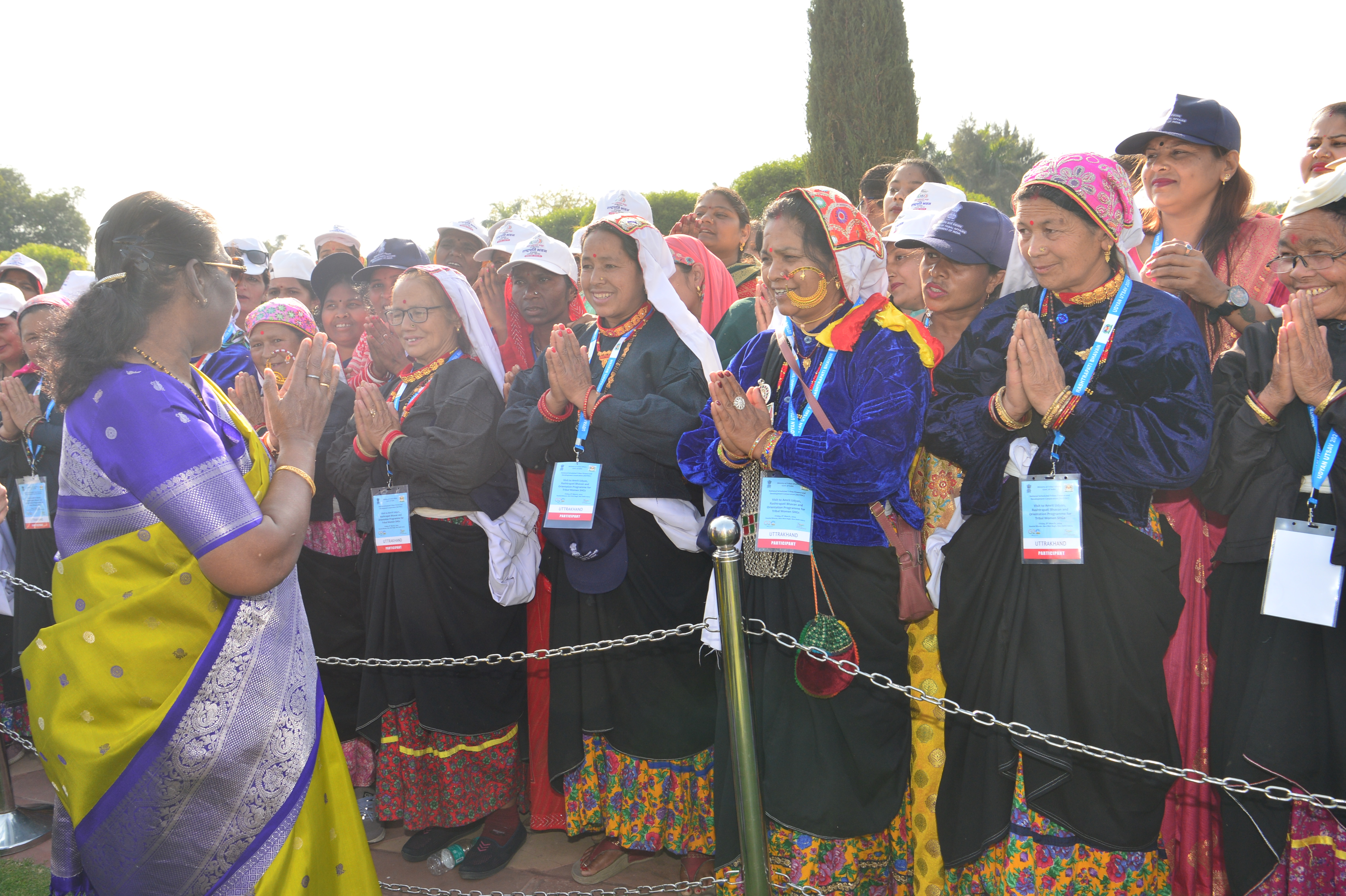 | Caption: | The President of India, Smt Droupadi Murmu met women visiting Amrit Udyan on the day reserved for the special category of Women Tribal Women SHGs-II 08-03-2024 |