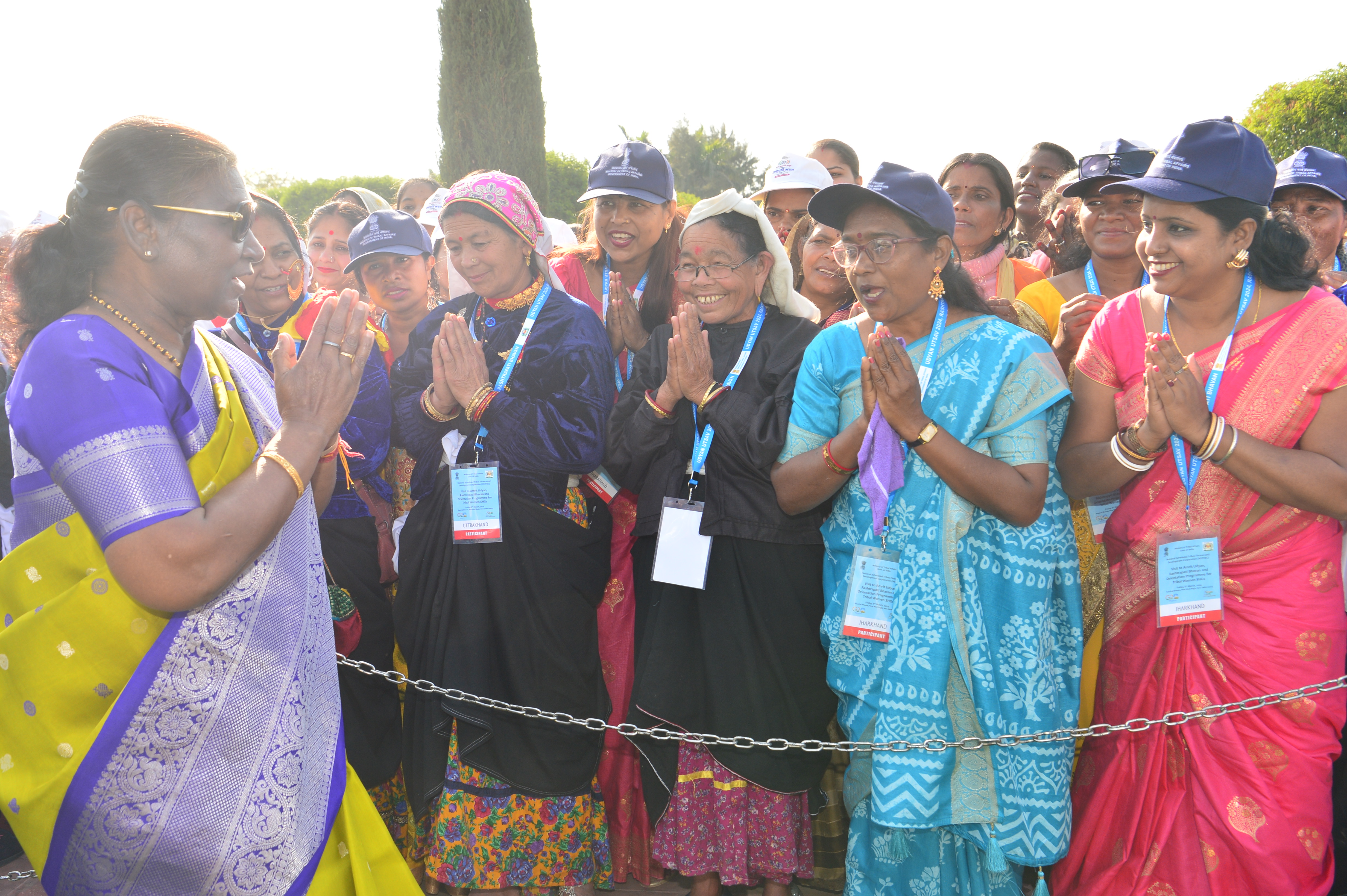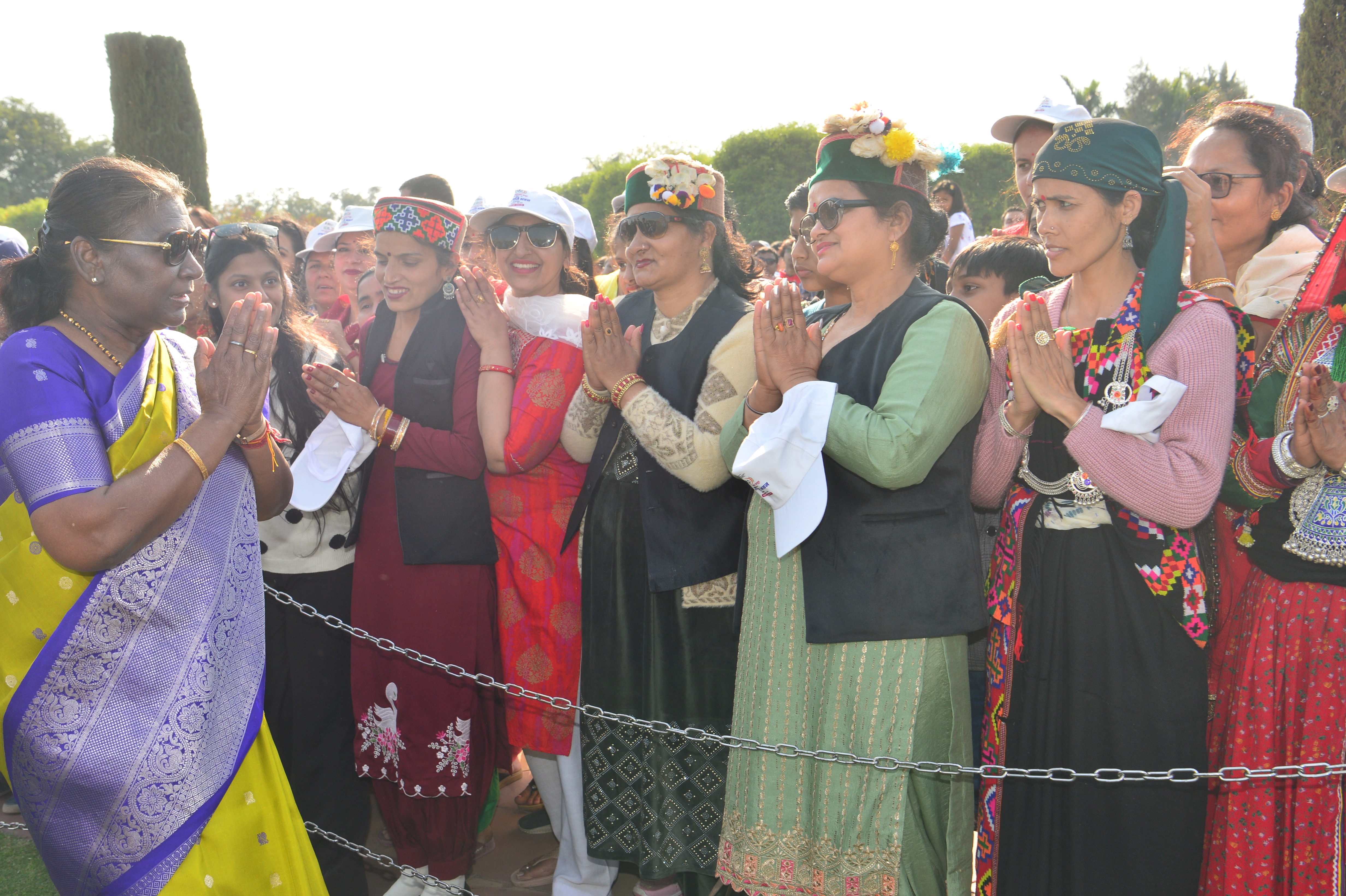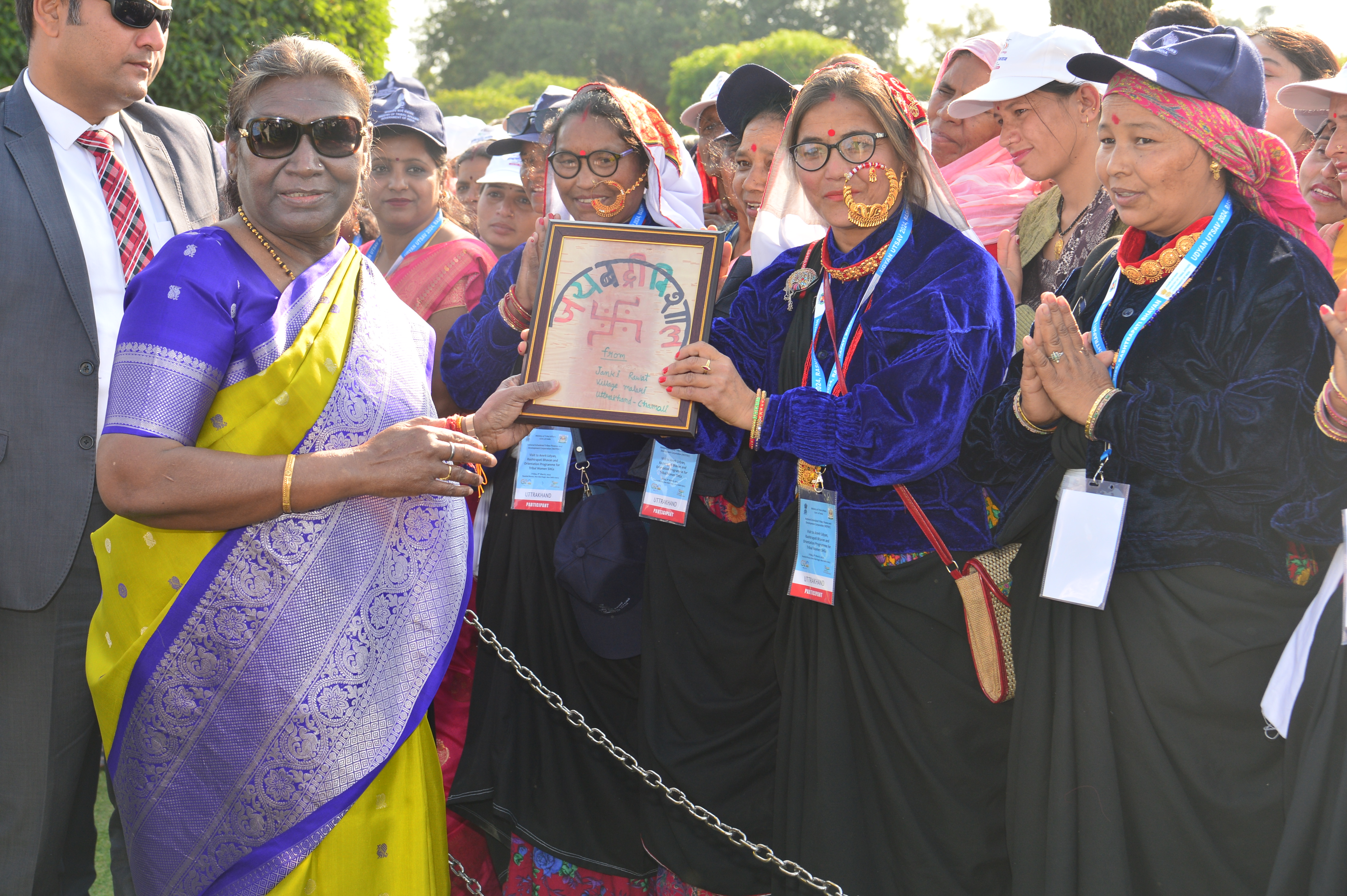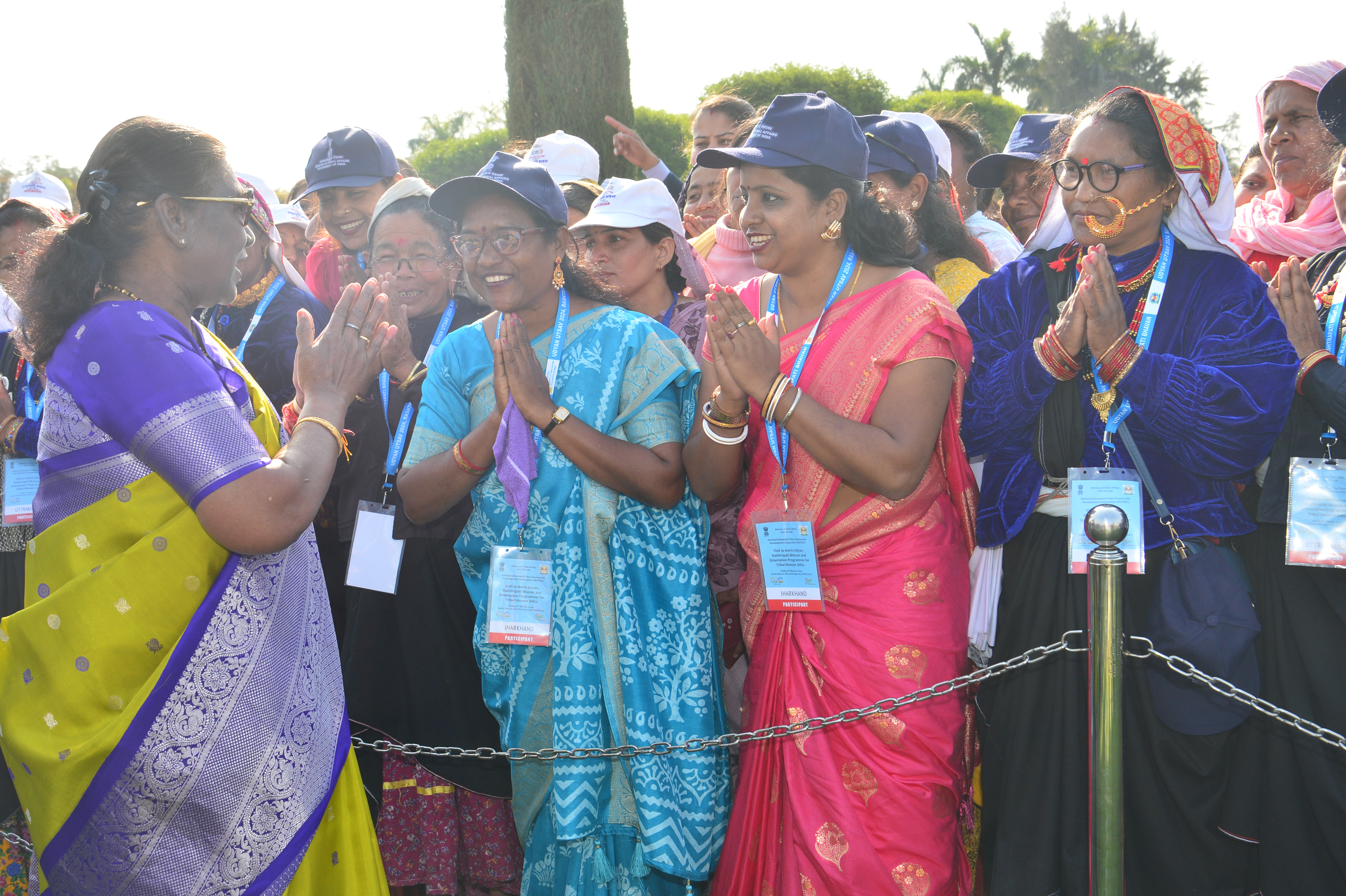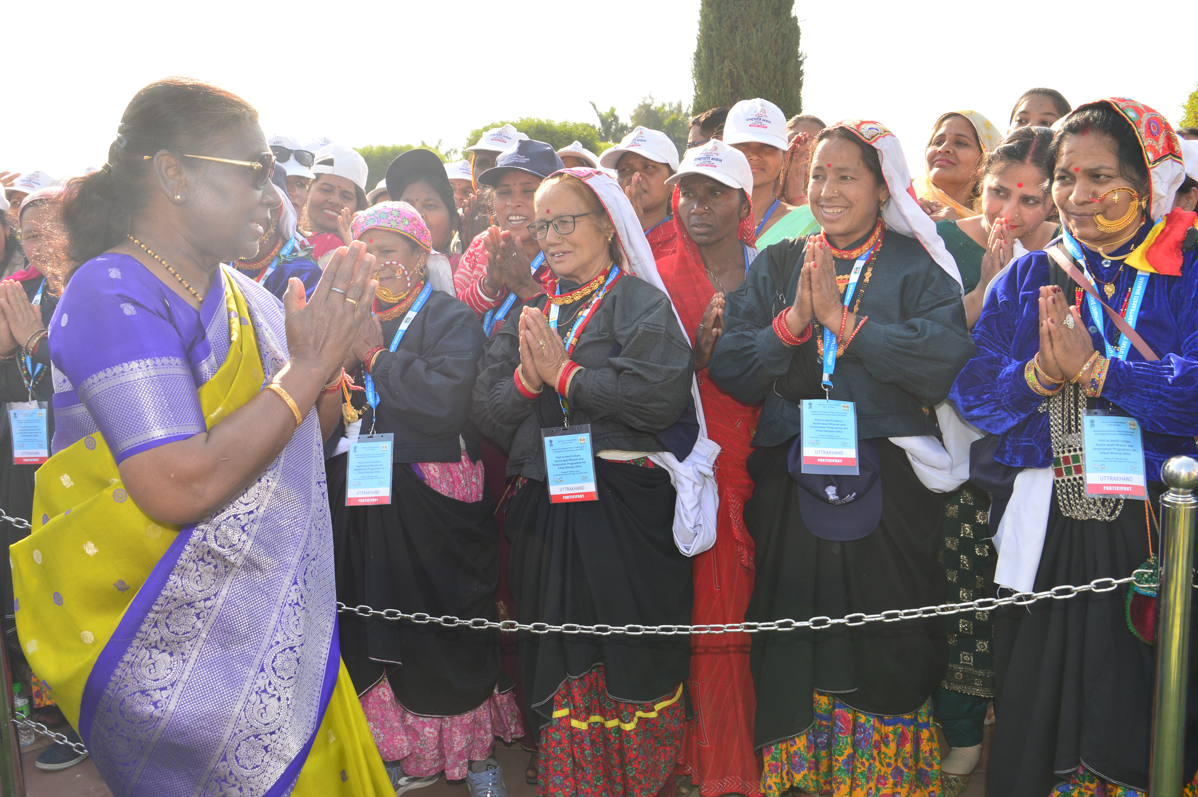 | Caption: | The President of India, Smt Droupadi Murmu met women visiting Amrit Udyan on the day reserved for the special category of Women Tribal Women SHGs-II 08-03-2024 |
