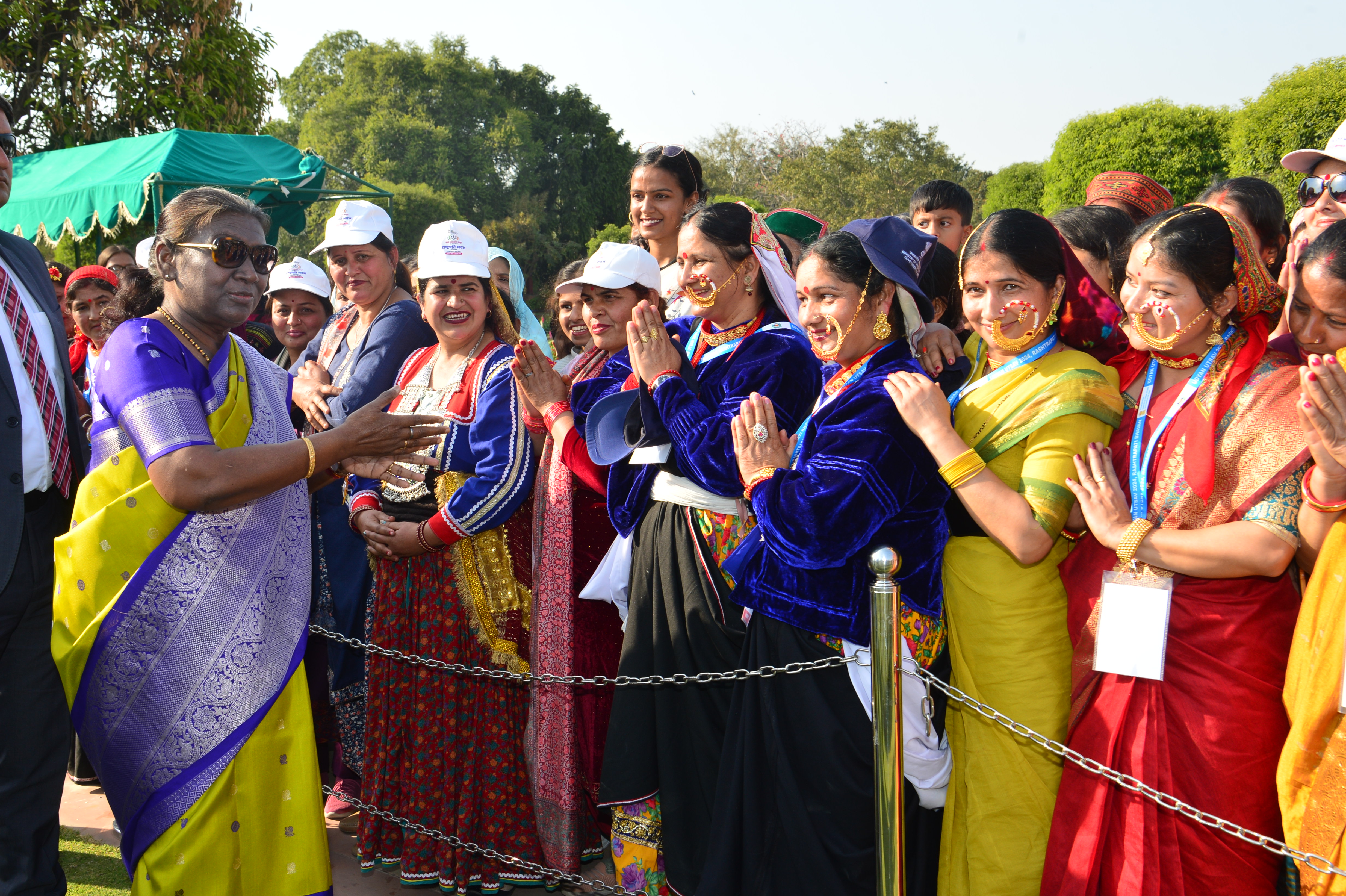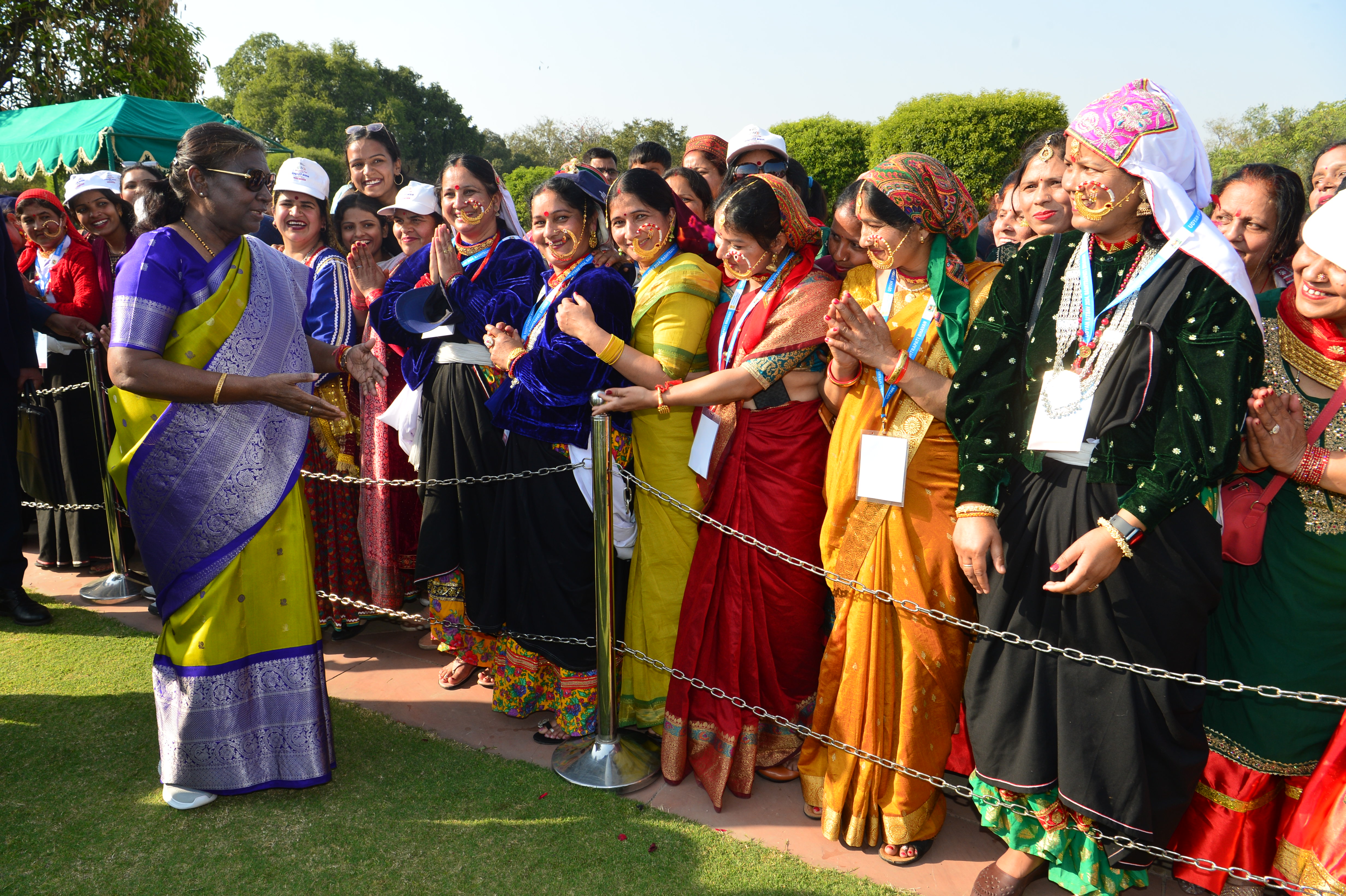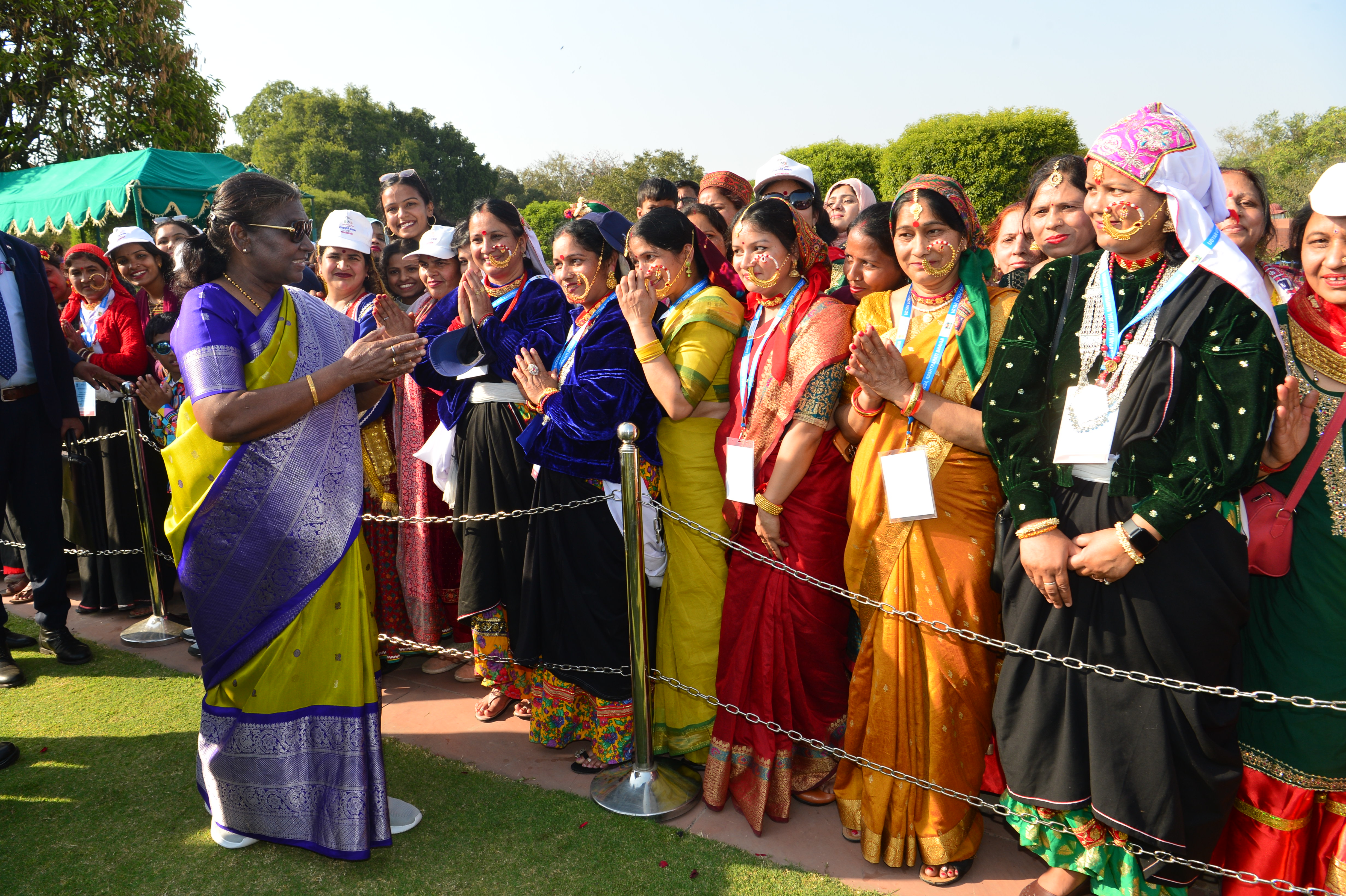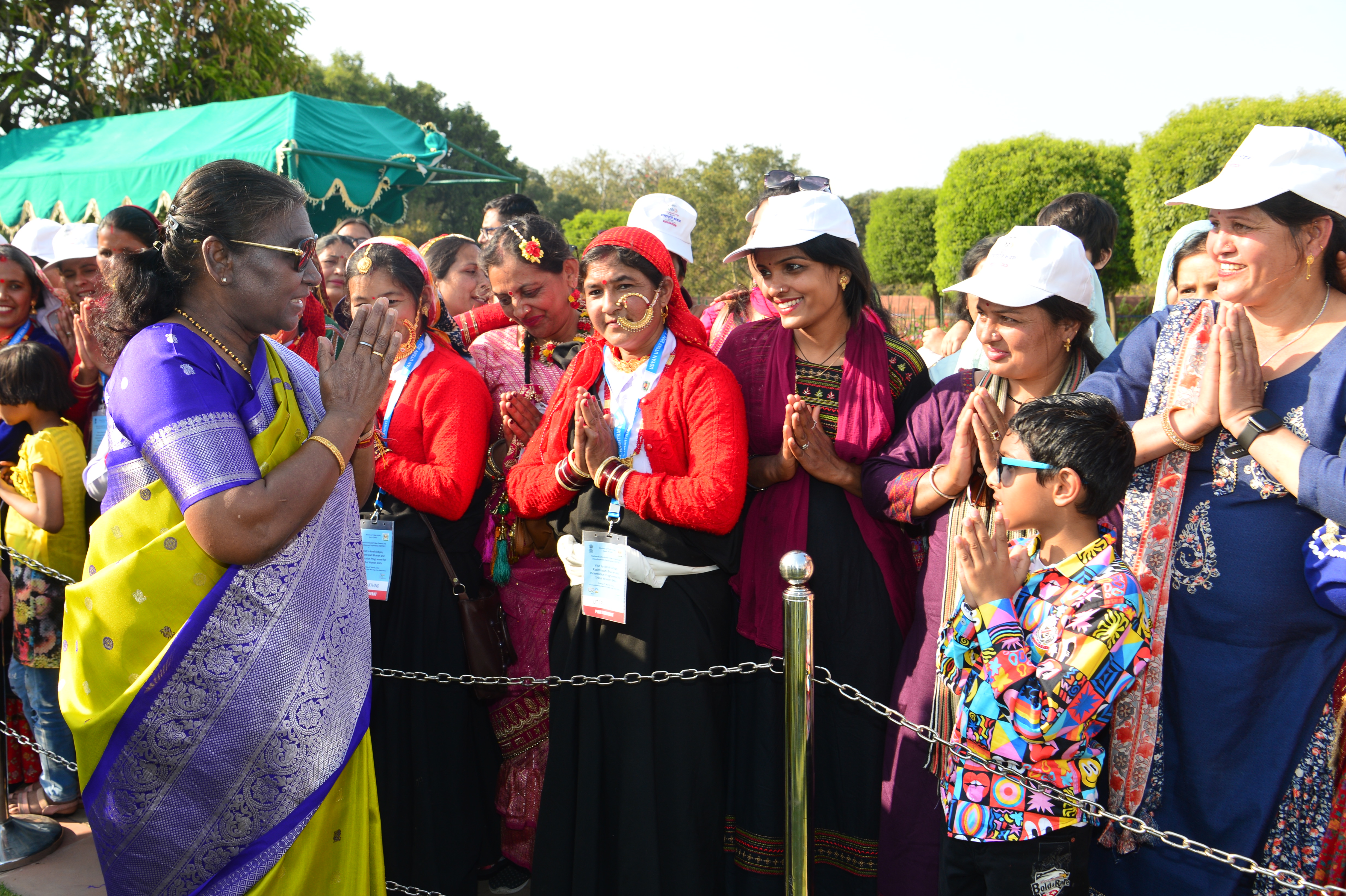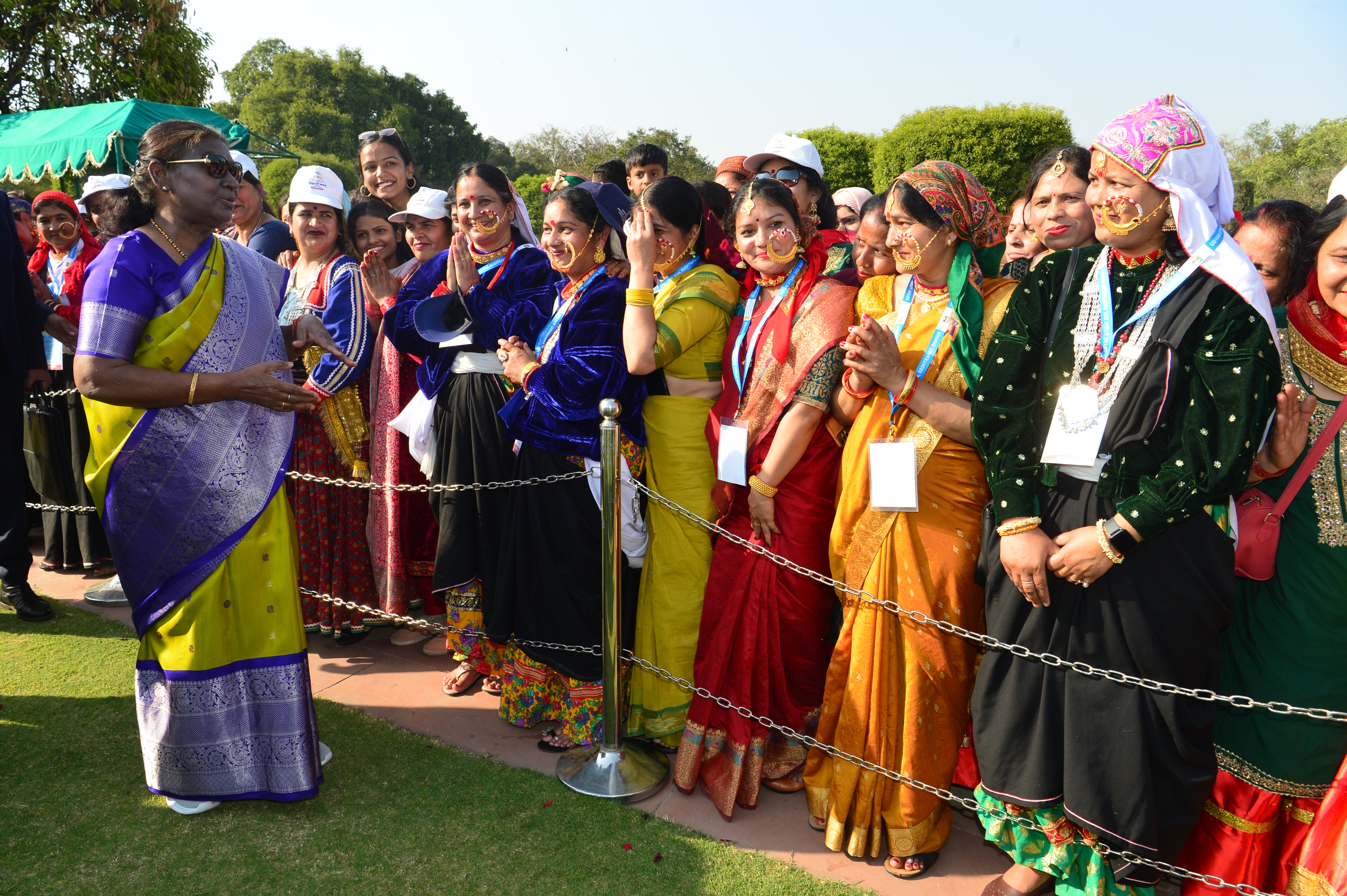 | Caption: | The President of India, Smt Droupadi Murmu met women visiting Amrit Udyan on the day reserved for the special category of Women Tribal Women SHGs-II 08-03-2024 |