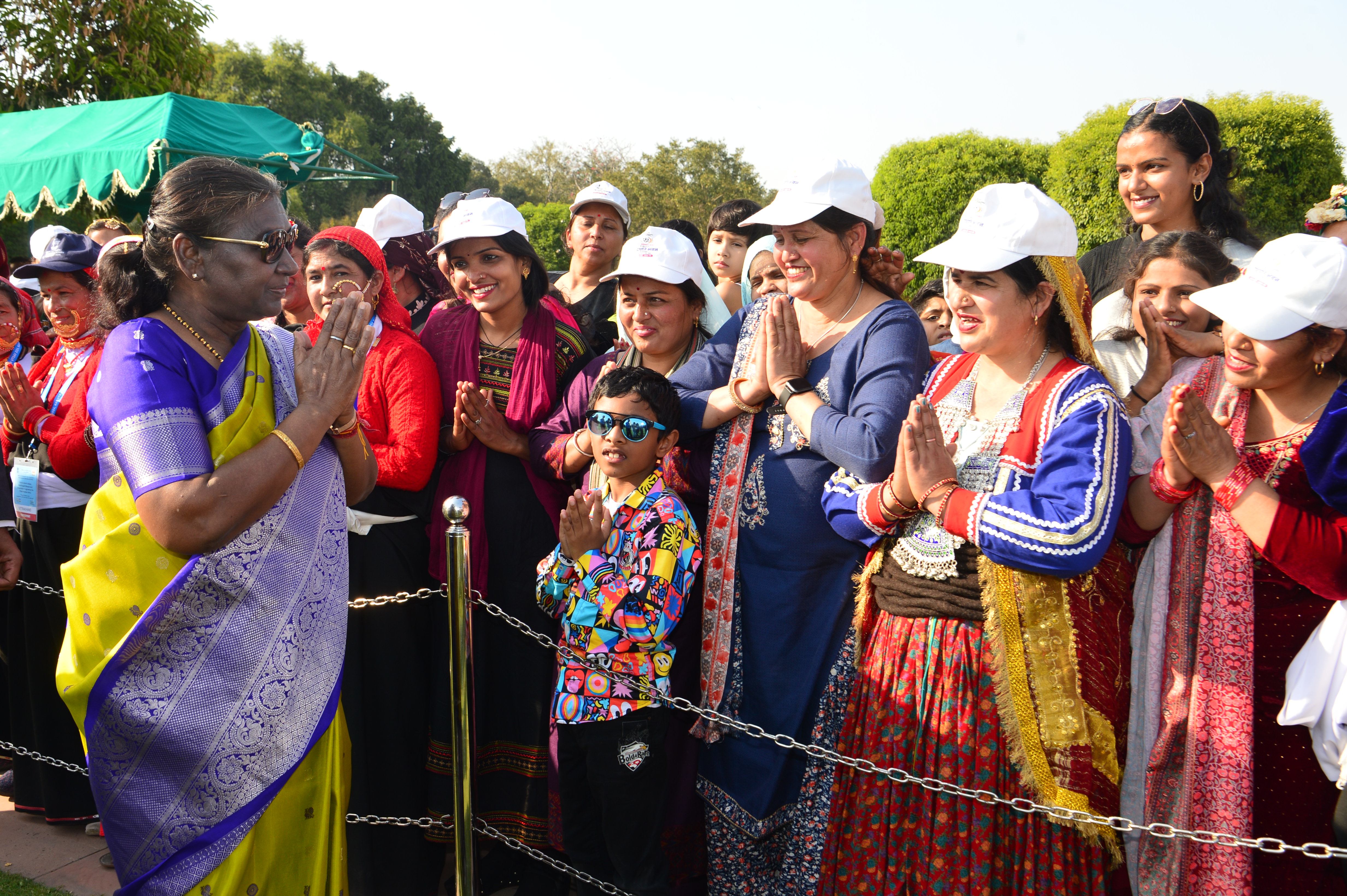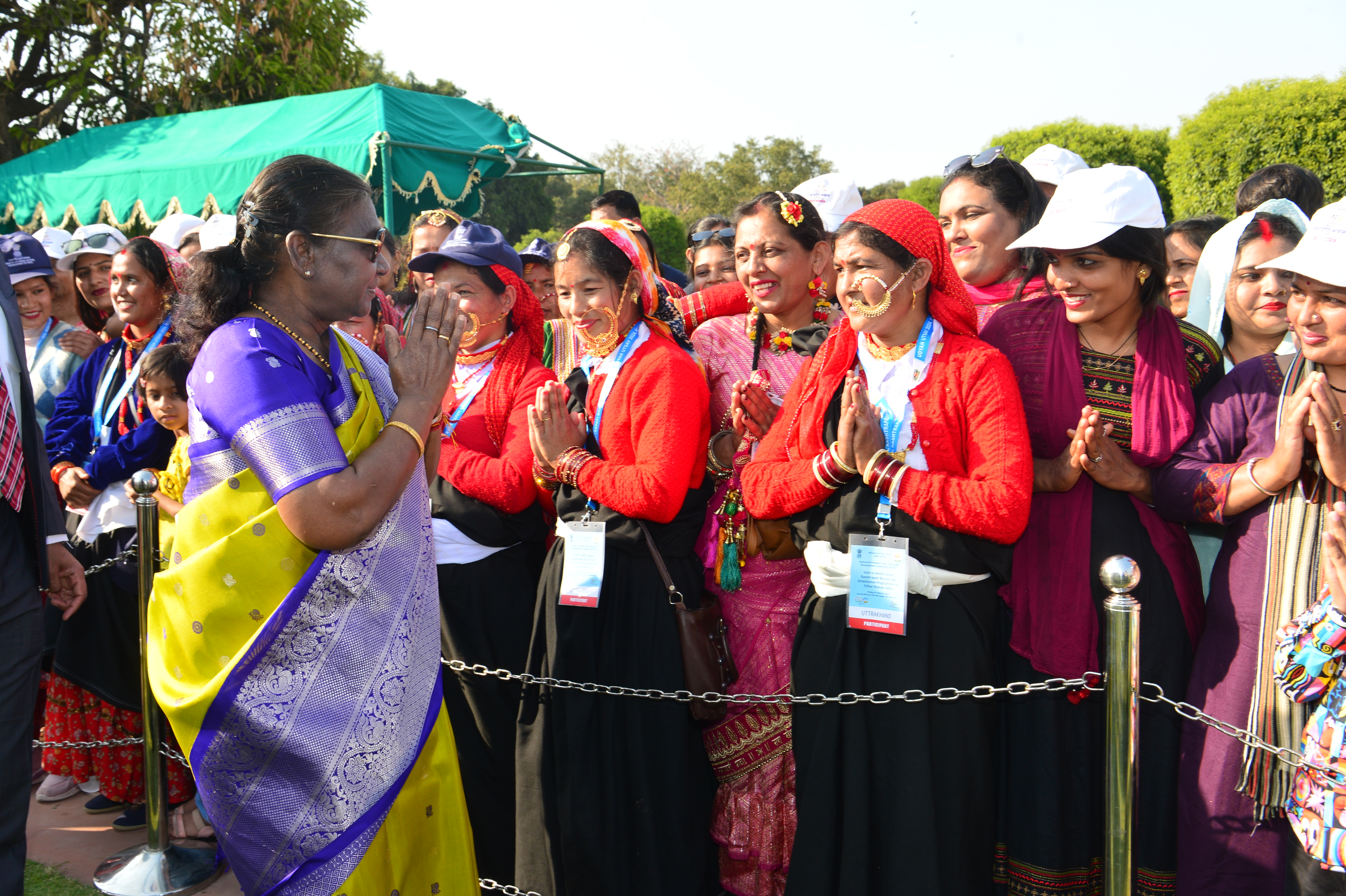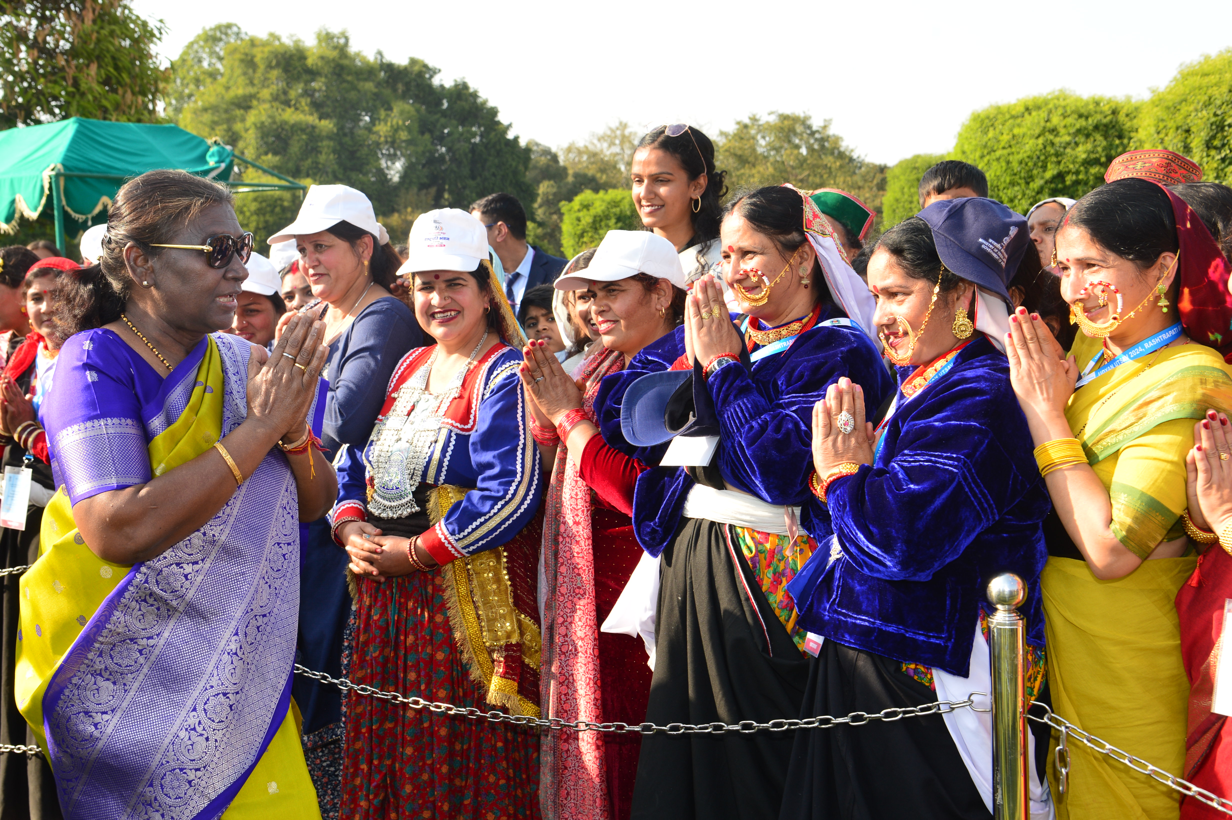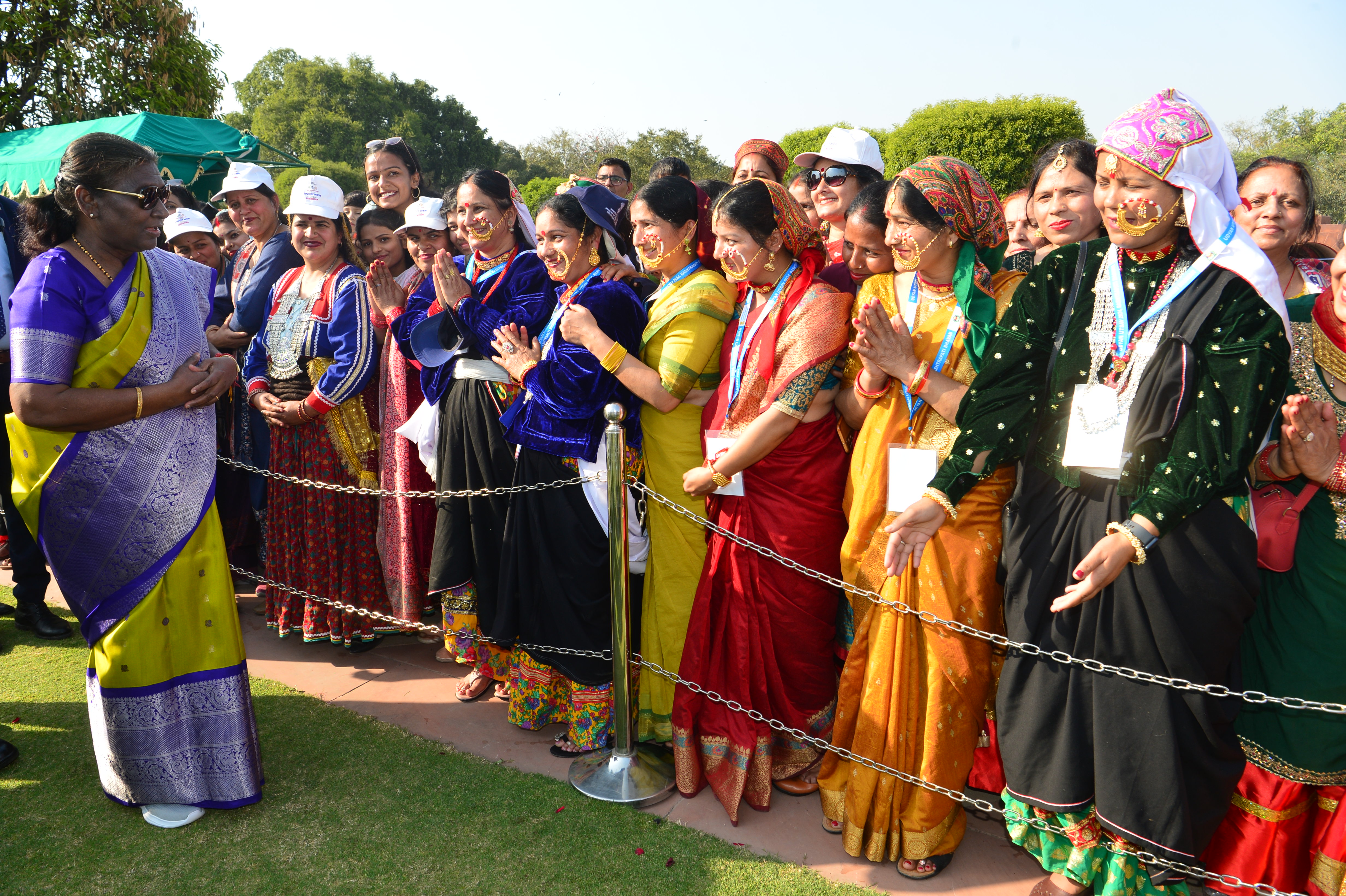| Caption: | The President of India, Smt Droupadi Murmu met women visiting Amrit Udyan on the day reserved for the special category of Women Tribal Women SHGs-II 08-03-2024 |