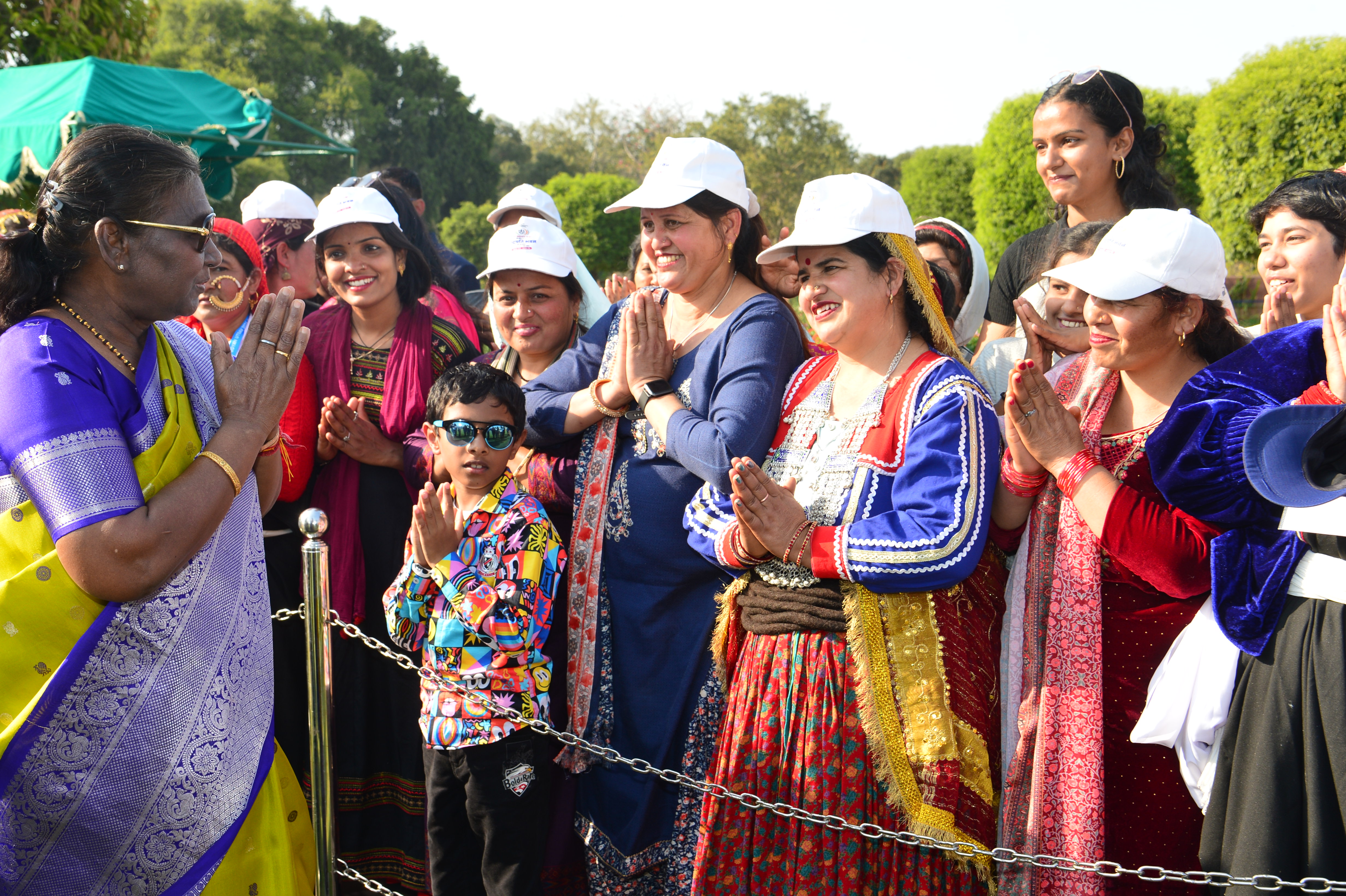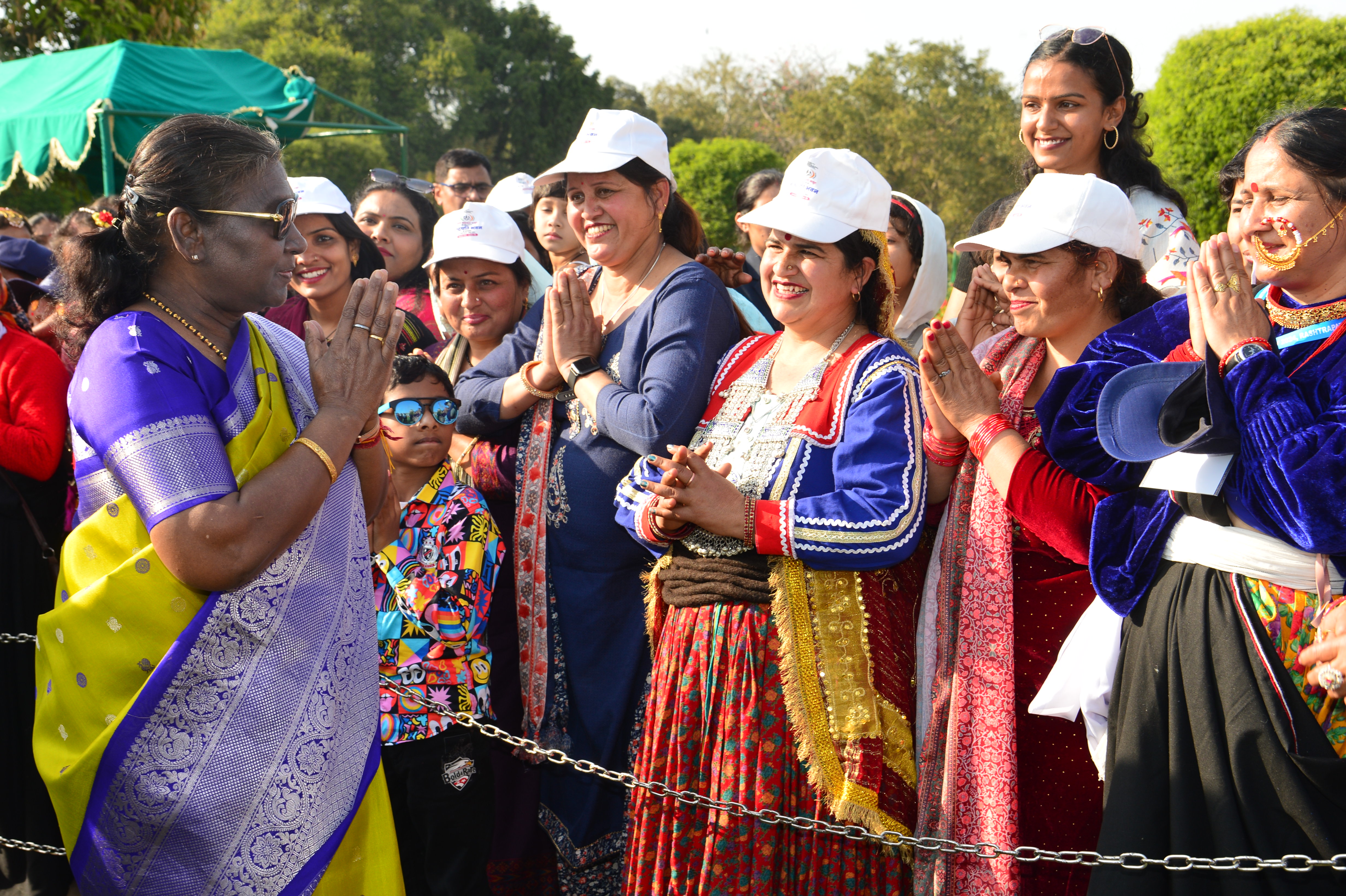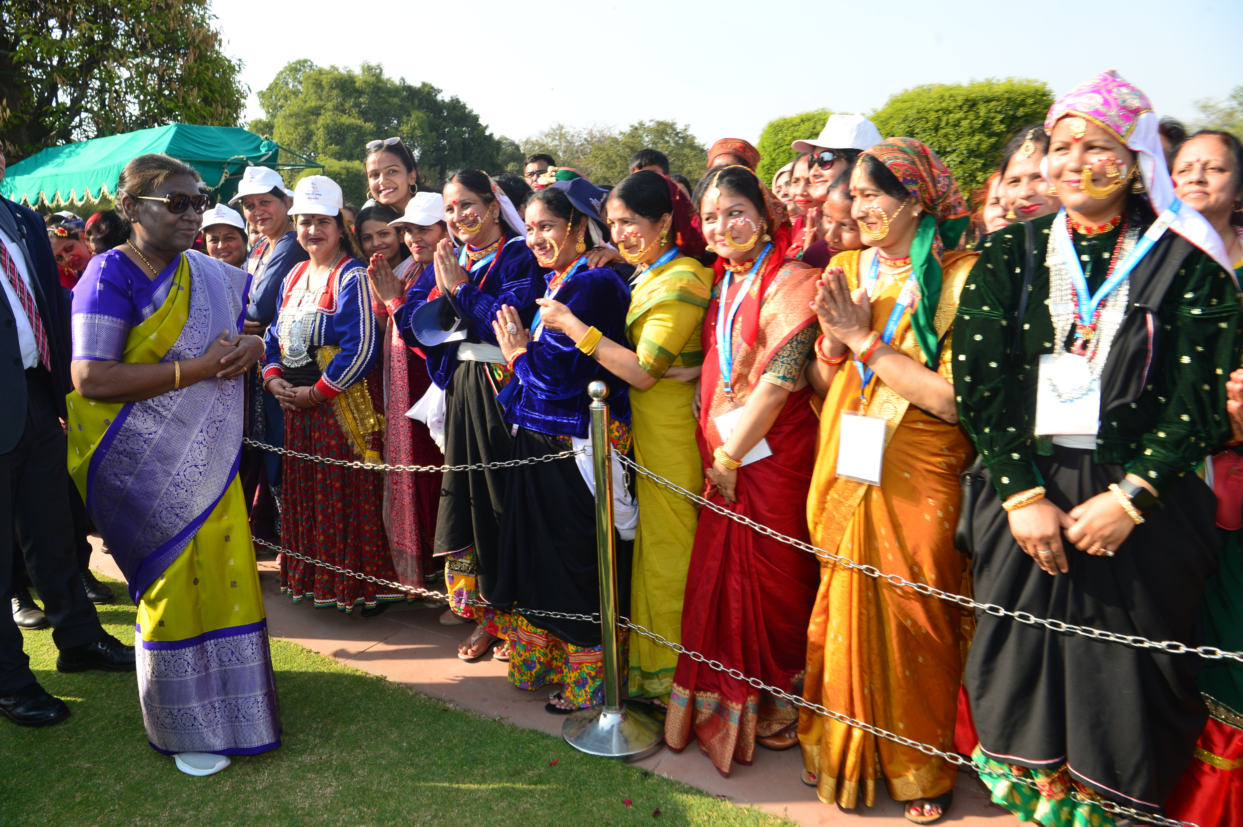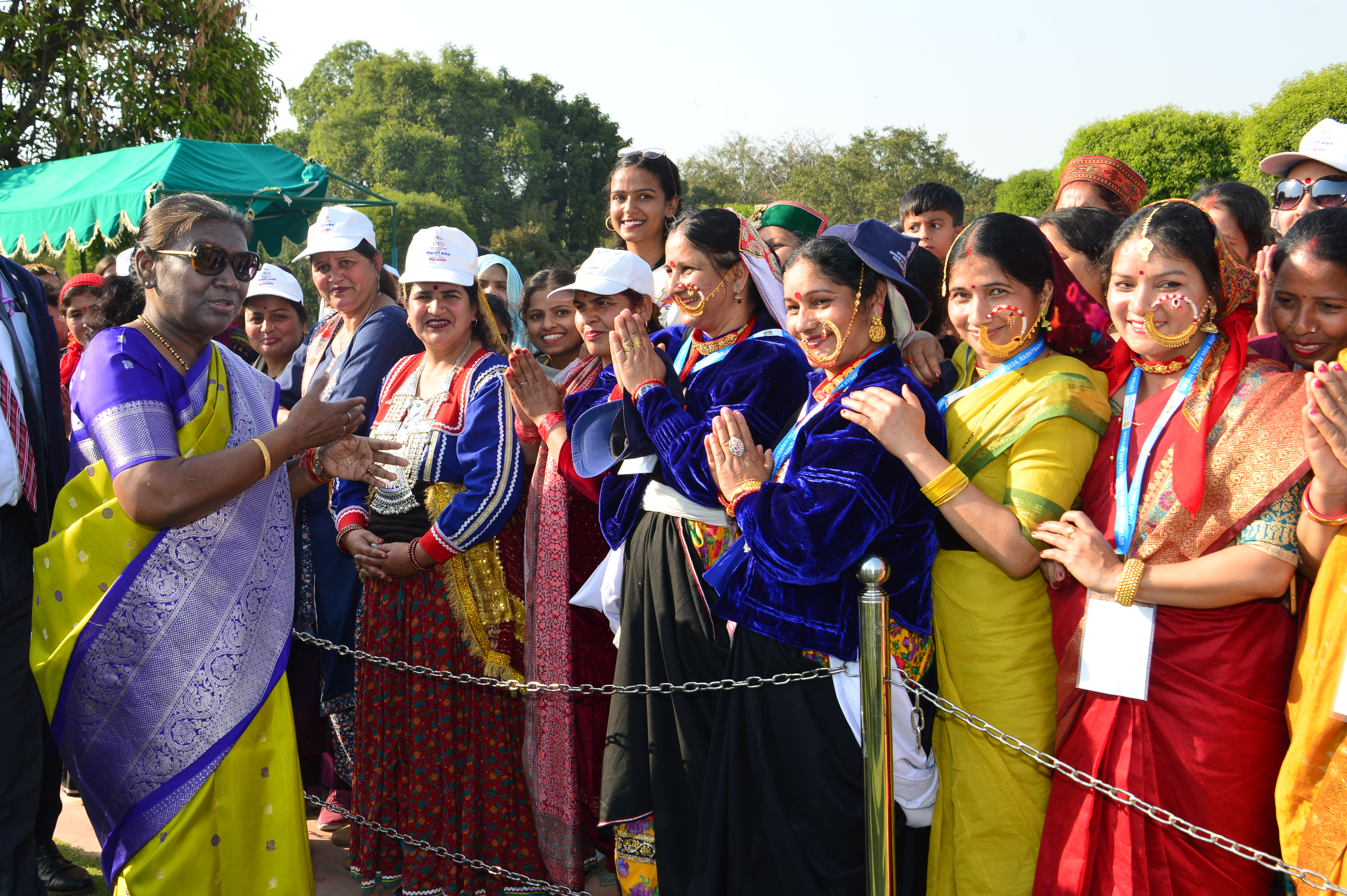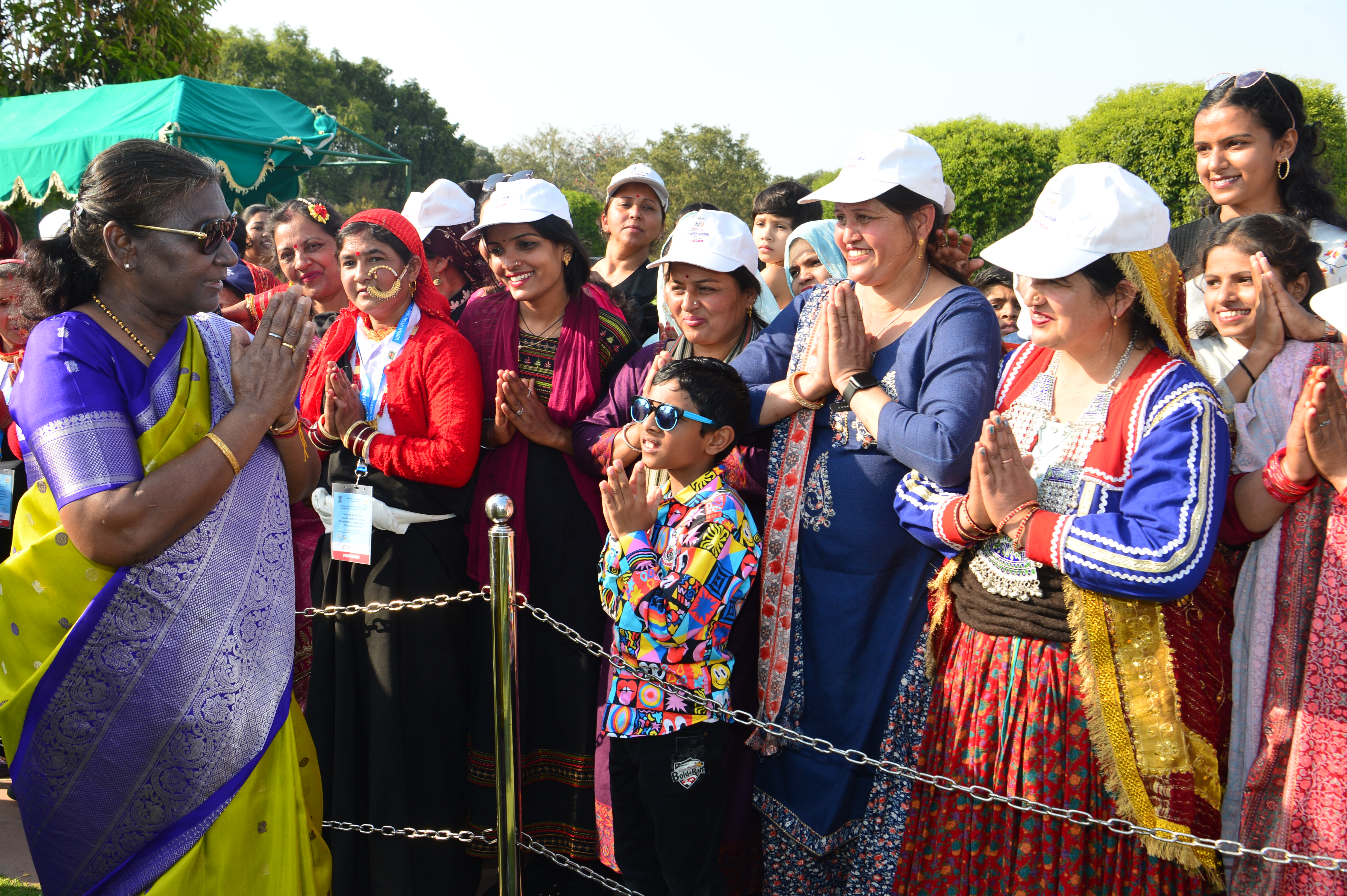 | Caption: | The President of India, Smt Droupadi Murmu met women visiting Amrit Udyan on the day reserved for the special category of Women Tribal Women SHGs-II 08-03-2024 |