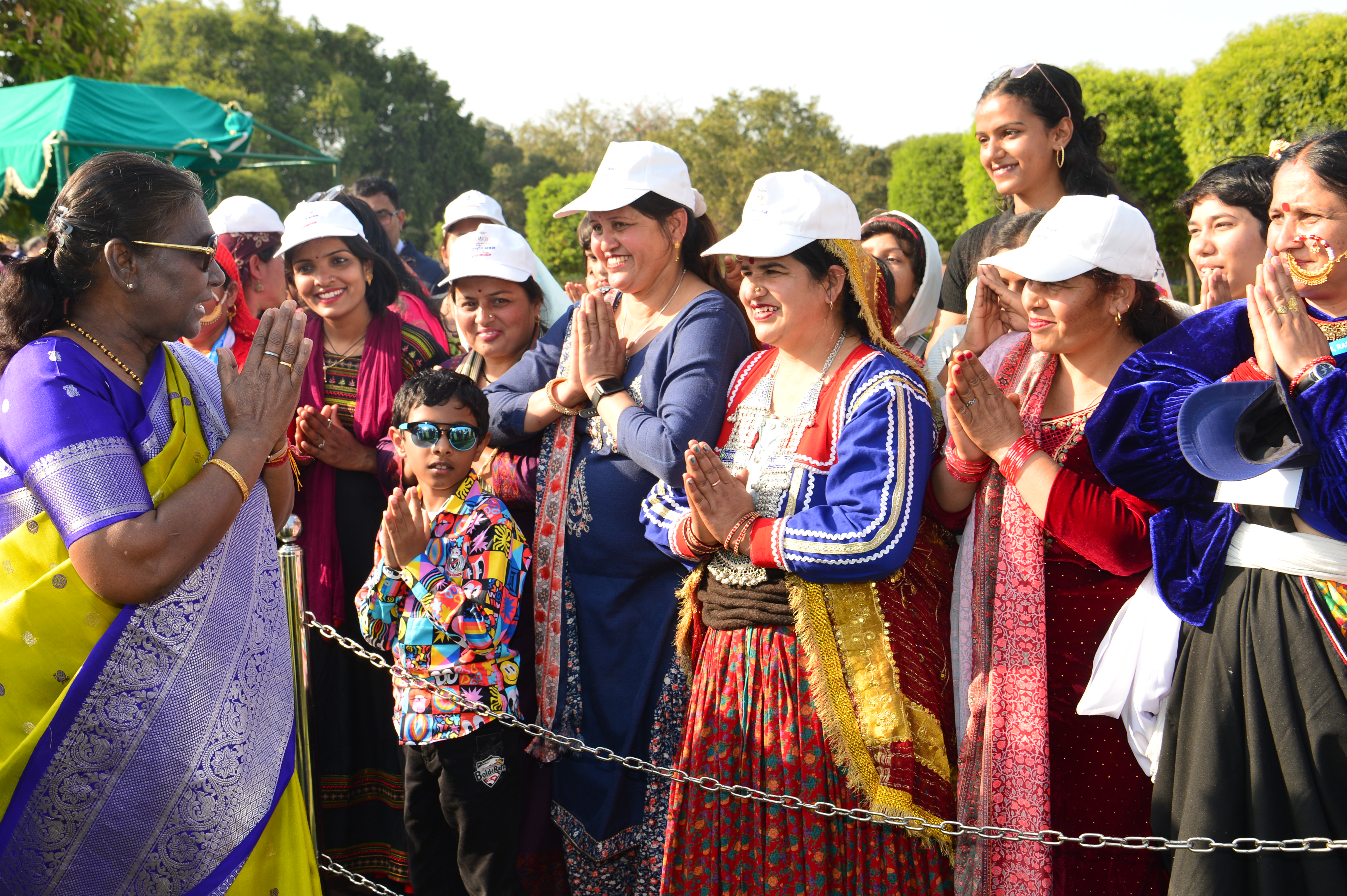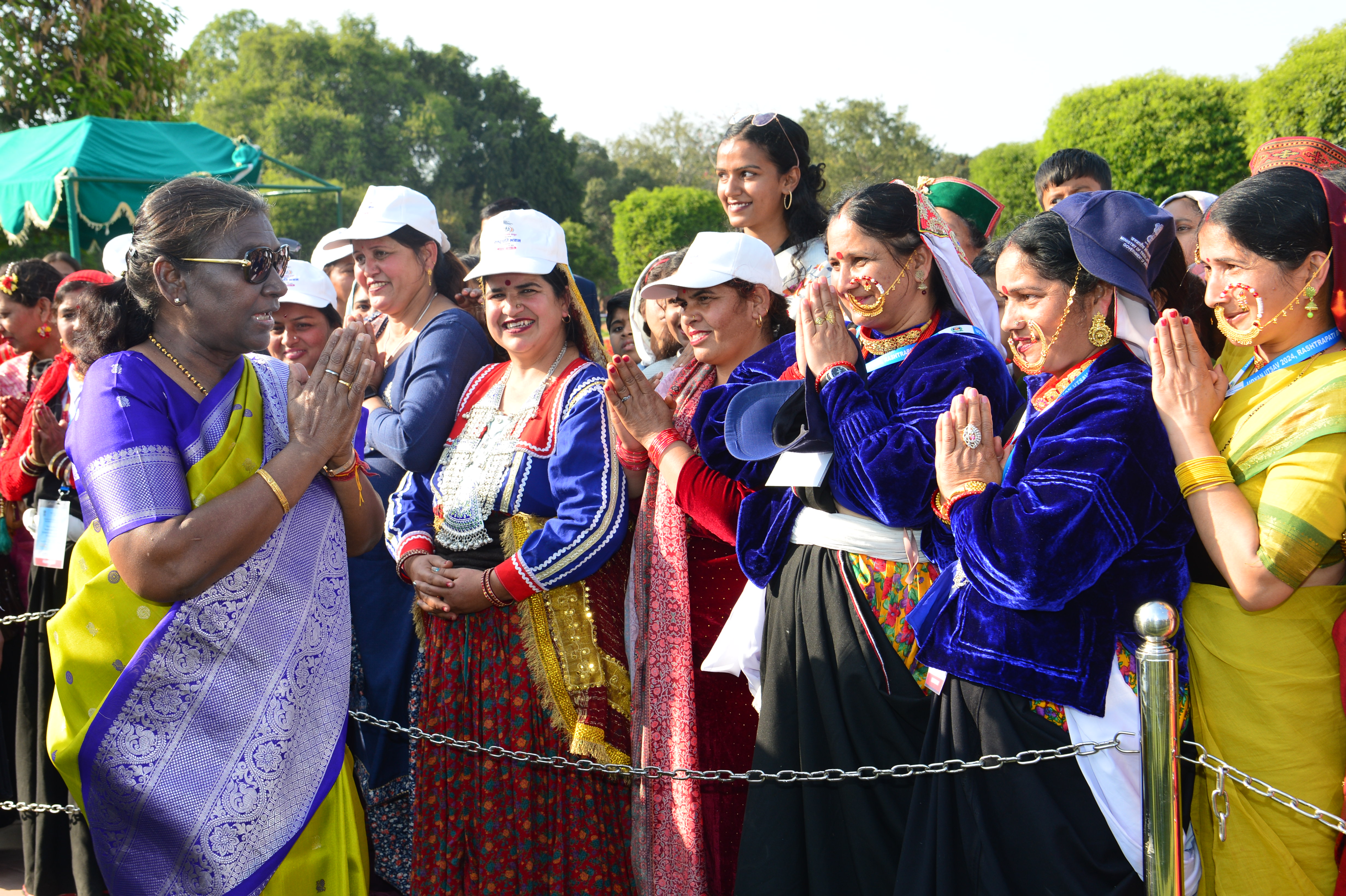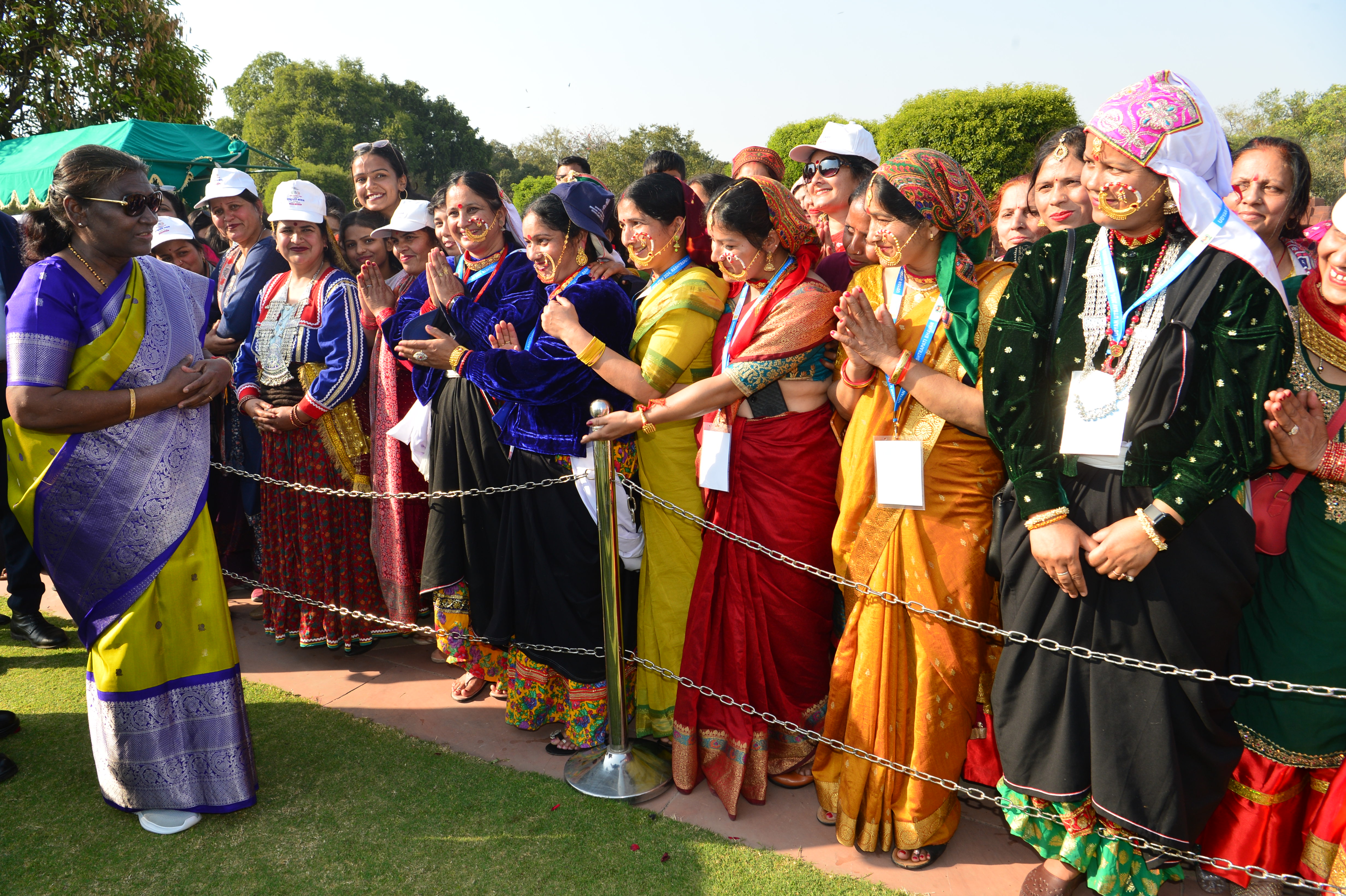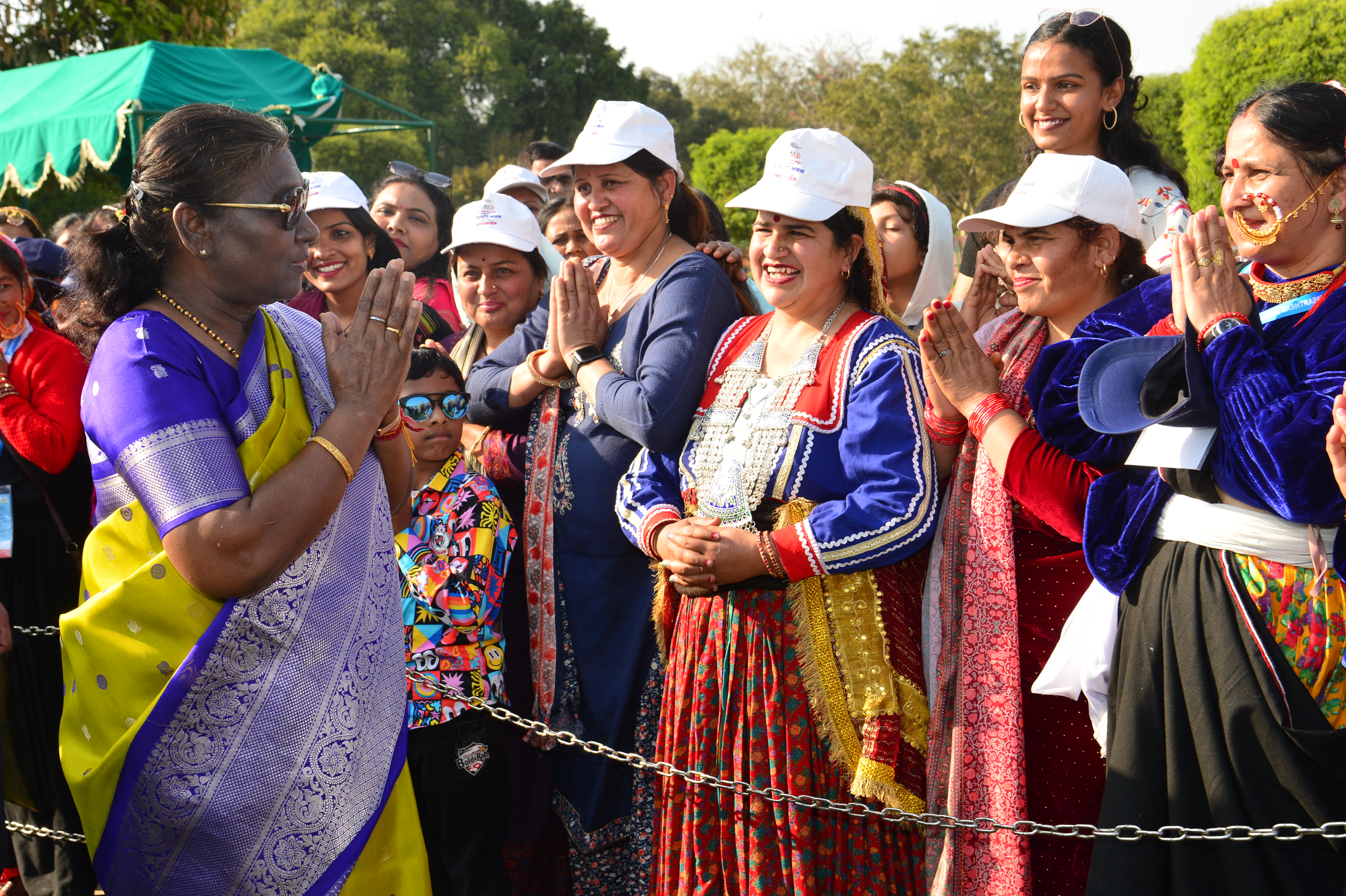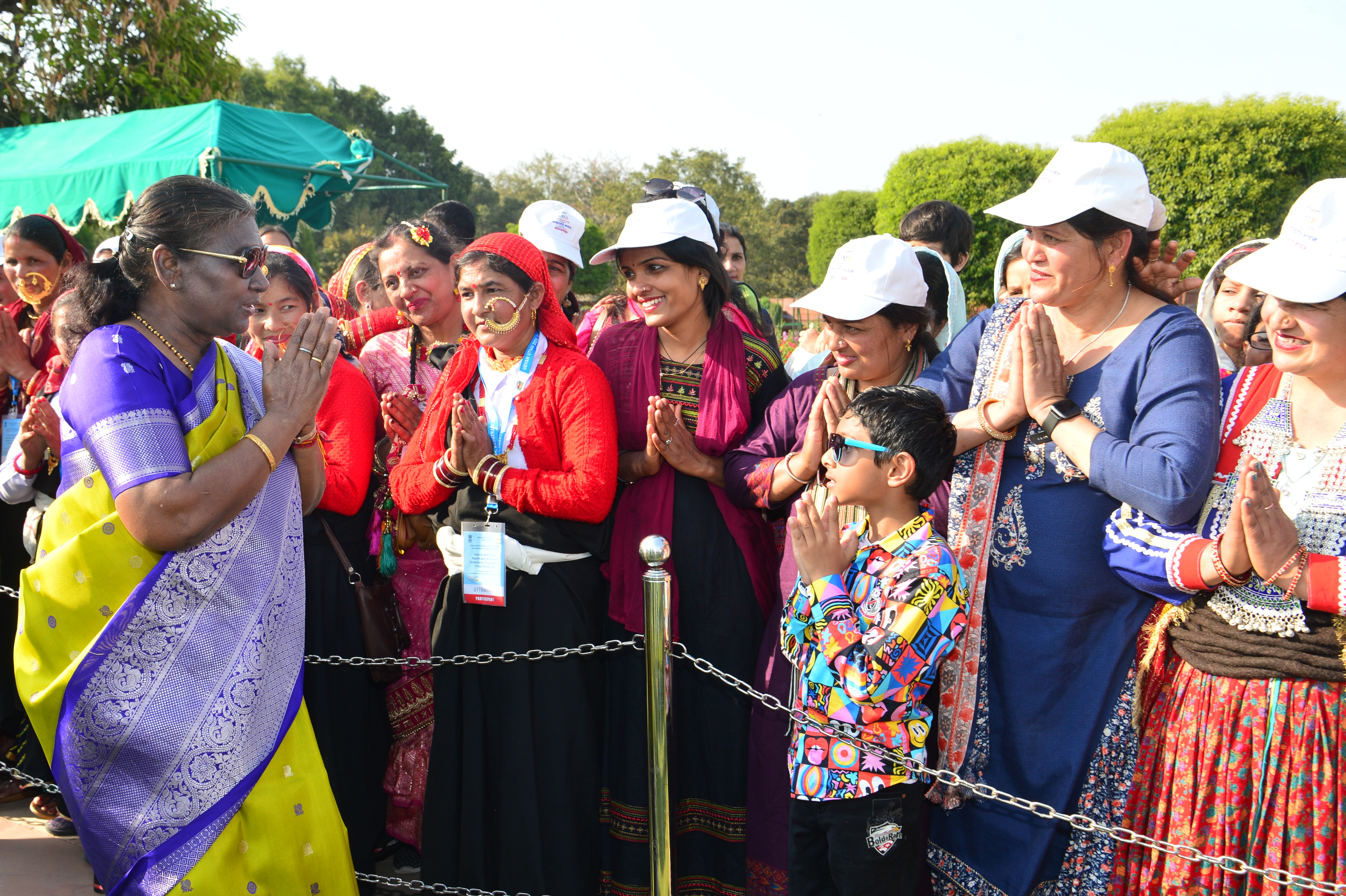 | Caption: | The President of India, Smt Droupadi Murmu met women visiting Amrit Udyan on the day reserved for the special category of Women Tribal Women SHGs-II 08-03-2024 |