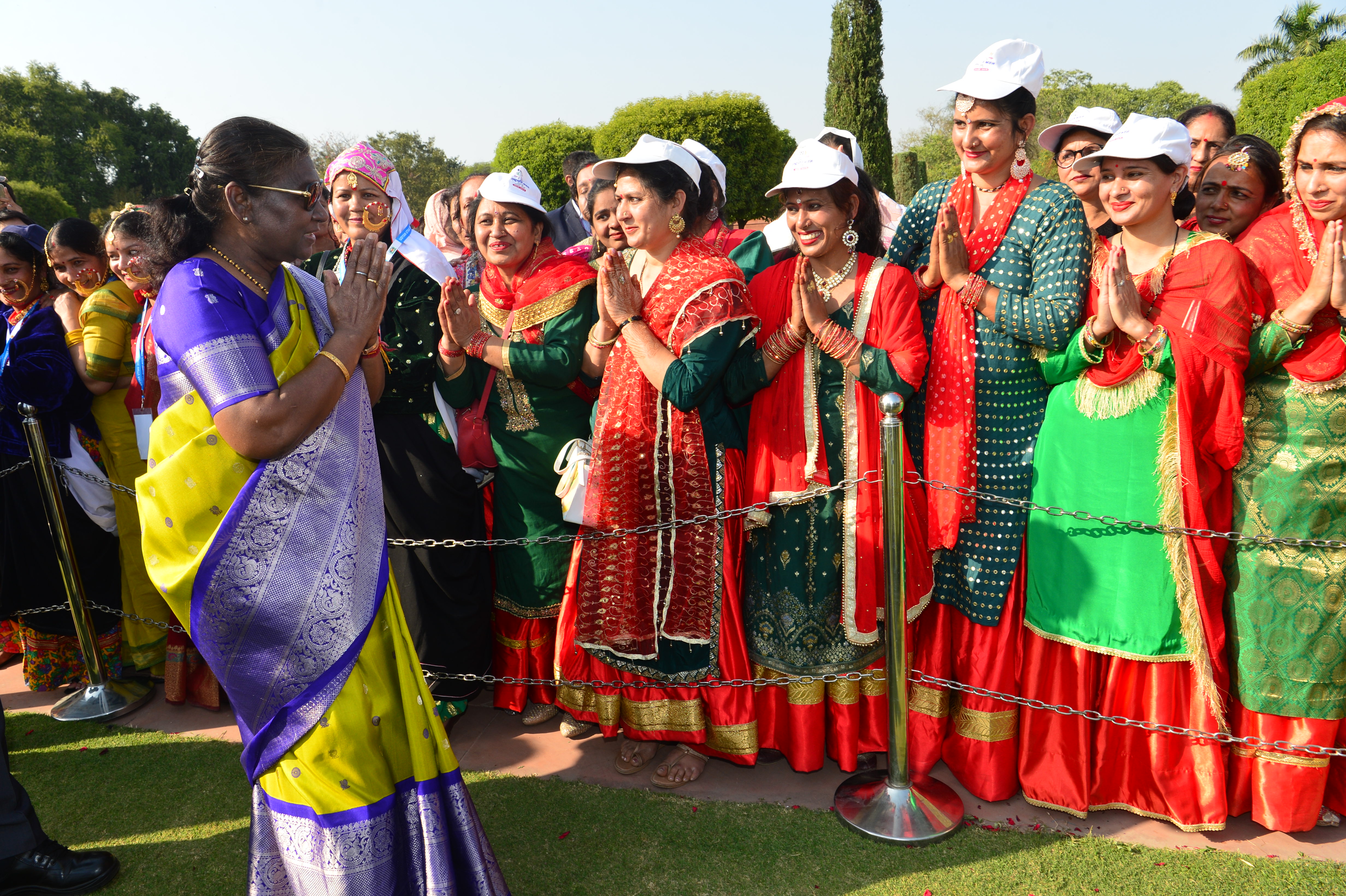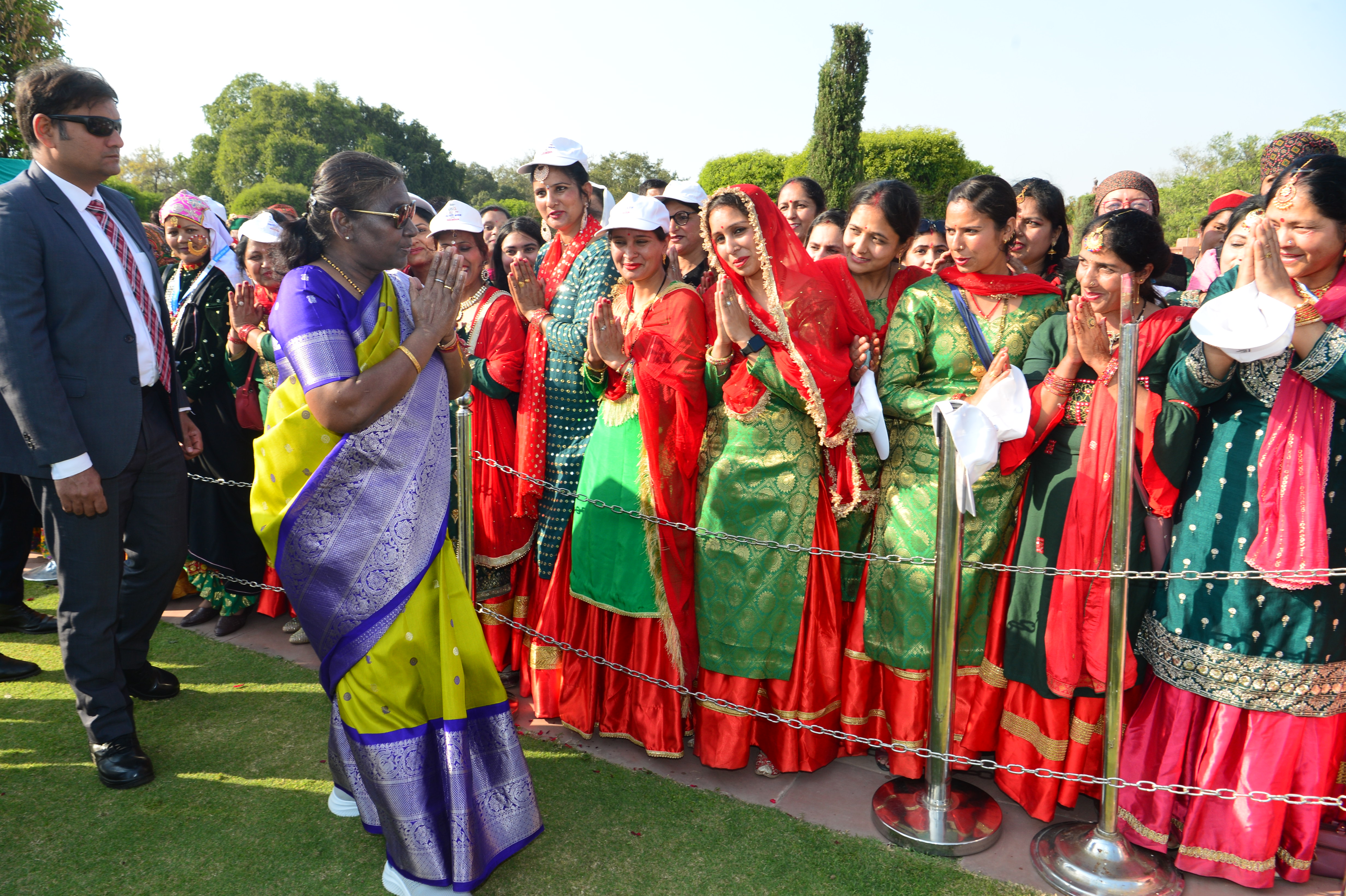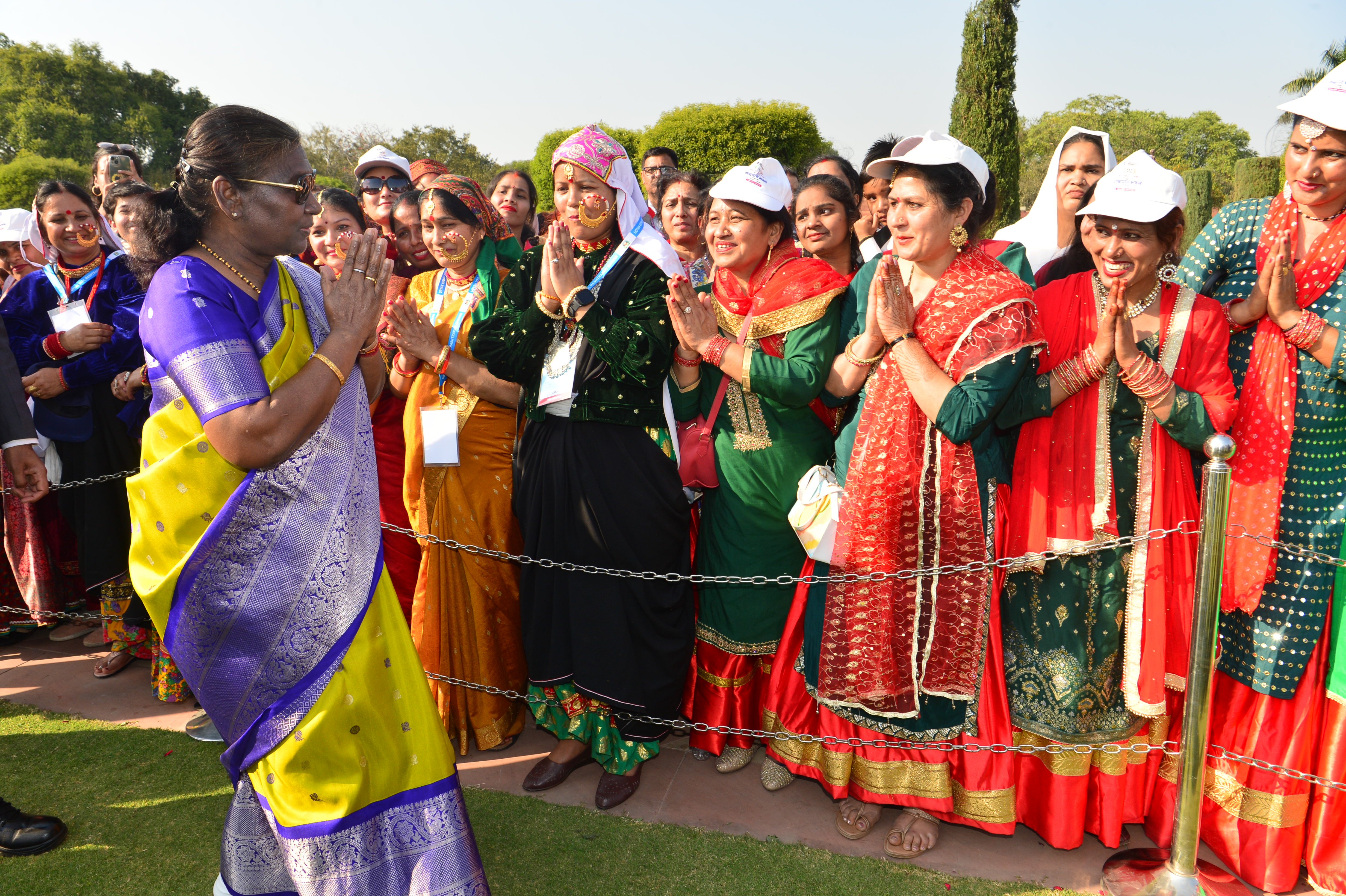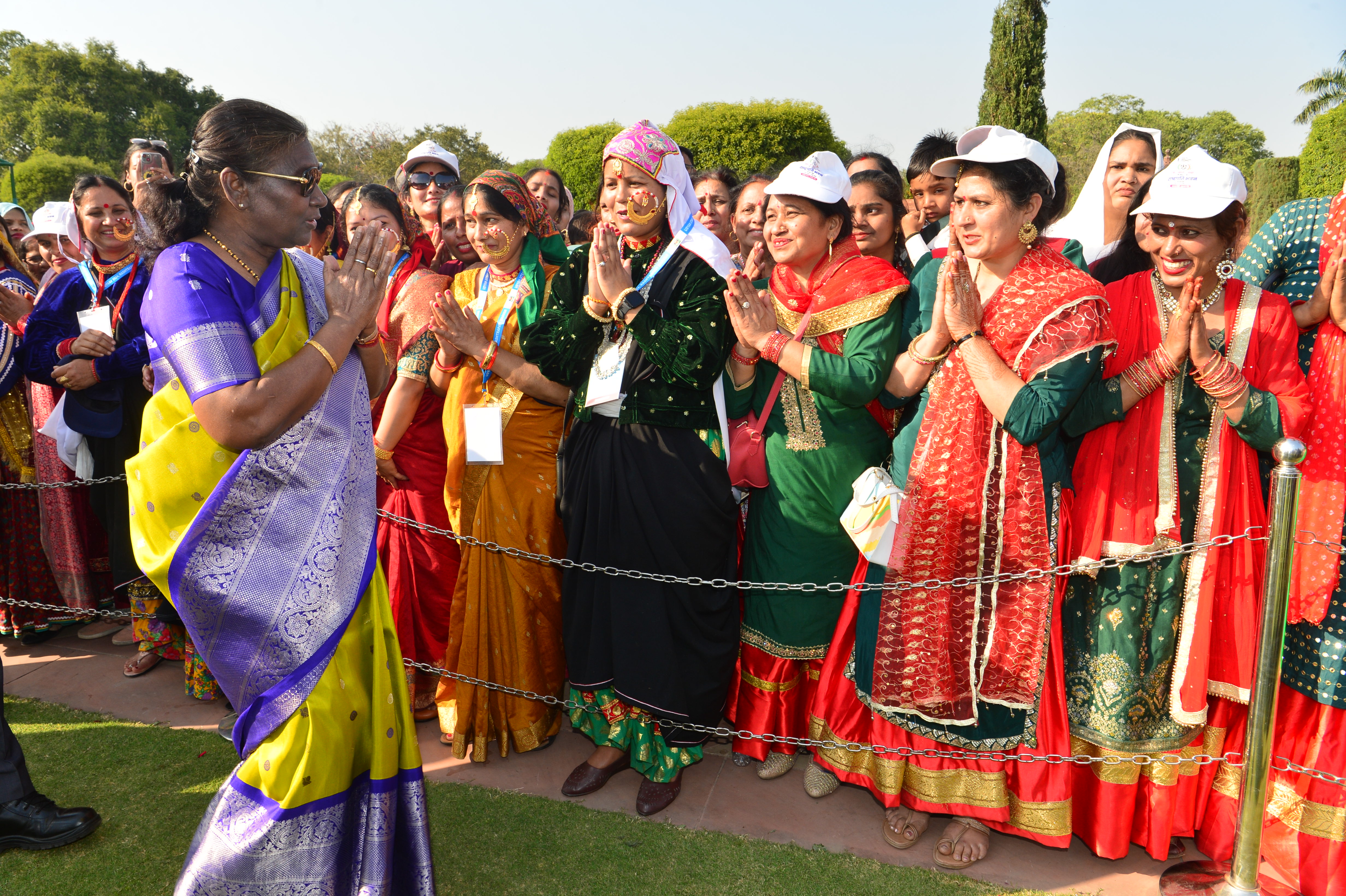 | Caption: | The President of India, Smt Droupadi Murmu met women visiting Amrit Udyan on the day reserved for the special category of Women Tribal Women SHGs-II 08-03-2024 |