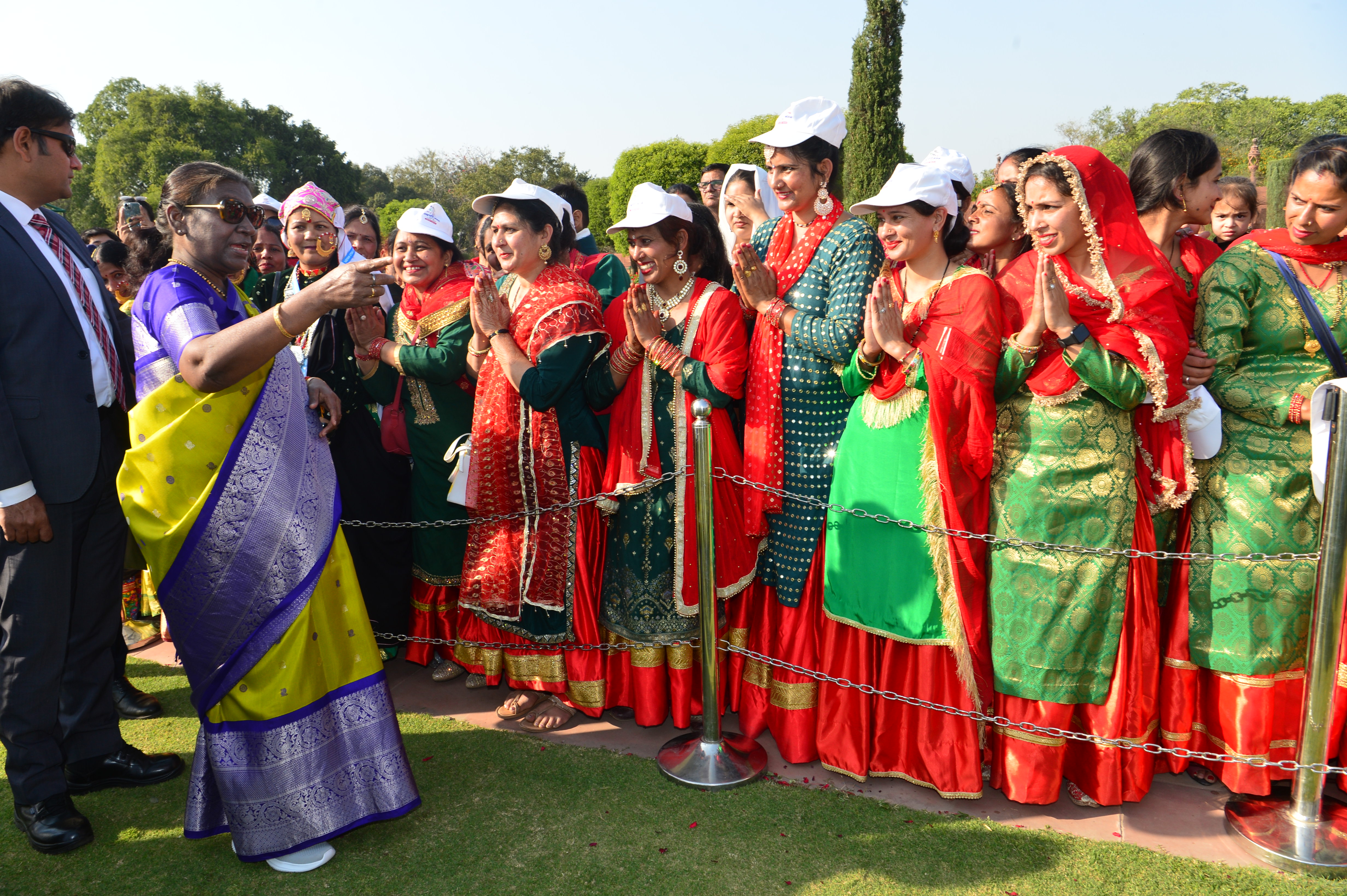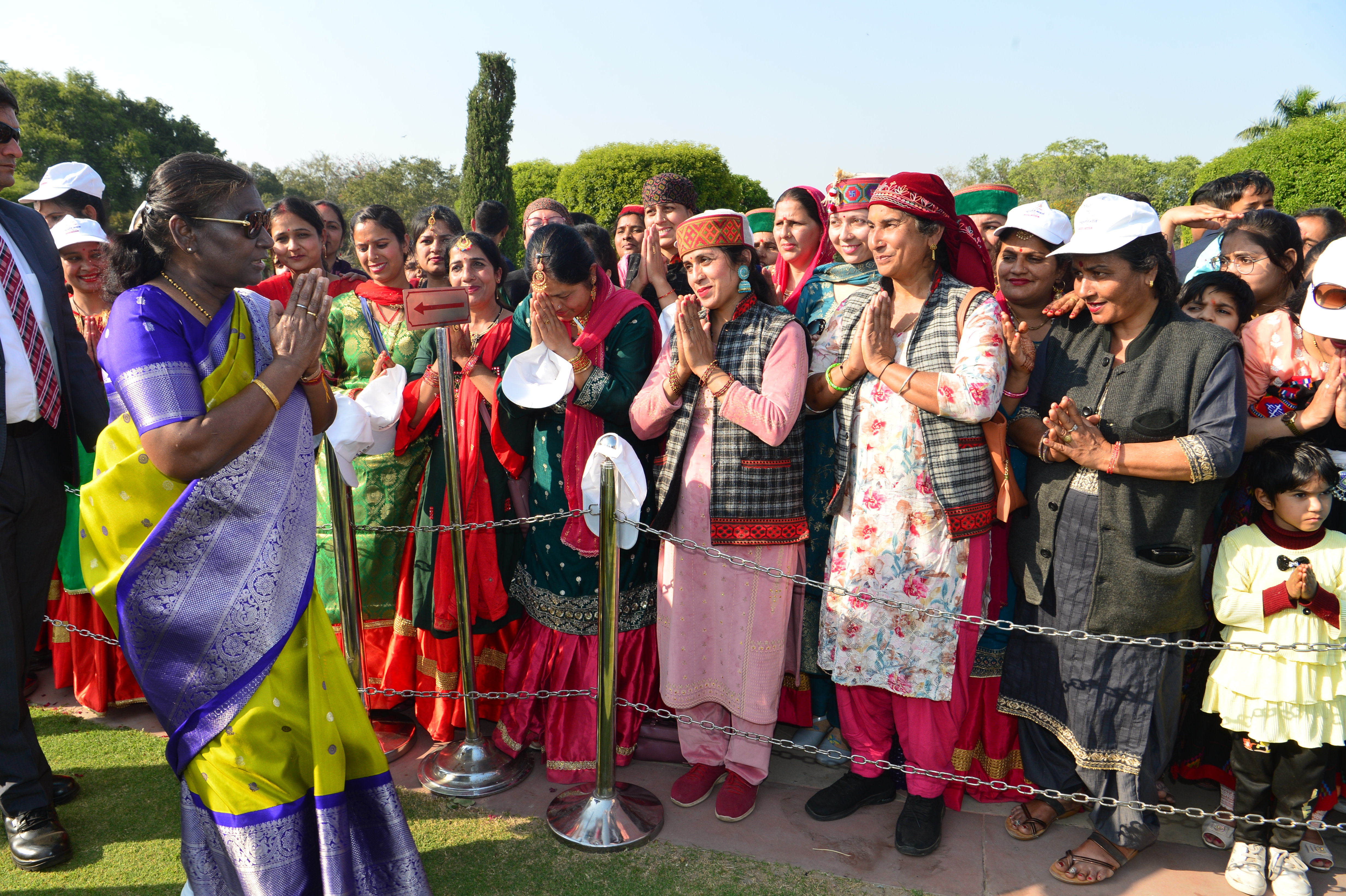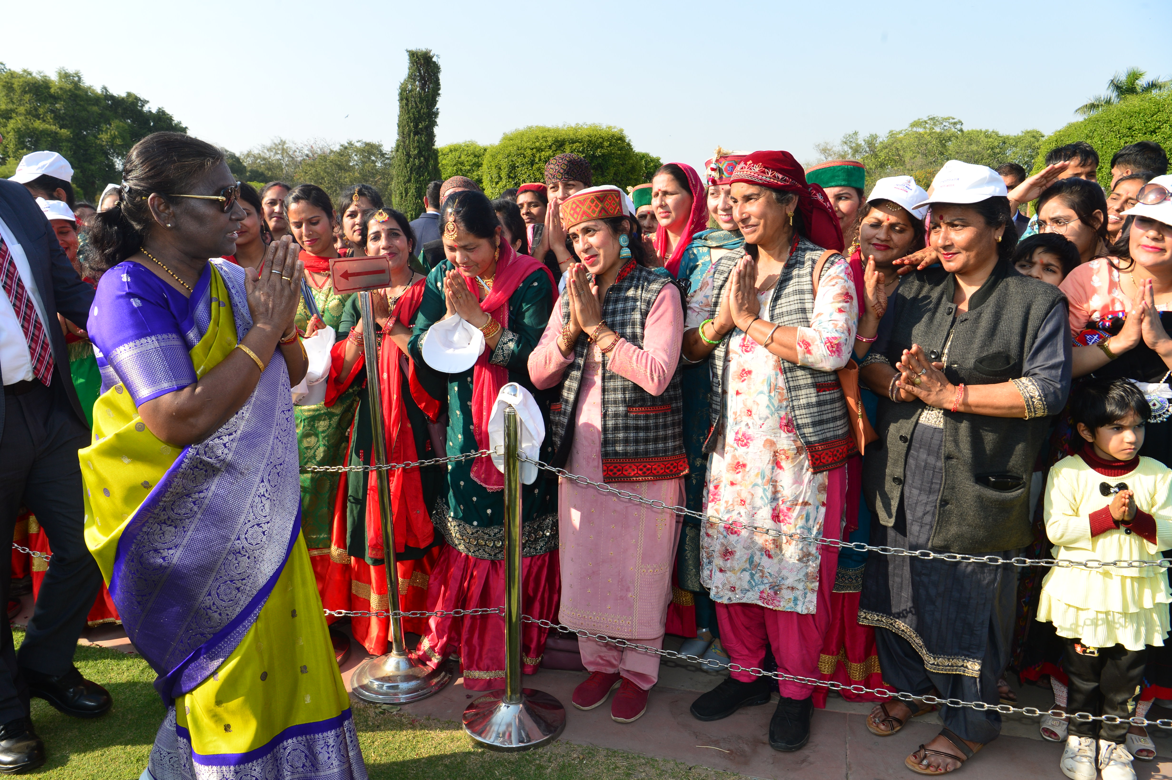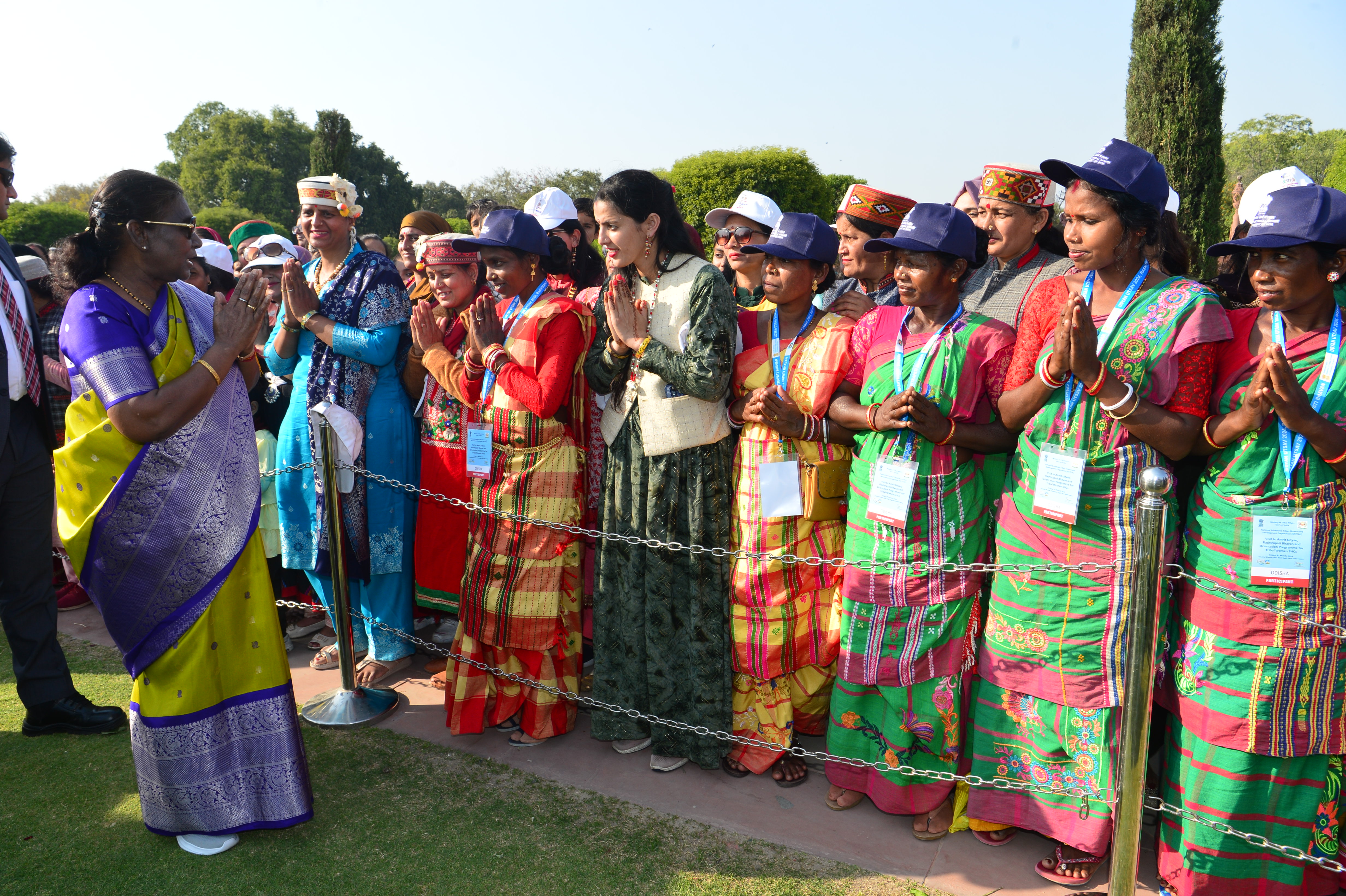 | Caption: | The President of India, Smt Droupadi Murmu met women visiting Amrit Udyan on the day reserved for the special category of Women Tribal Women SHGs-II 08-03-2024 |