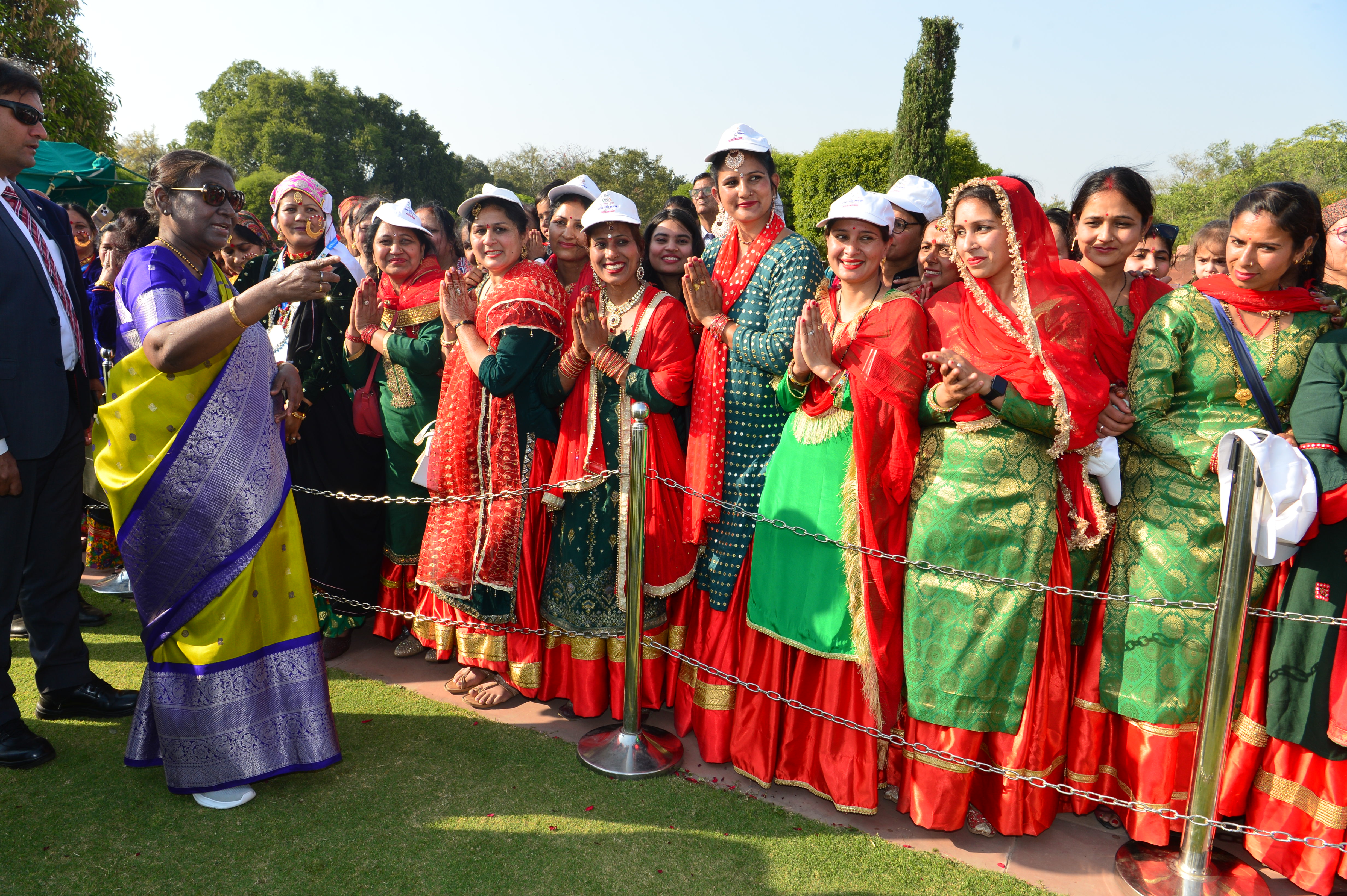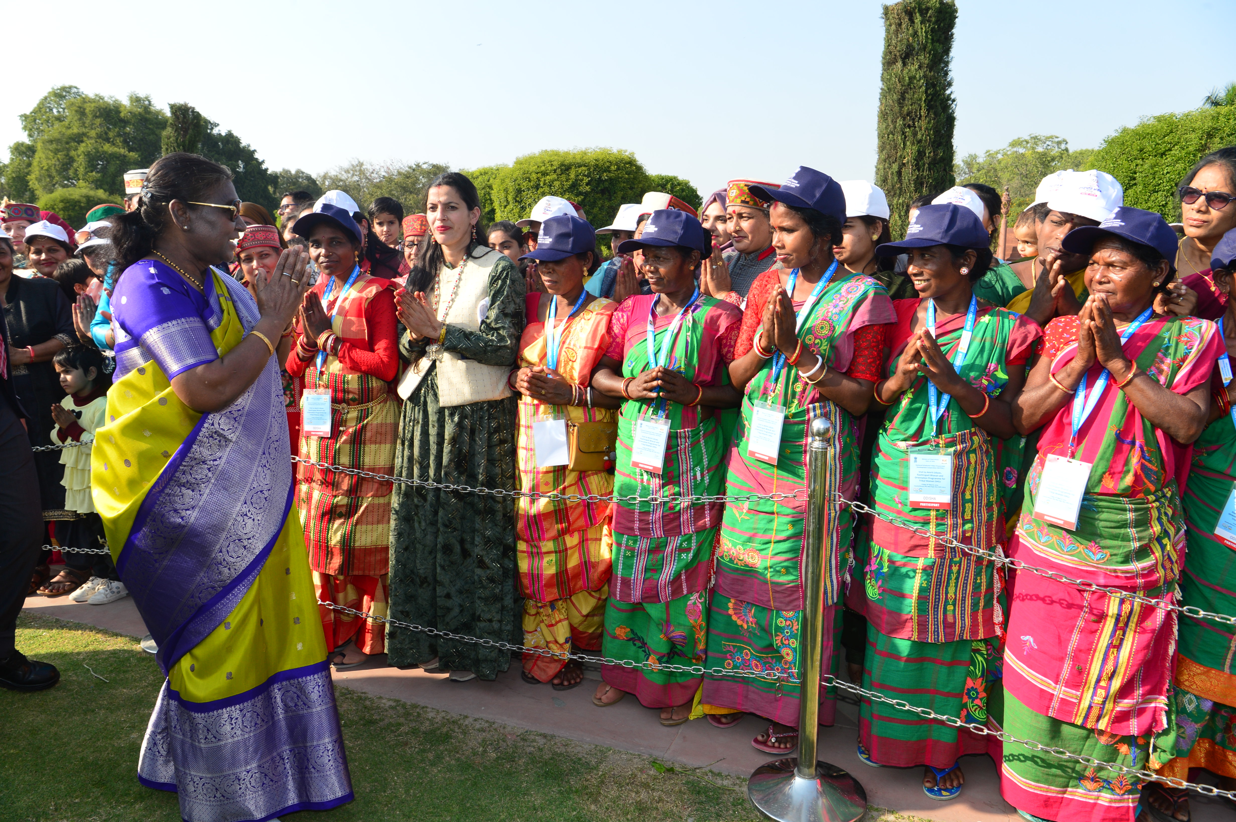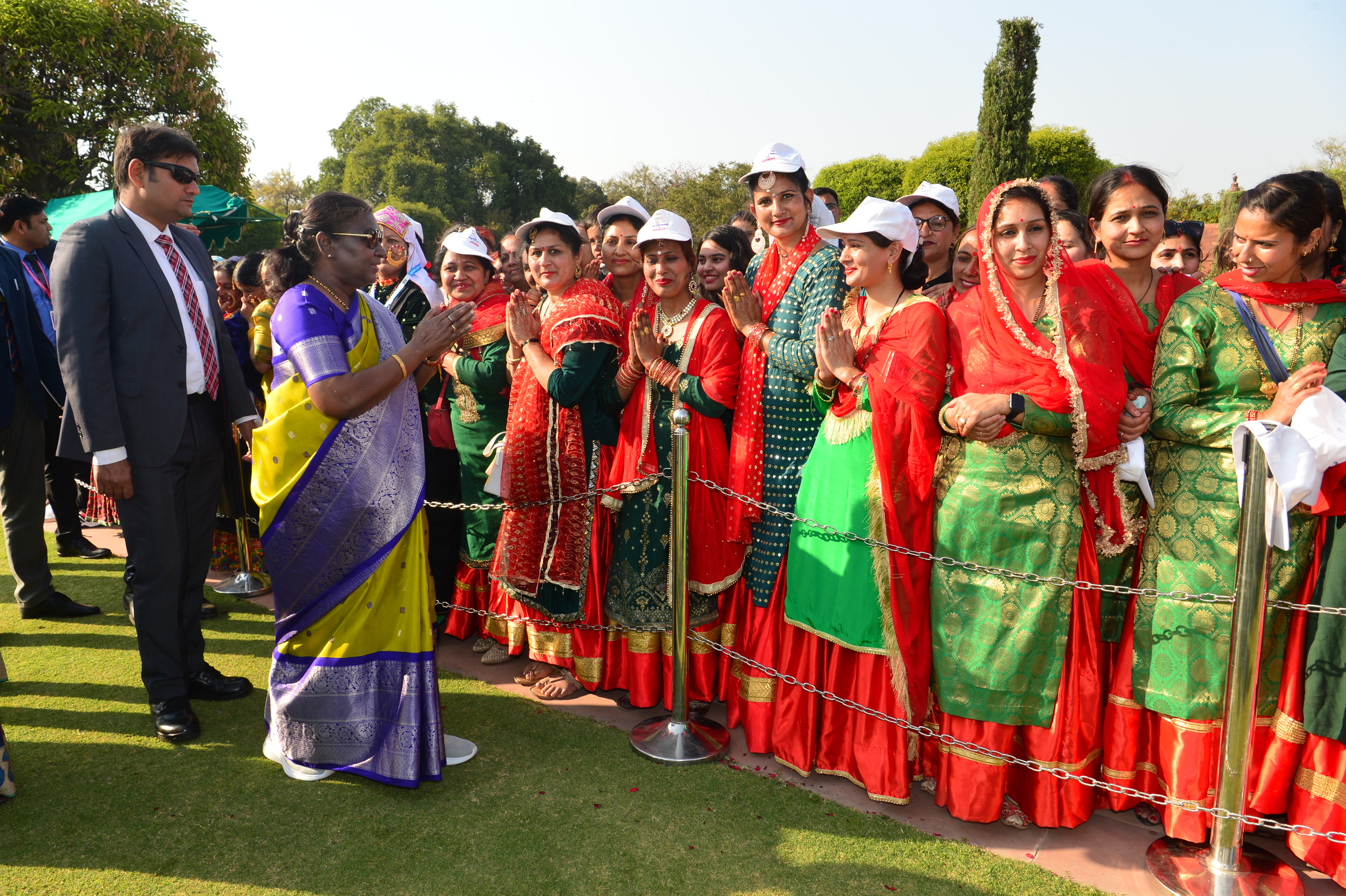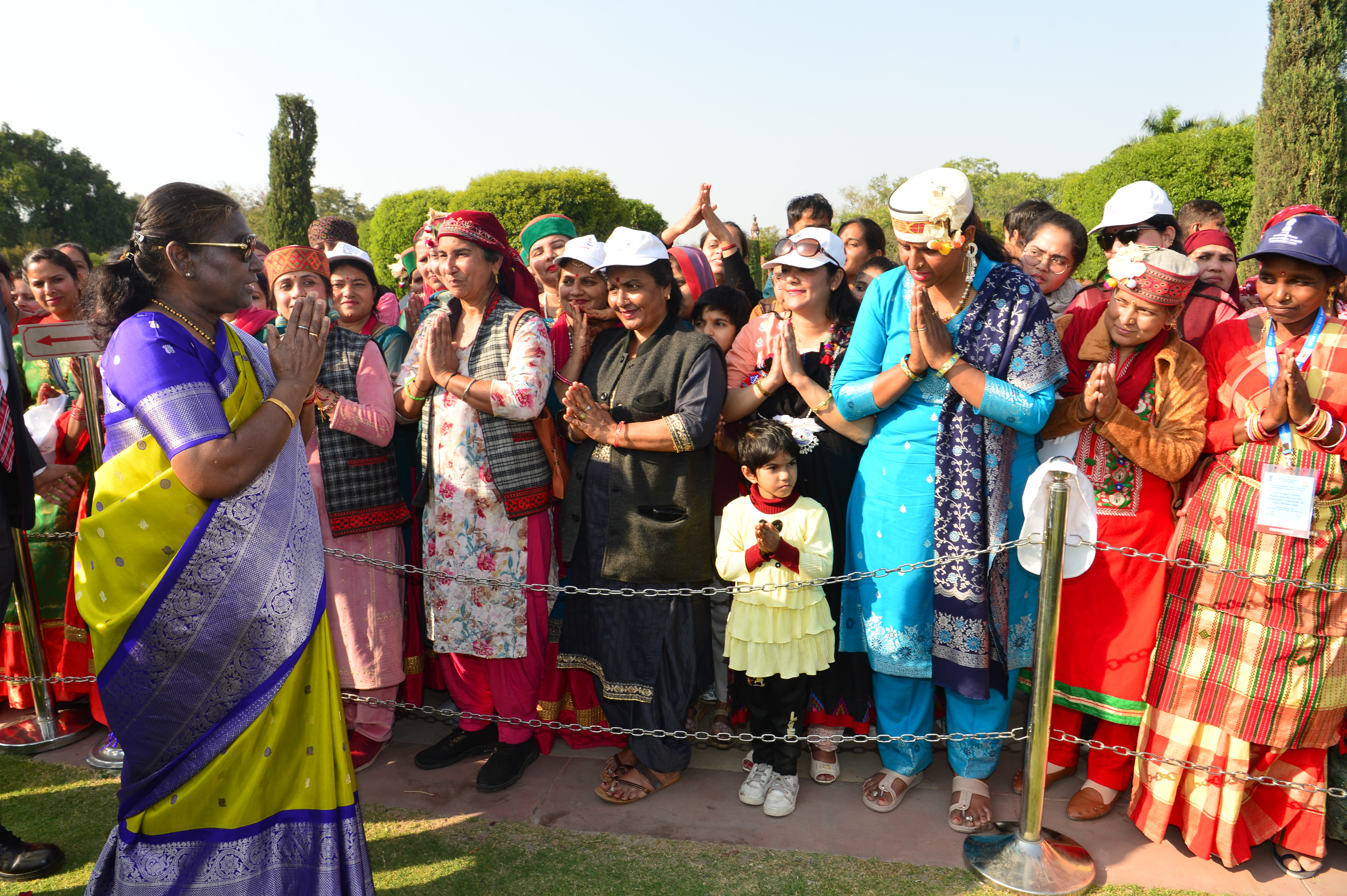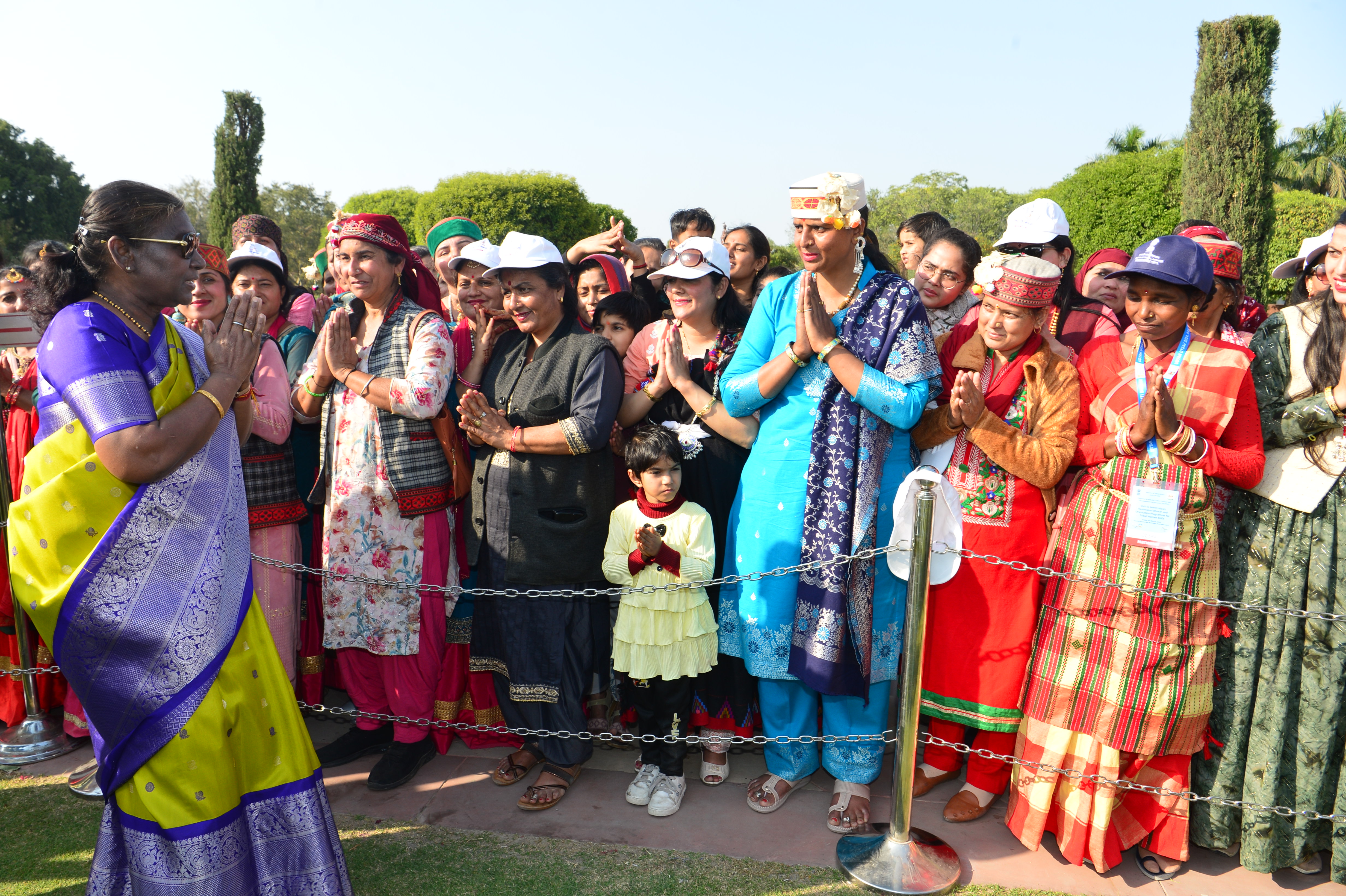 | Caption: | The President of India, Smt Droupadi Murmu met women visiting Amrit Udyan on the day reserved for the special category of Women Tribal Women SHGs-II 08-03-2024 |