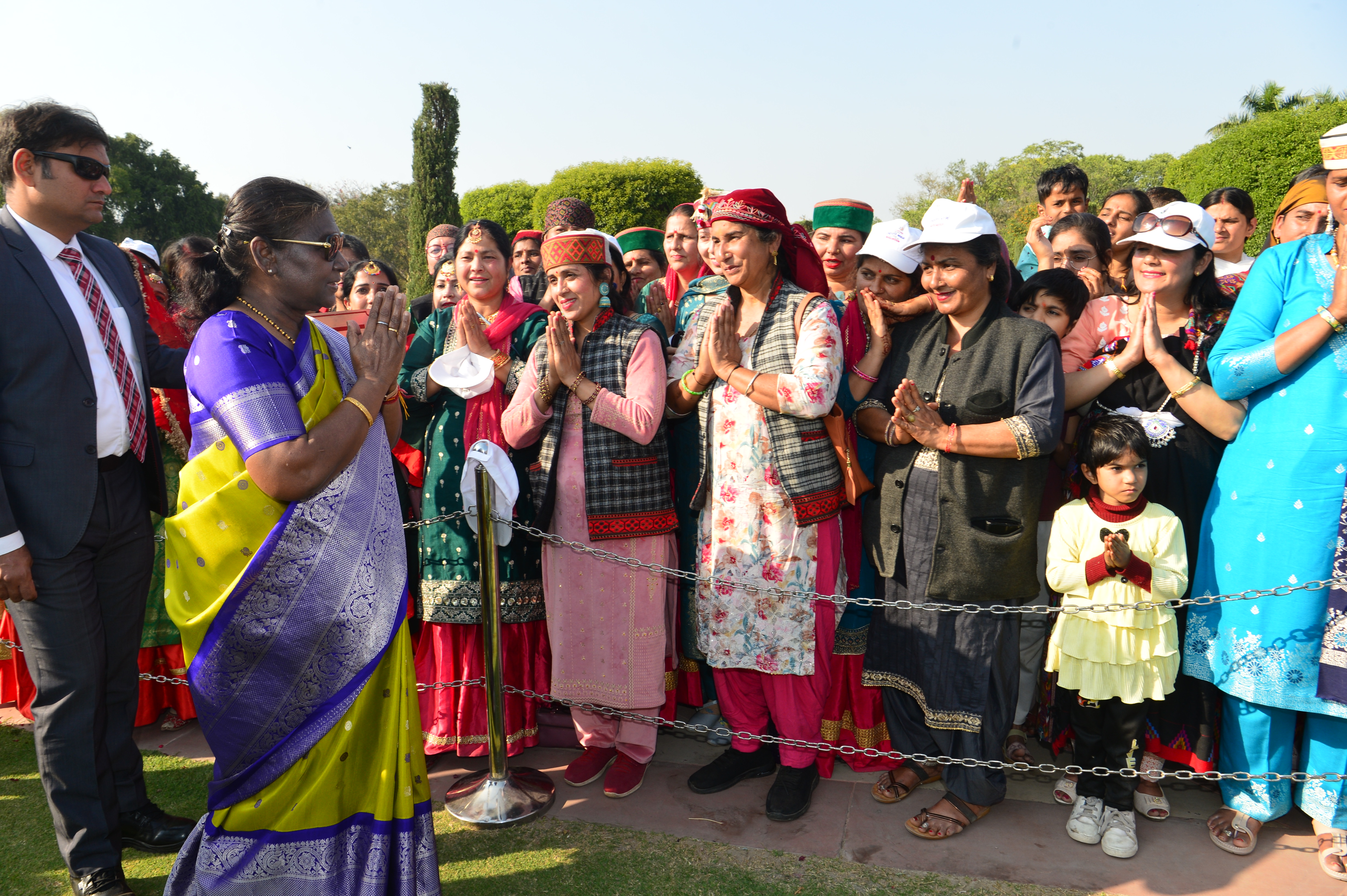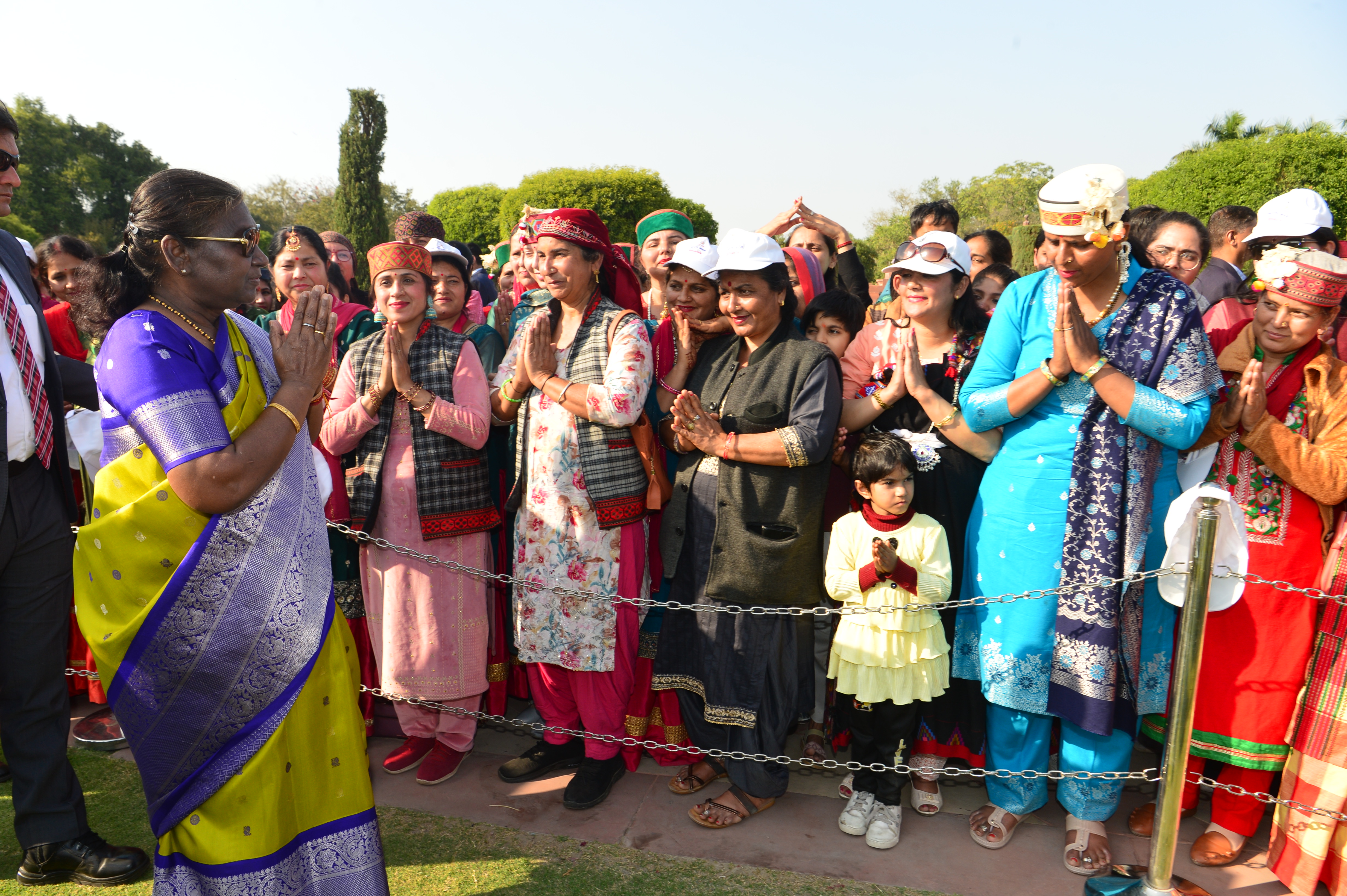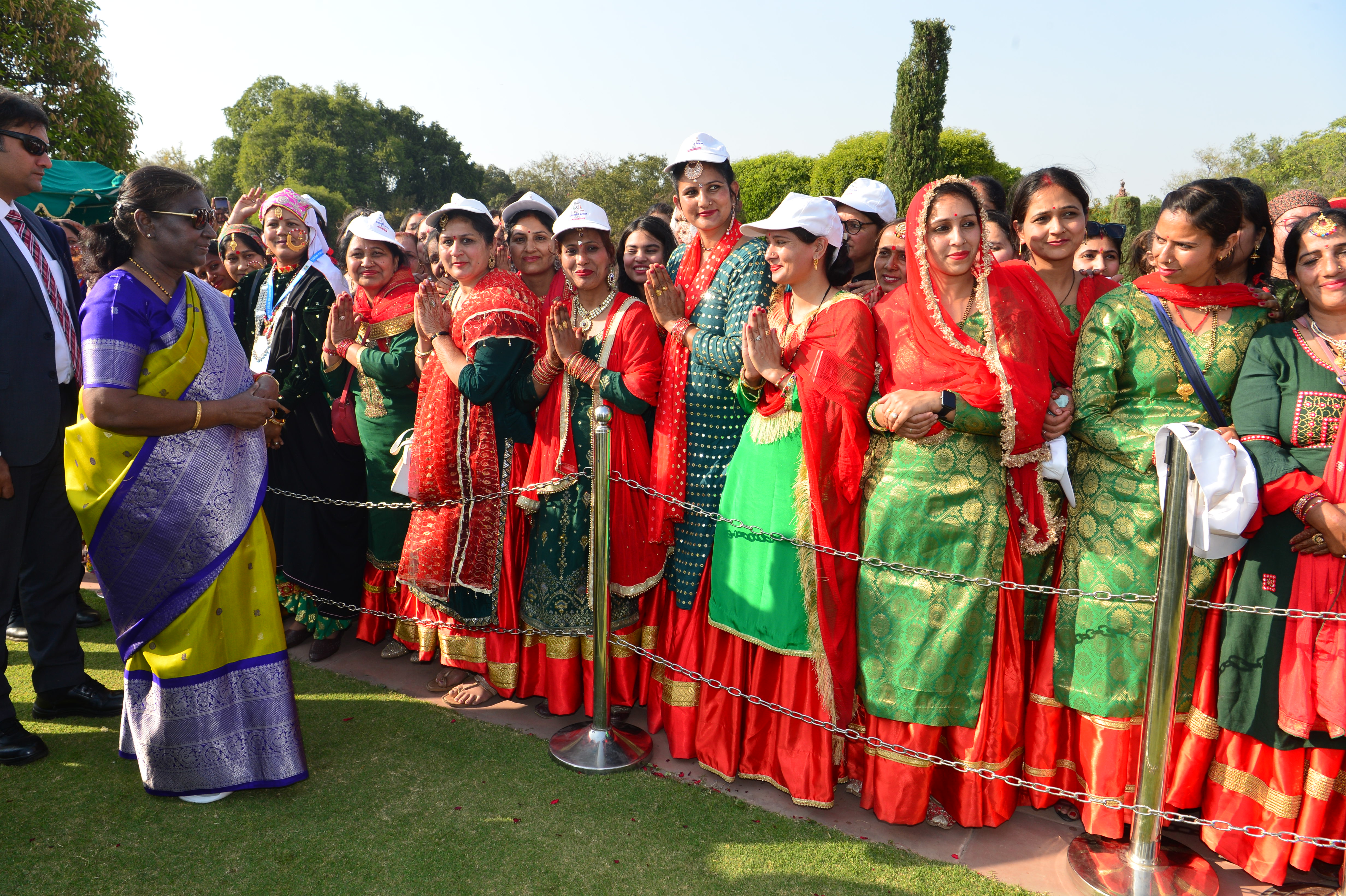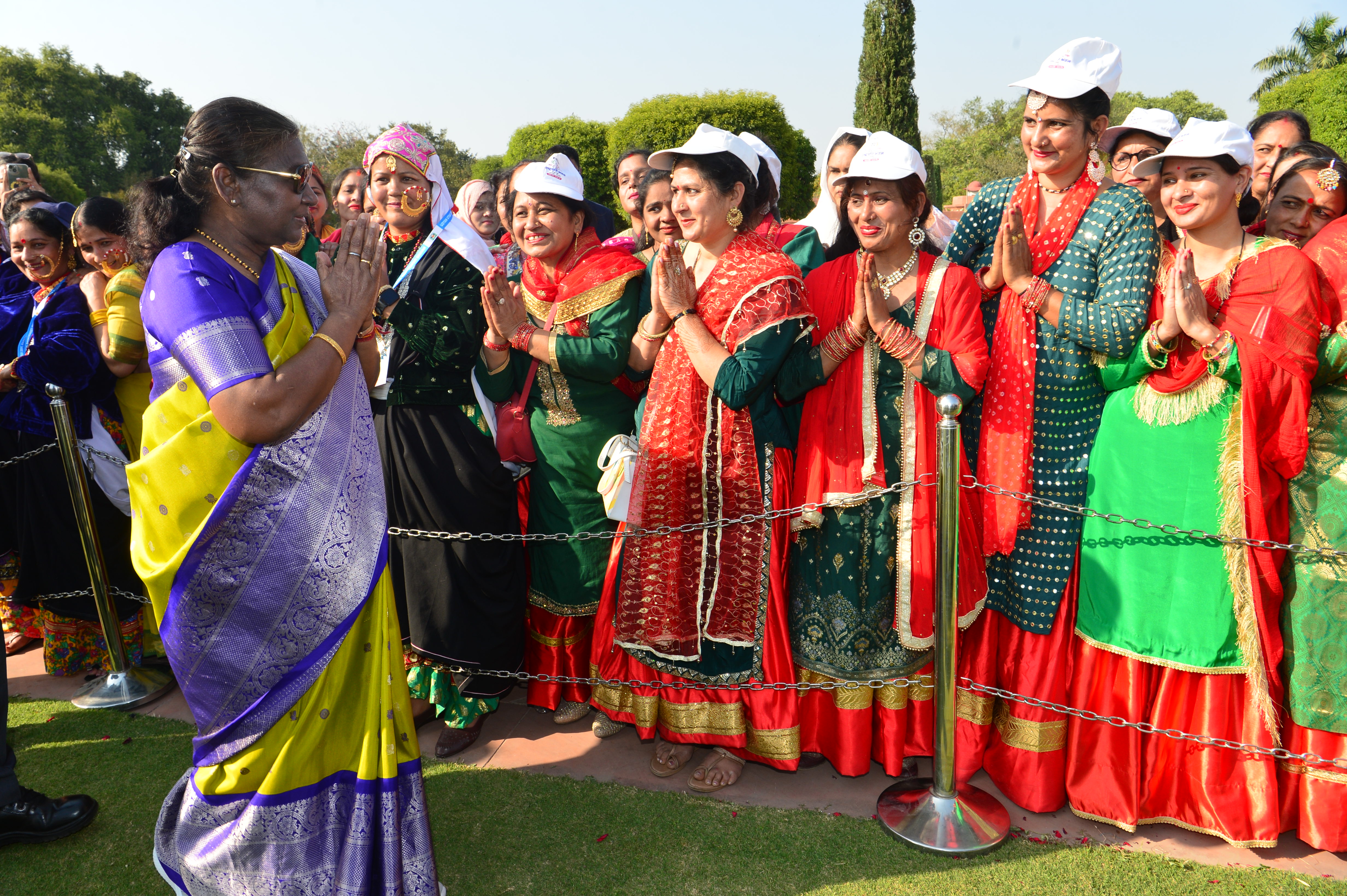 | Caption: | The President of India, Smt Droupadi Murmu met women visiting Amrit Udyan on the day reserved for the special category of Women Tribal Women SHGs-II 08-03-2024 |