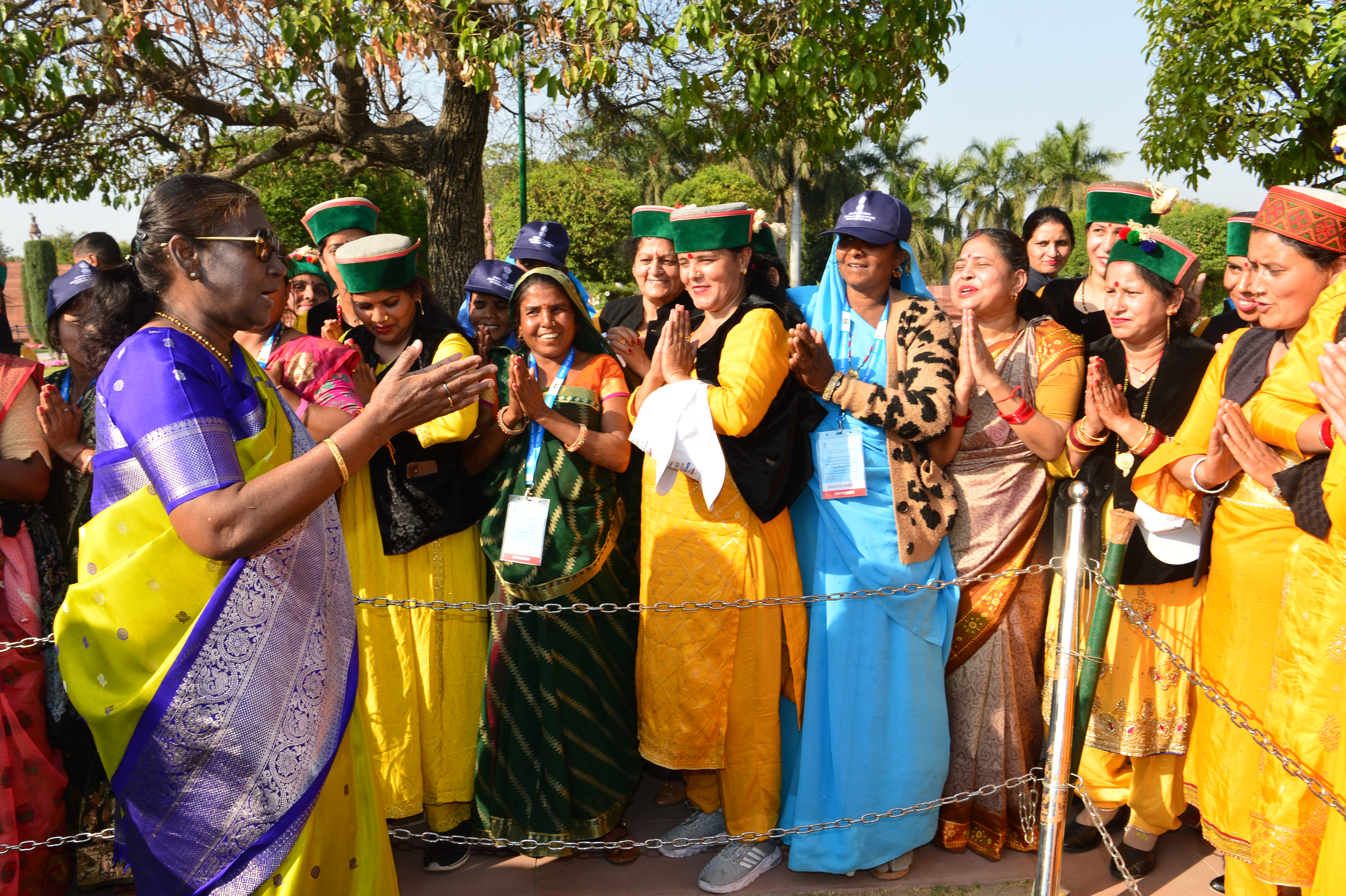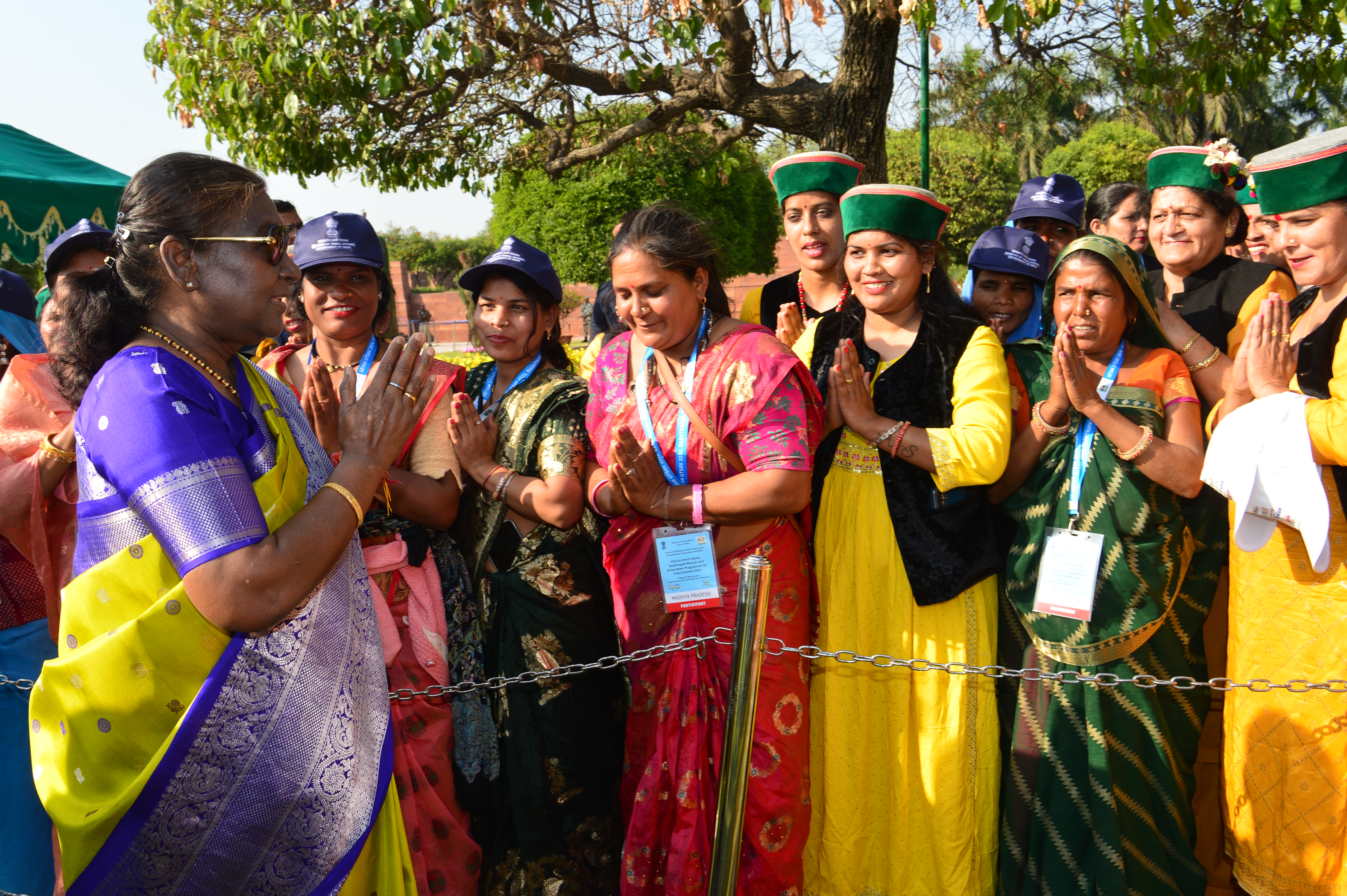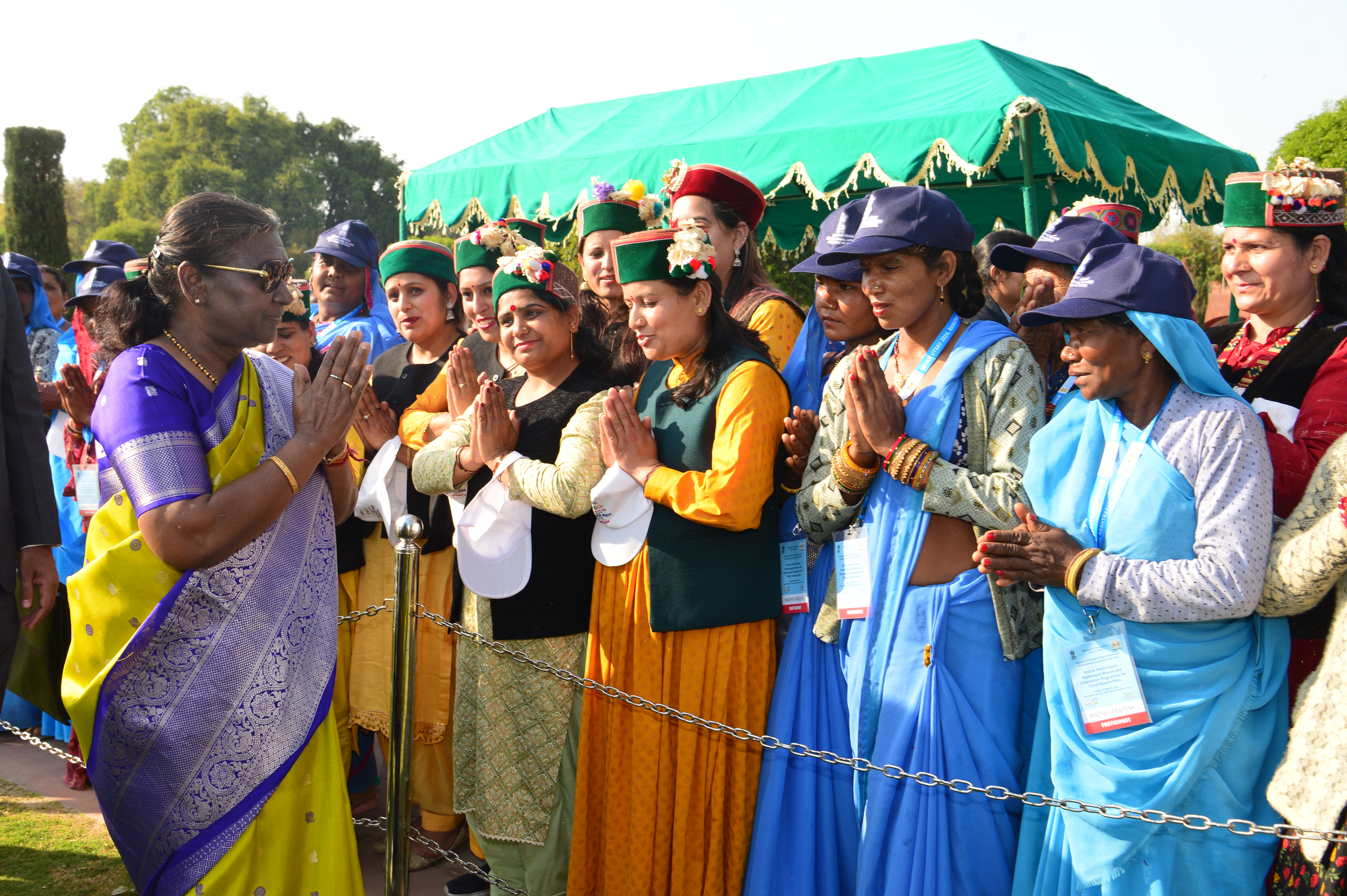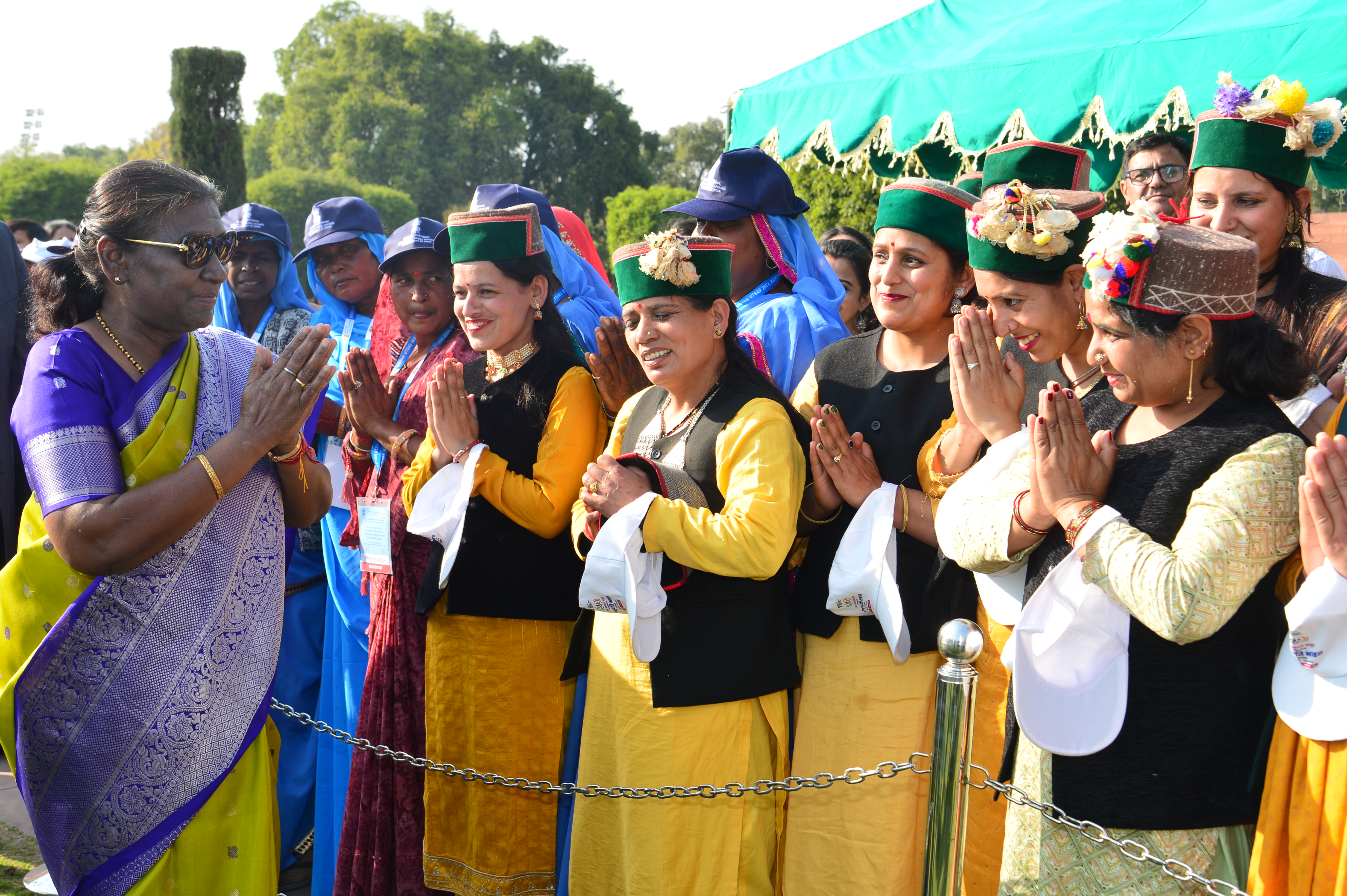 | Caption: | The President of India, Smt Droupadi Murmu met women visiting Amrit Udyan on the day reserved for the special category of Women Tribal Women SHGs-II 08-03-2024 |