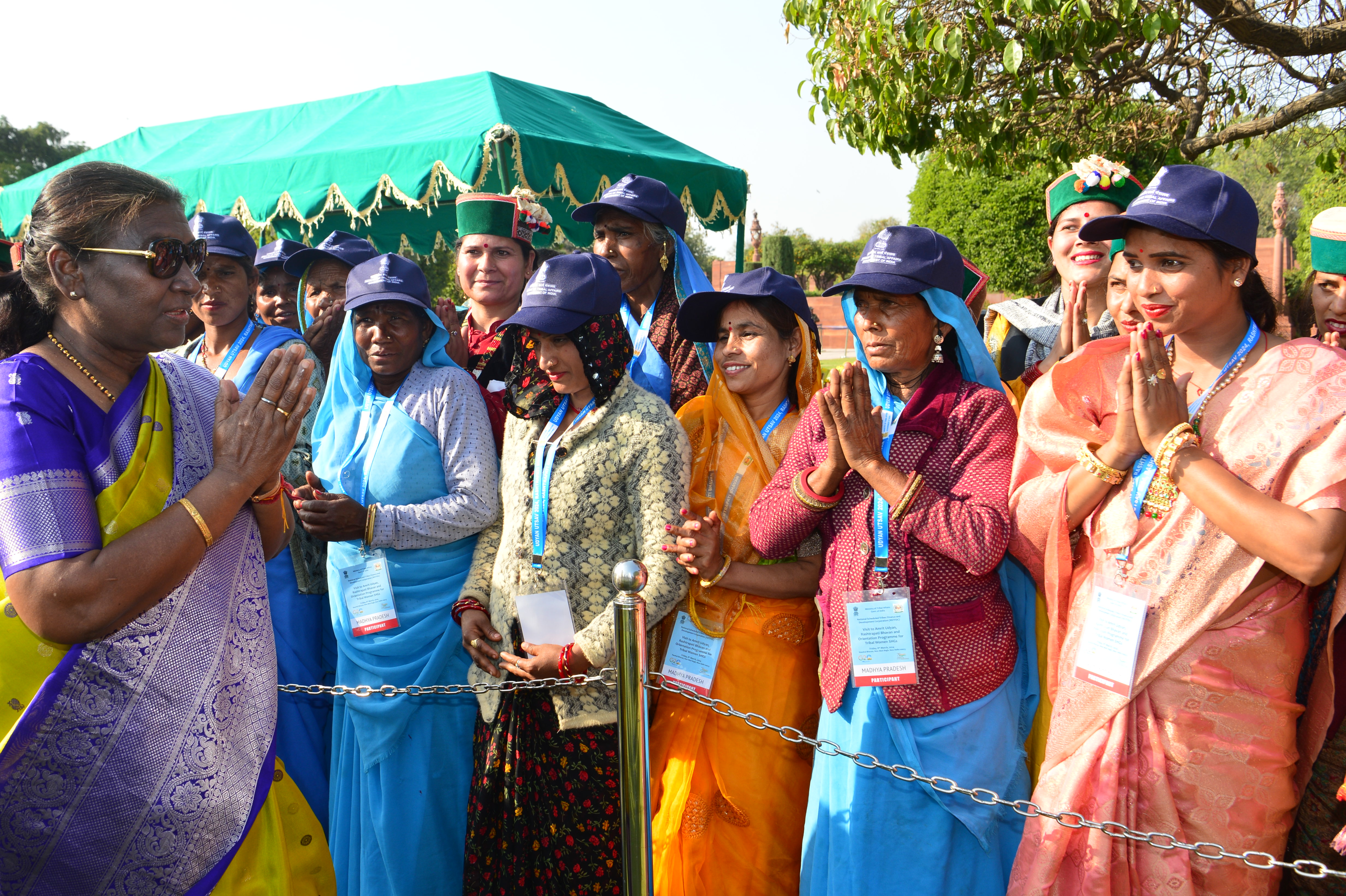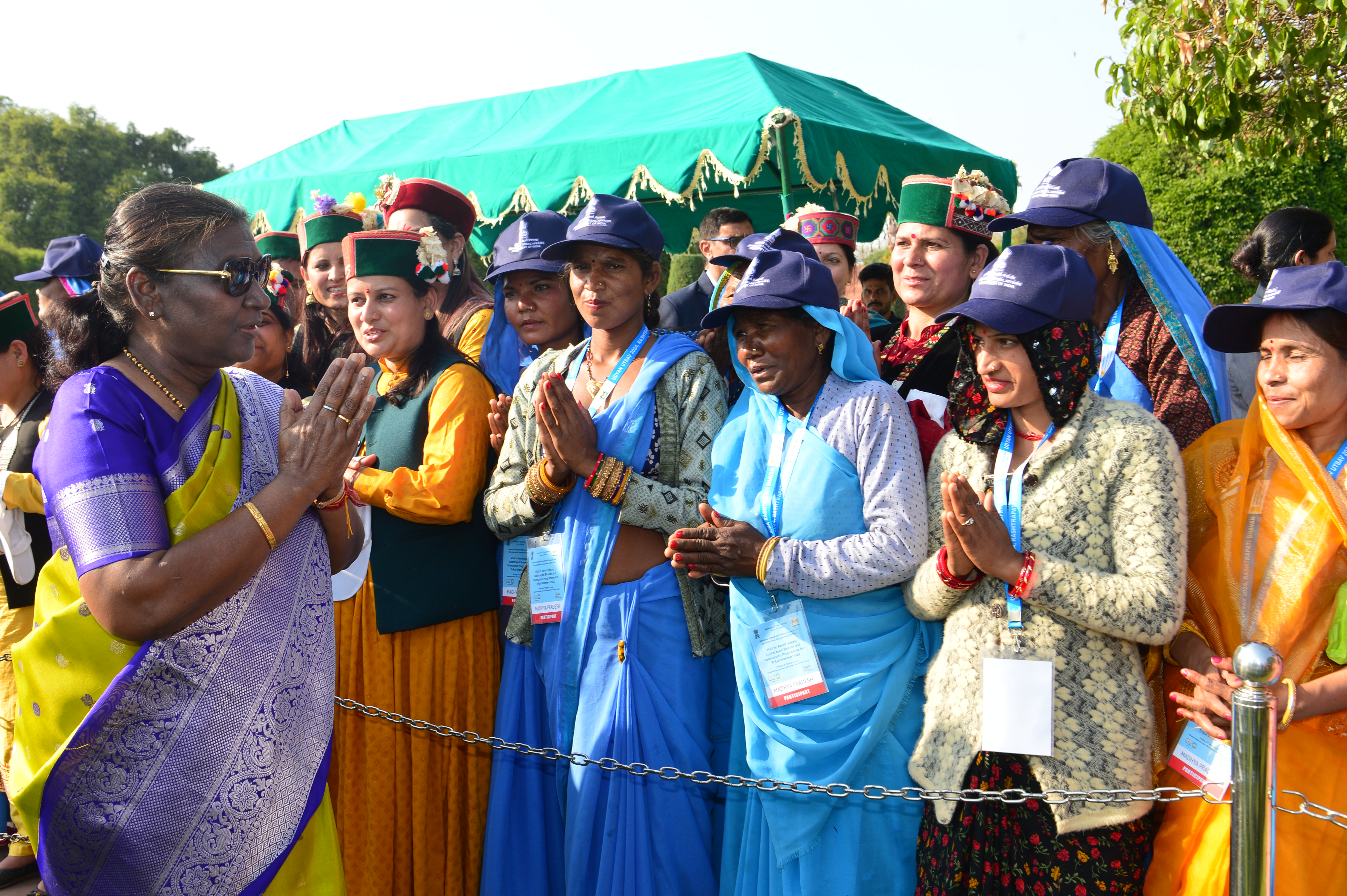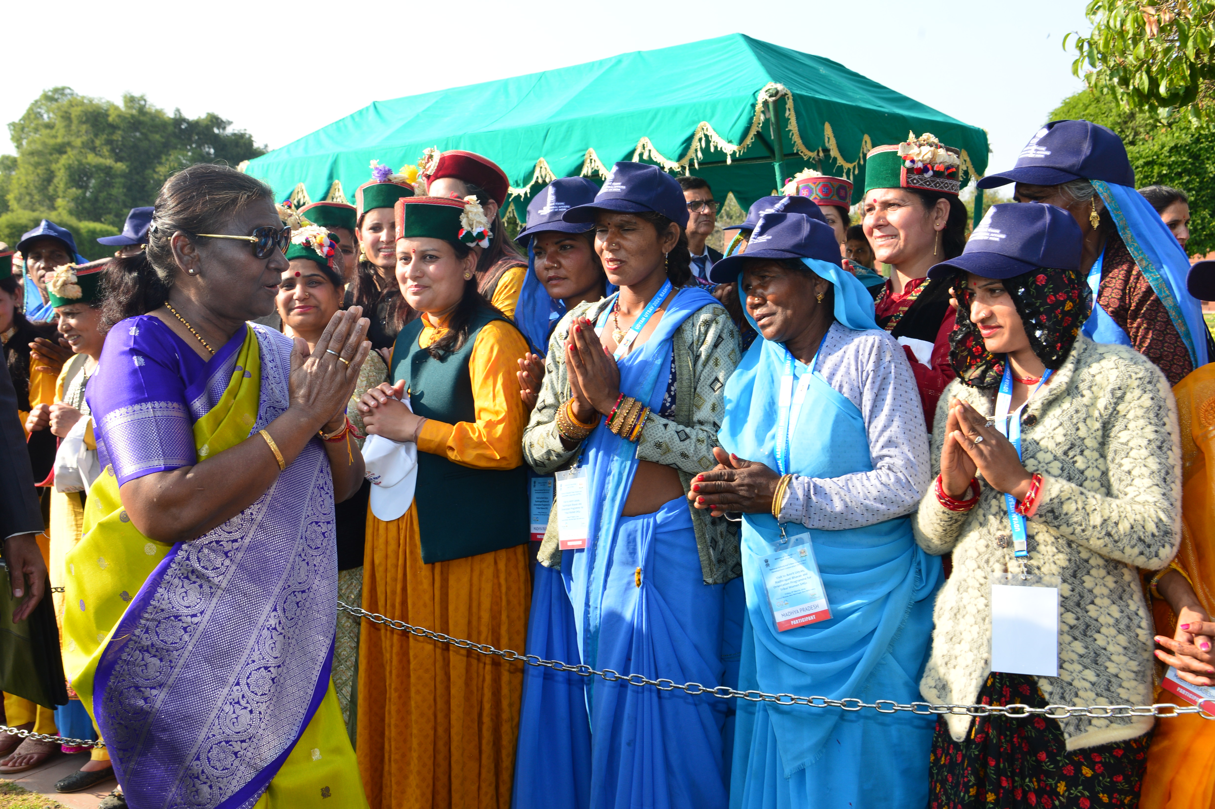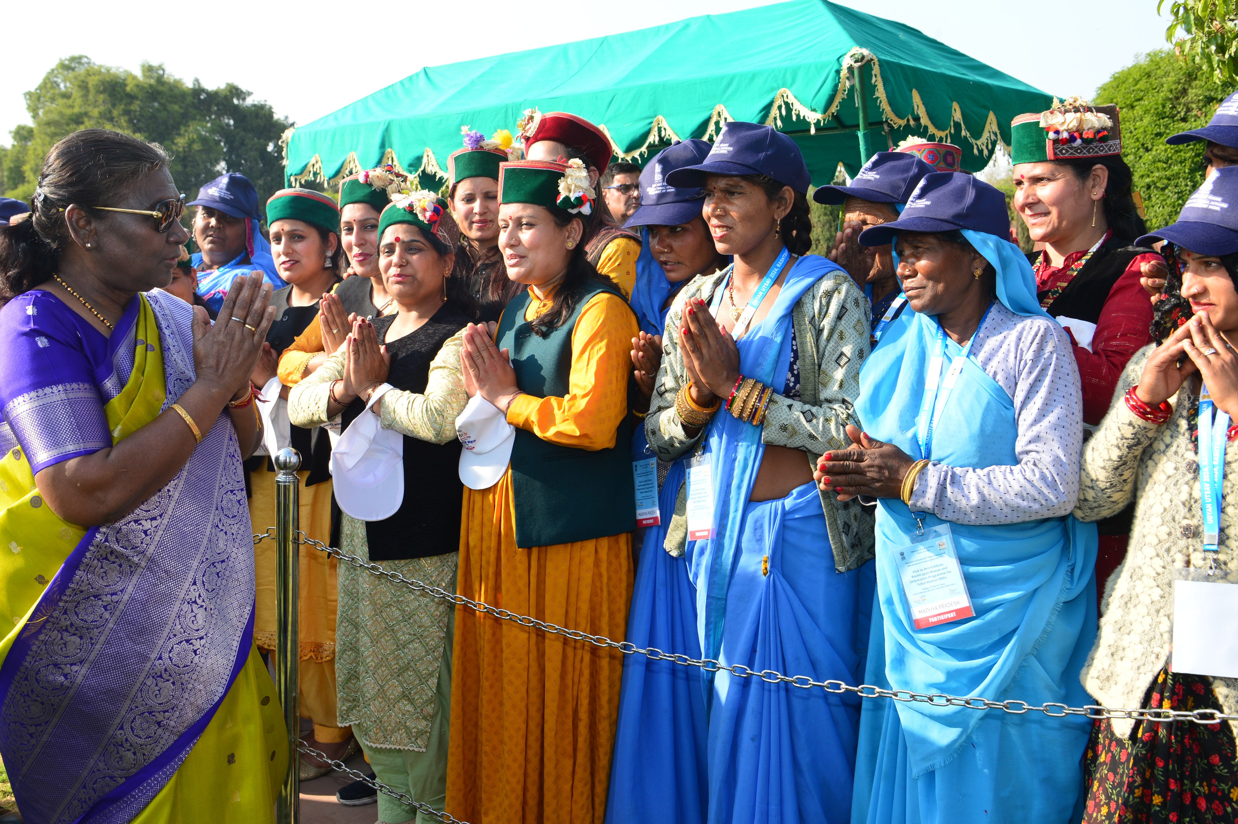 | Caption: | The President of India, Smt Droupadi Murmu met women visiting Amrit Udyan on the day reserved for the special category of Women Tribal Women SHGs-II 08-03-2024 |