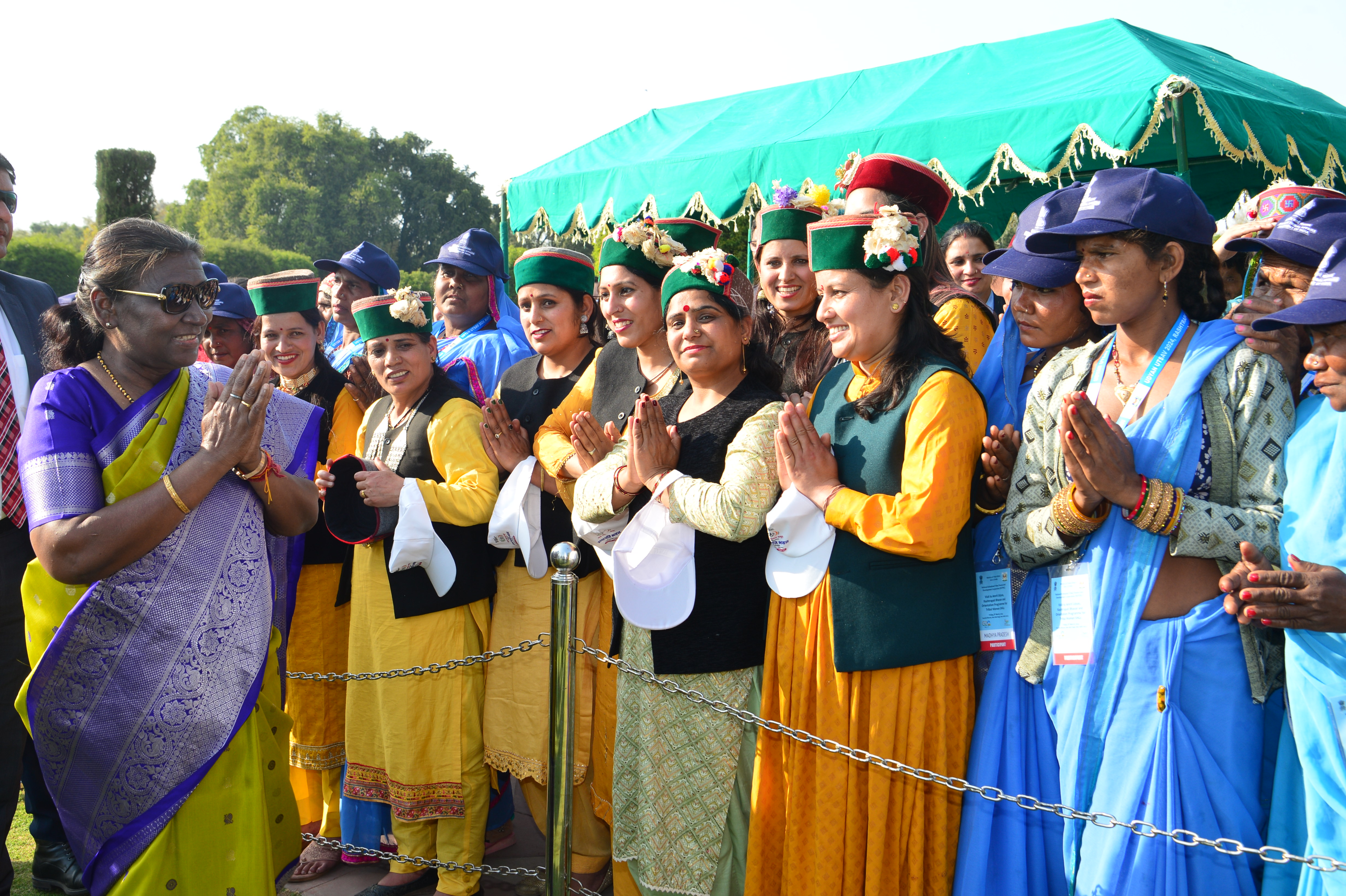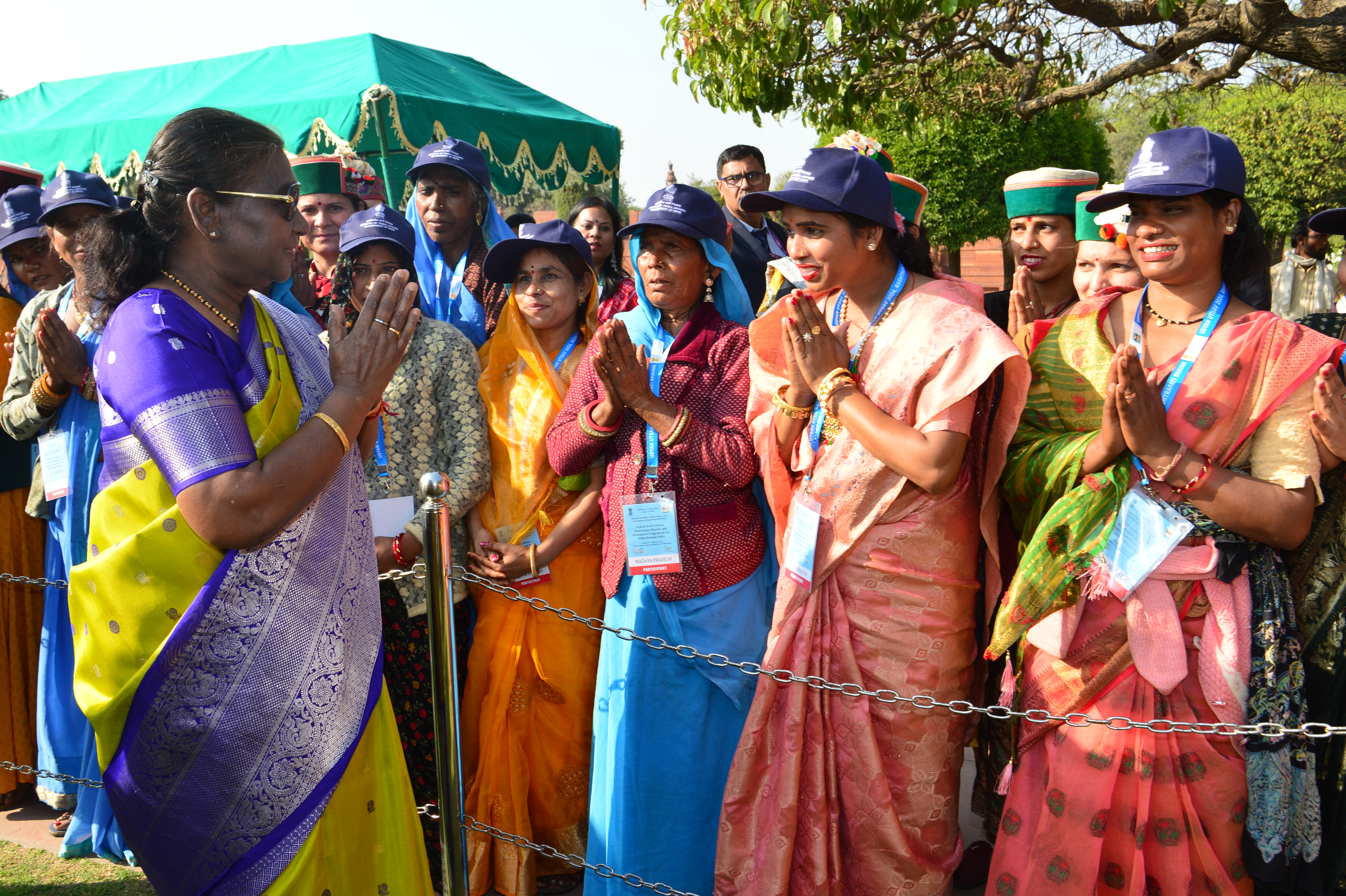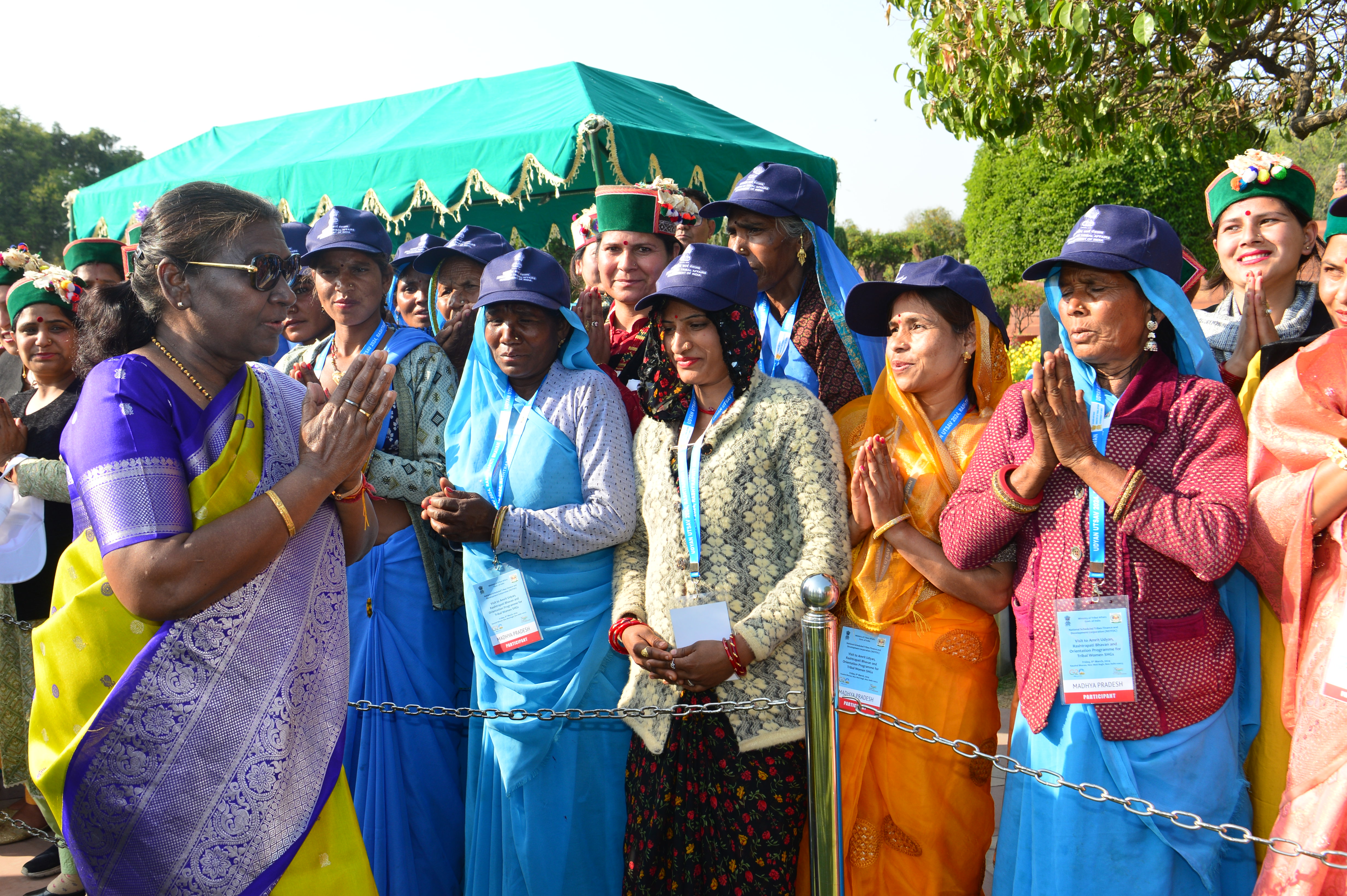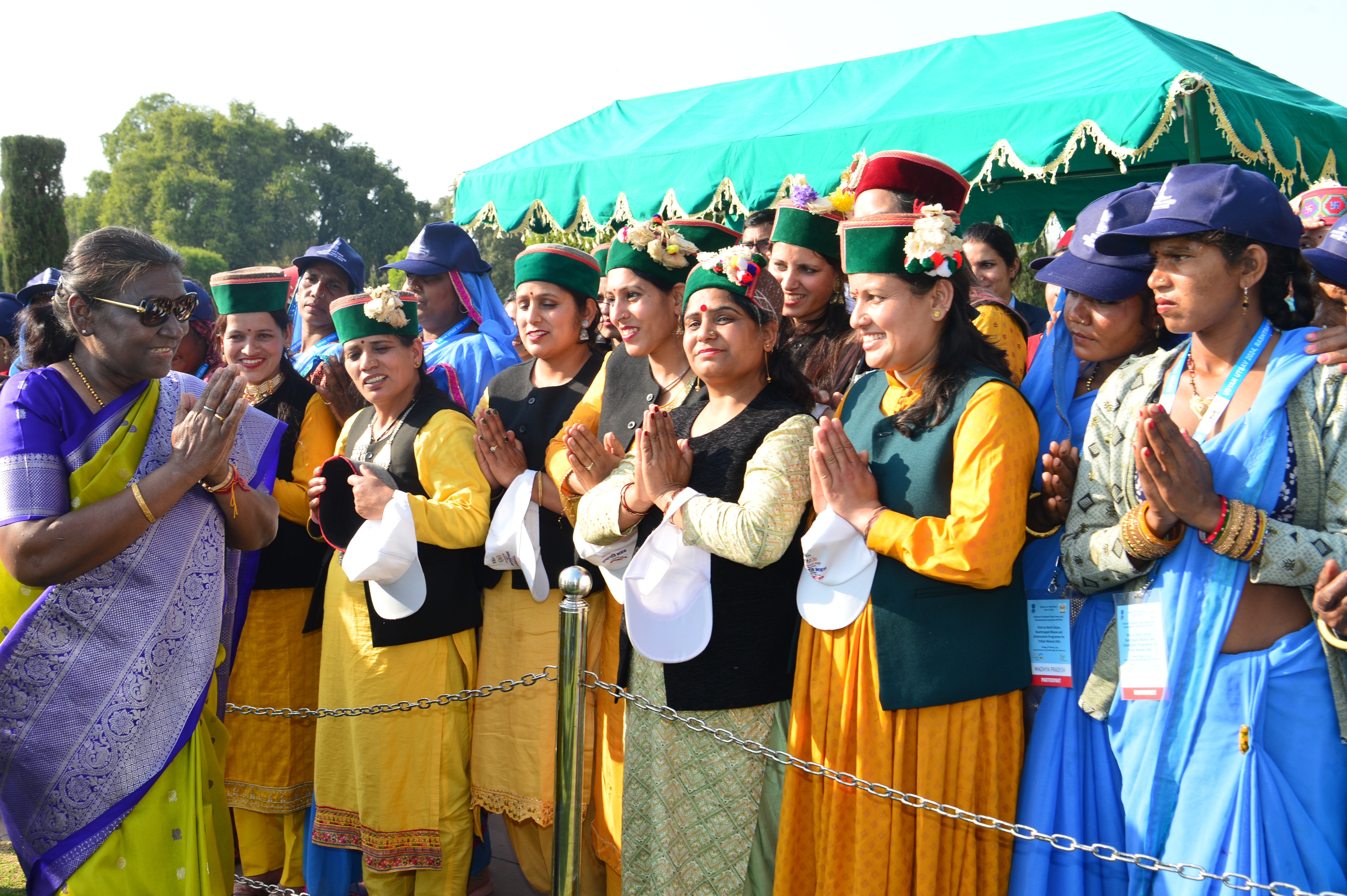 | Caption: | The President of India, Smt Droupadi Murmu met women visiting Amrit Udyan on the day reserved for the special category of Women Tribal Women SHGs-II 08-03-2024 |