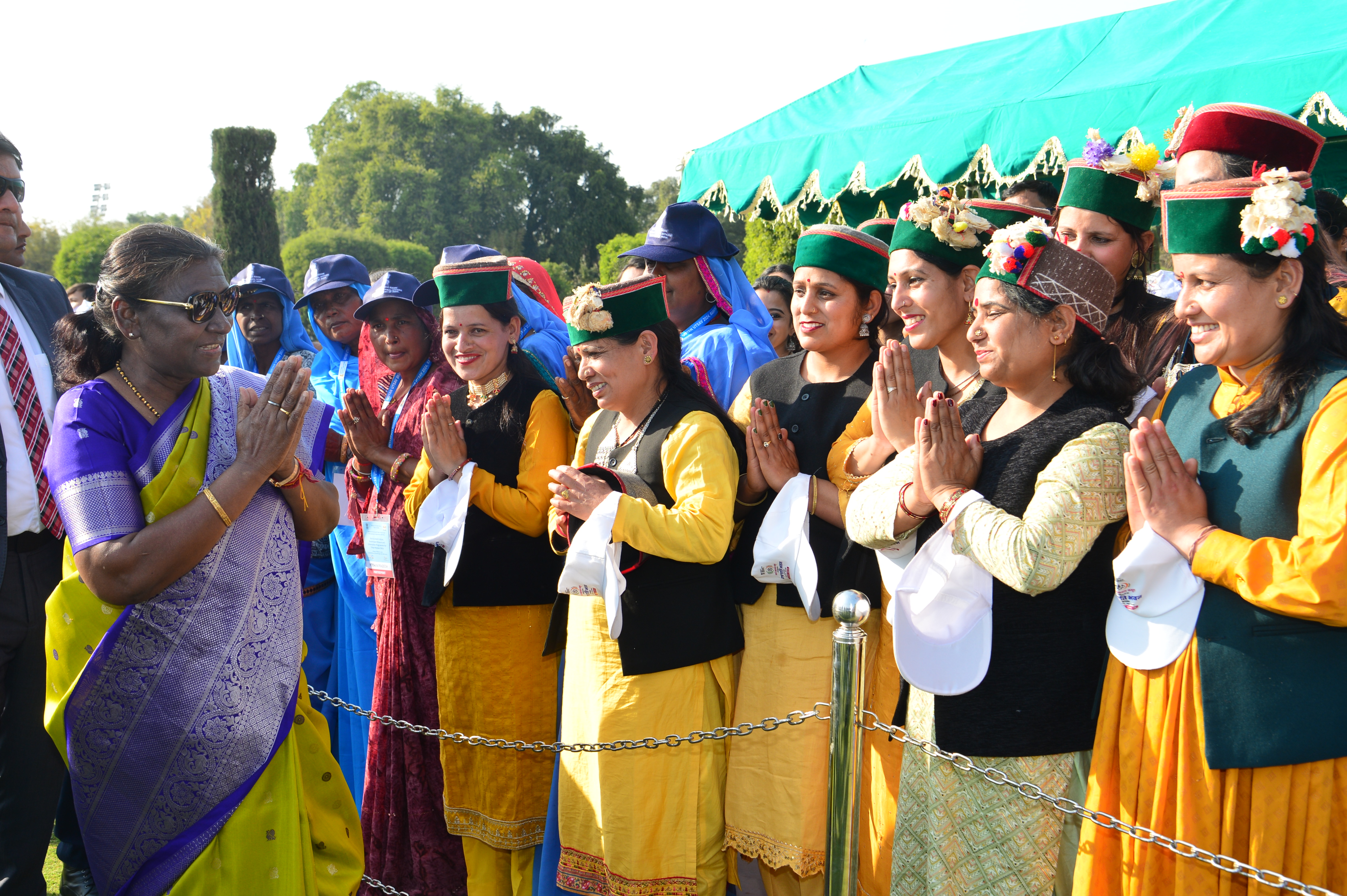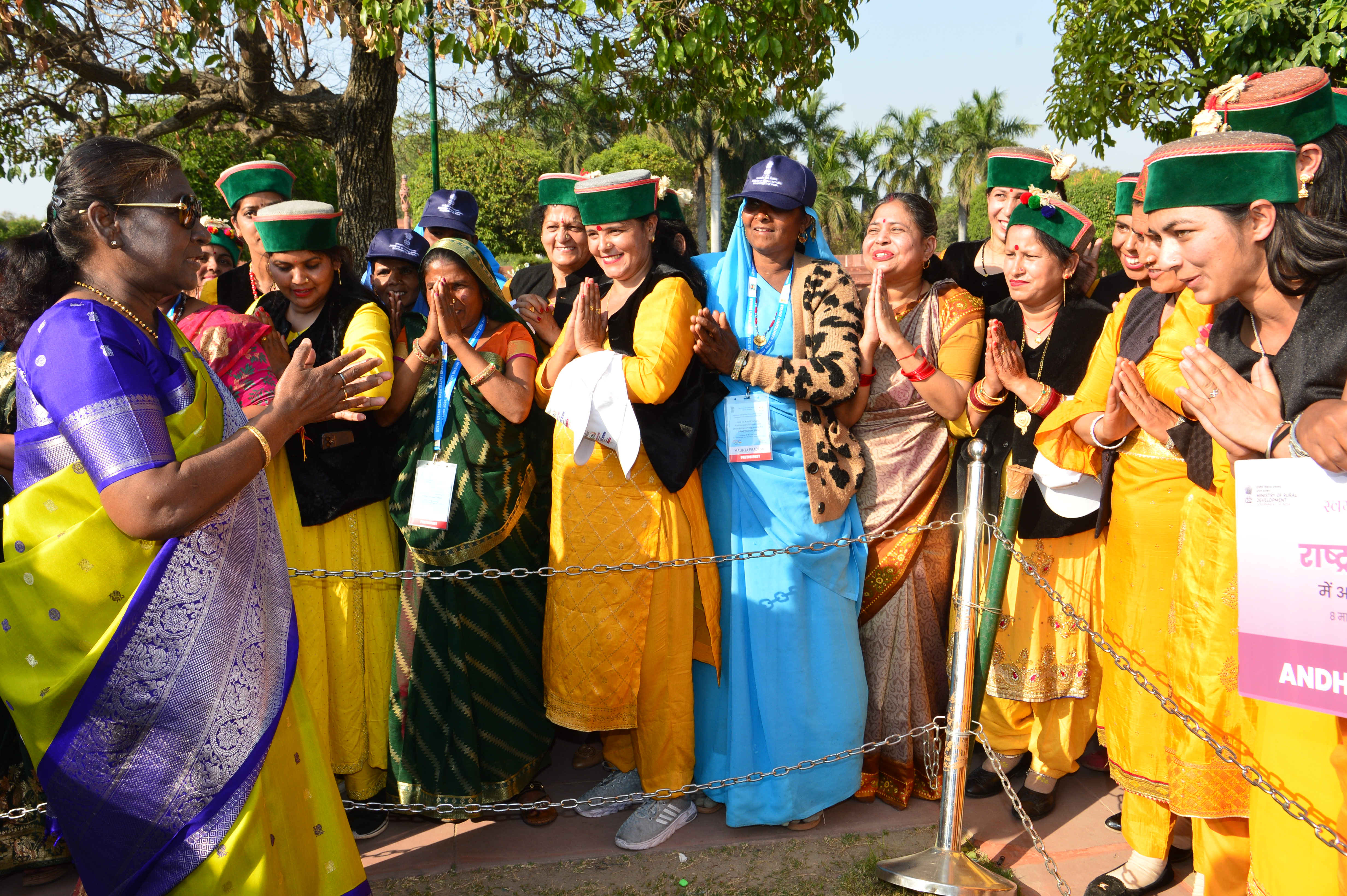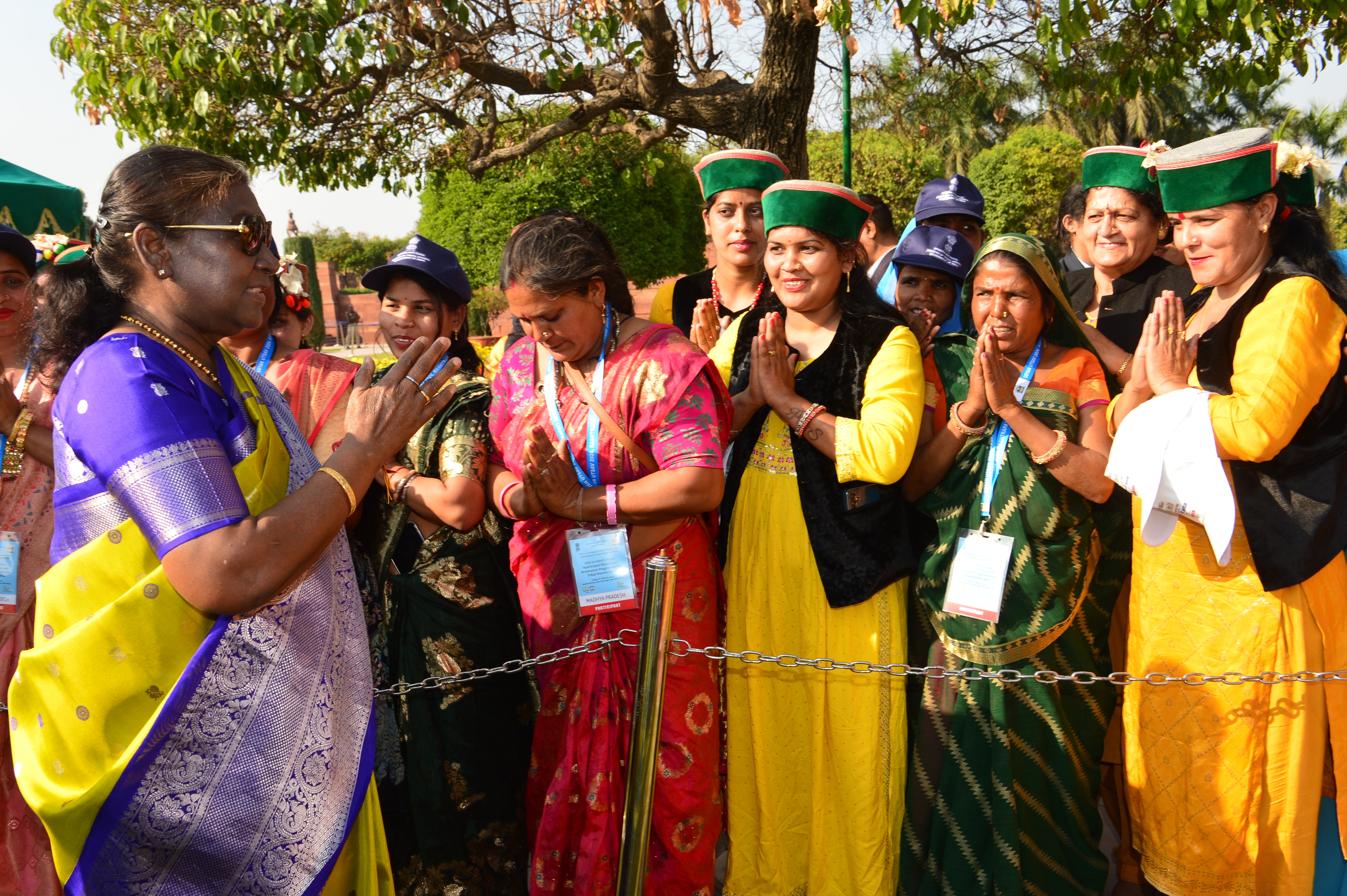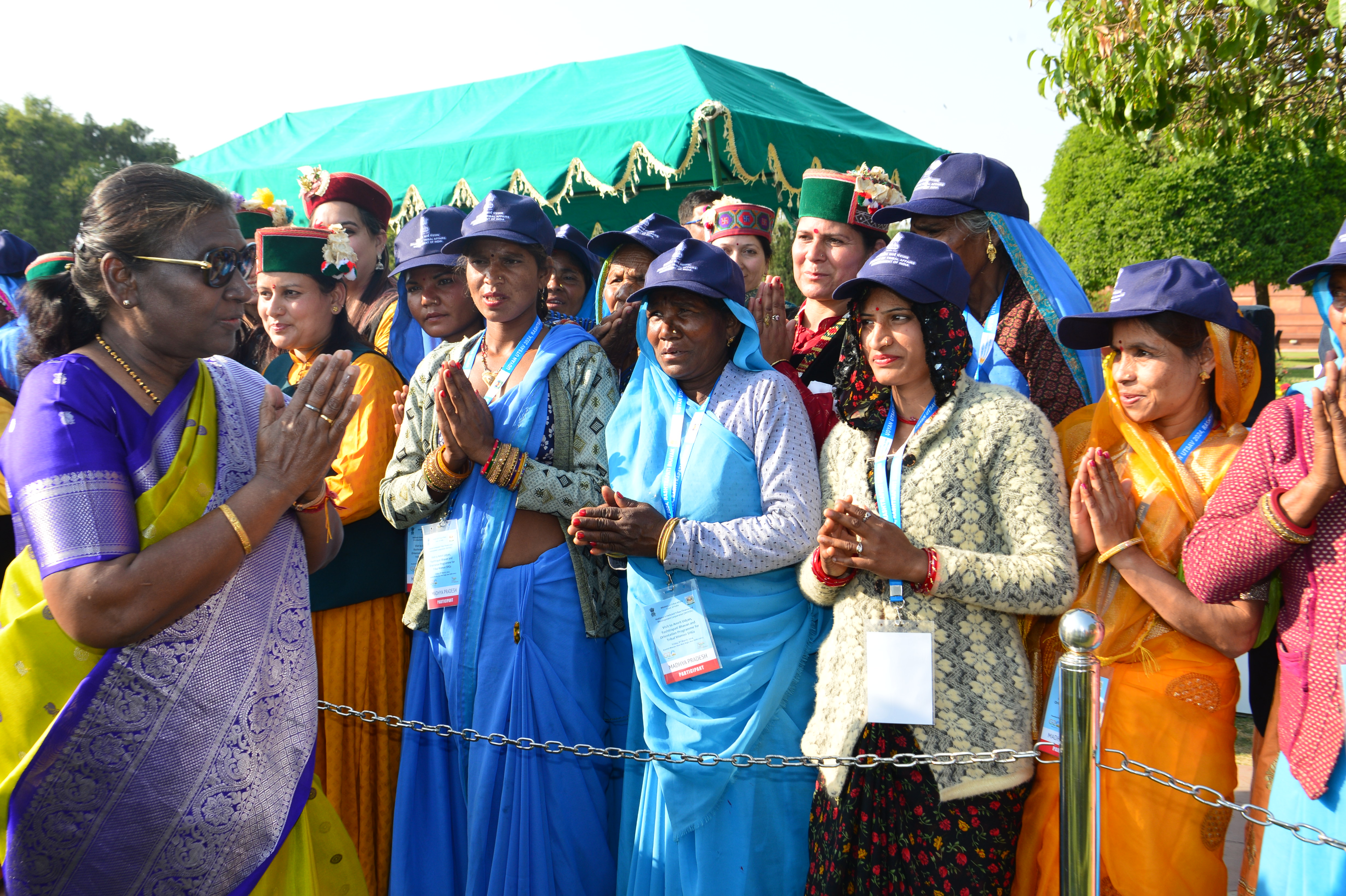 | Caption: | The President of India, Smt Droupadi Murmu met women visiting Amrit Udyan on the day reserved for the special category of Women Tribal Women SHGs-II 08-03-2024 |