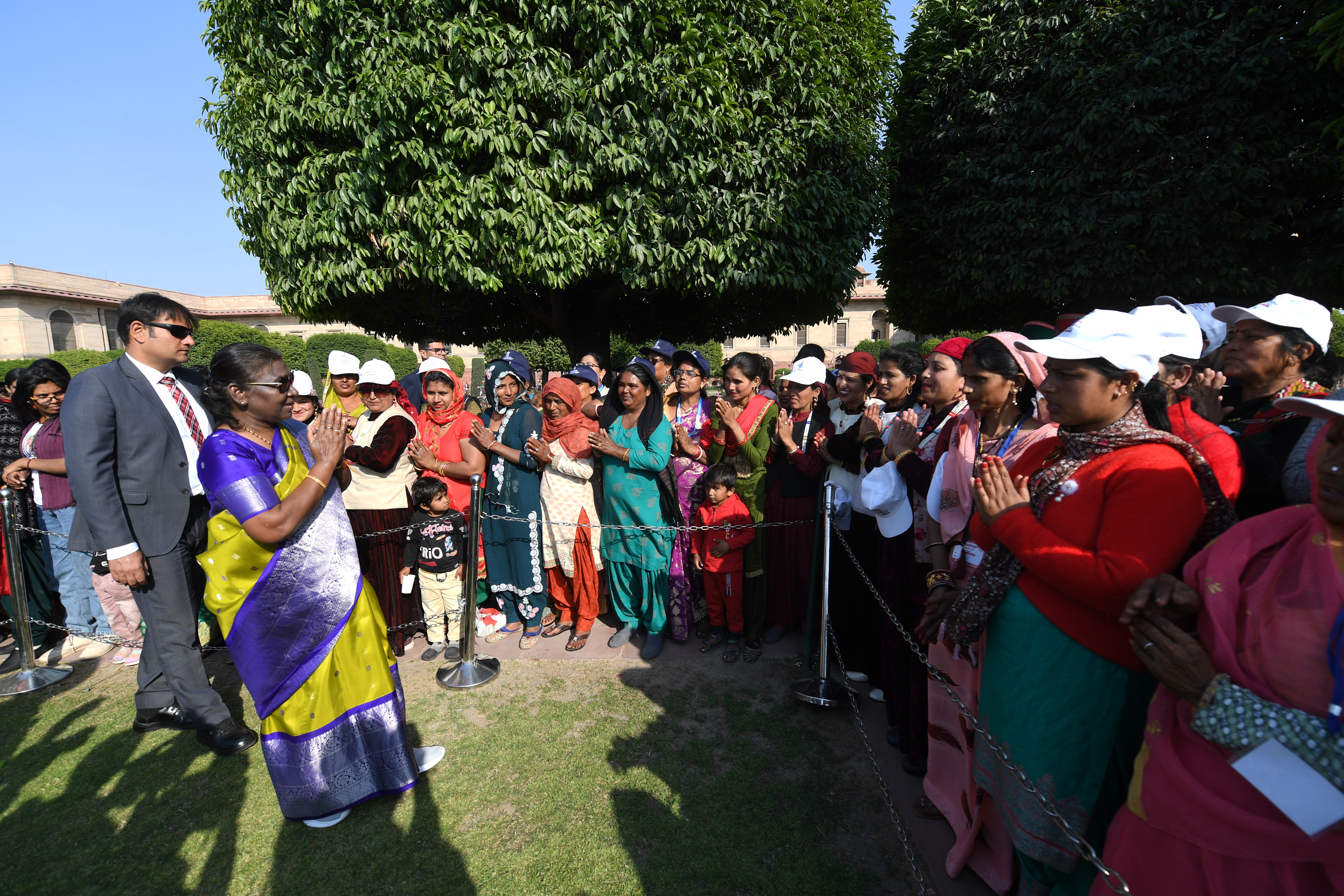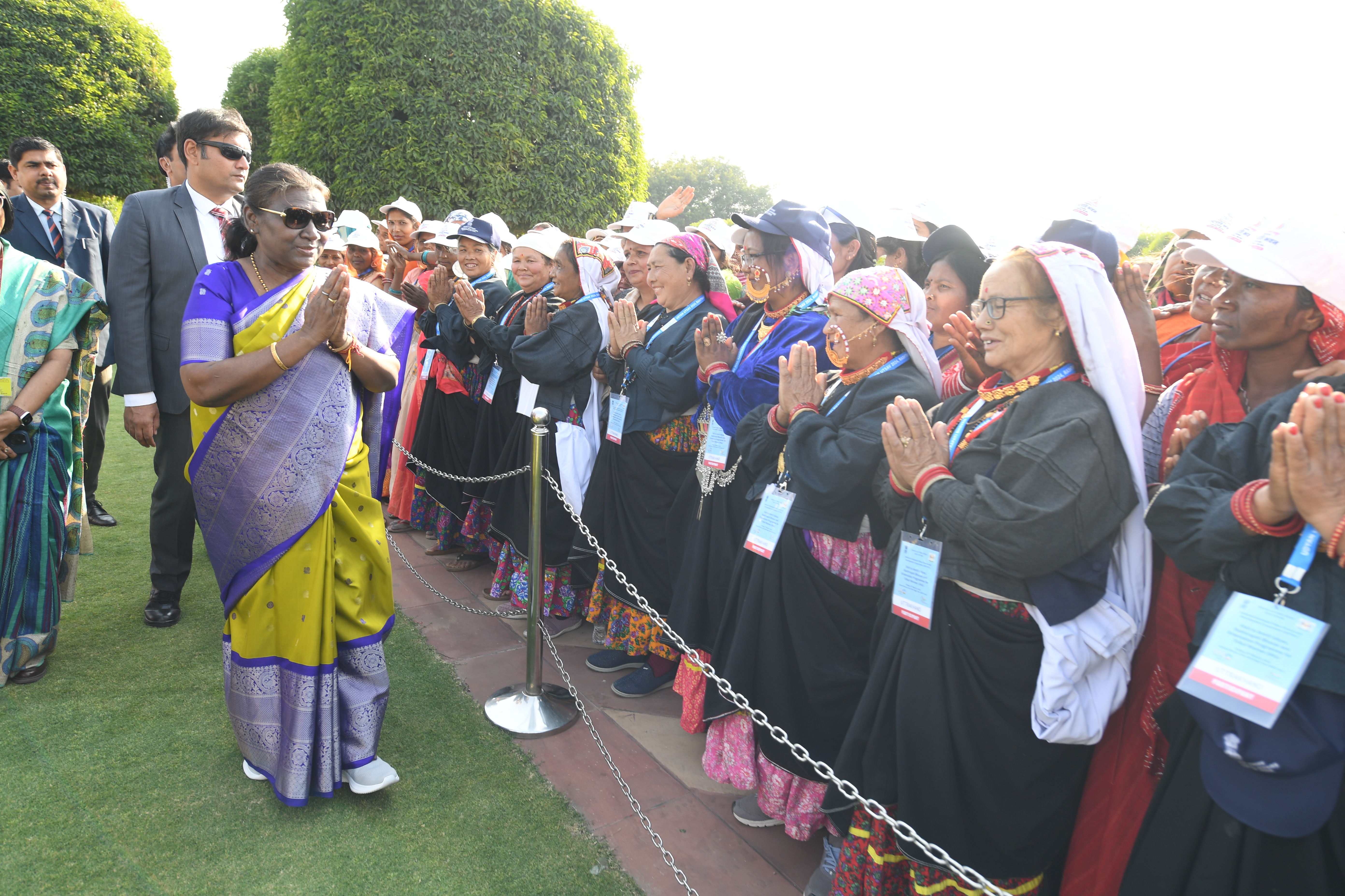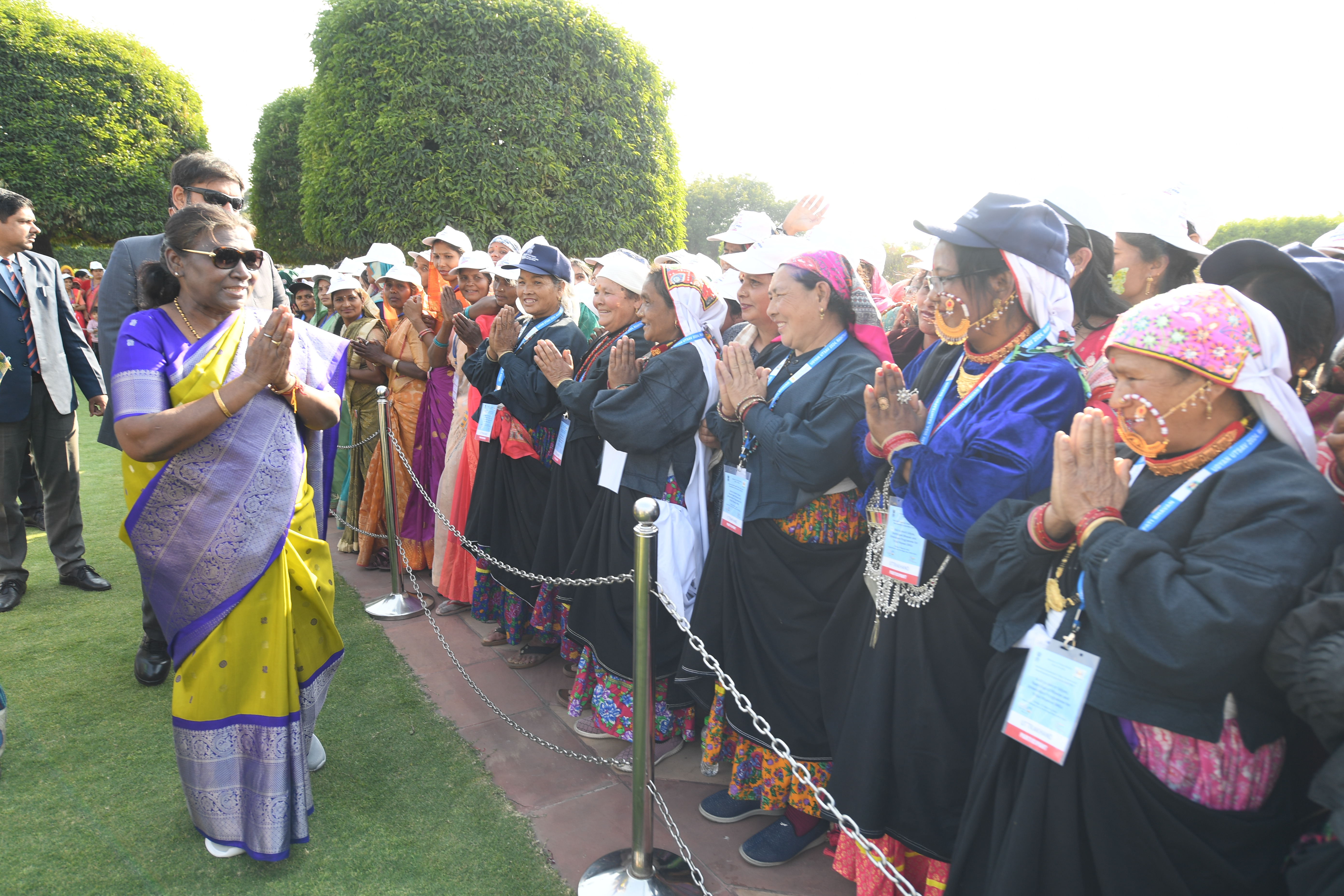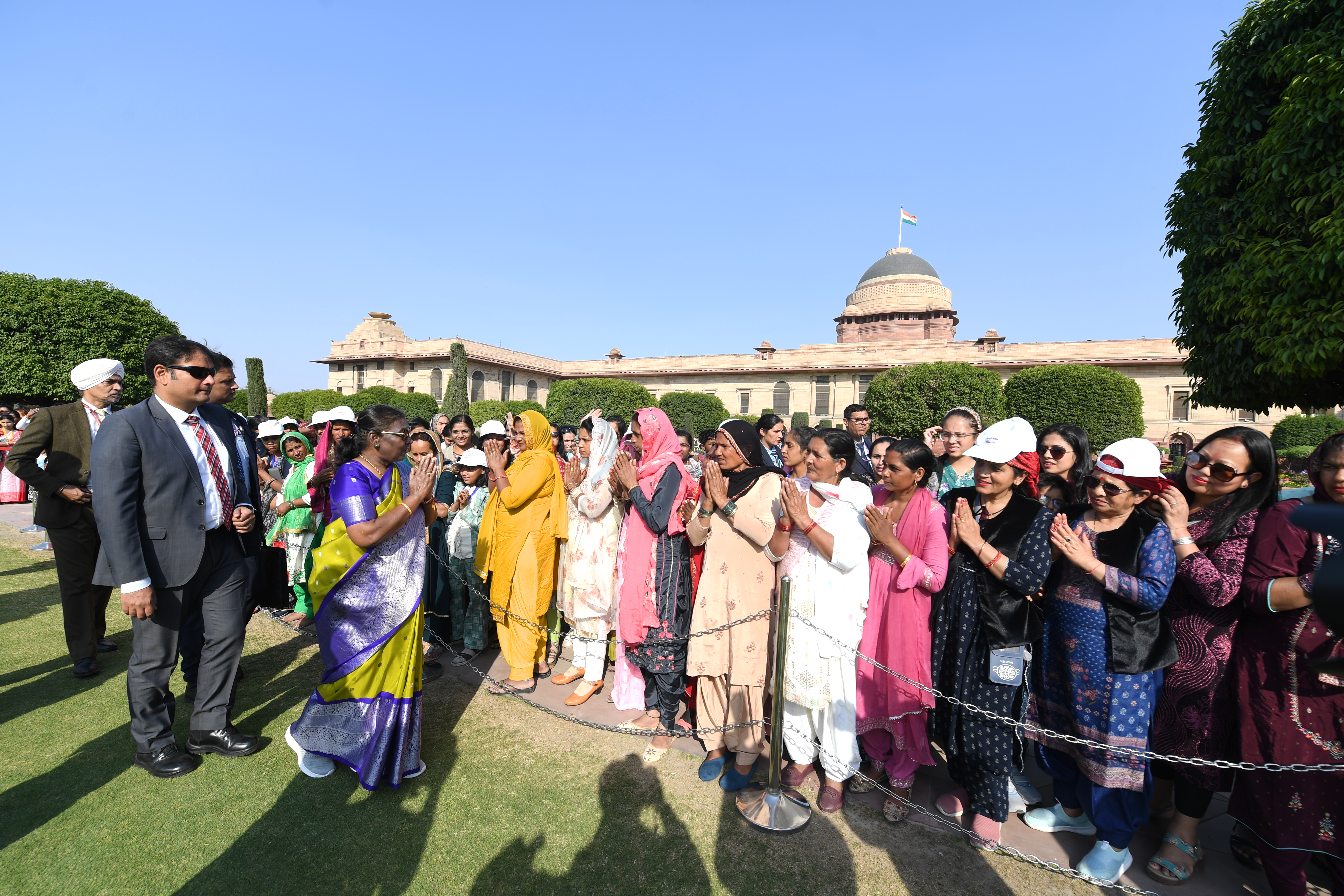 | Caption: | The President of India, Smt Droupadi Murmu met women visiting Amrit Udyan on the day reserved for the special category of Women Tribal Women SHGs-II 08-03-2024 |