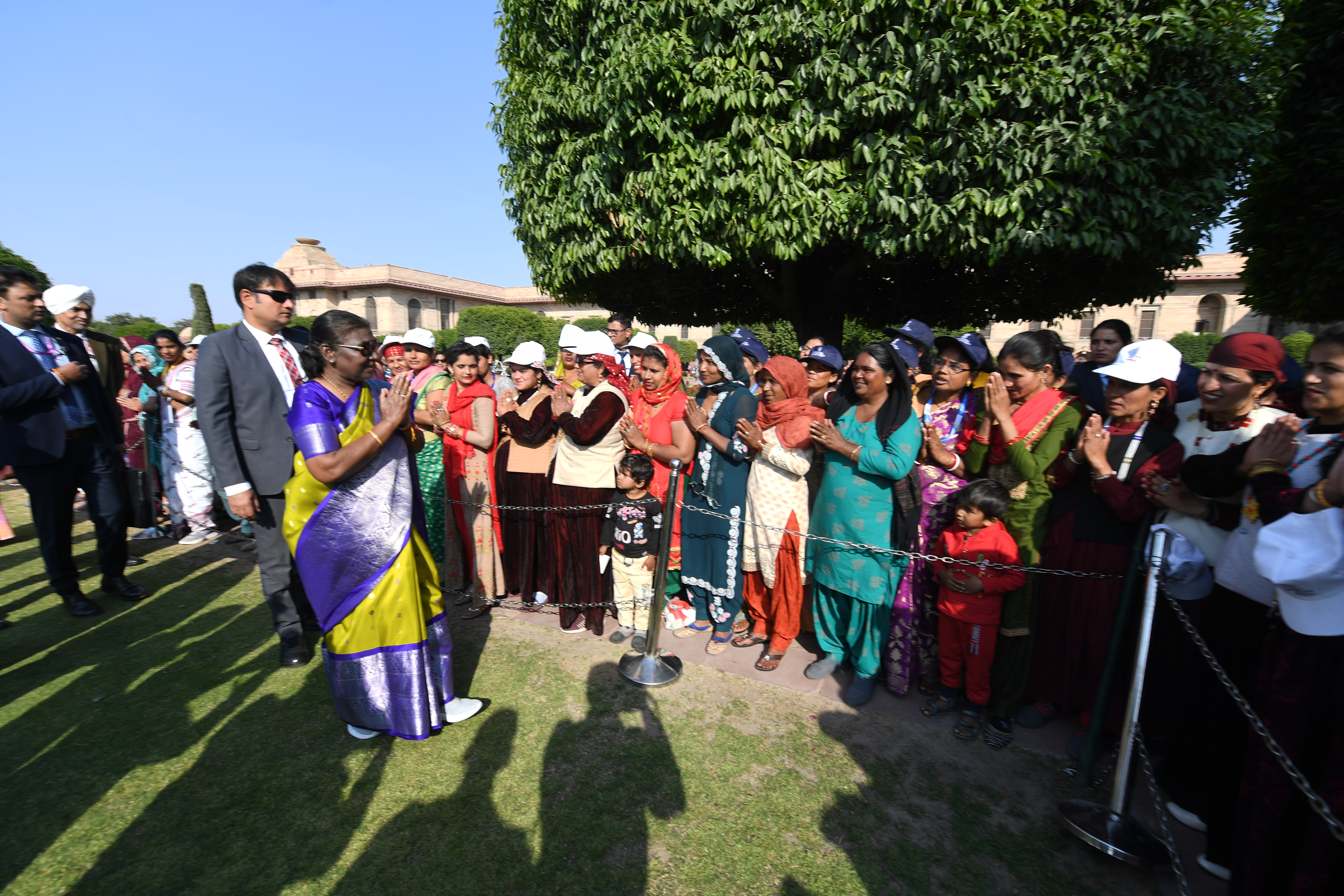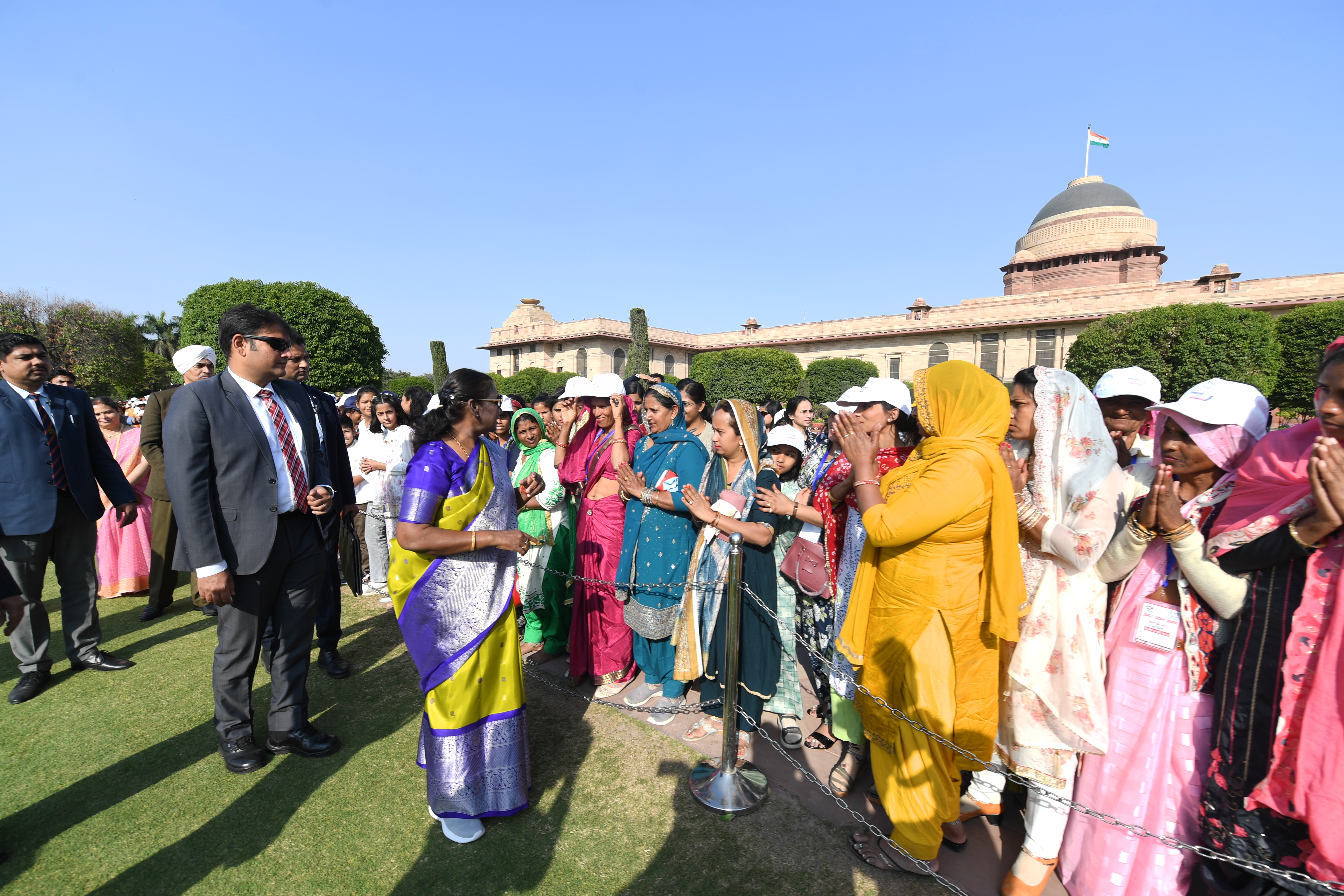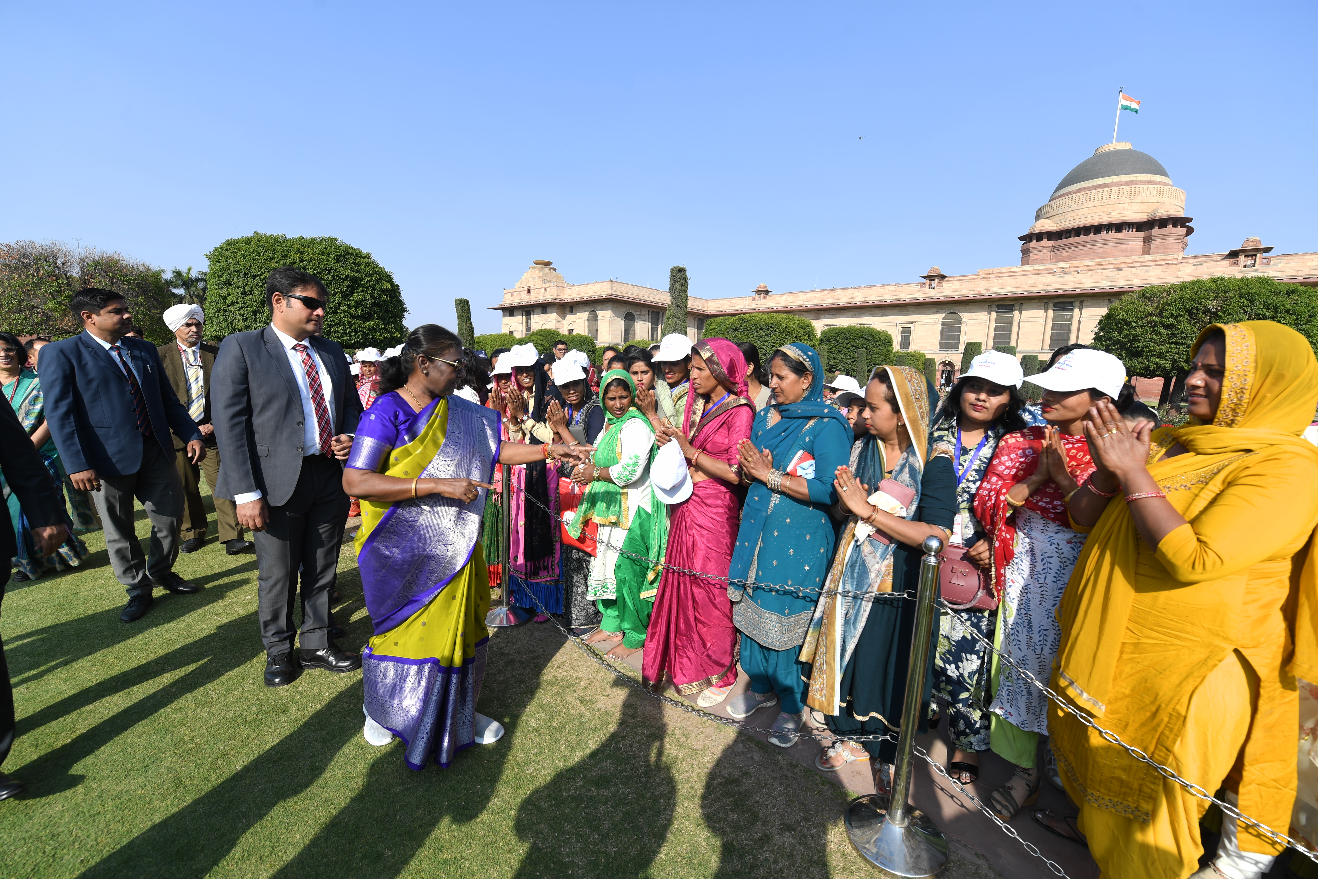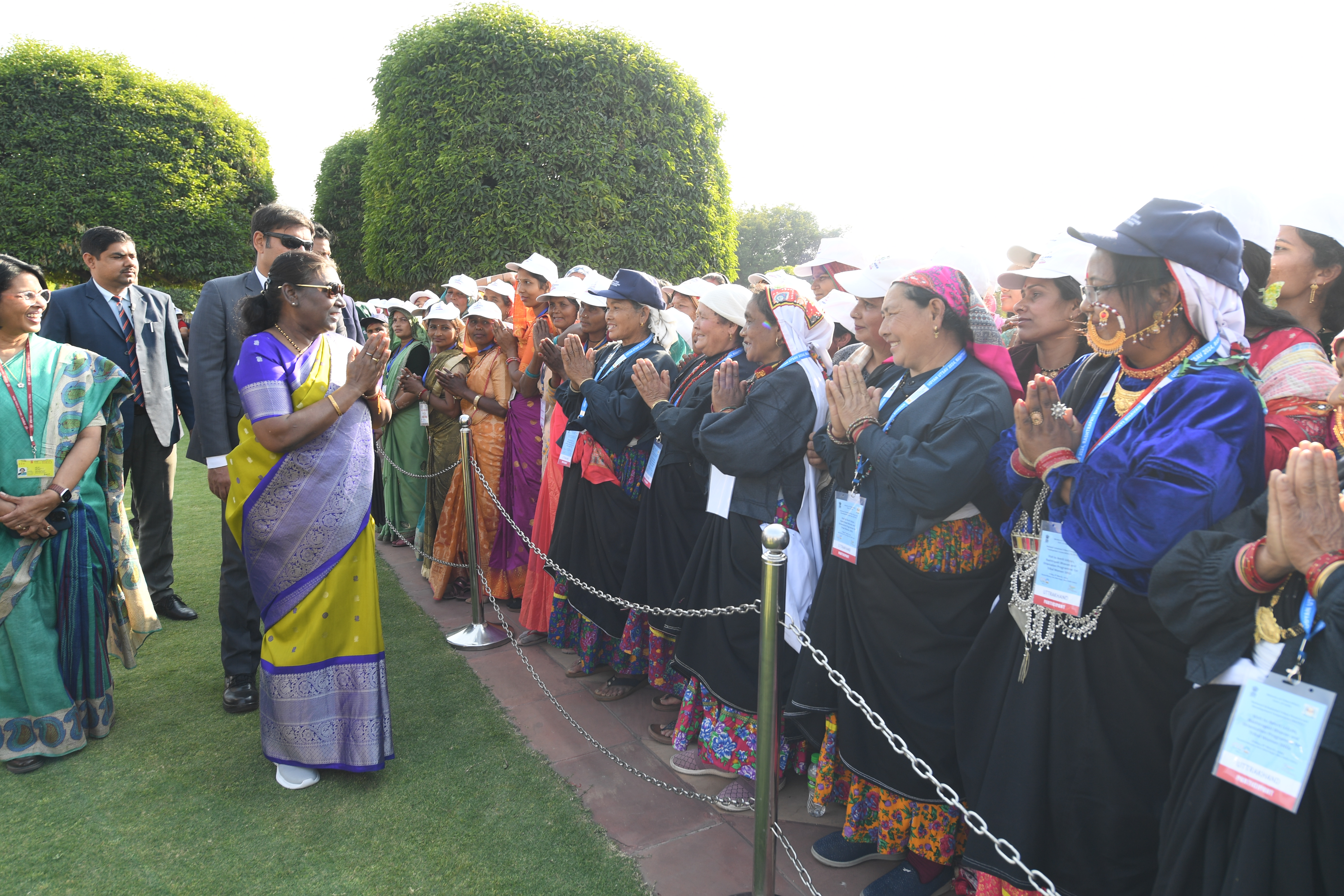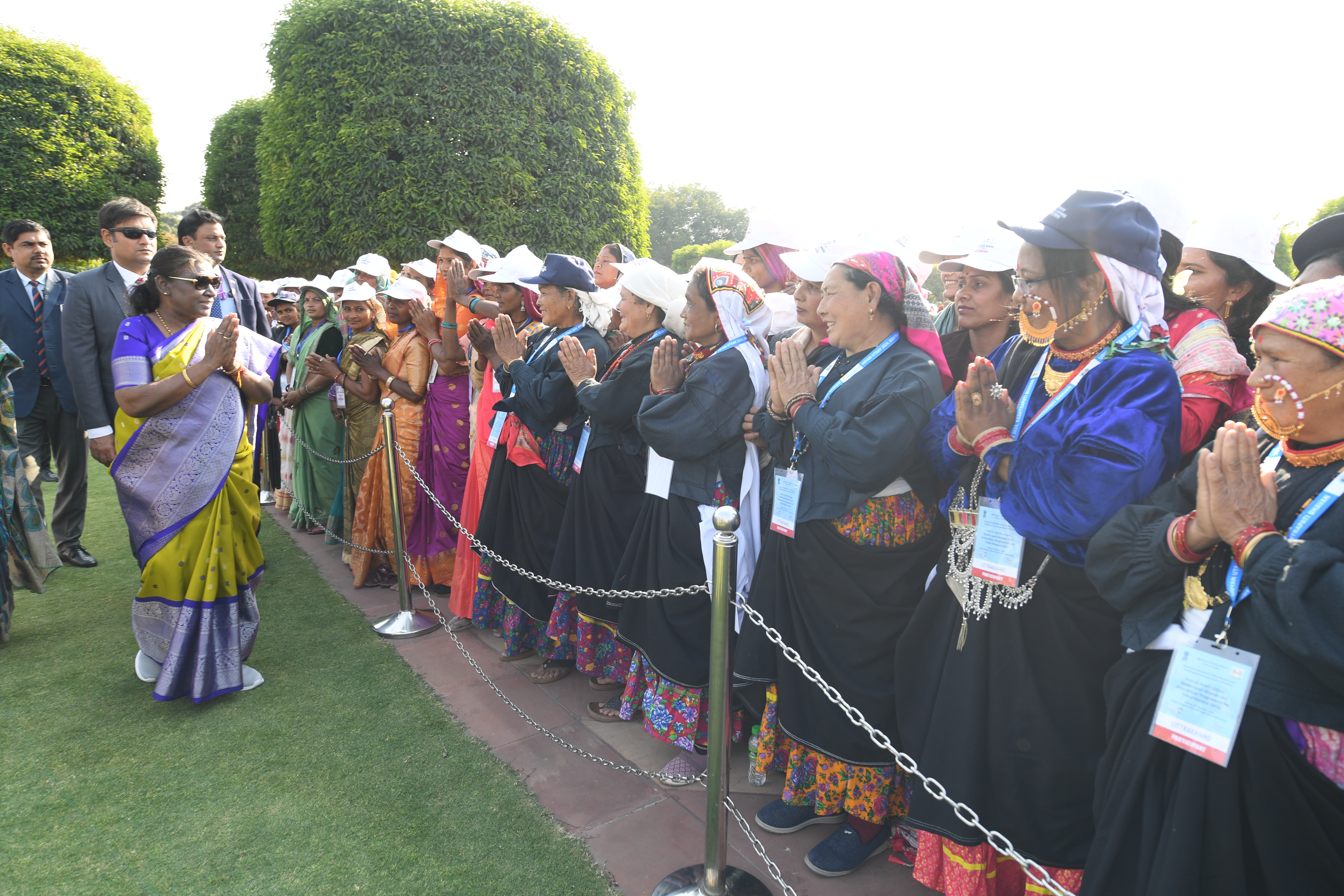 | Caption: | The President of India, Smt Droupadi Murmu met women visiting Amrit Udyan on the day reserved for the special category of Women Tribal Women SHGs-II 08-03-2024 |
