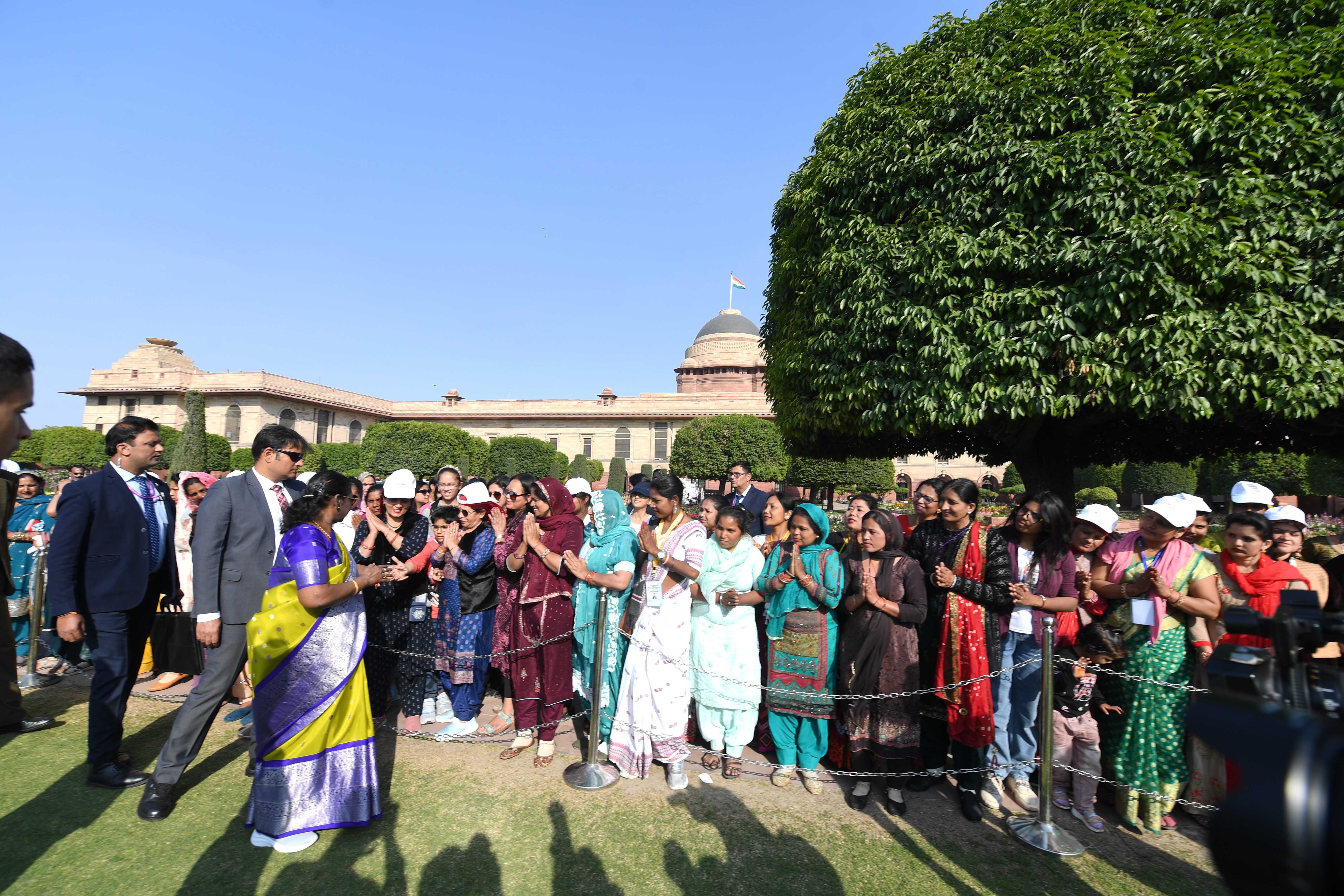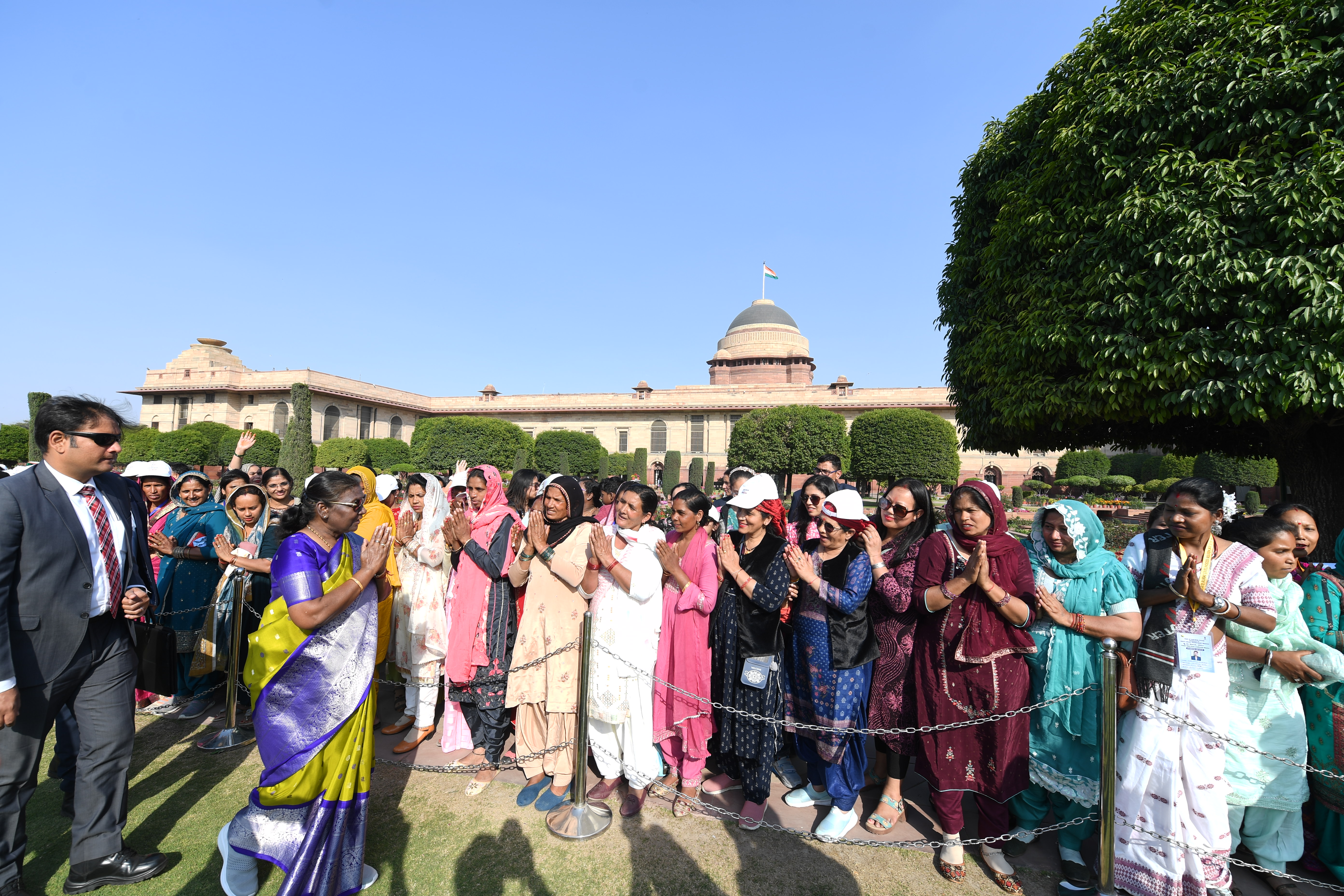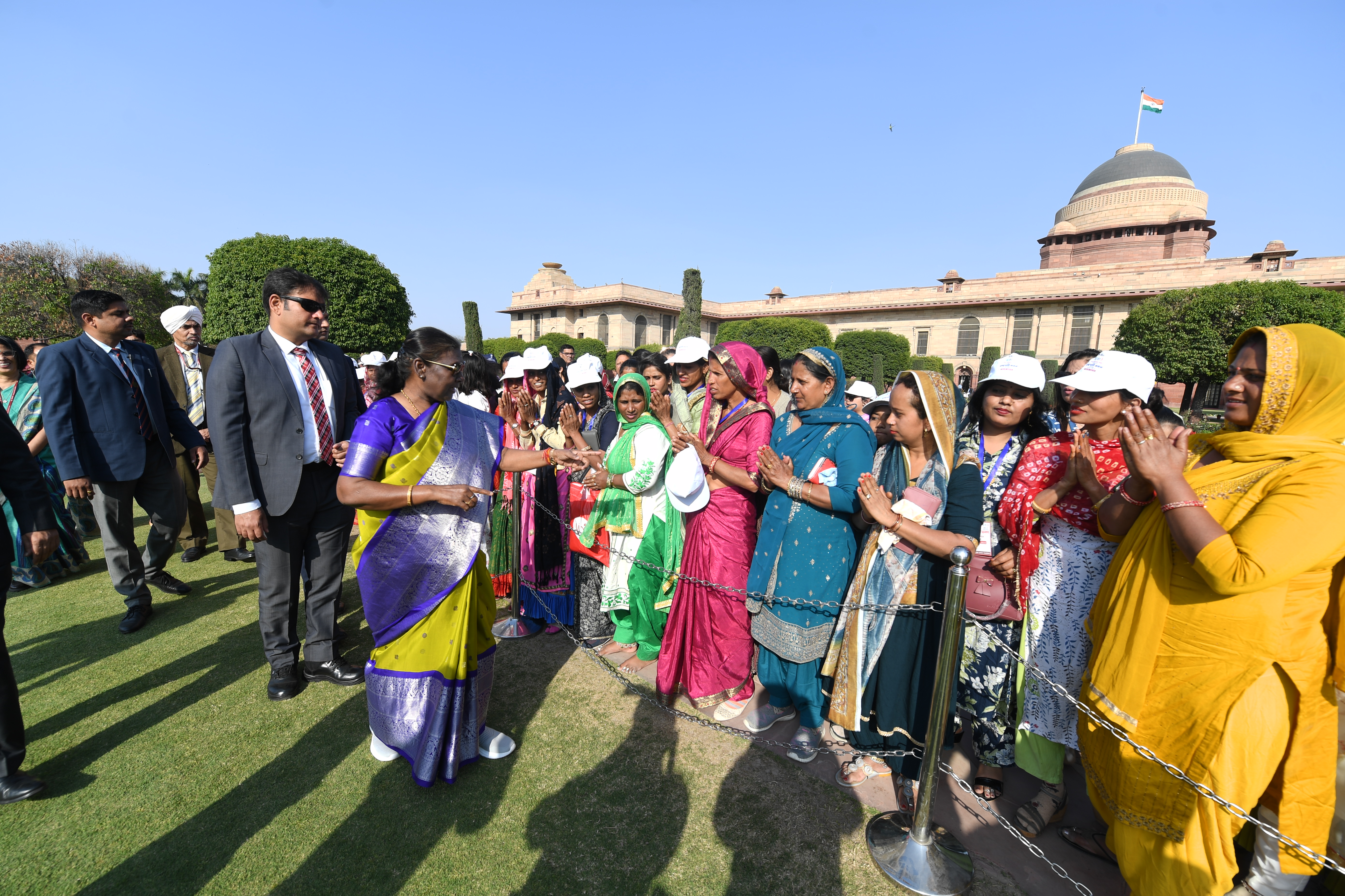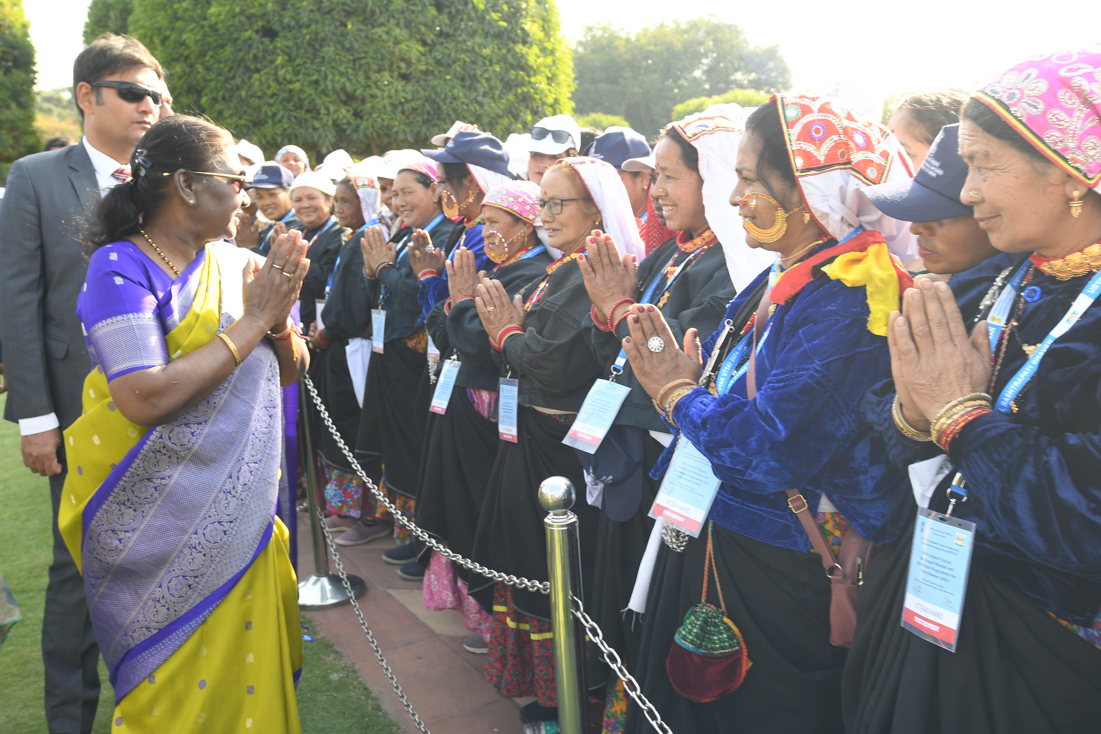 | Caption: | The President of India, Smt Droupadi Murmu met women visiting Amrit Udyan on the day reserved for the special category of Women Tribal Women SHGs-II 08-03-2024 |