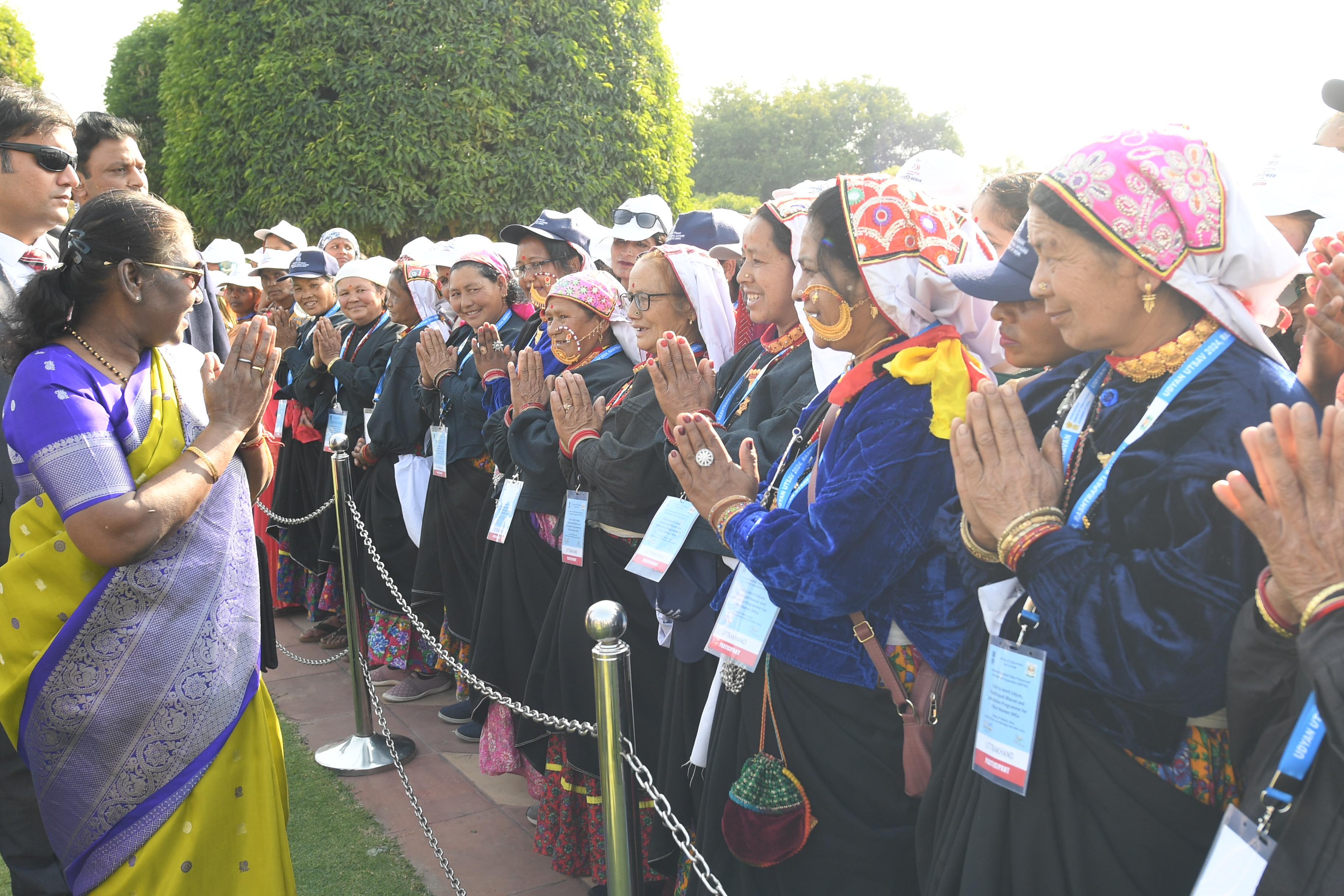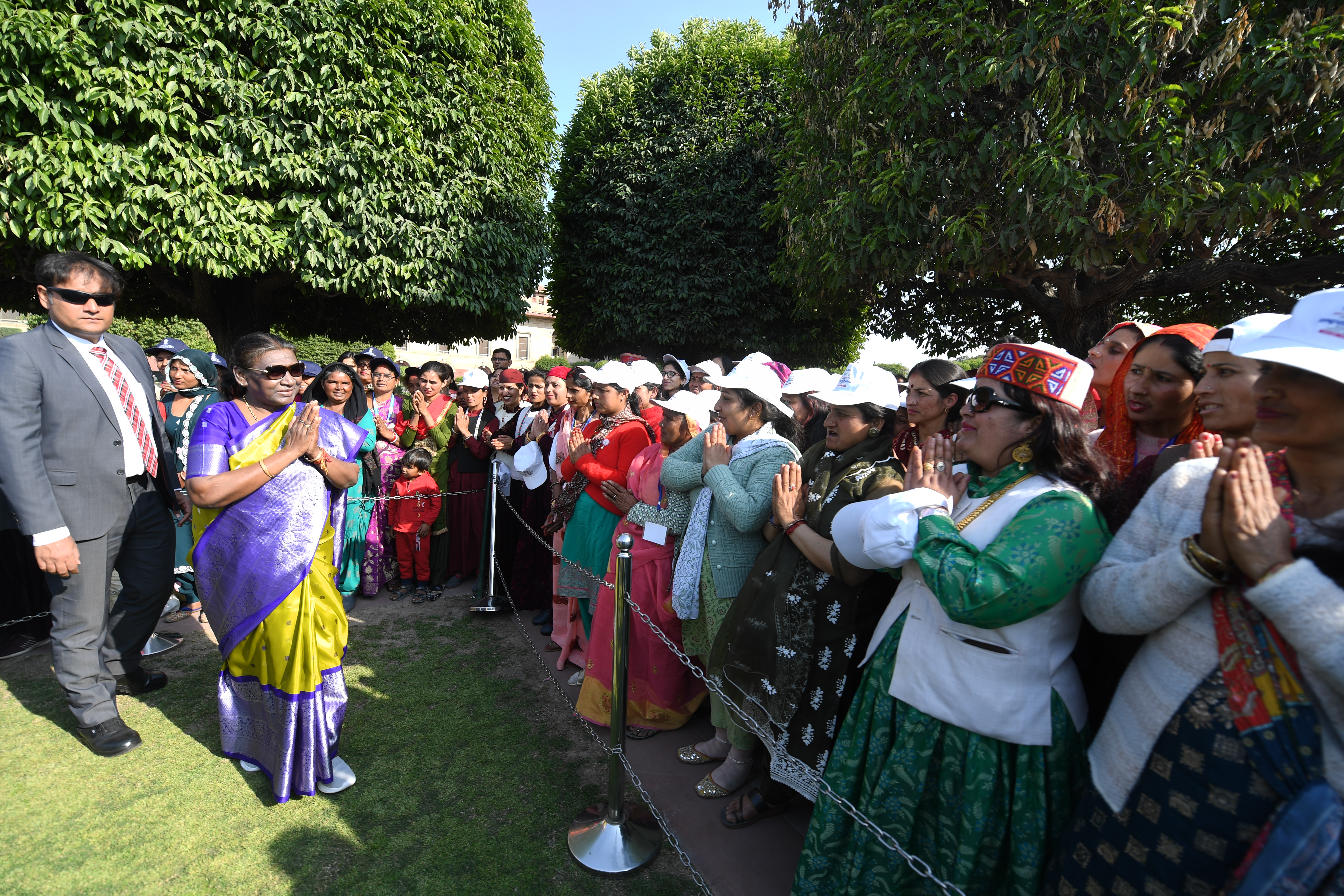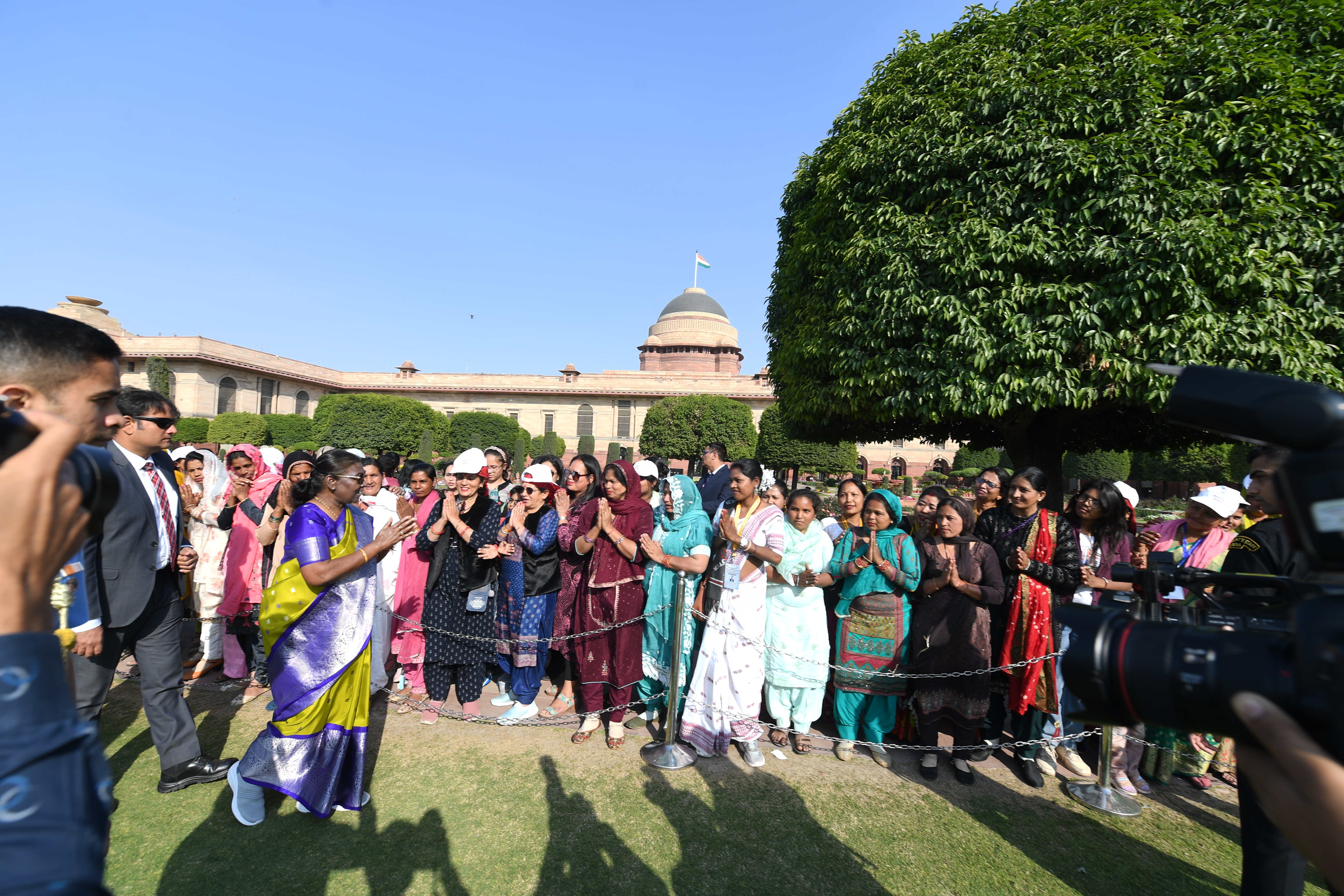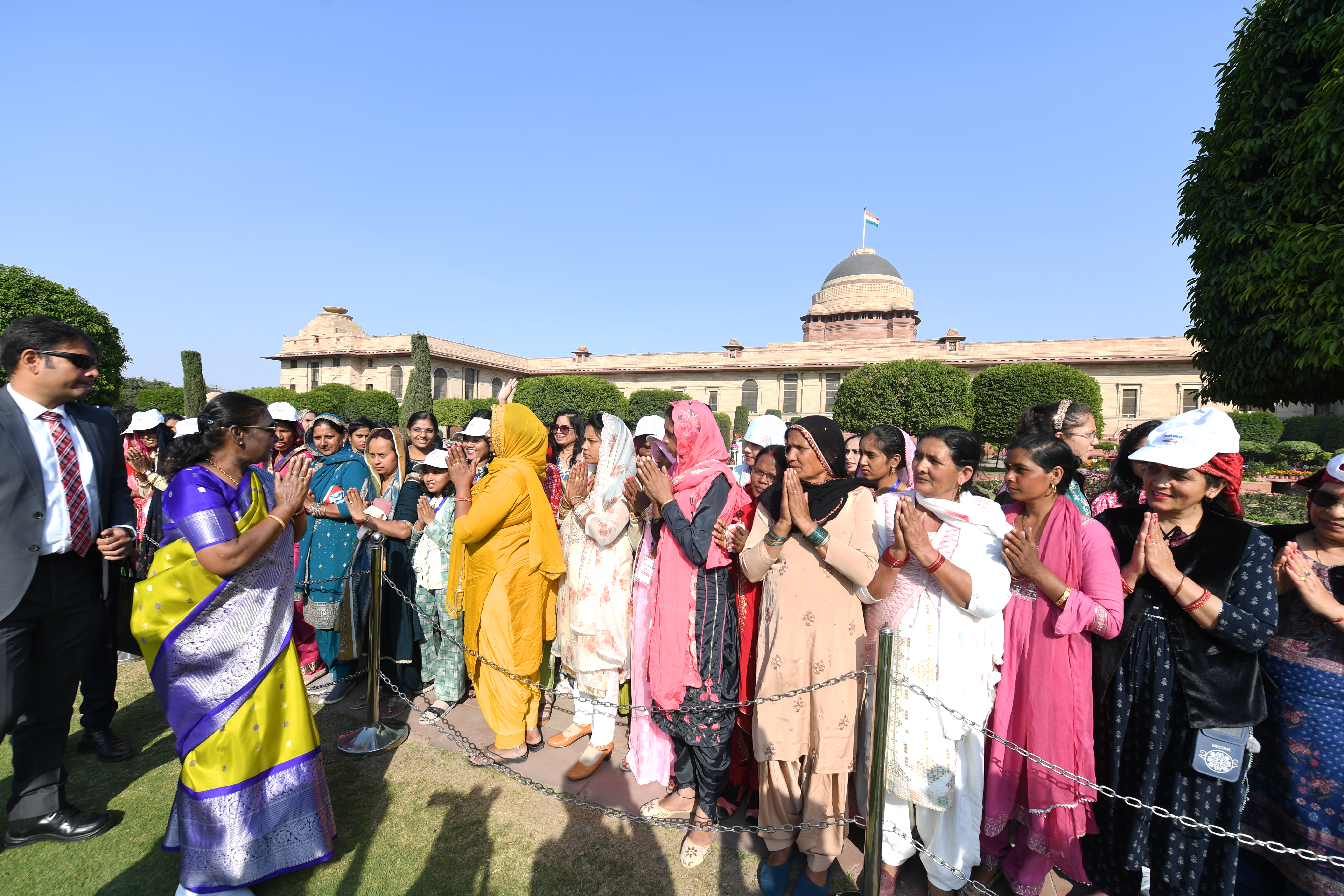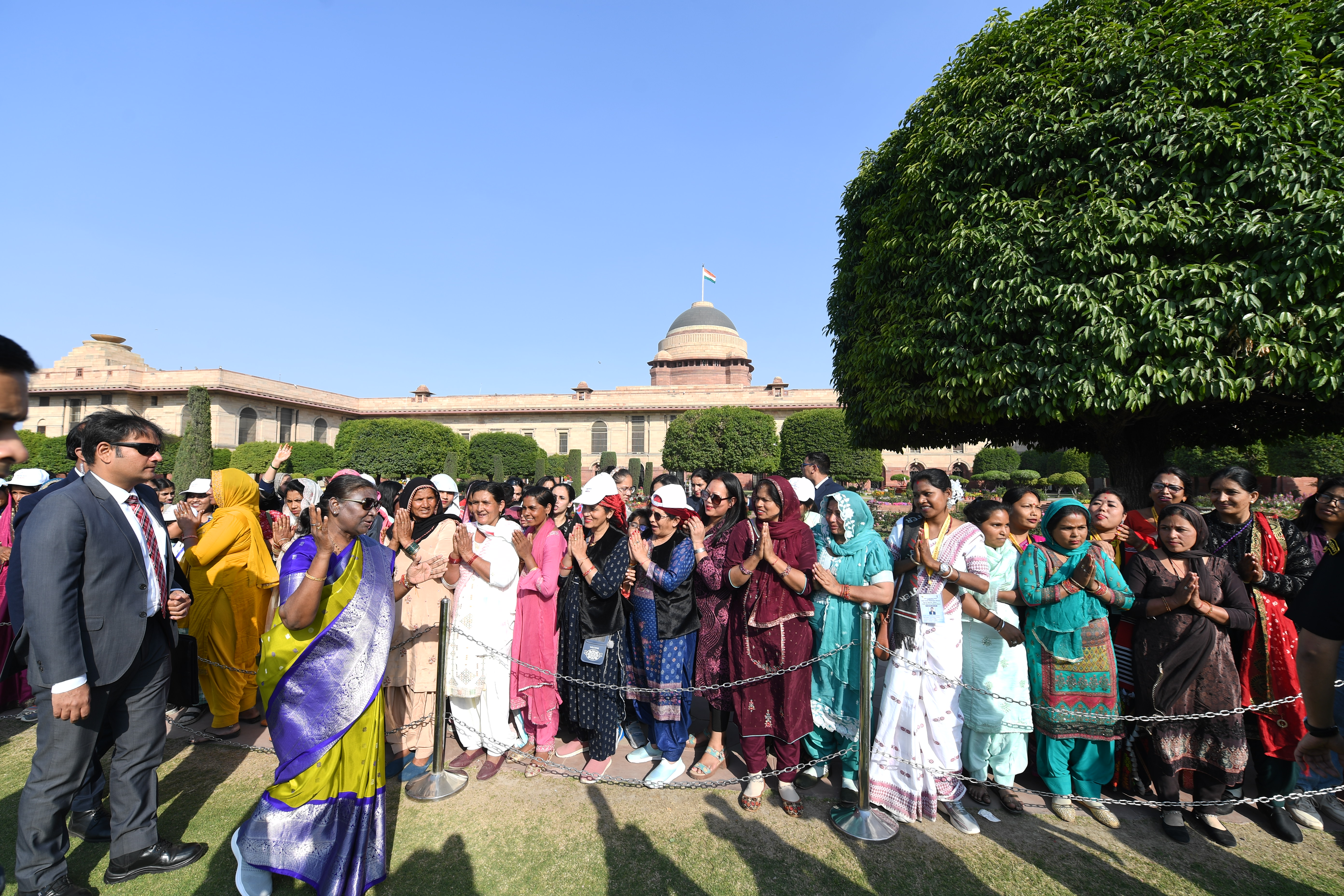 | Caption: | The President of India, Smt Droupadi Murmu met women visiting Amrit Udyan on the day reserved for the special category of Women Tribal Women SHGs-II 08-03-2024 |