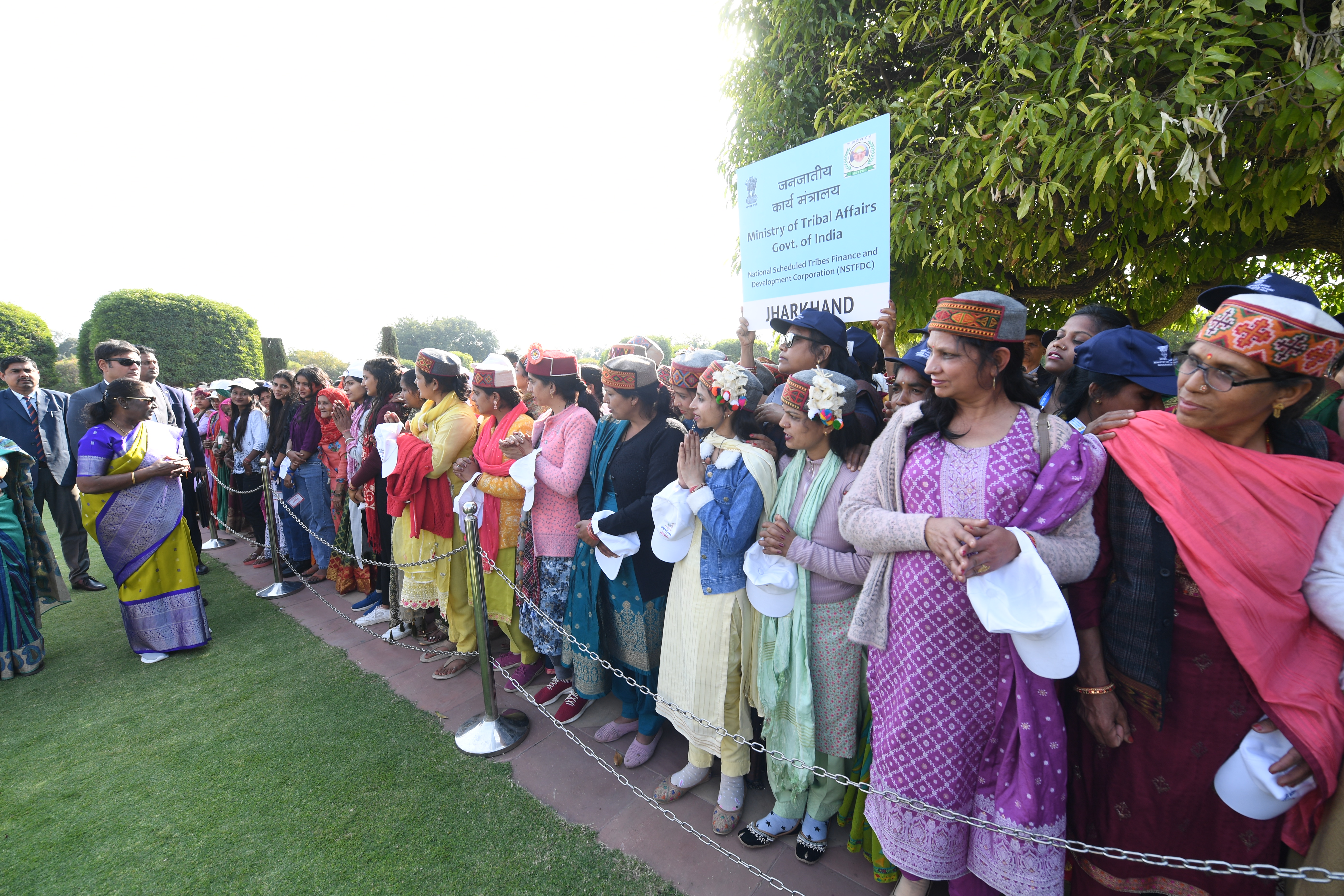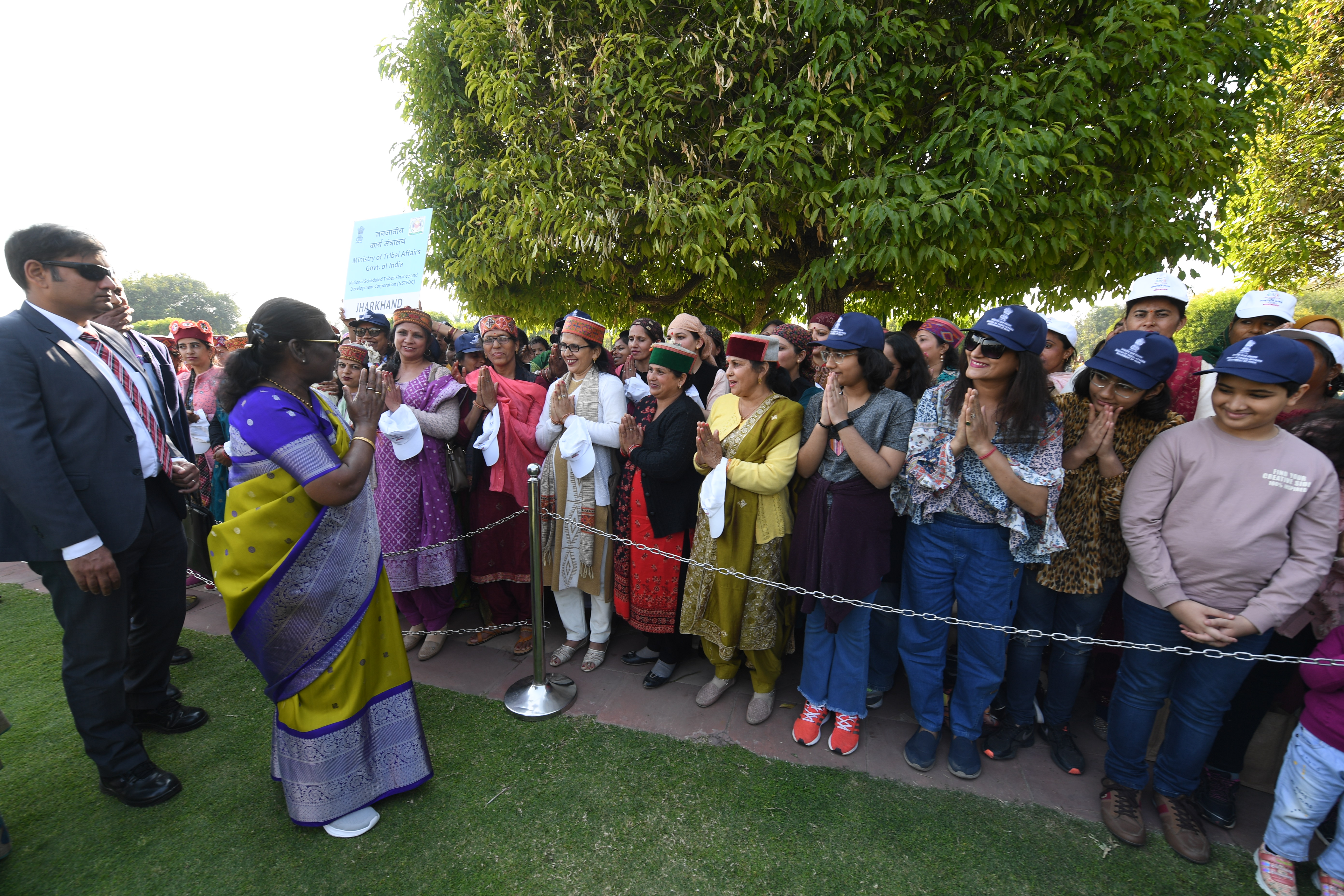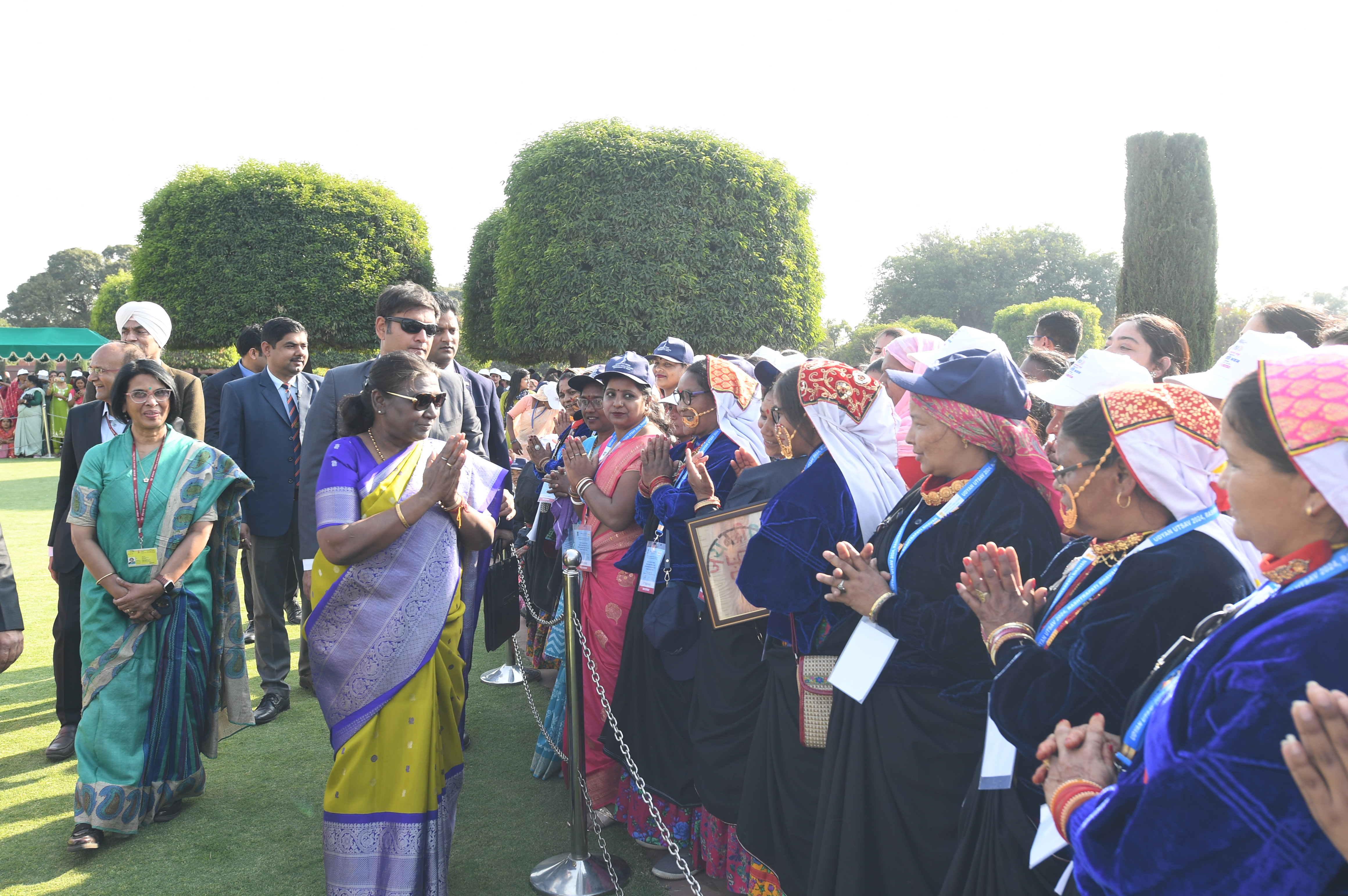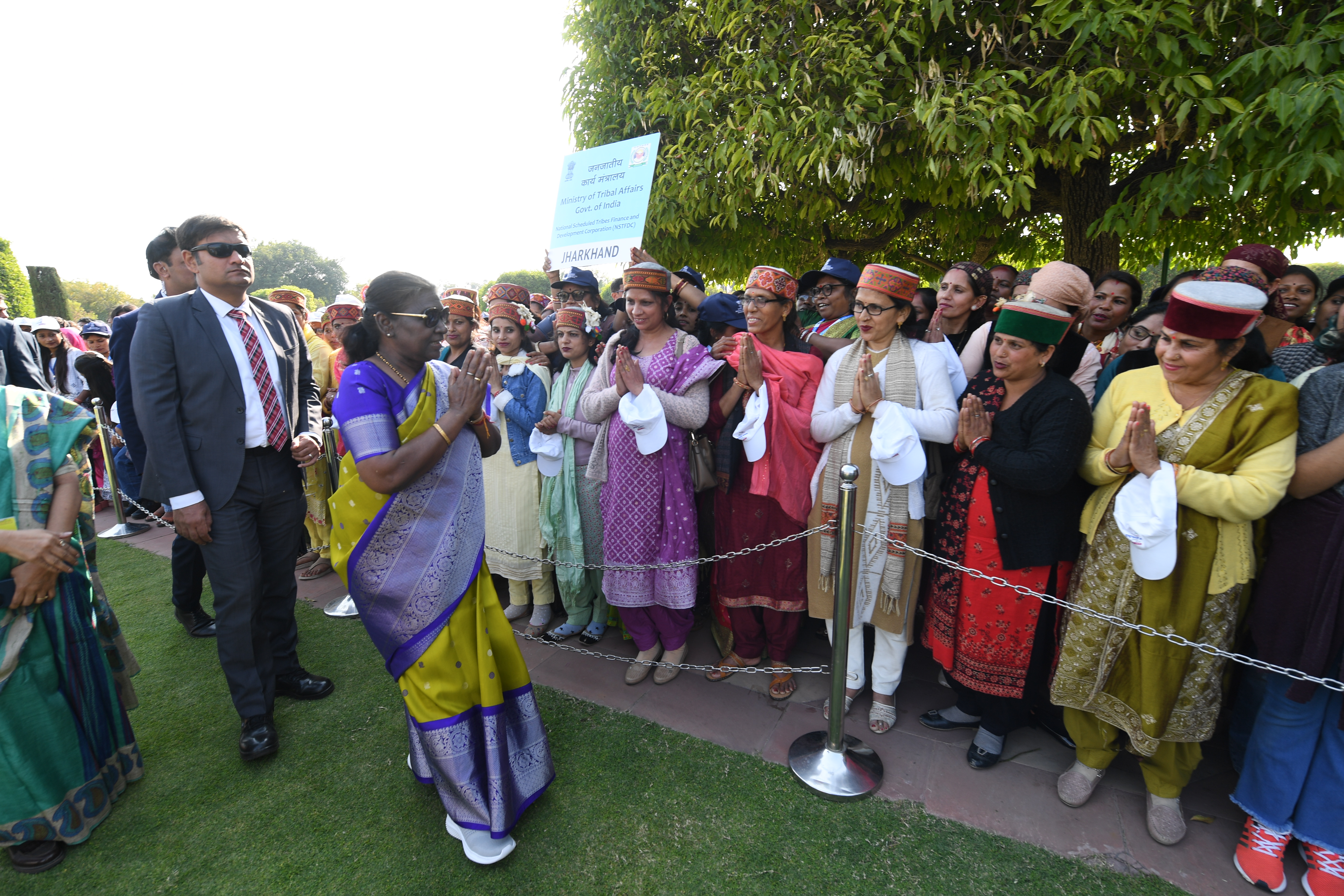 | Caption: | The President of India, Smt Droupadi Murmu met women visiting Amrit Udyan on the day reserved for the special category of Women Tribal Women SHGs-II 08-03-2024 |