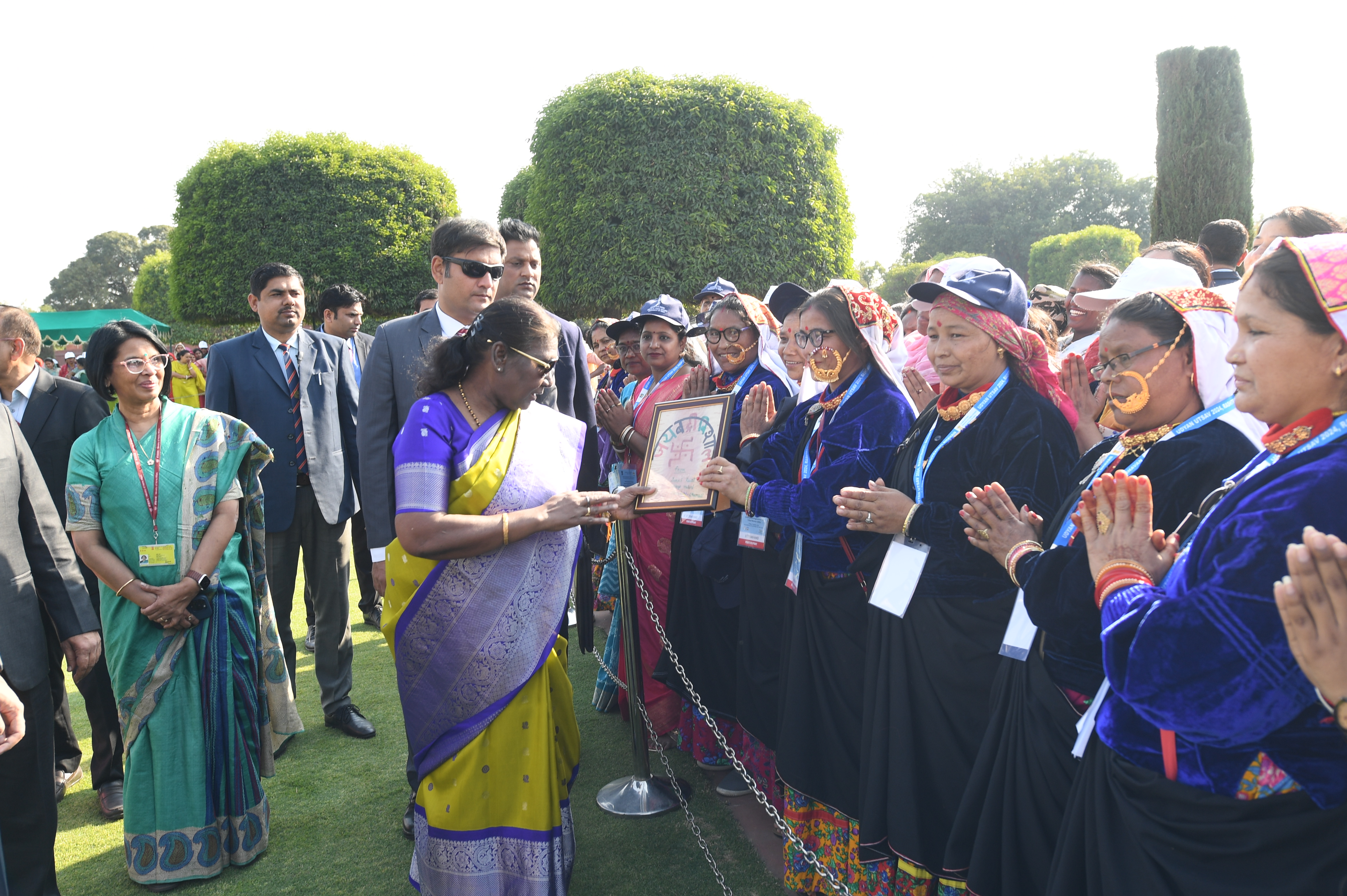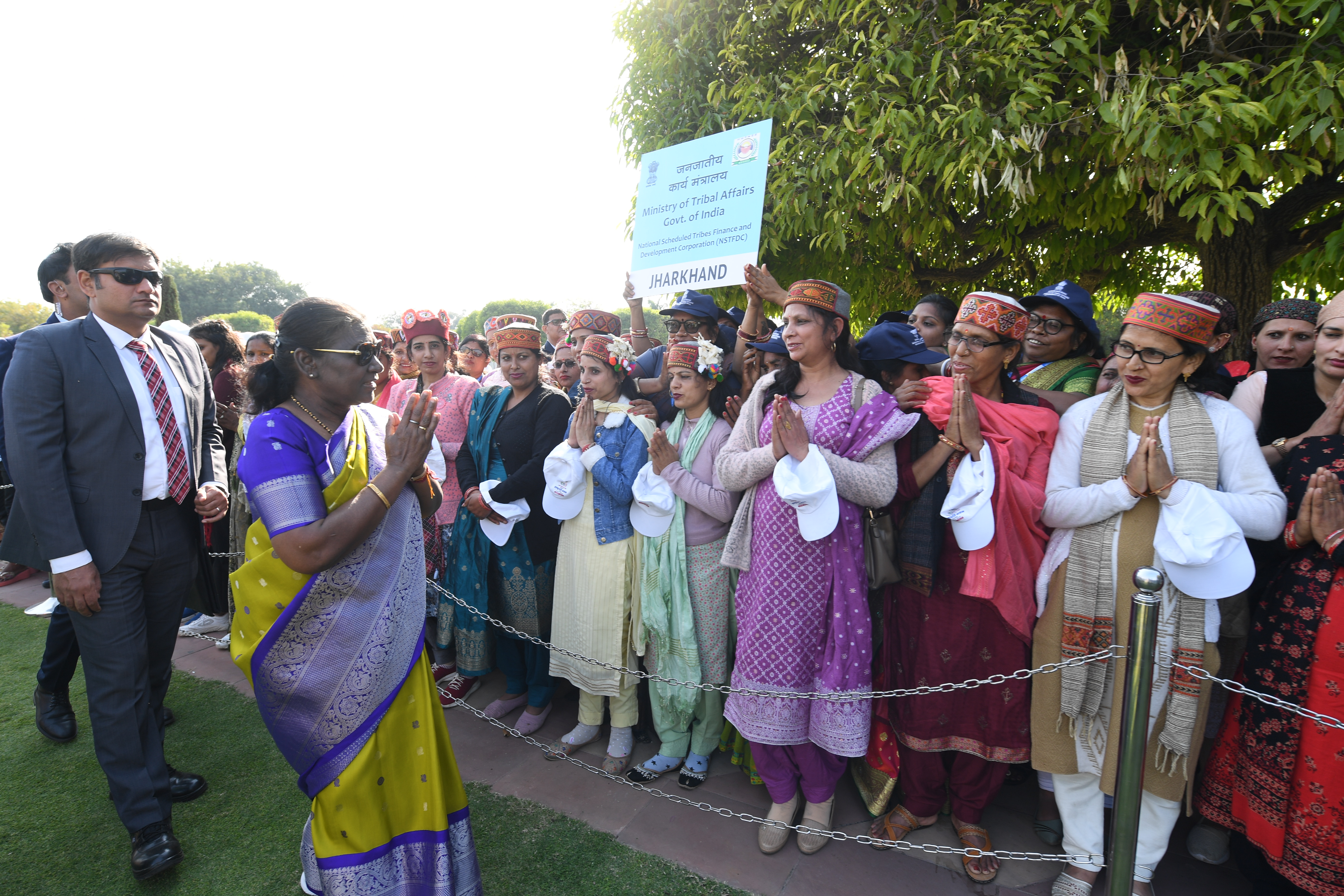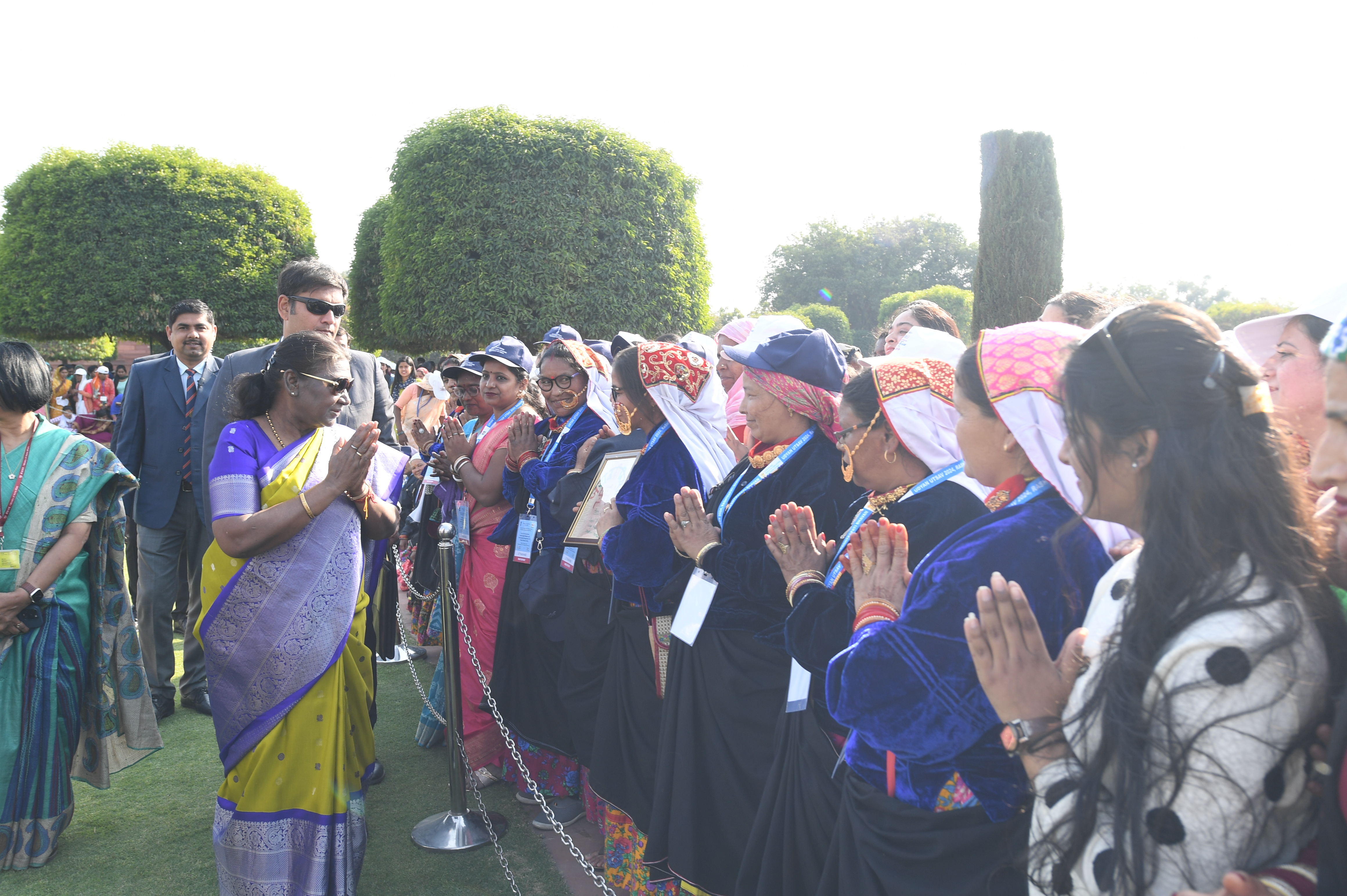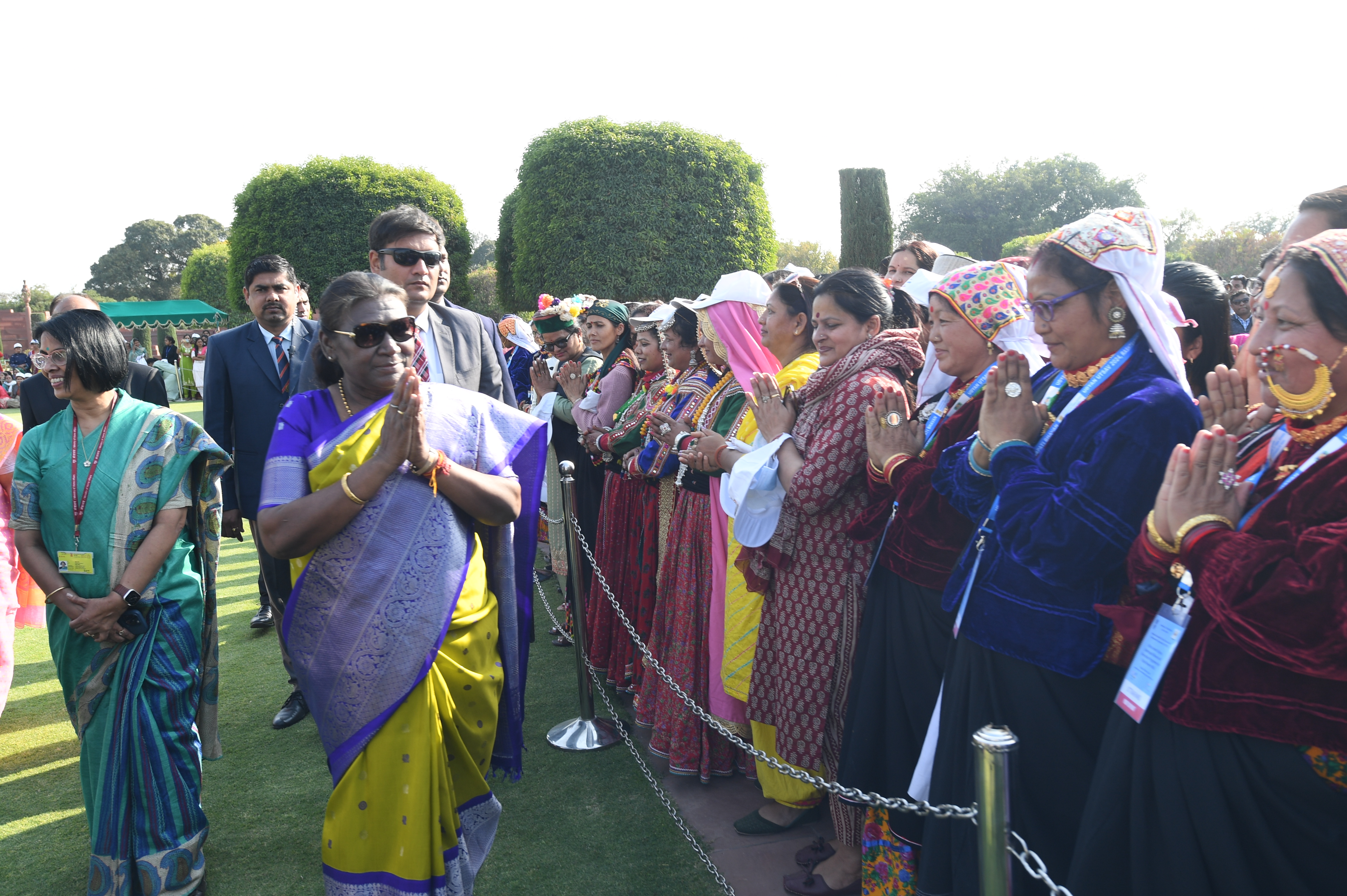 | Caption: | The President of India, Smt Droupadi Murmu met women visiting Amrit Udyan on the day reserved for the special category of Women Tribal Women SHGs-II 08-03-2024 |
