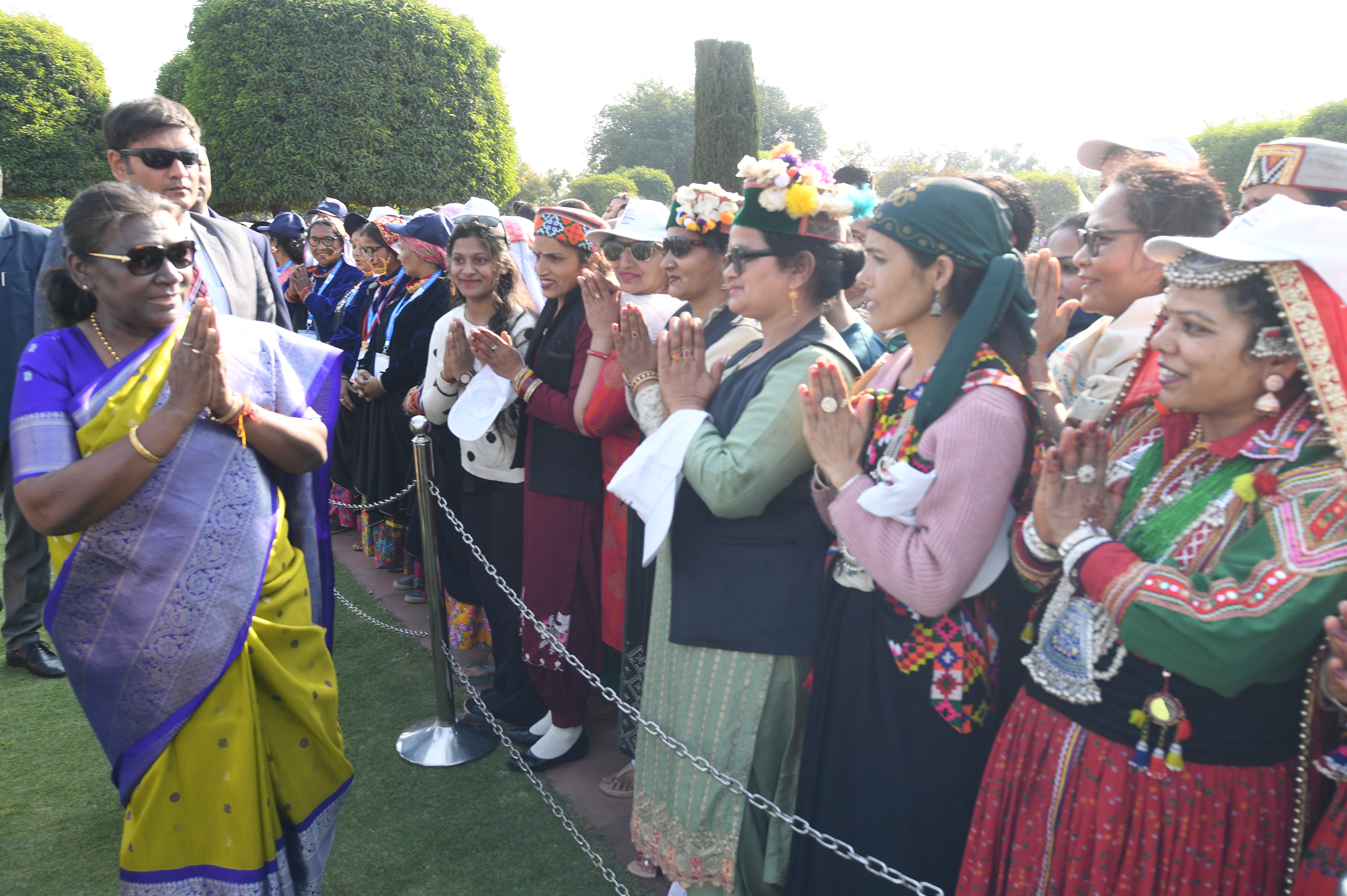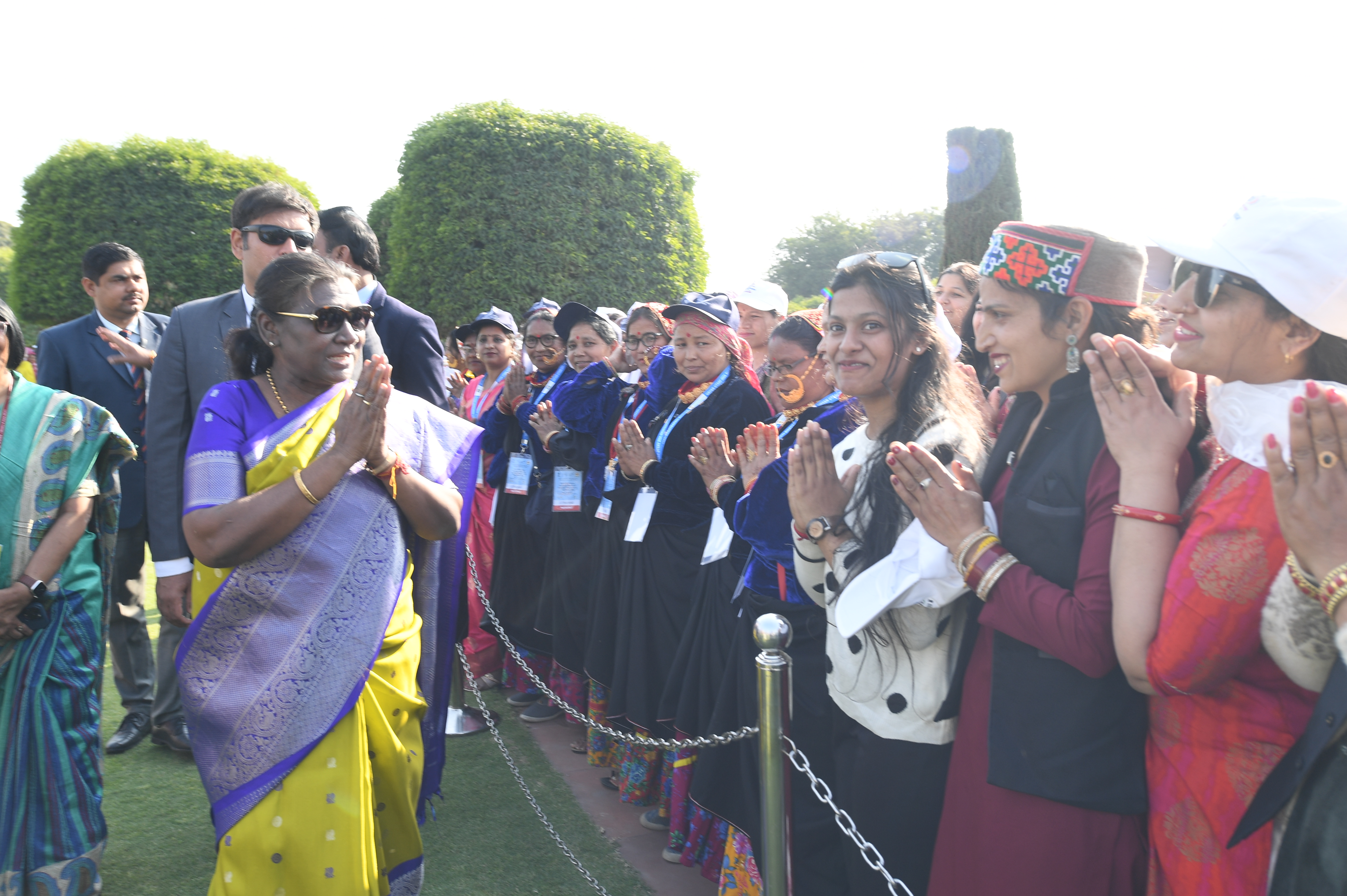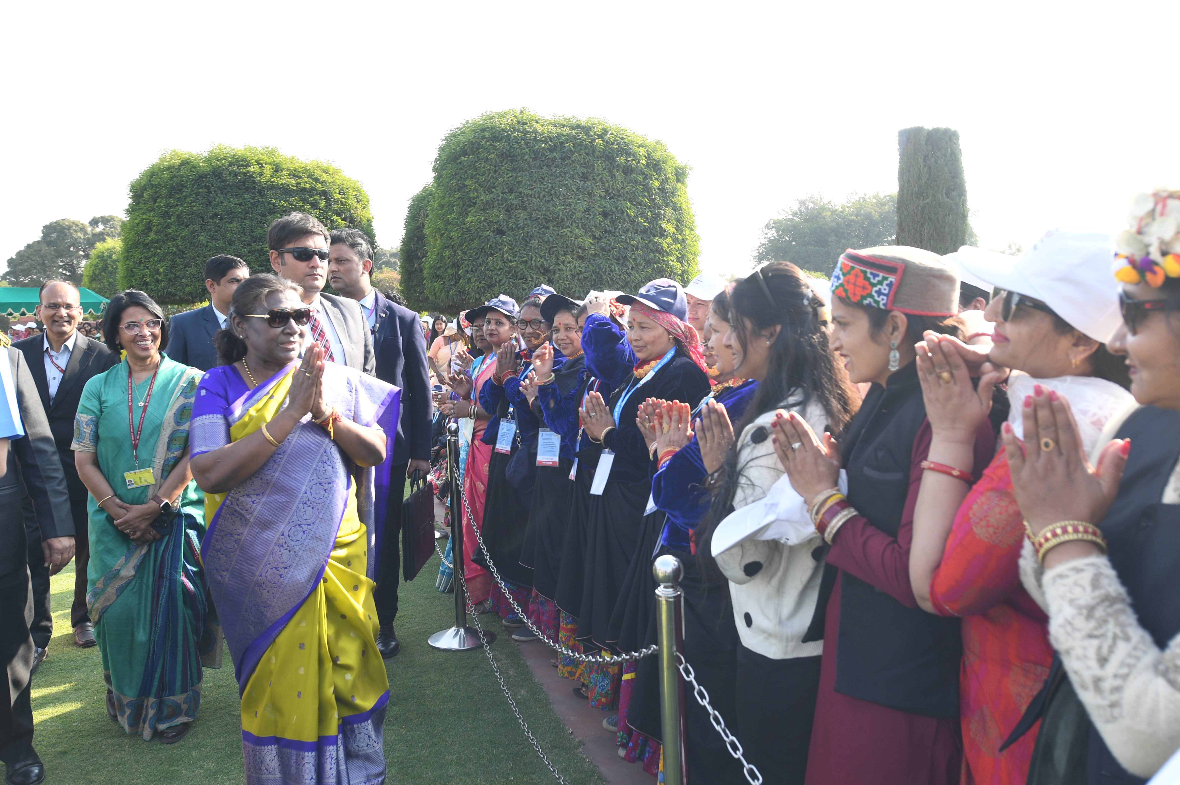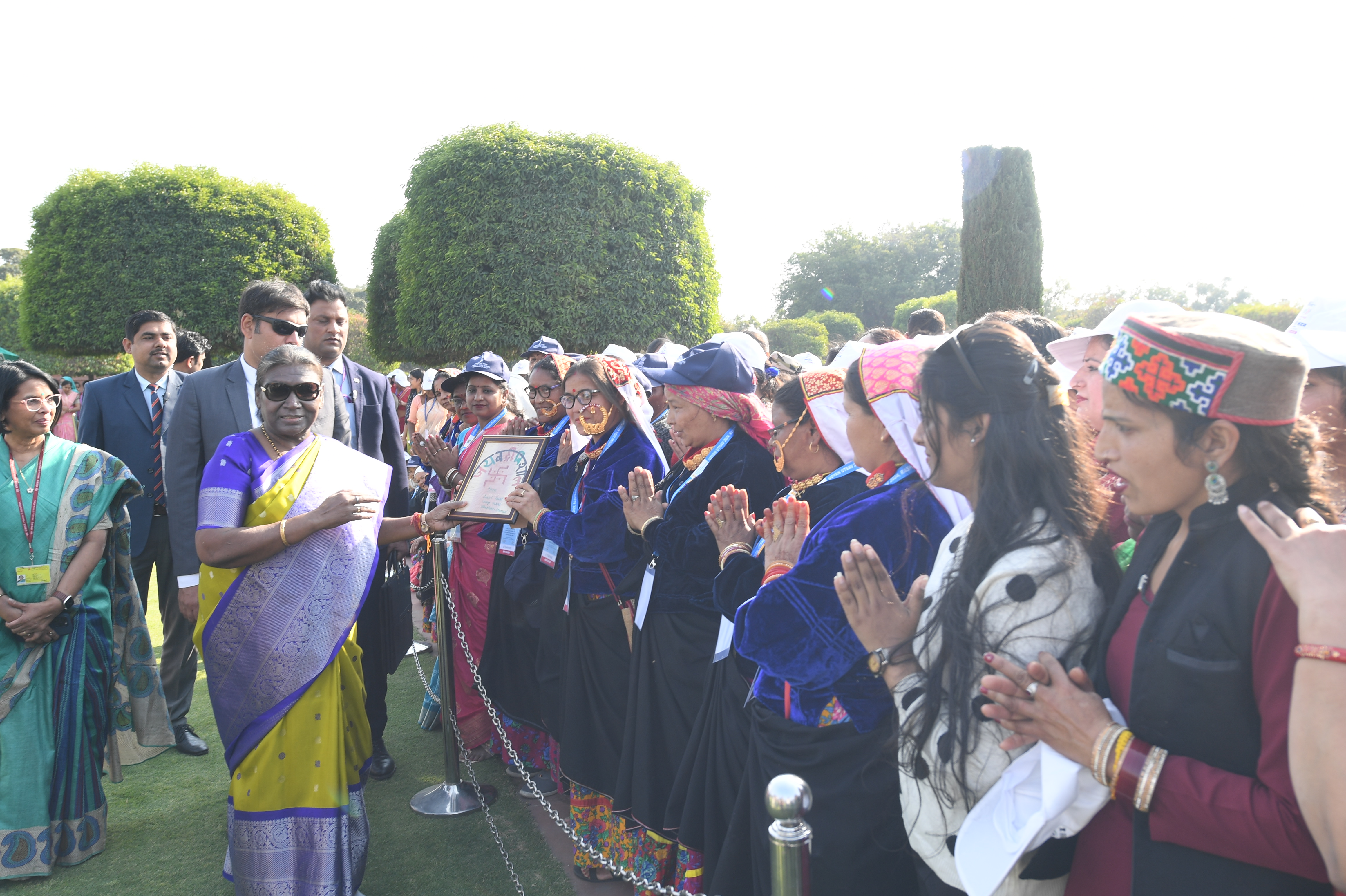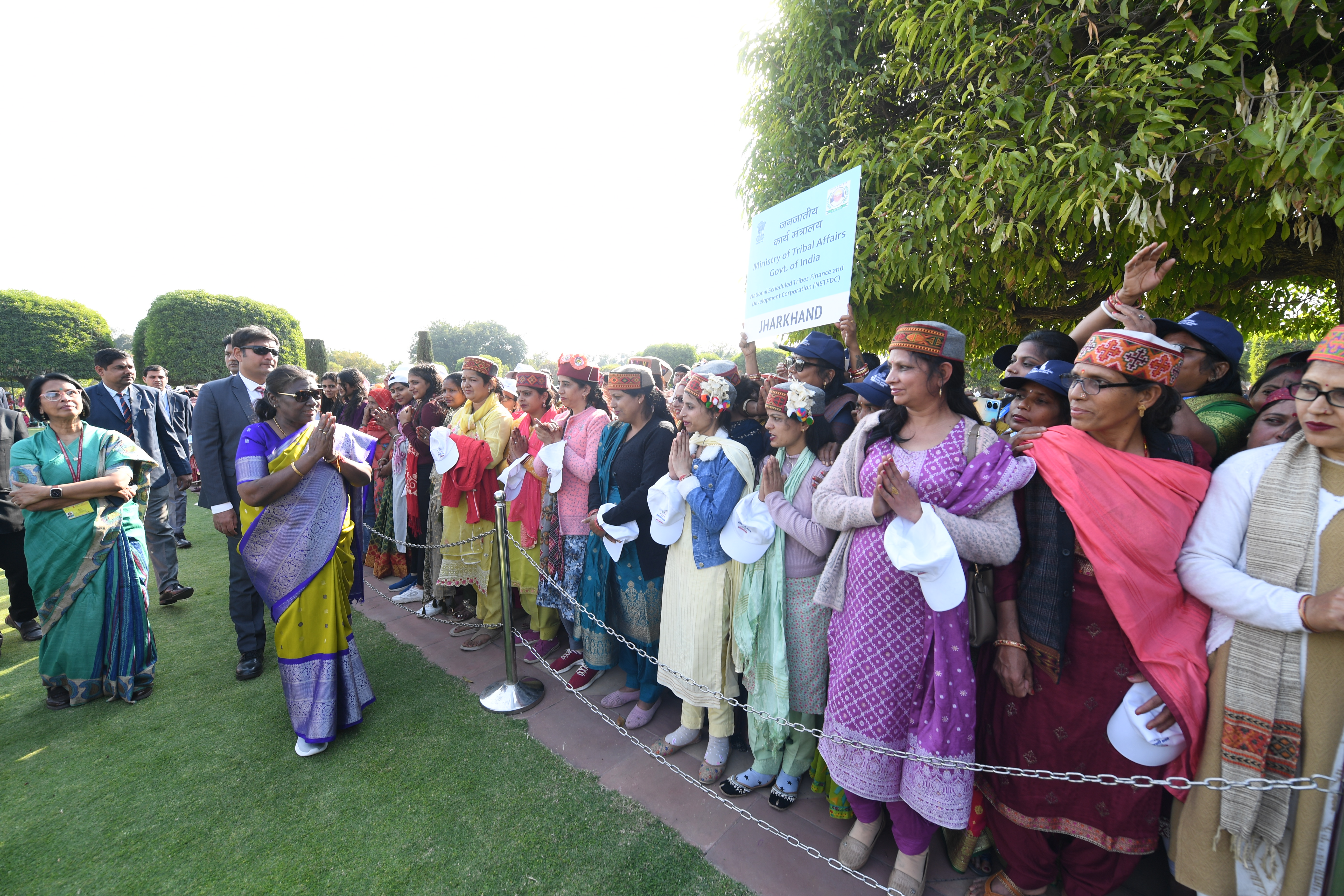 | Caption: | The President of India, Smt Droupadi Murmu met women visiting Amrit Udyan on the day reserved for the special category of Women Tribal Women SHGs-II 08-03-2024 |