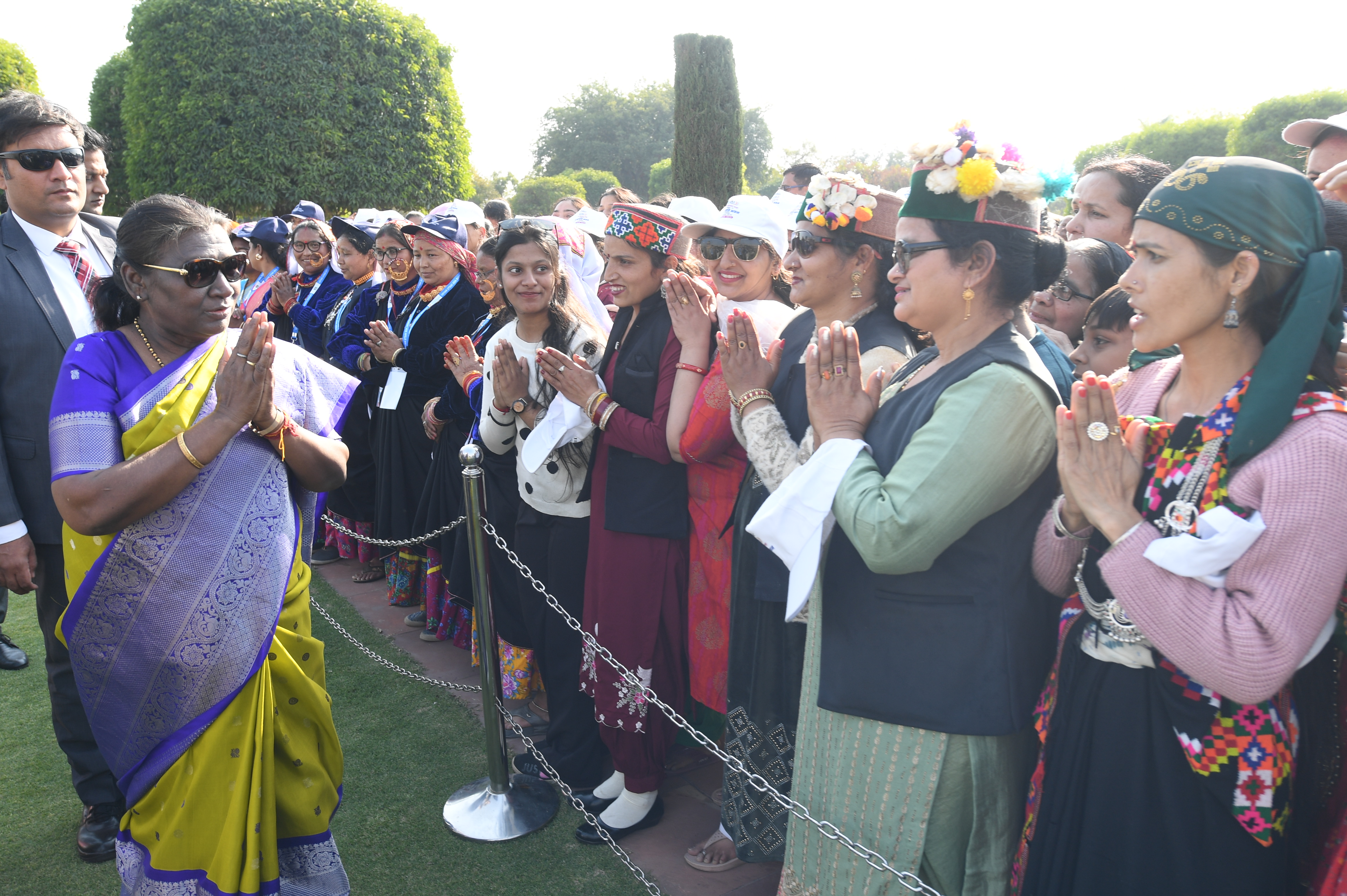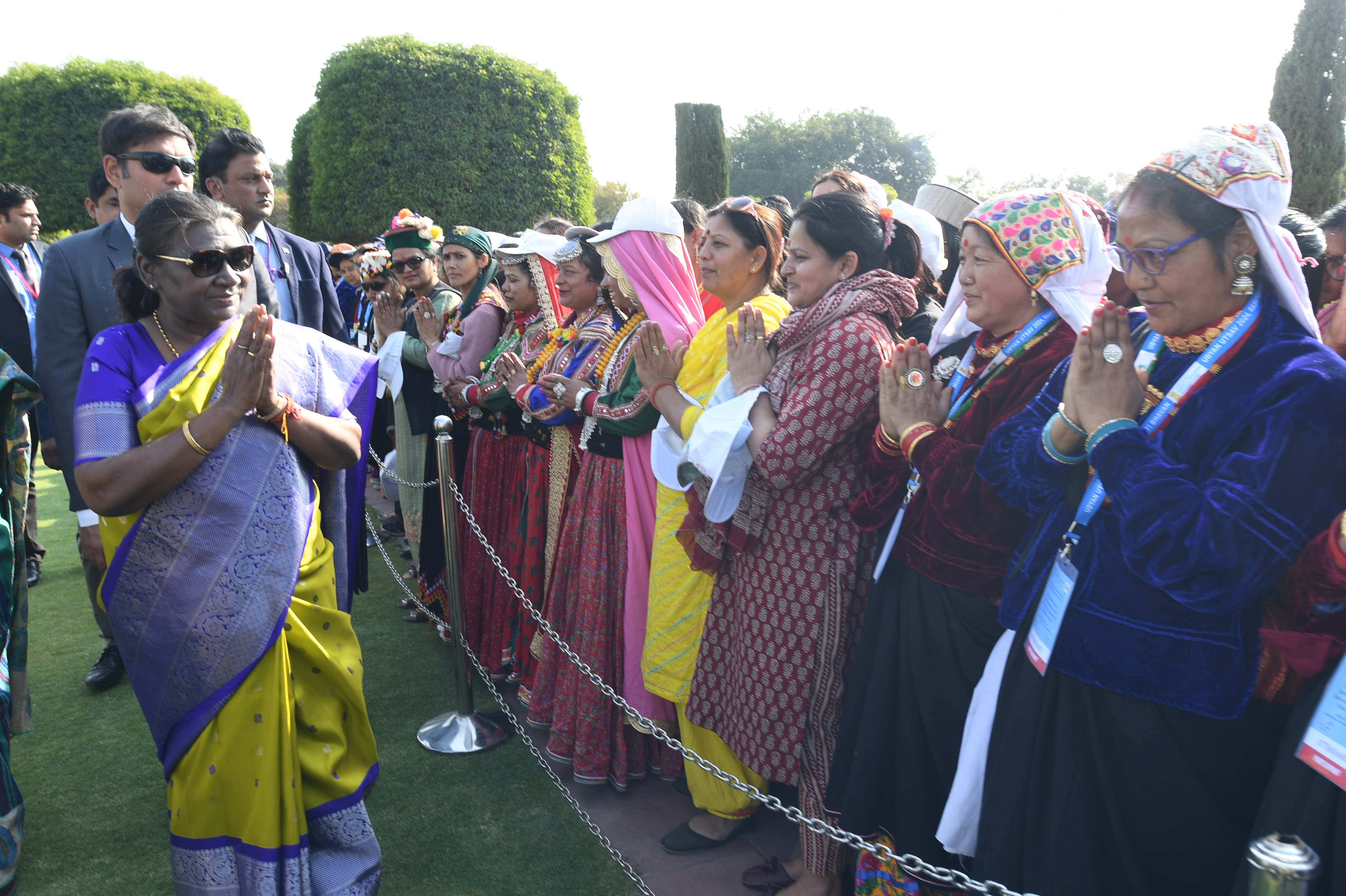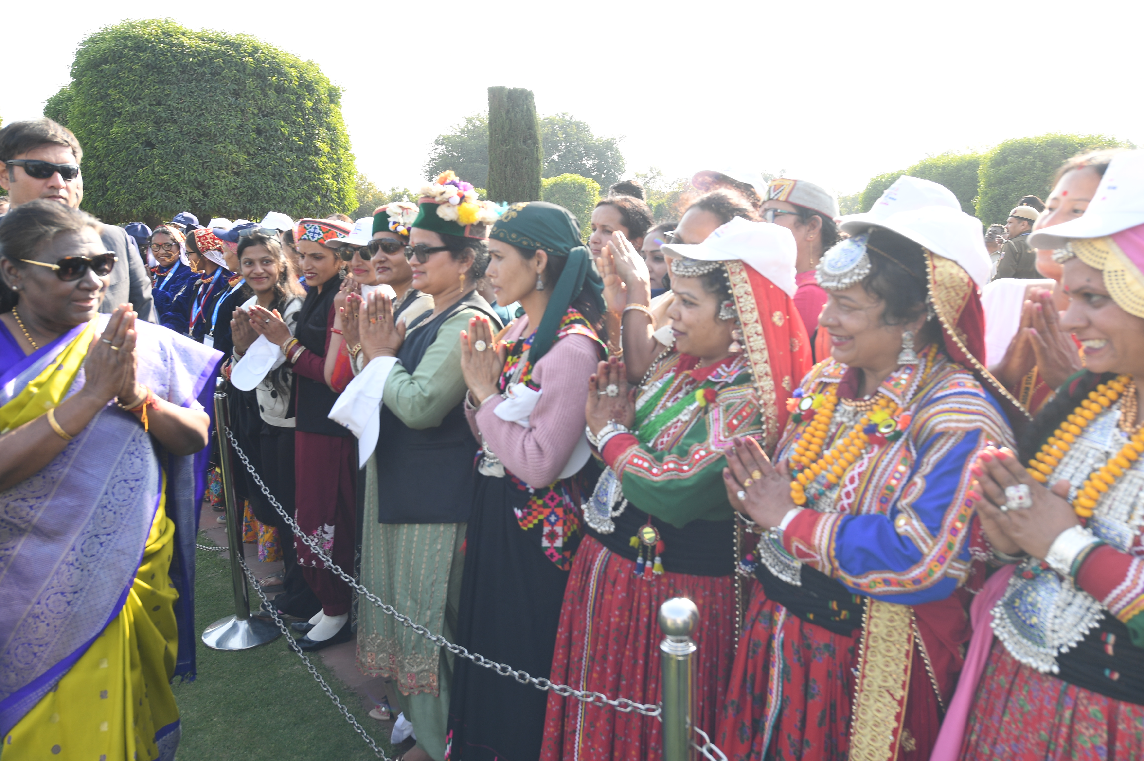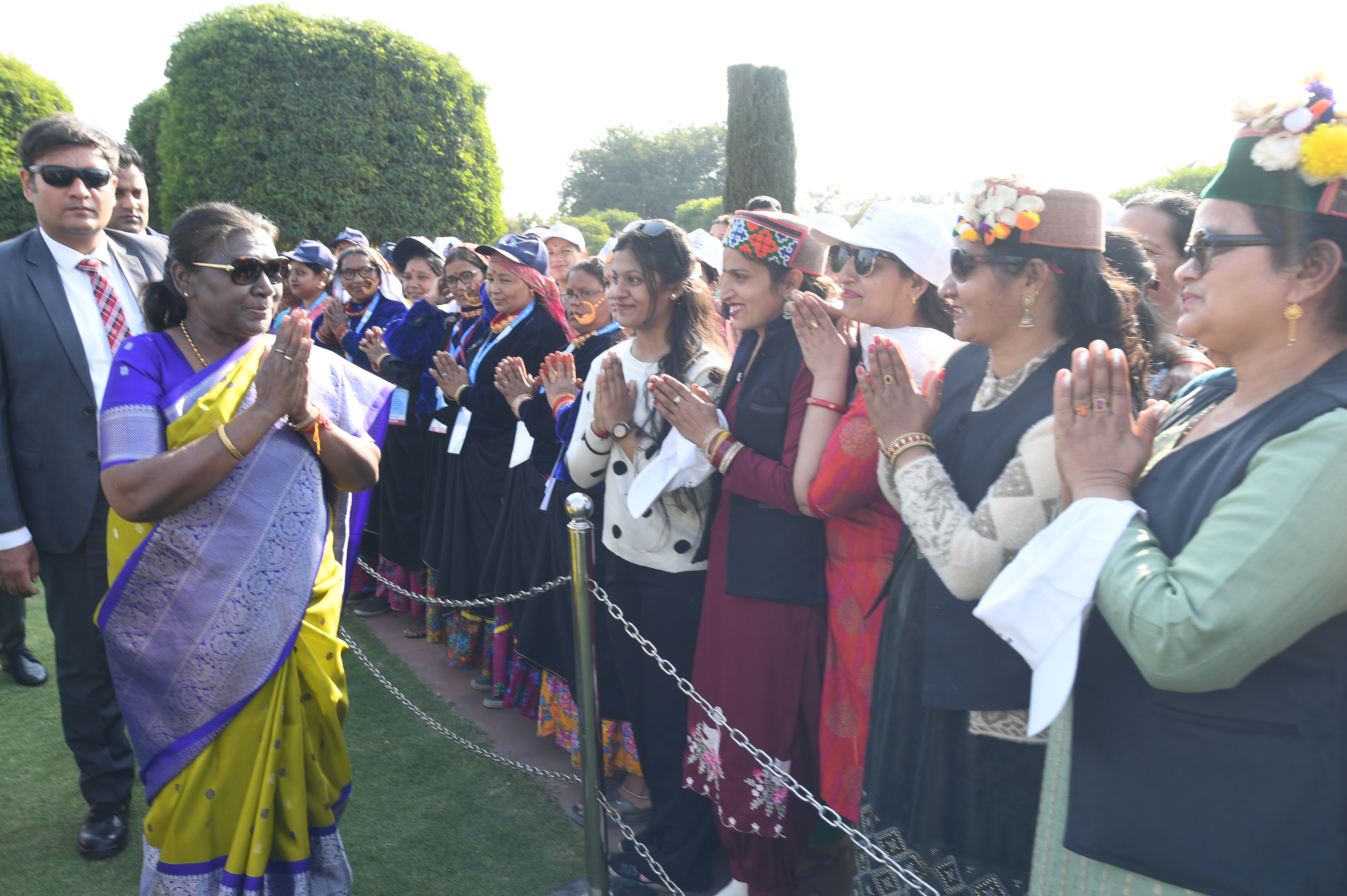| Caption: | The President of India, Smt Droupadi Murmu met women visiting Amrit Udyan on the day reserved for the special category of Women Tribal Women SHGs-II 08-03-2024 |